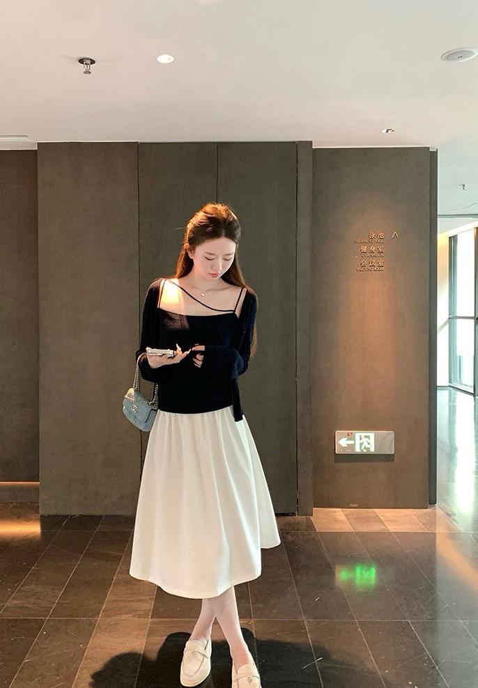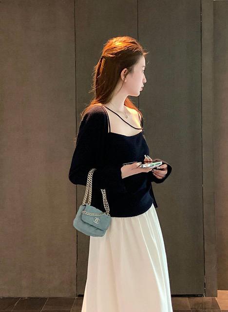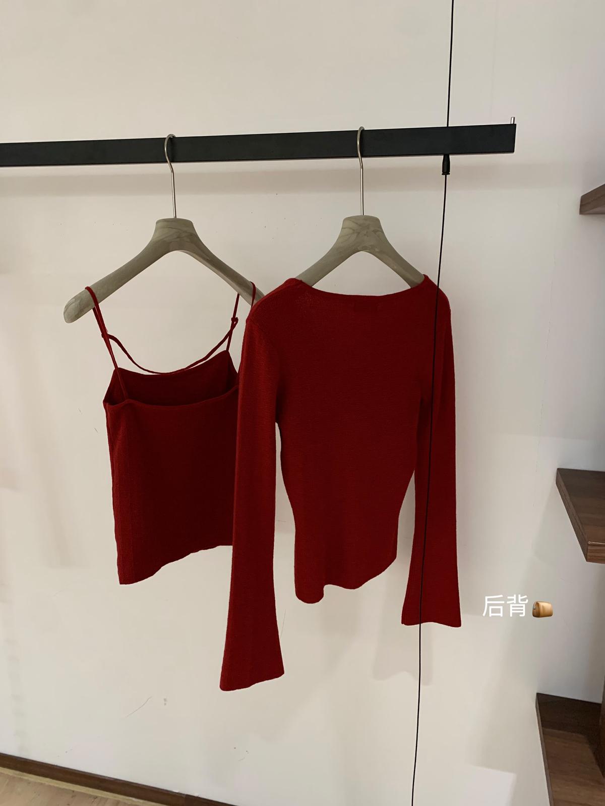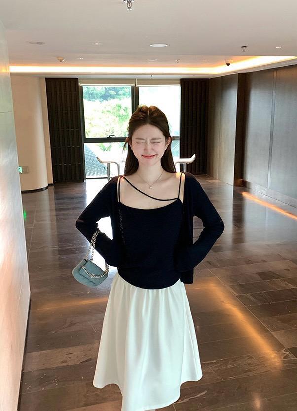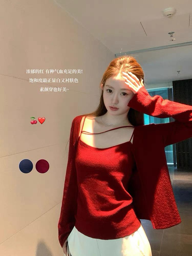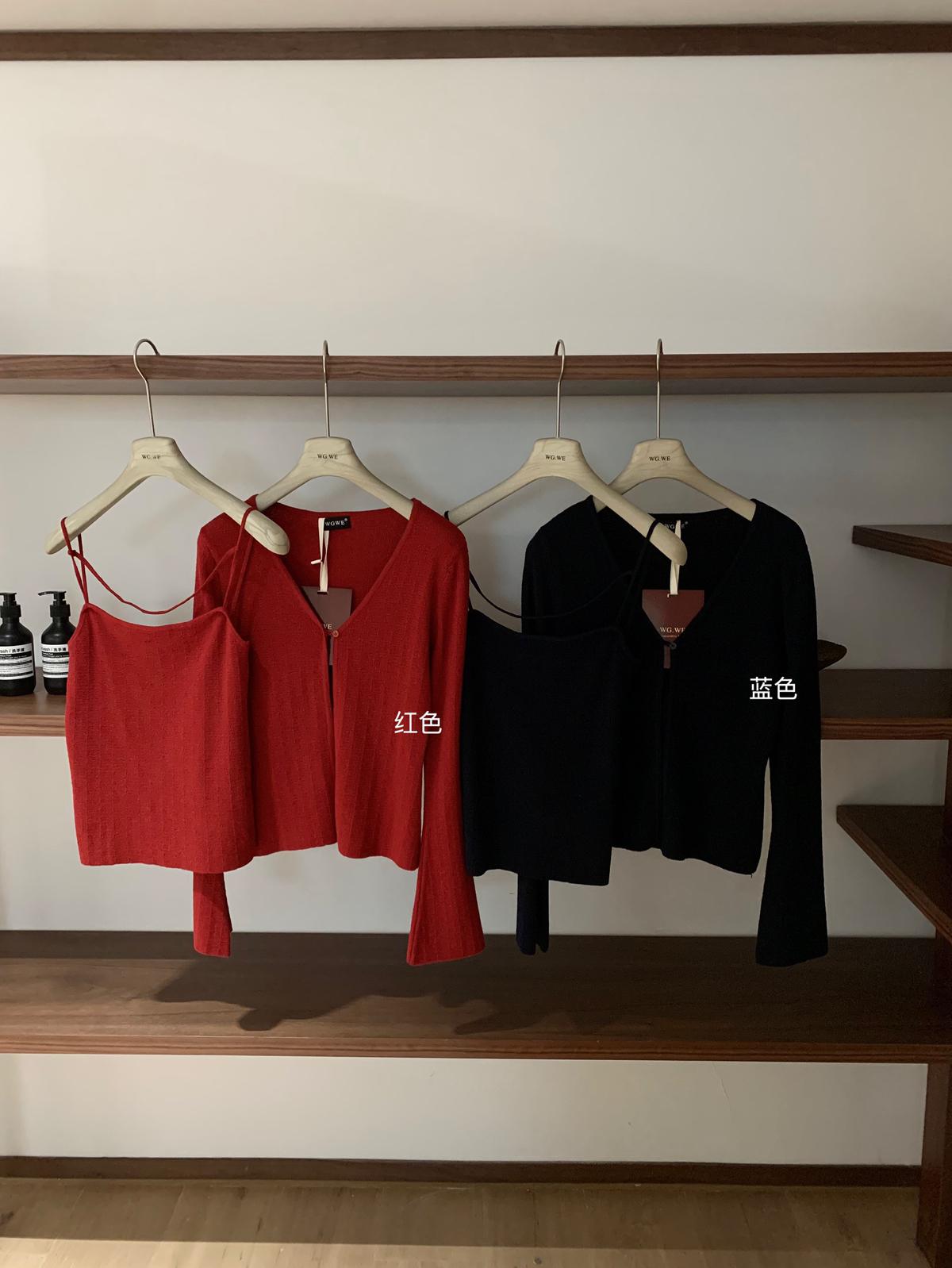 3. 【C7701】針織開衫外套上衣+吊帶背心兩件套修身顯瘦時尚套裝