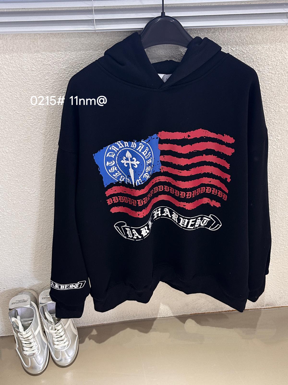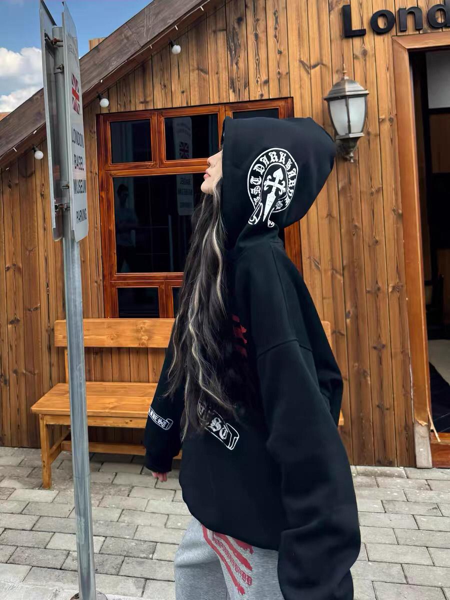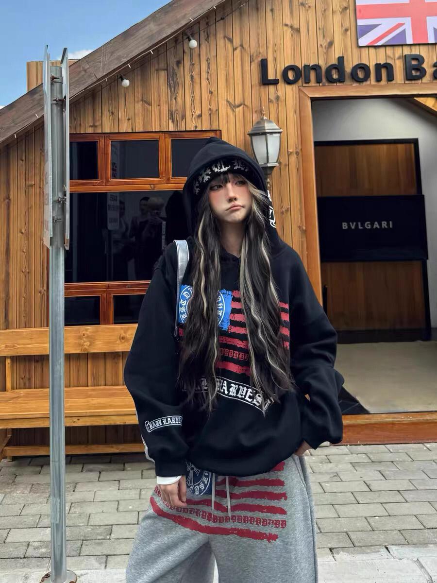 3. 【C7725】美式復古街頭字母印花連帽加絨加厚冬季寬鬆衛衣