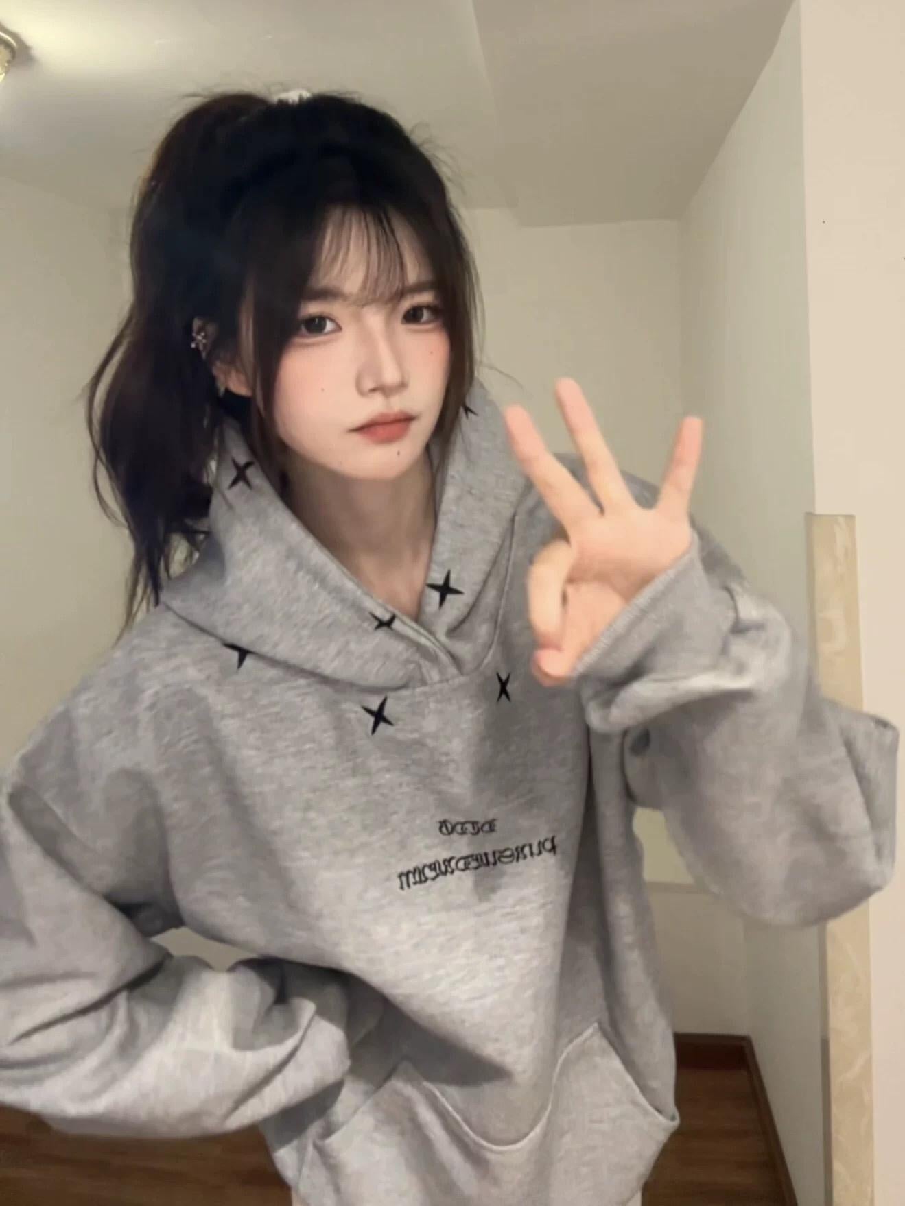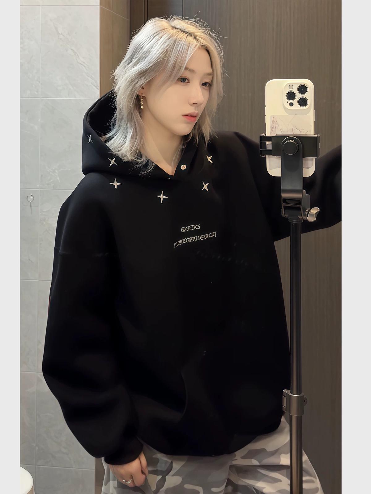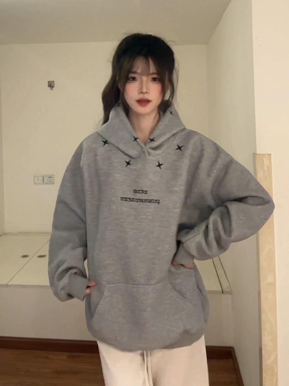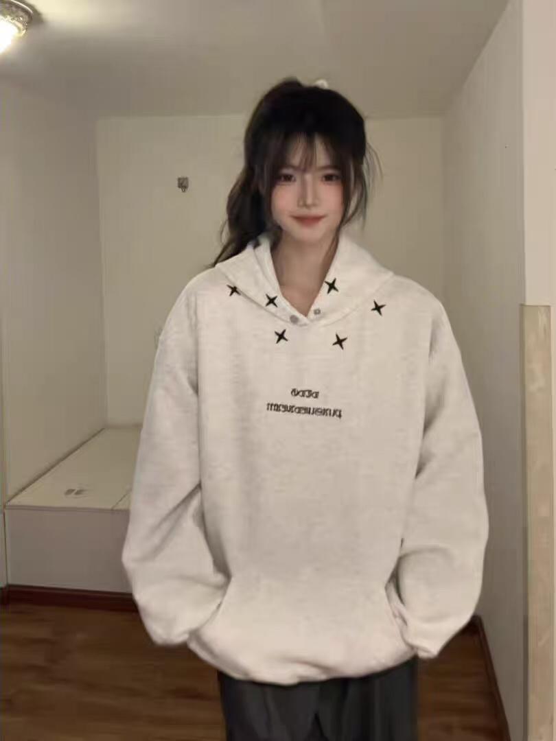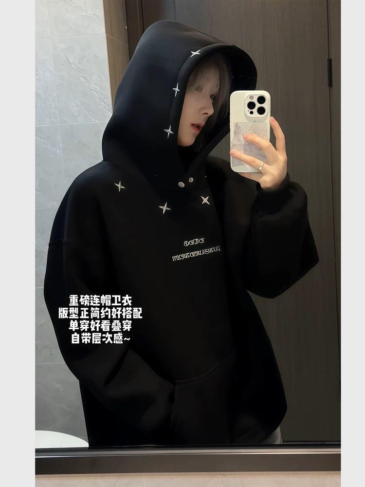 【C7728】加絨加厚美式休閒高街潮牌運動刺繡情侶寬鬆連帽衛衣