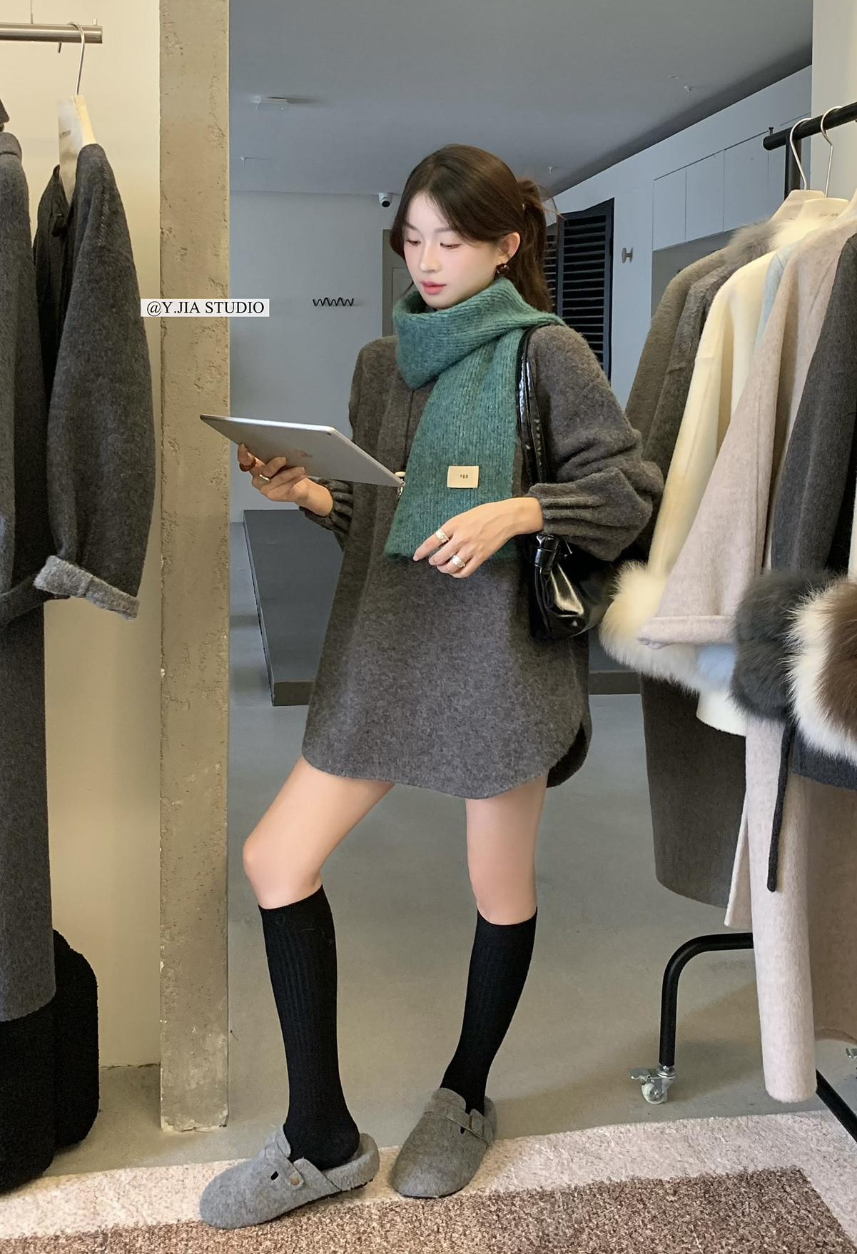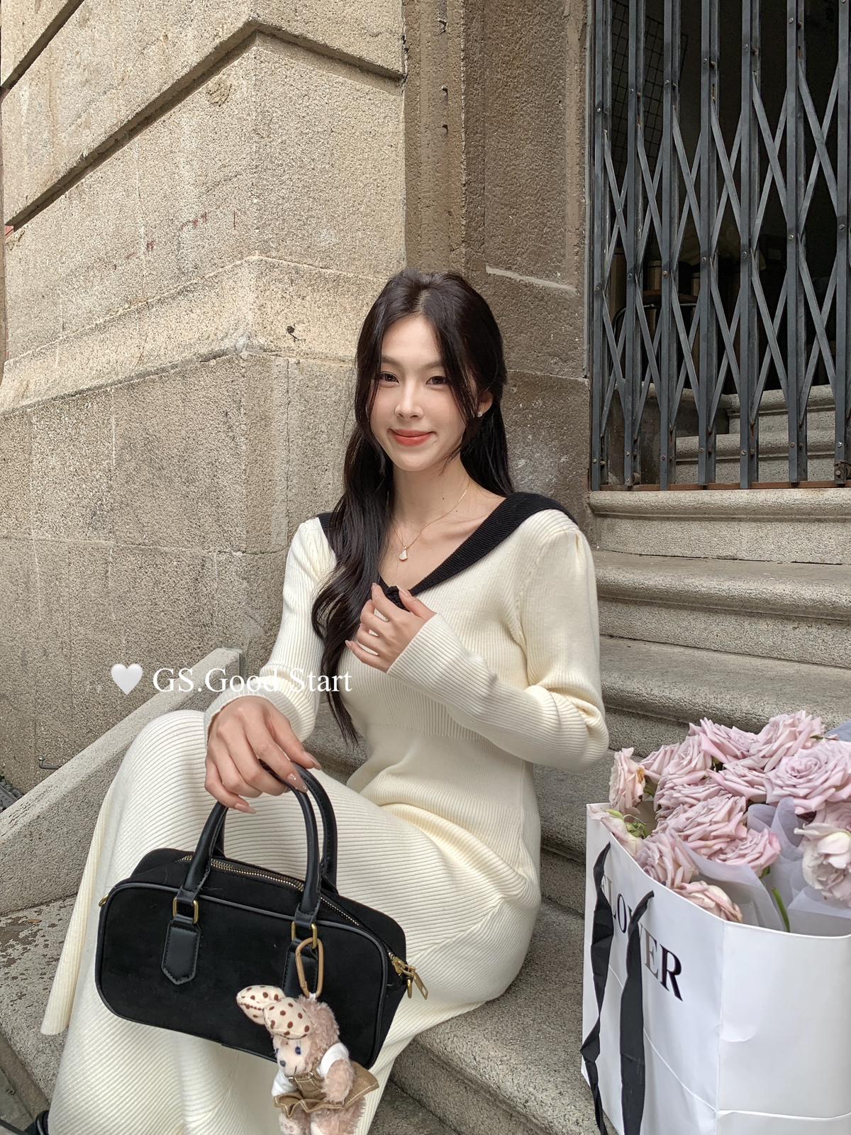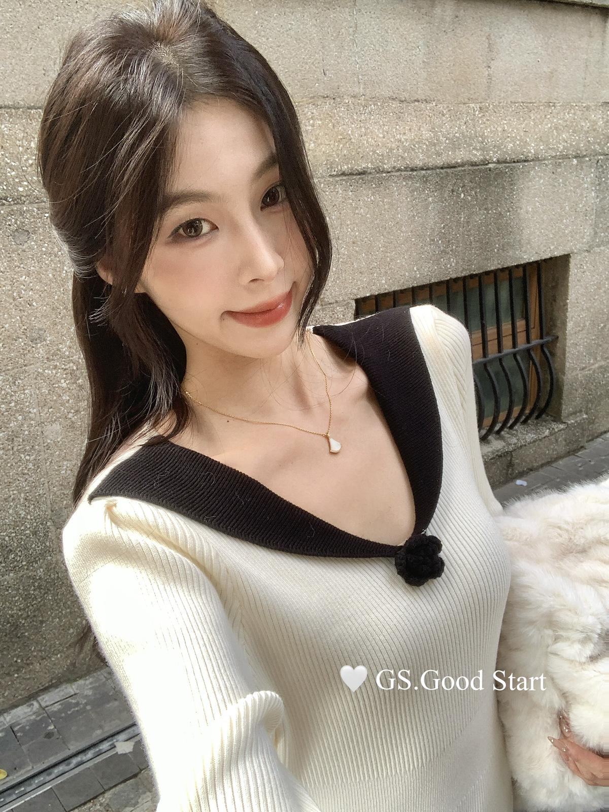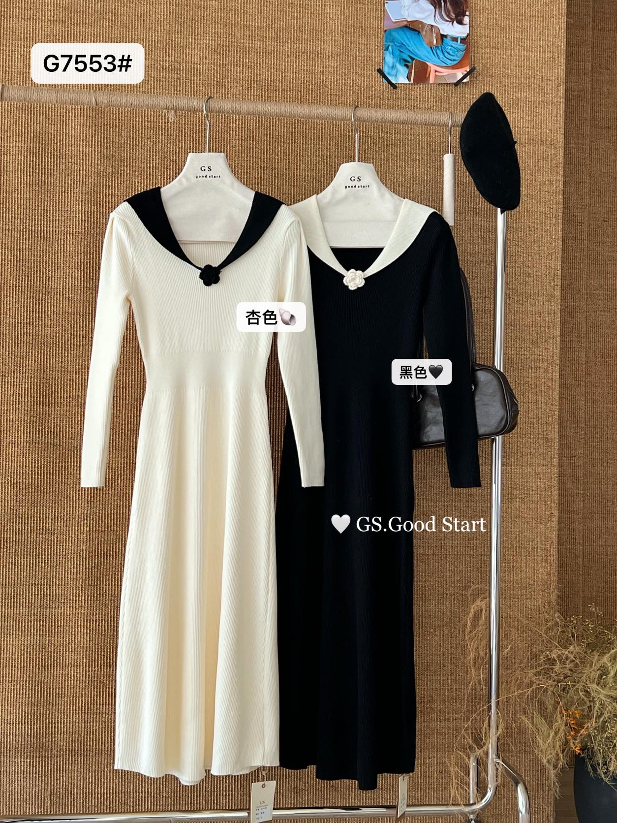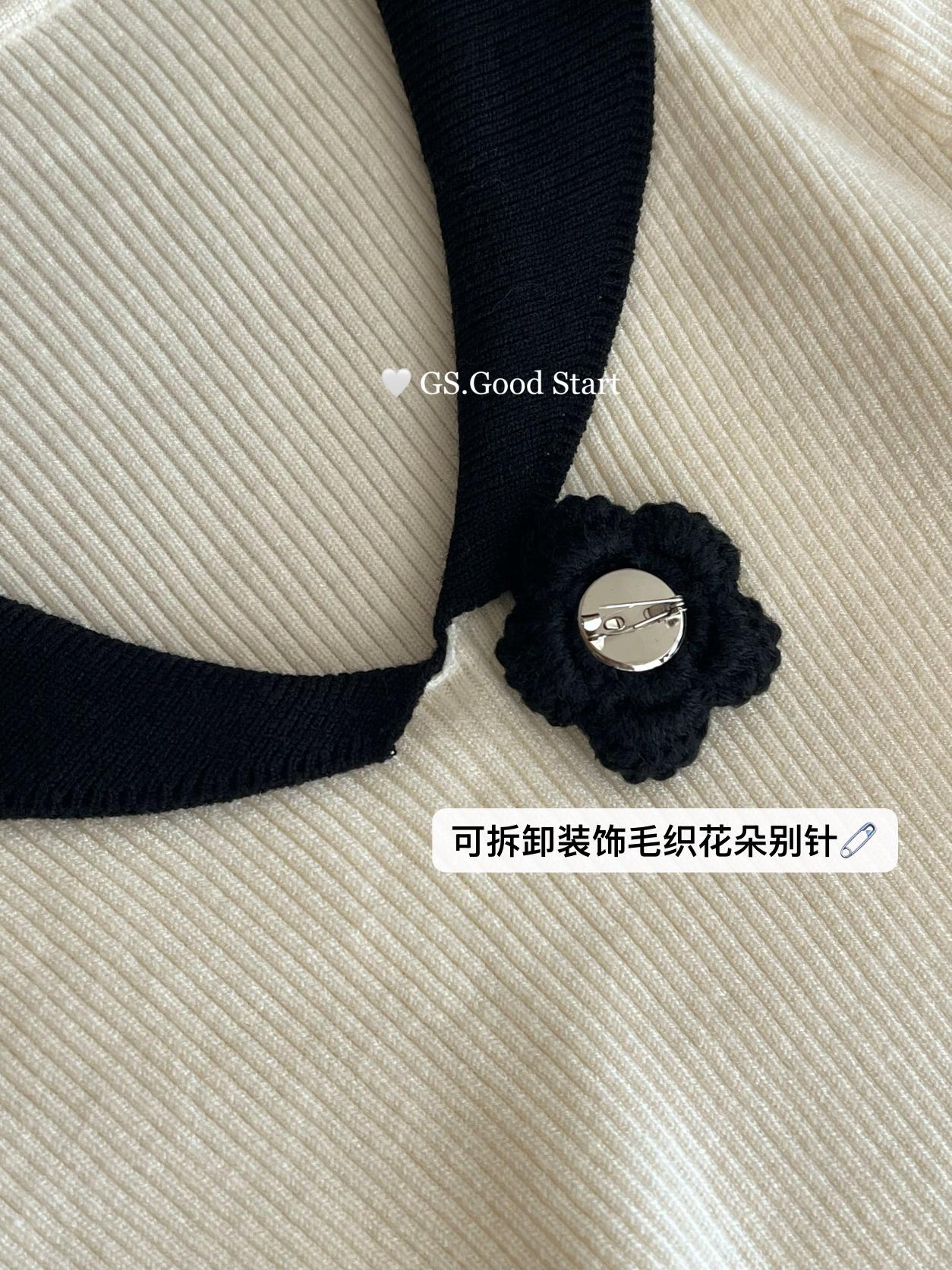【C7736】美爆了*仙品赫本裙!強推必入!秋冬法式溫柔氣質v領針織顯瘦連衣裙(配花朵可拆)