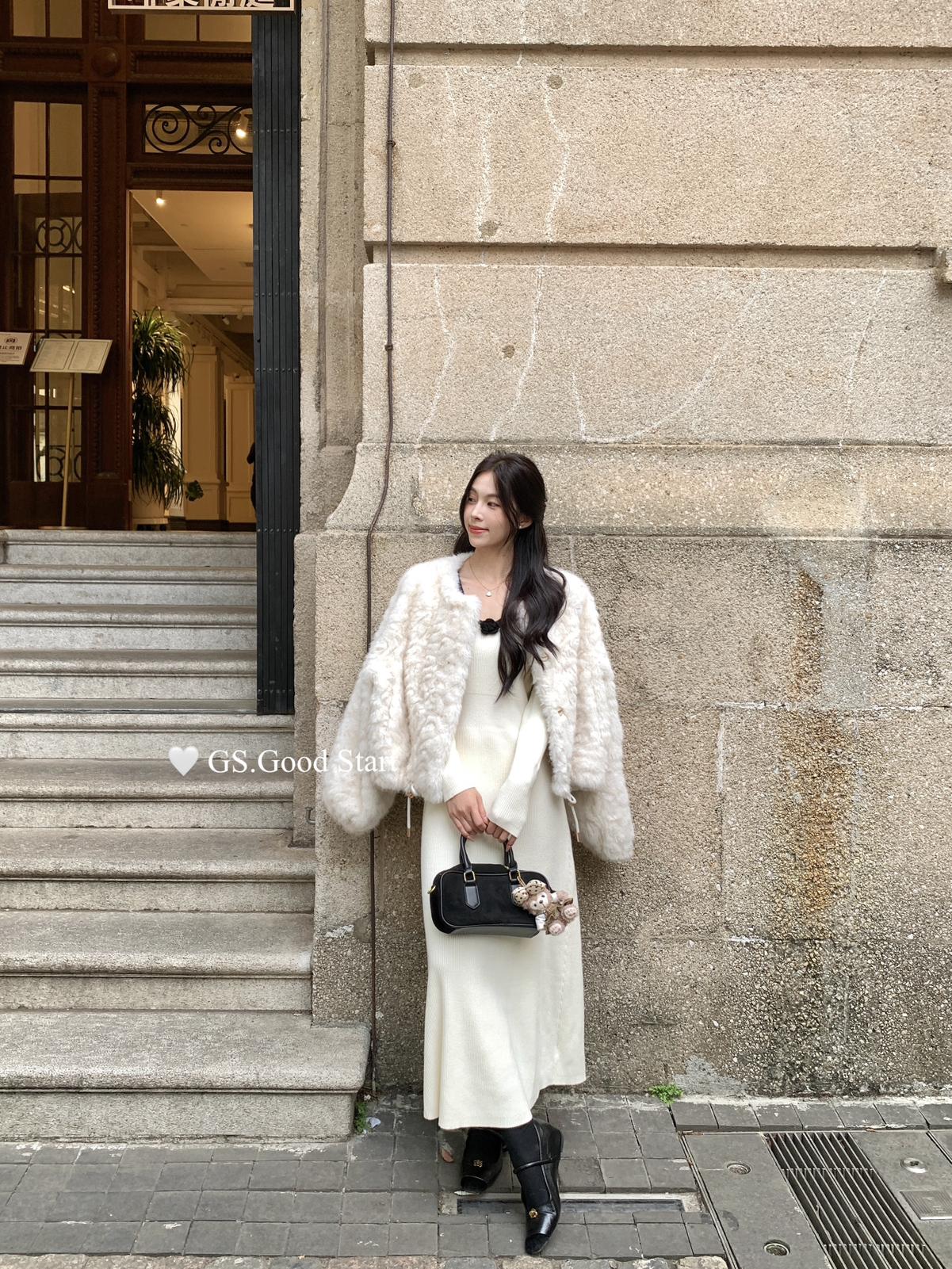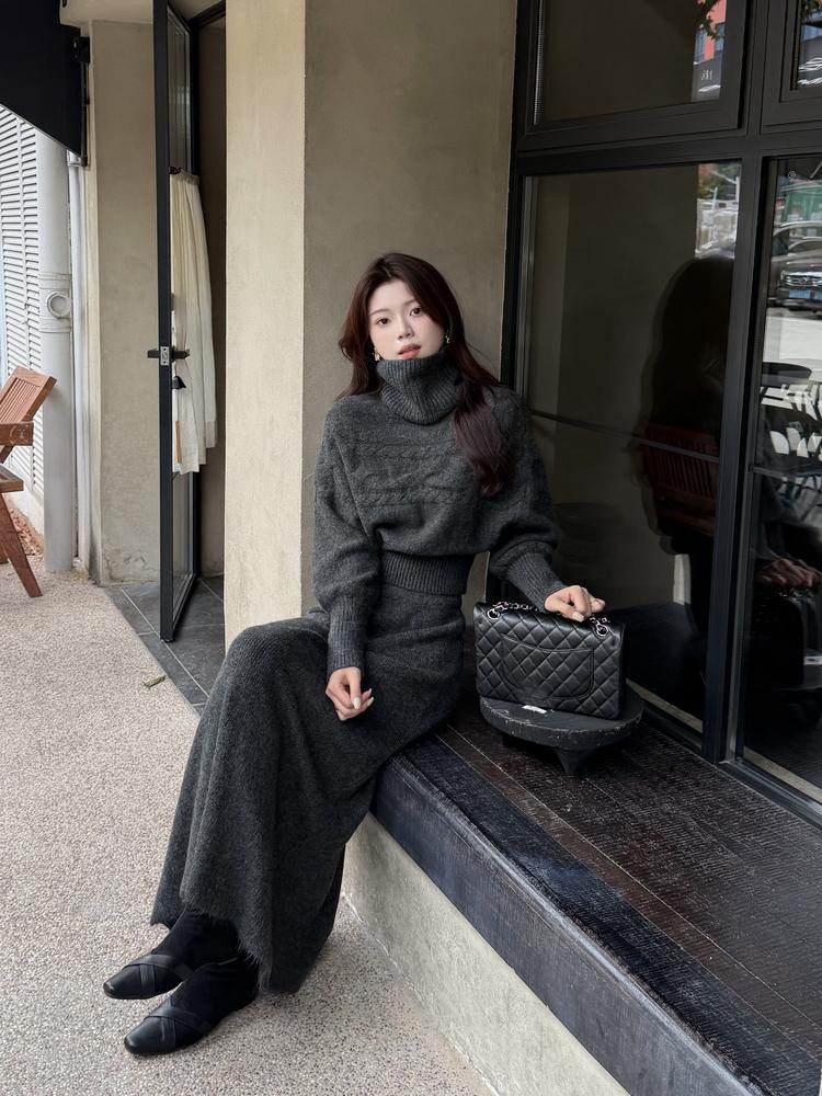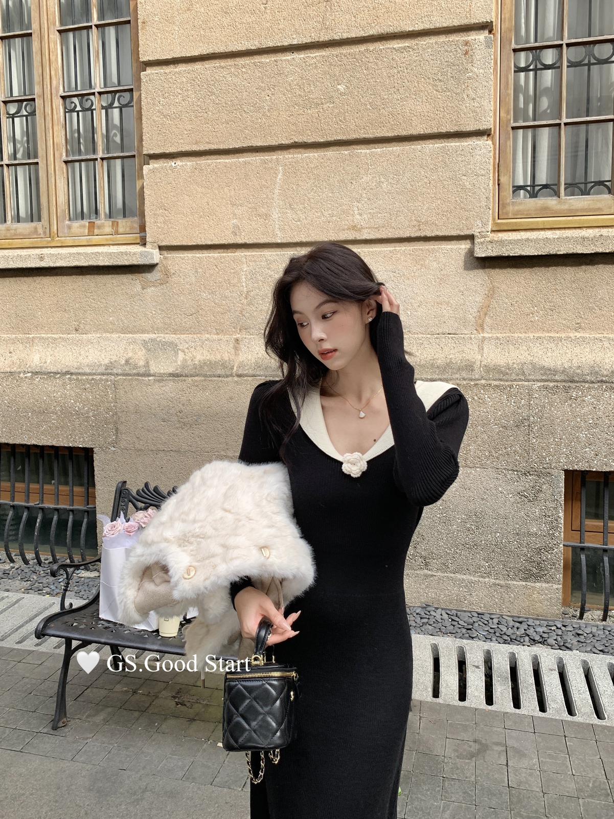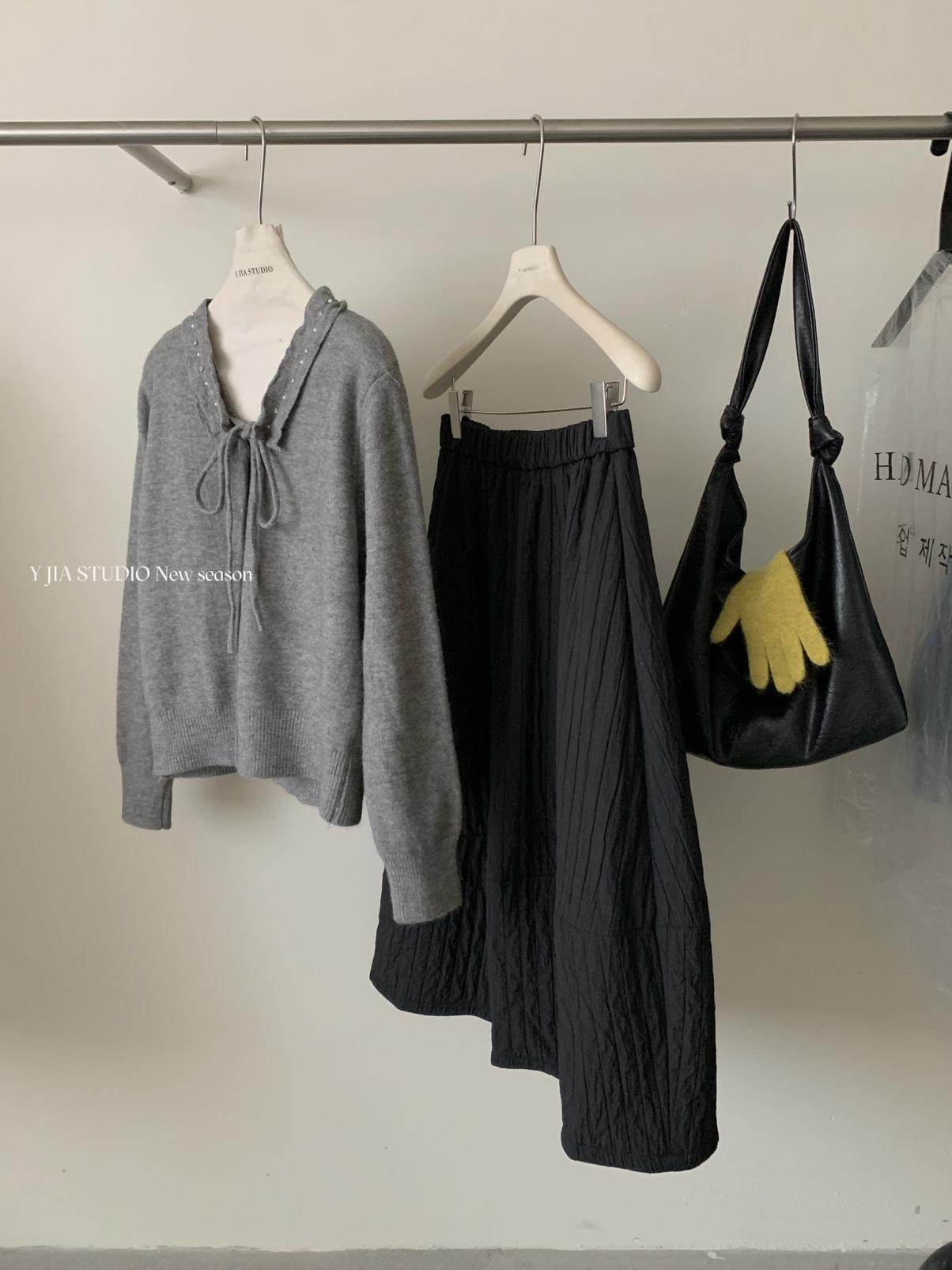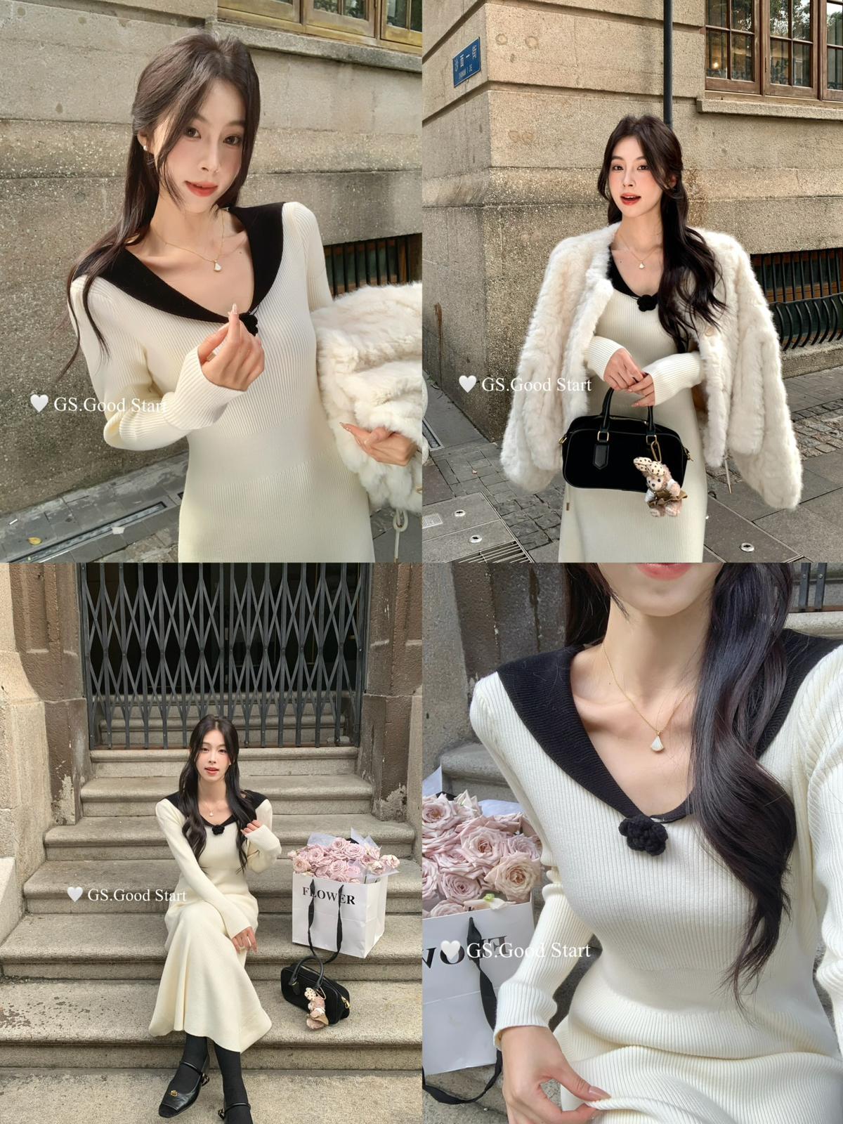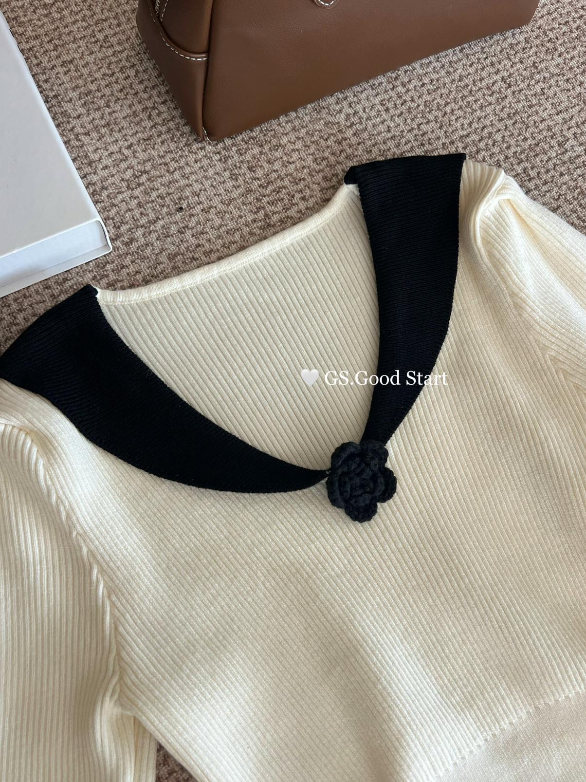 【C7736】美爆了*仙品赫本裙!強推必入!秋冬法式溫柔氣質v領針織顯瘦連衣裙(配花朵可拆)