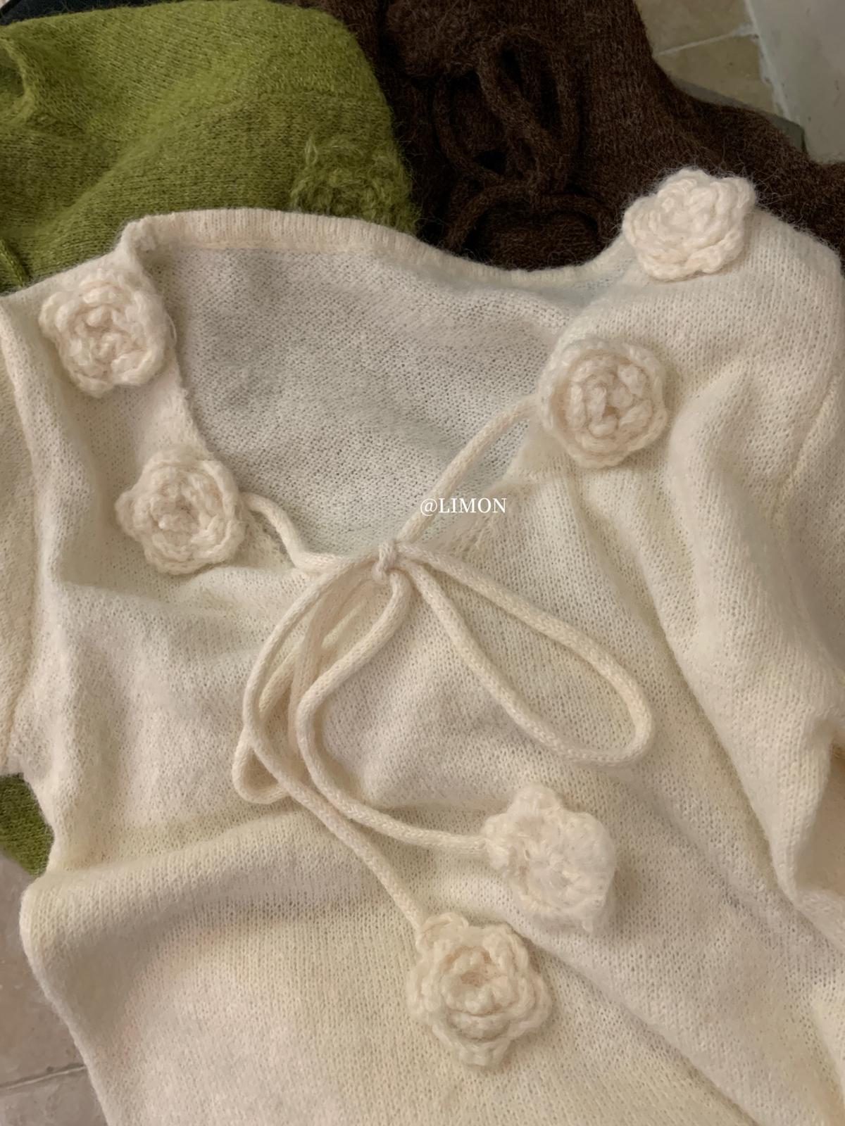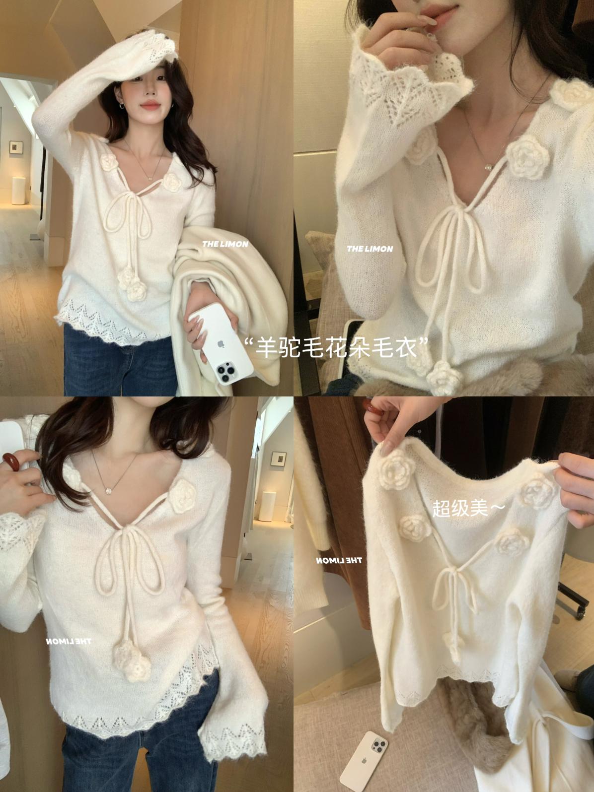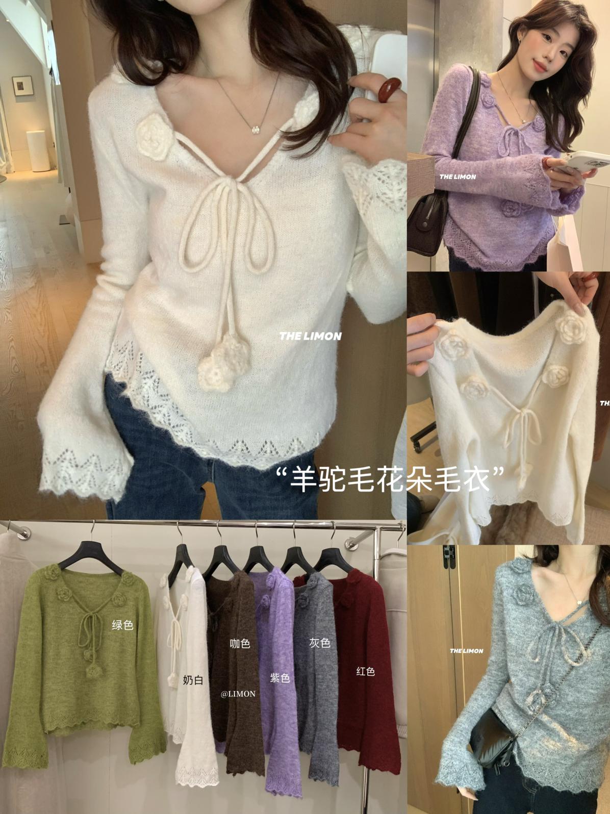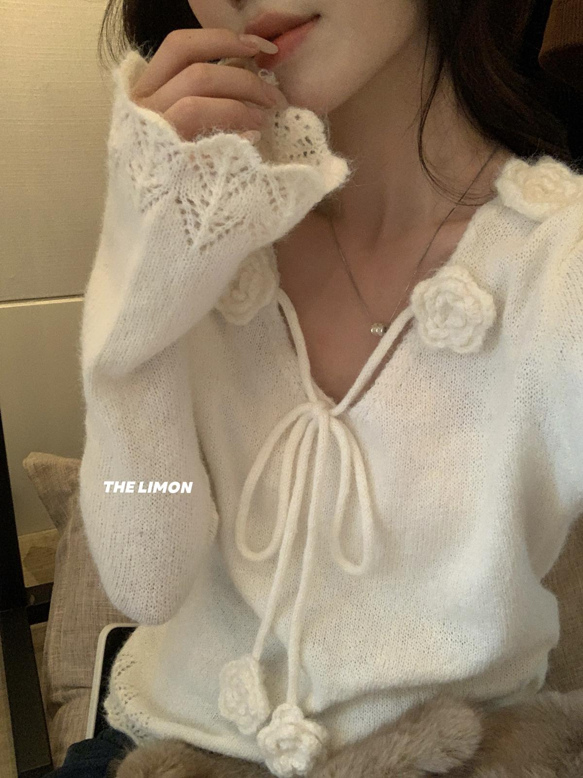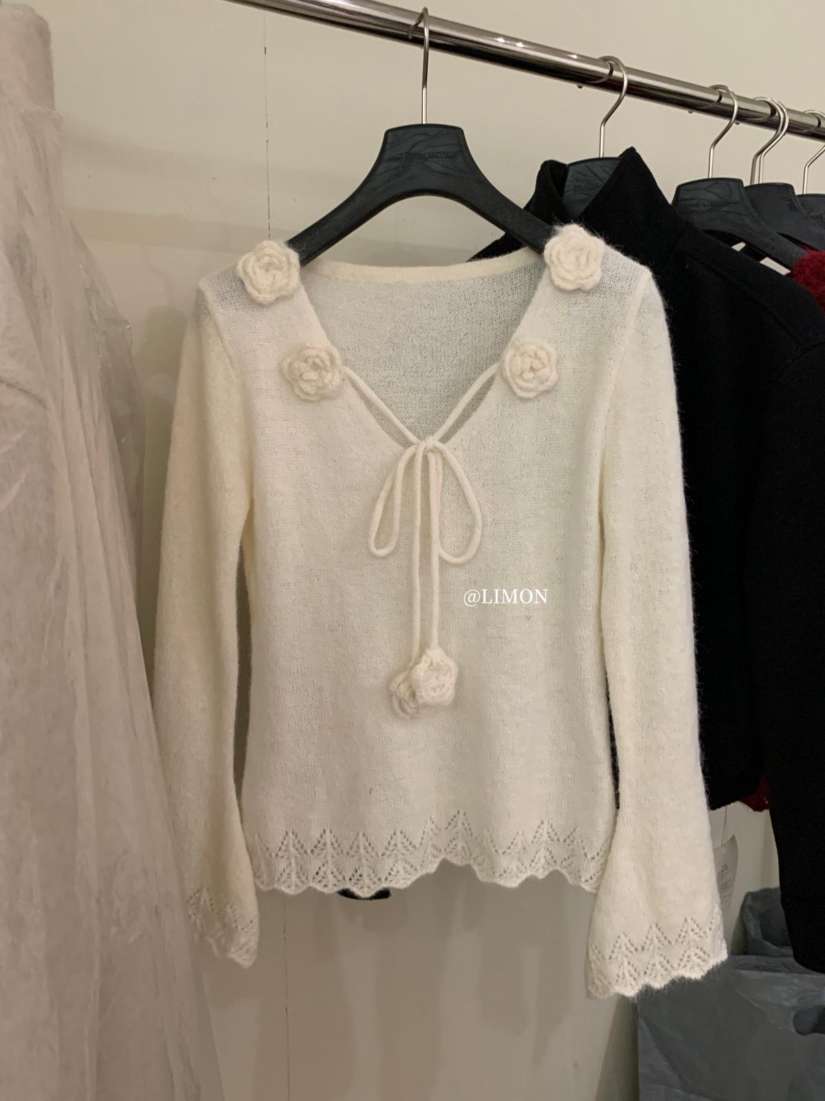 【C7774】法式立體花朵羊駝毛針織衫(含8%羊毛)