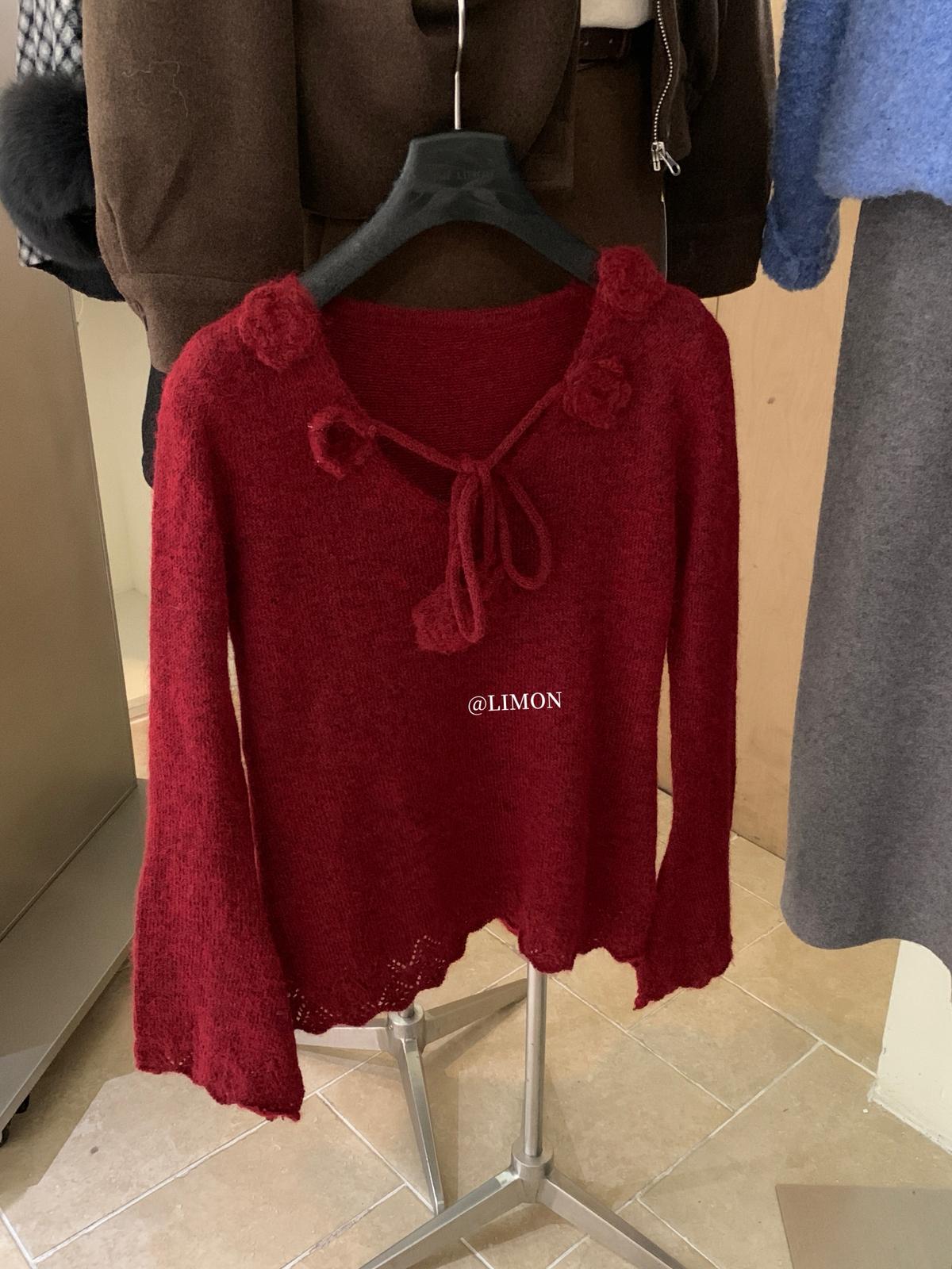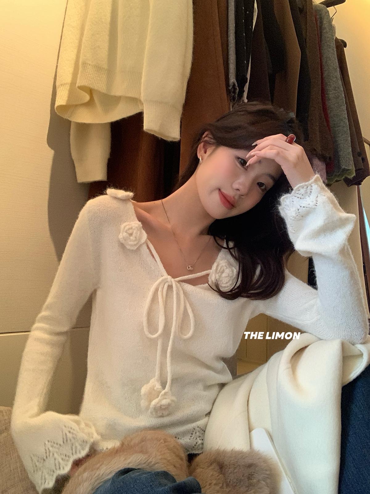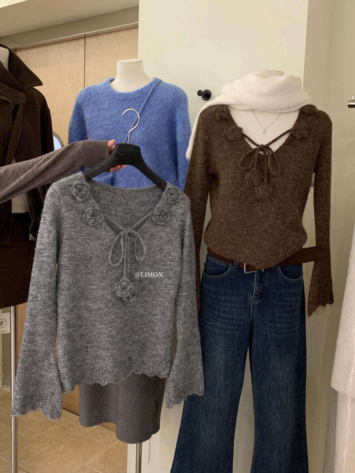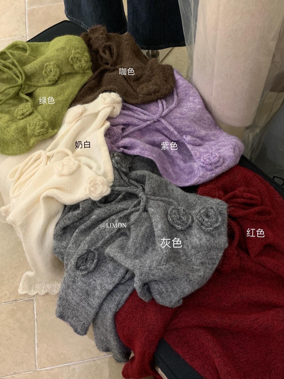 【C7774】法式立體花朵羊駝毛針織衫(含8%羊毛)