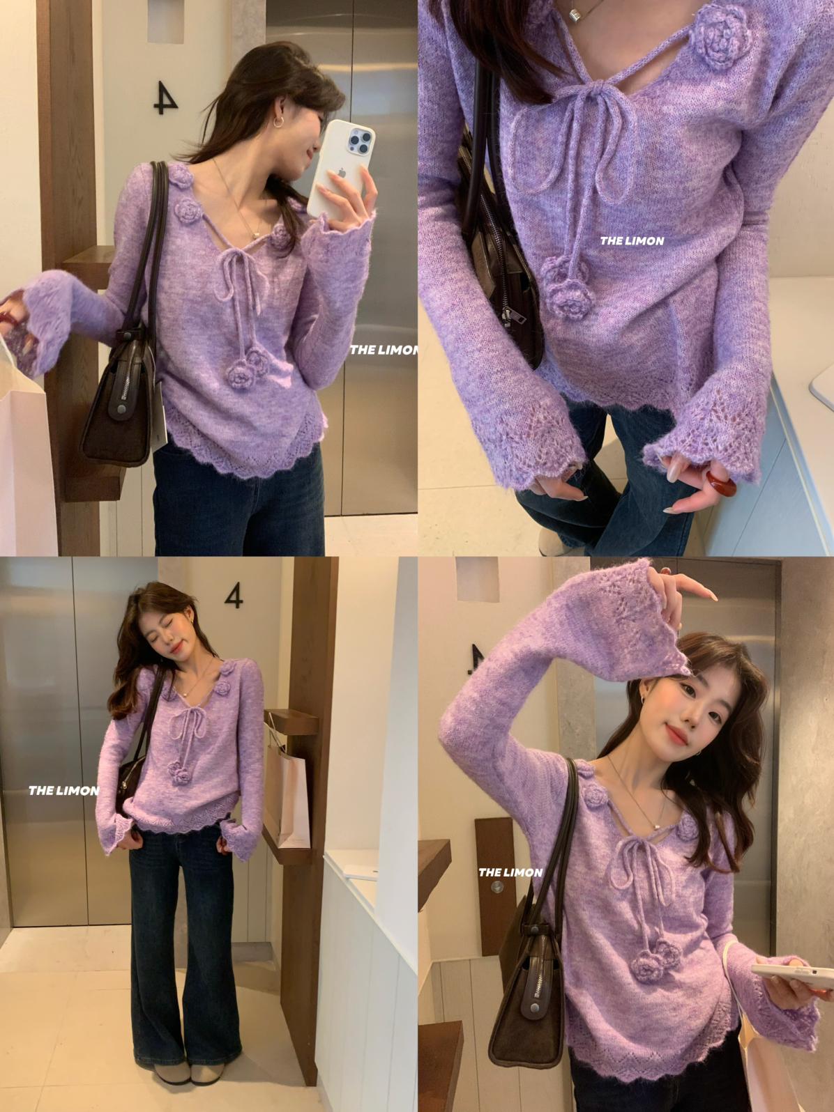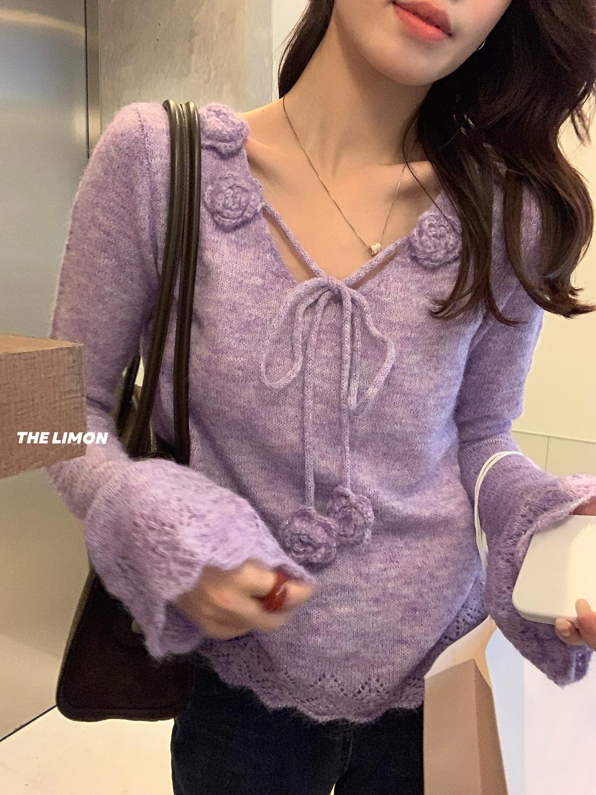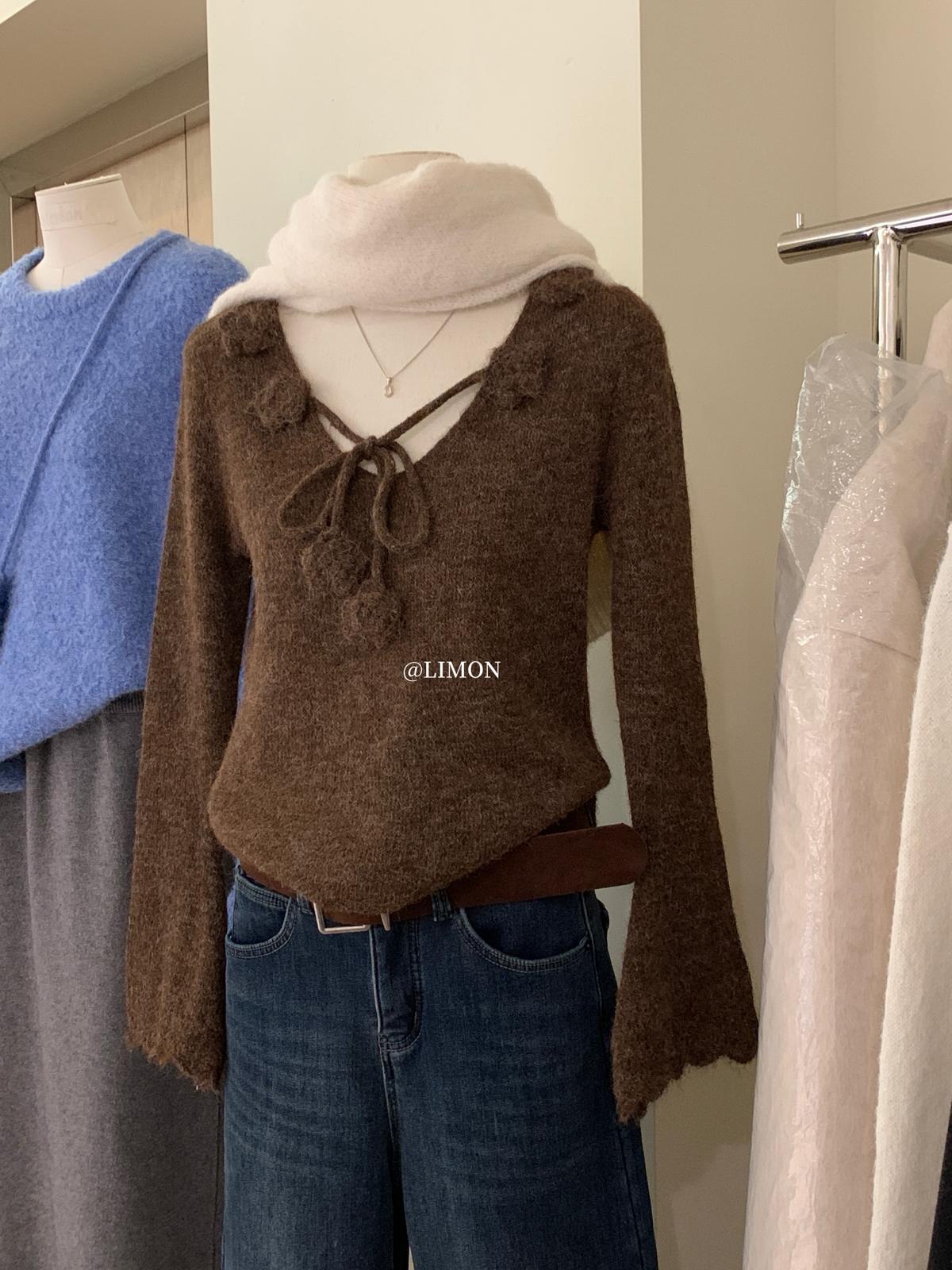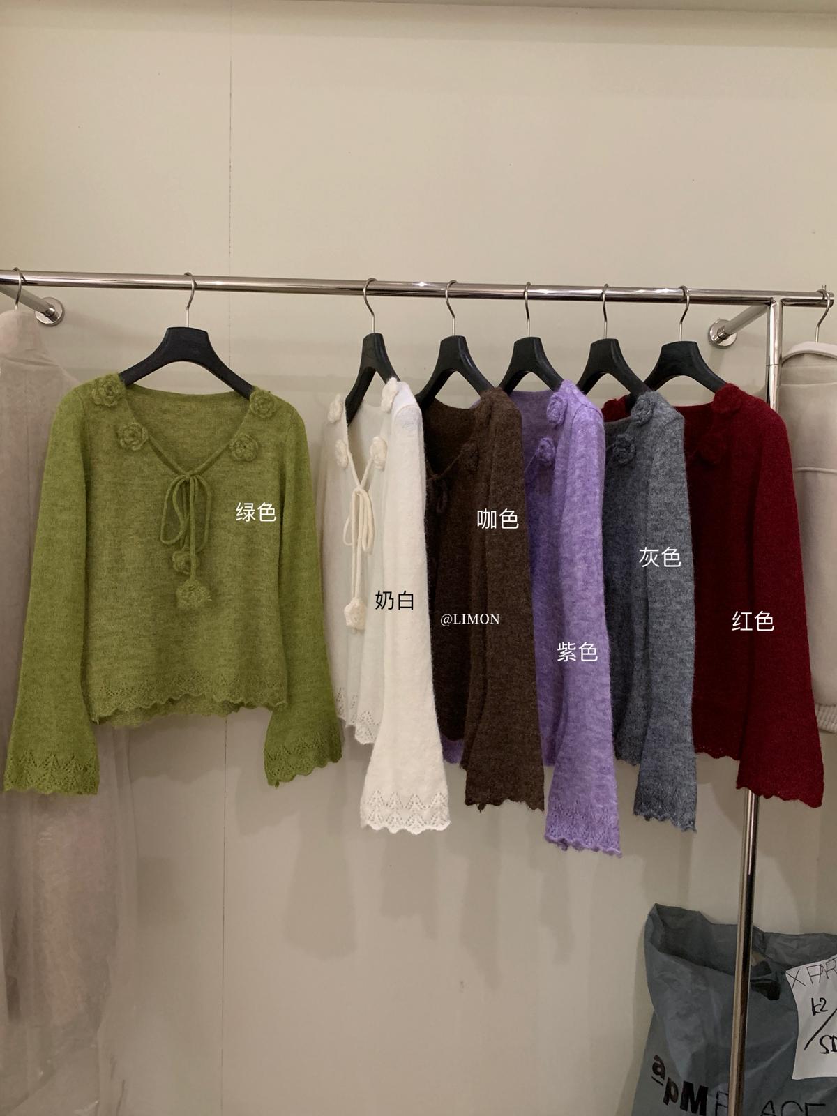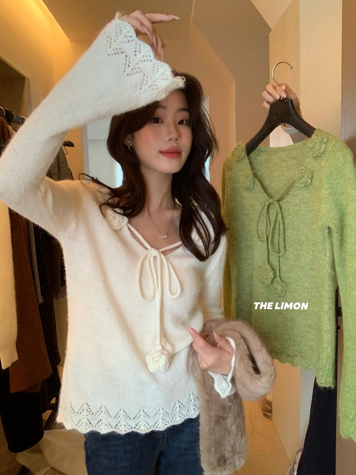 【C7774】法式立體花朵羊駝毛針織衫(含8%羊毛)