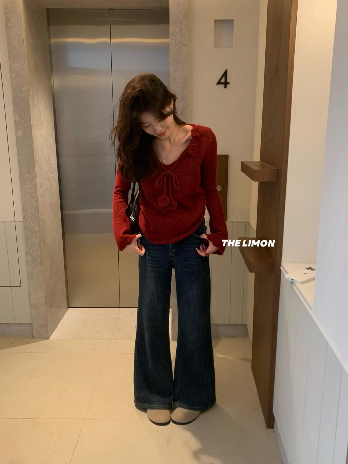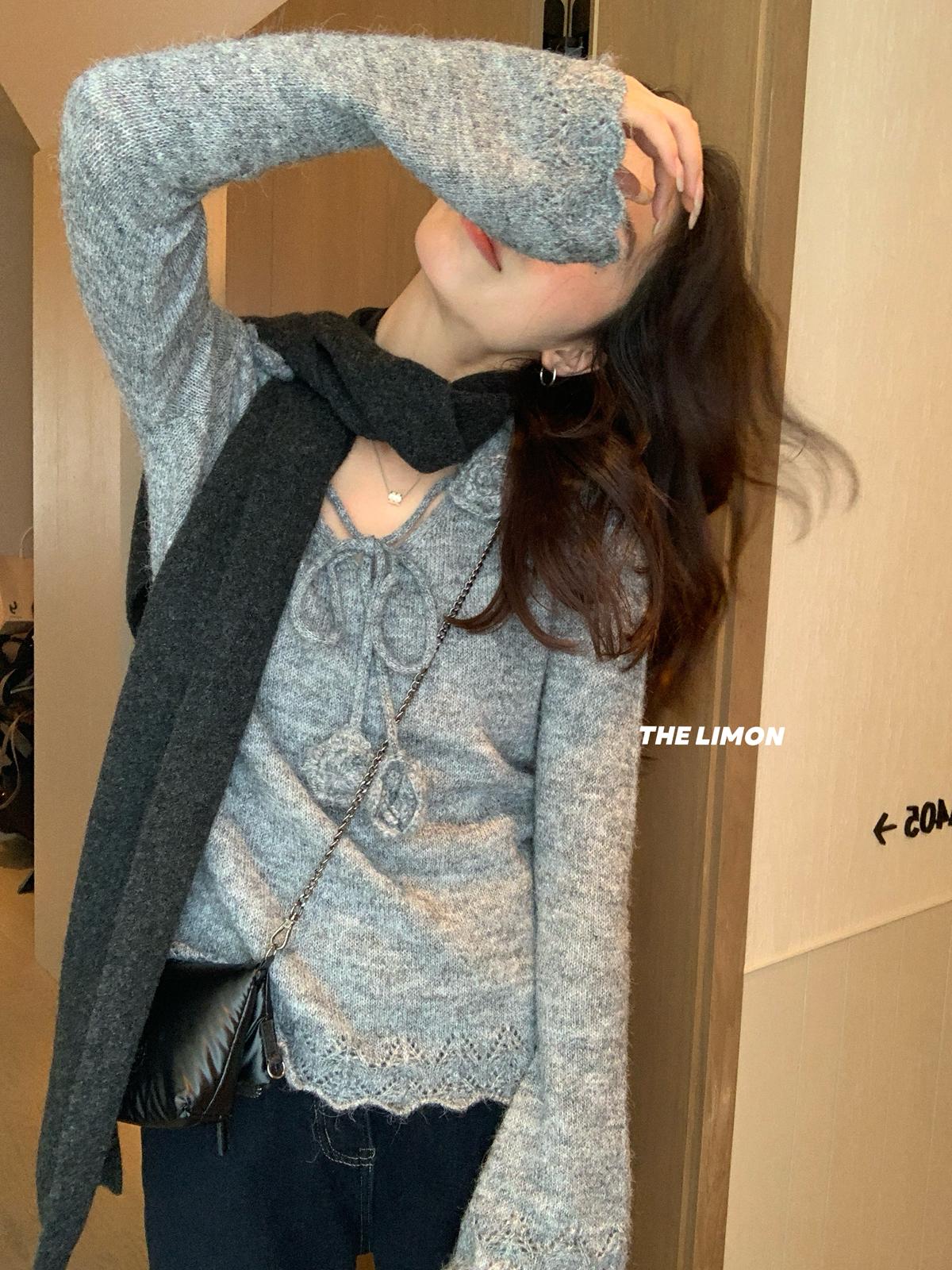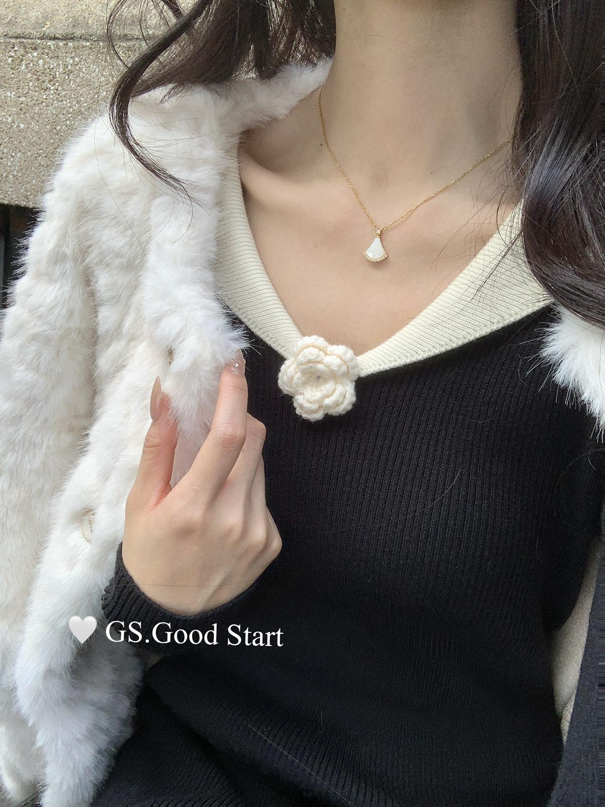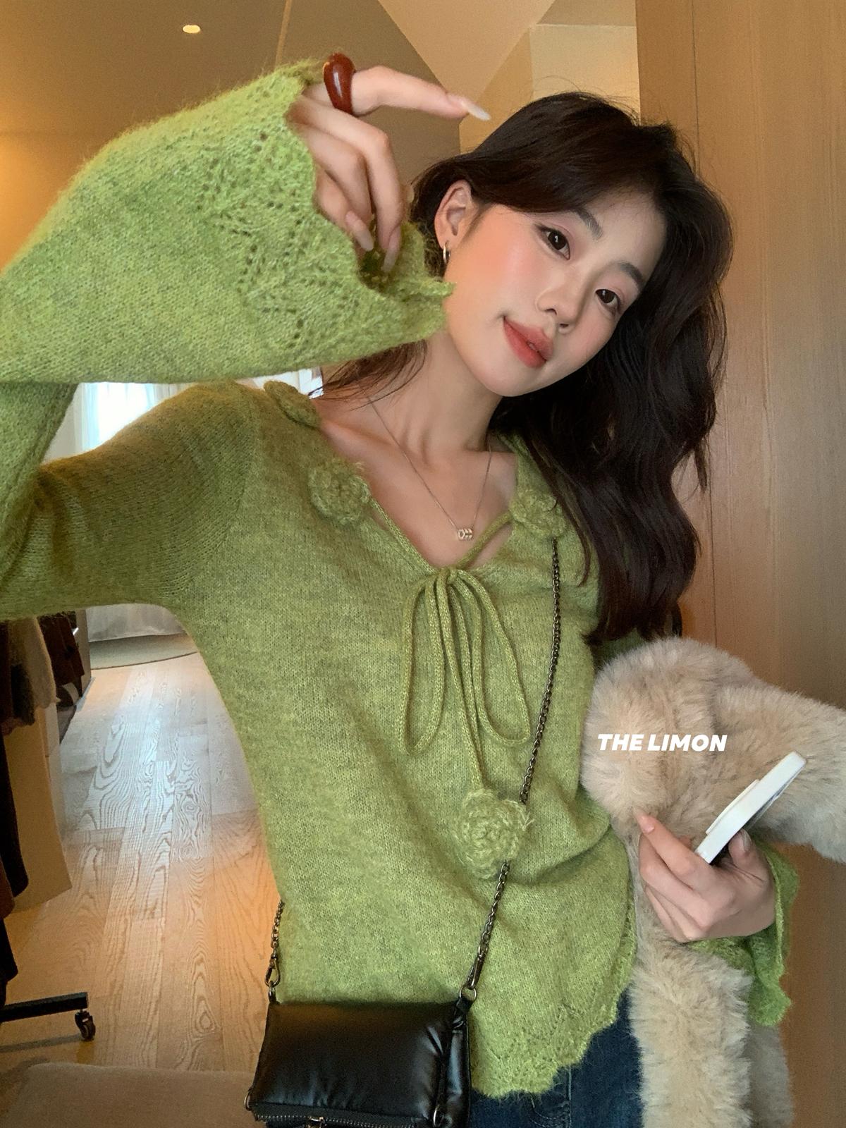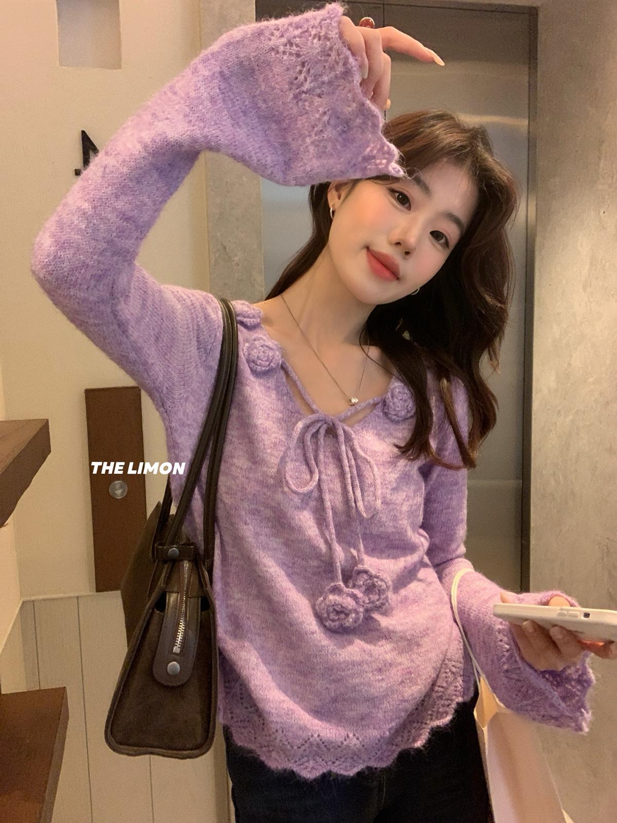 【C7774】法式立體花朵羊駝毛針織衫(含8%羊毛)