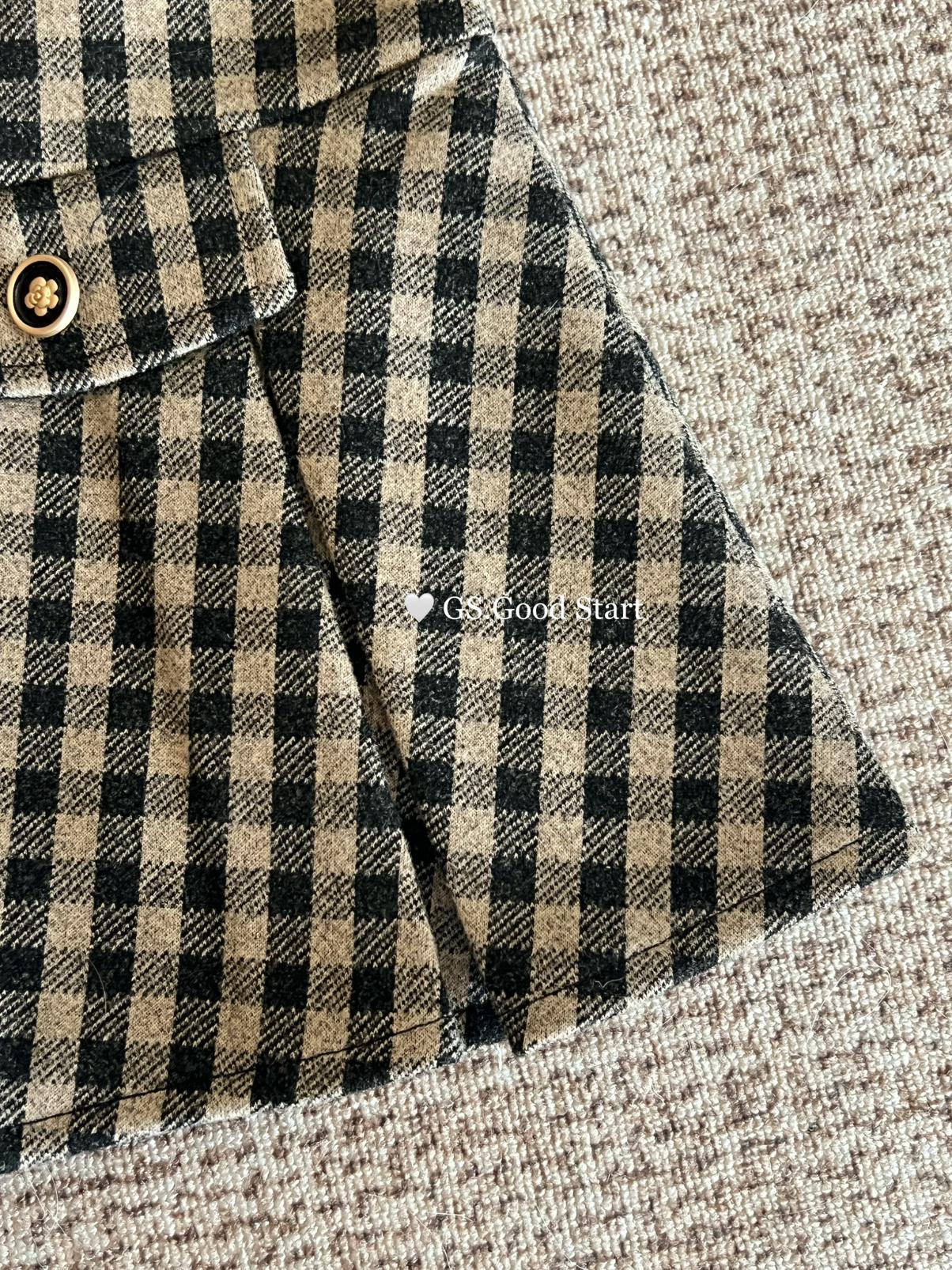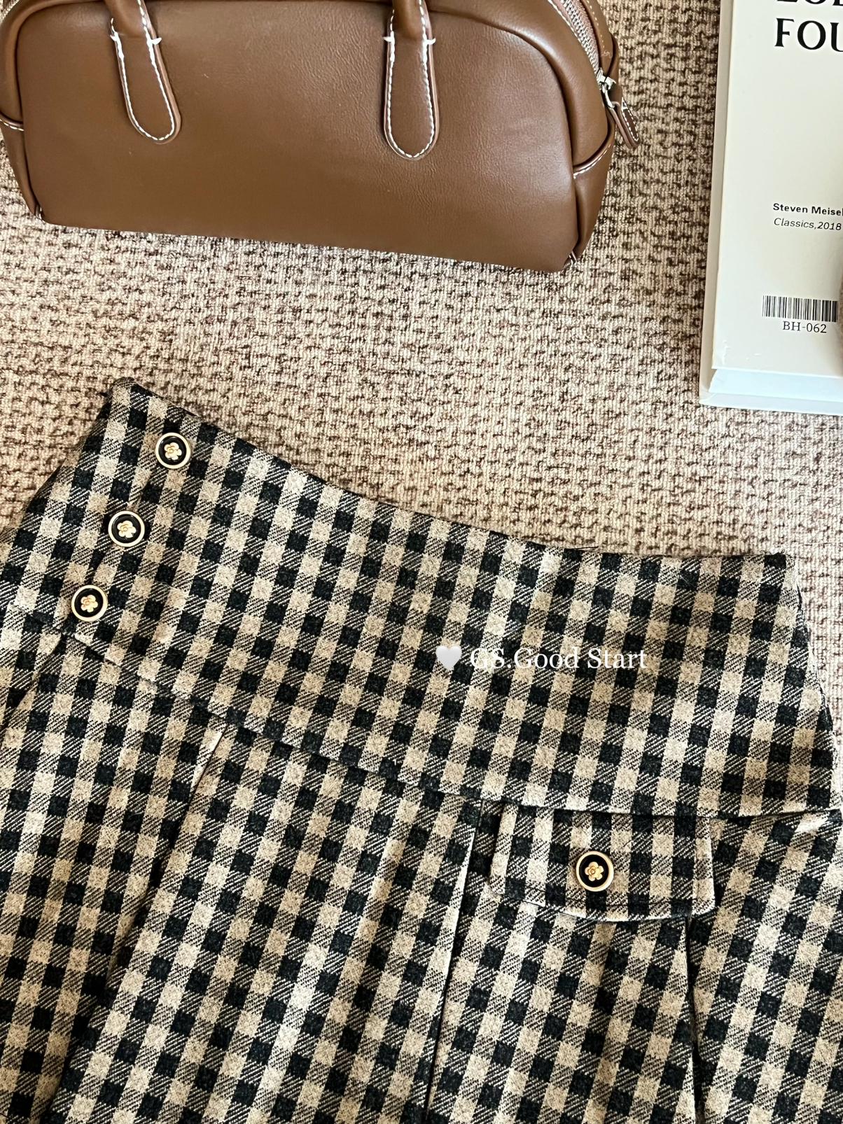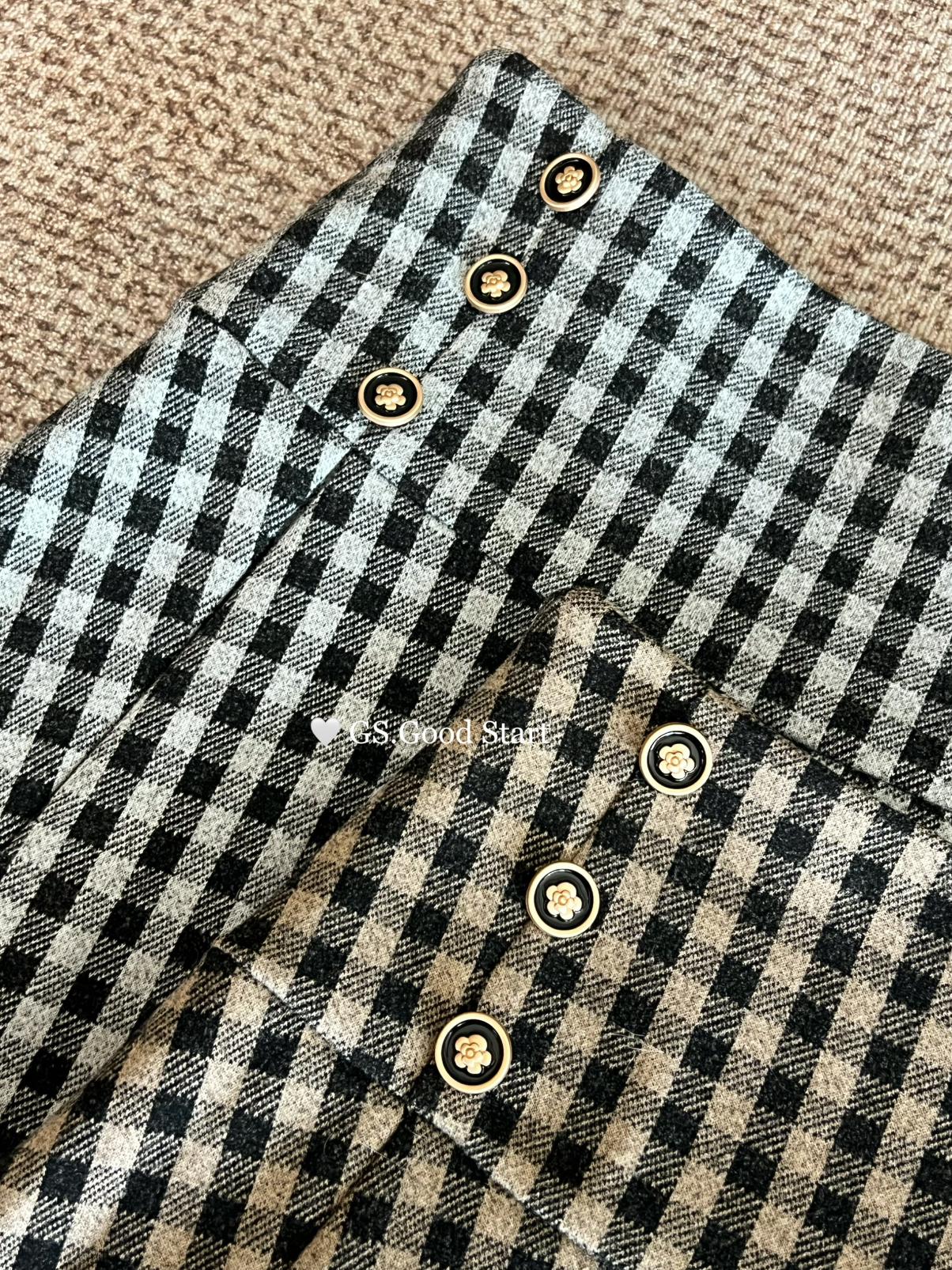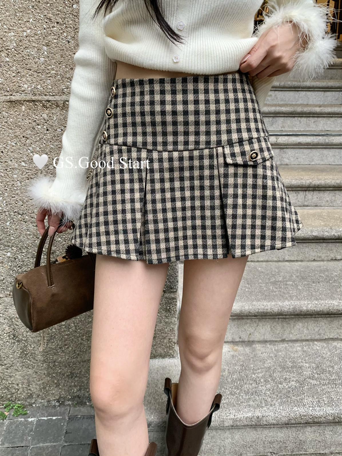 【C7737】復古矜貴~小香風必入單品!秋冬氣質vtg經典格紋顯瘦百褶半身裙
