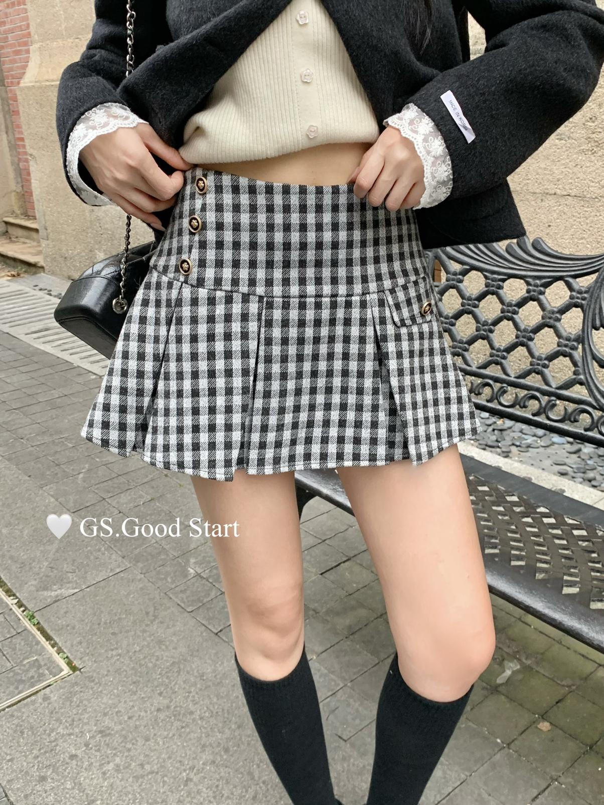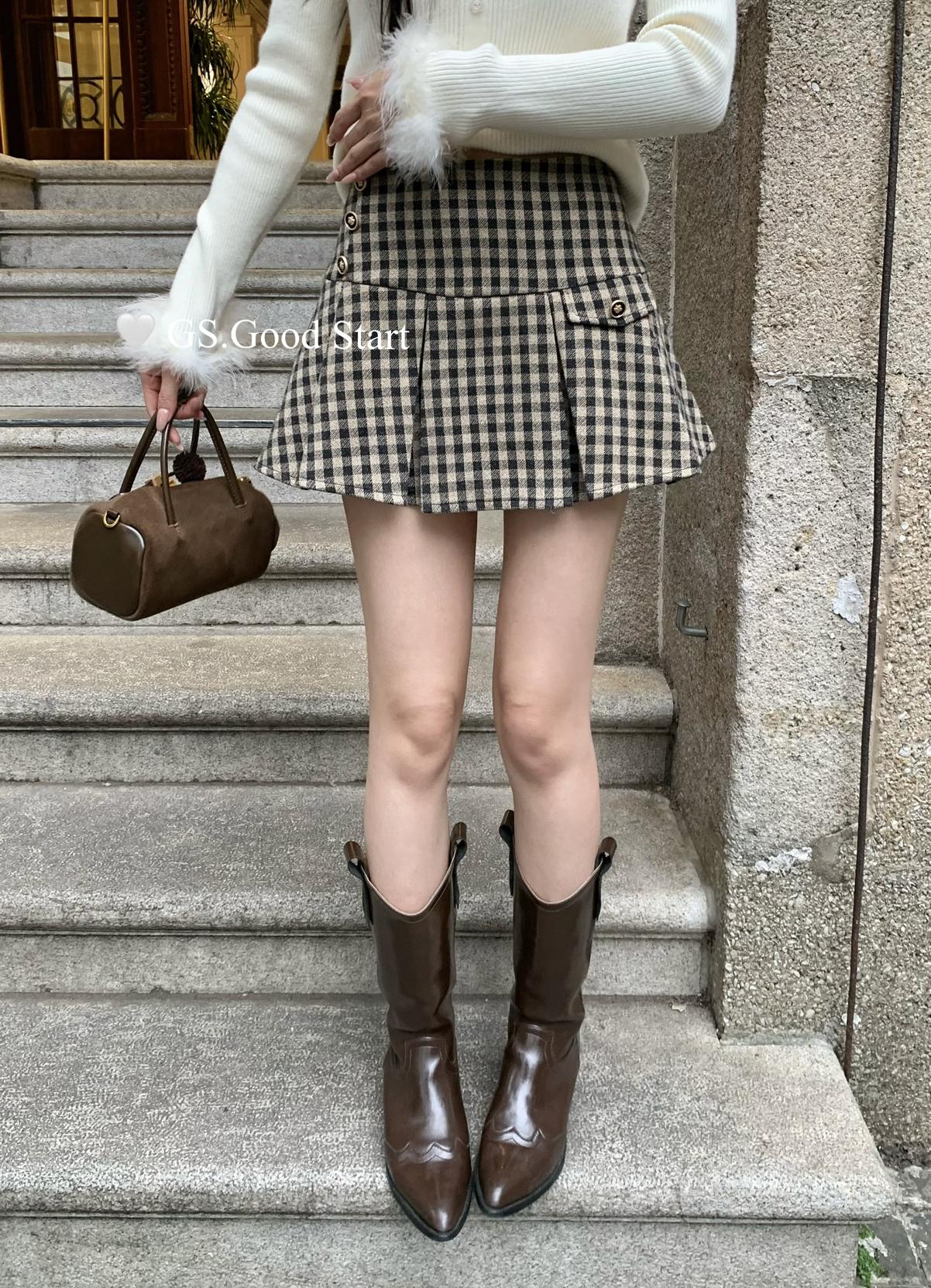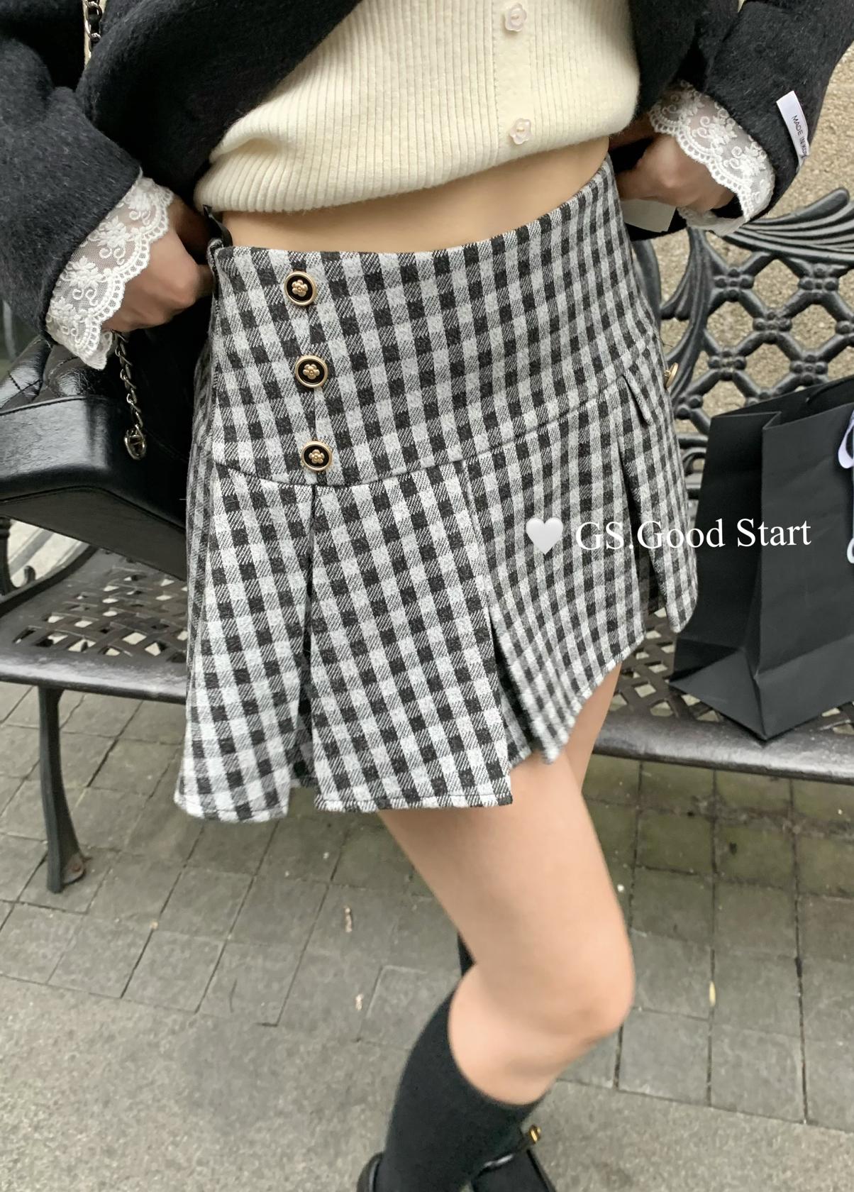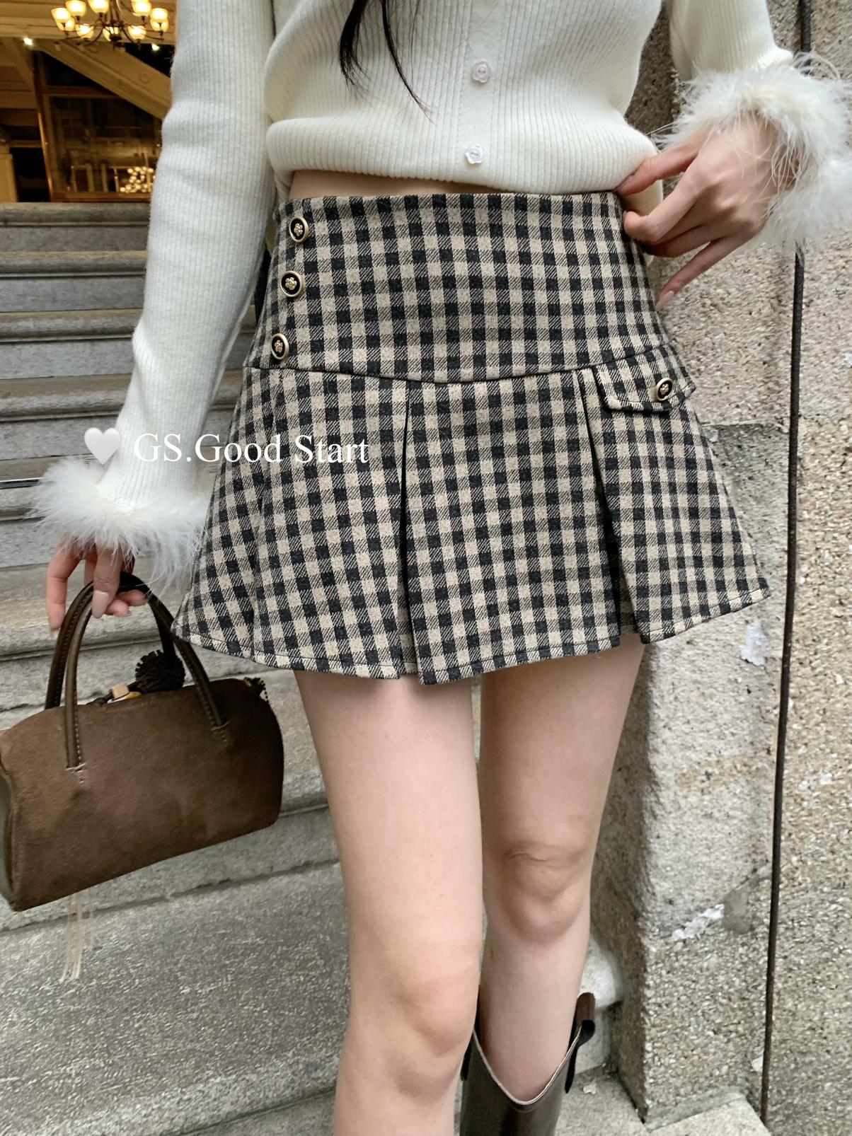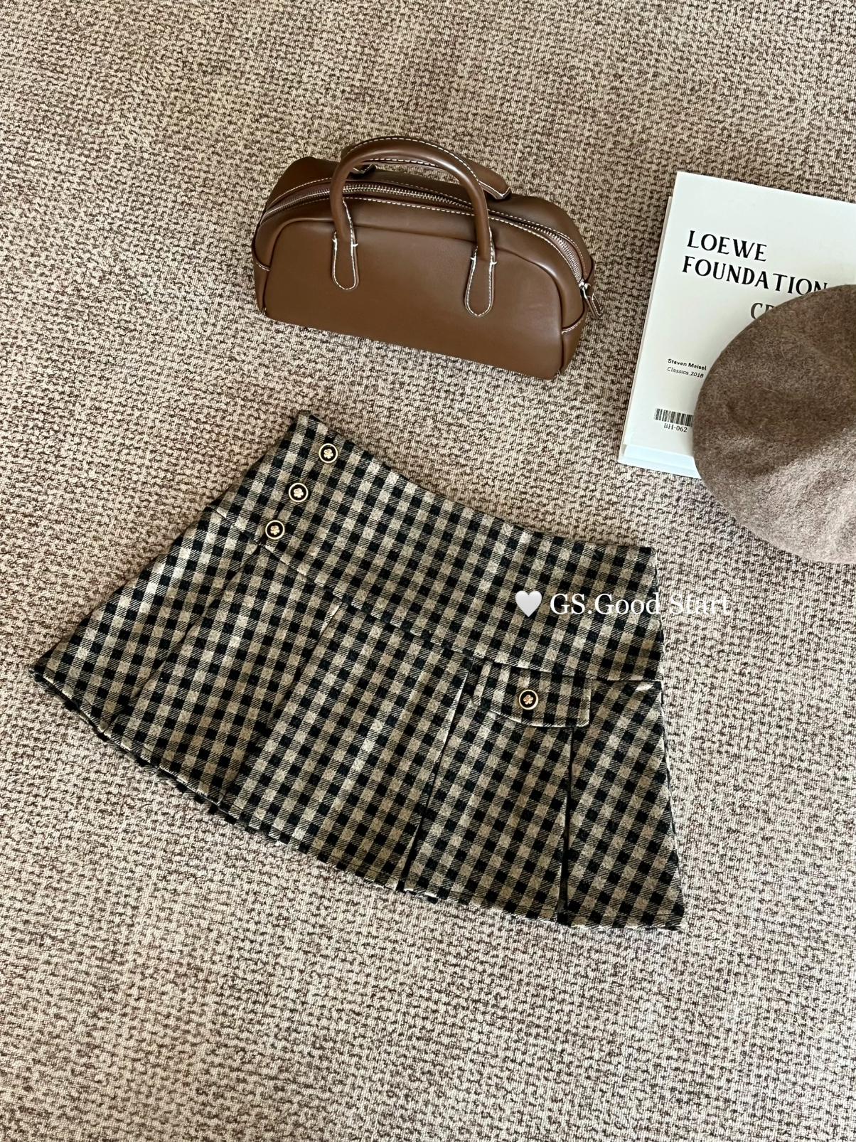 【C7737】復古矜貴~小香風必入單品!秋冬氣質vtg經典格紋顯瘦百褶半身裙