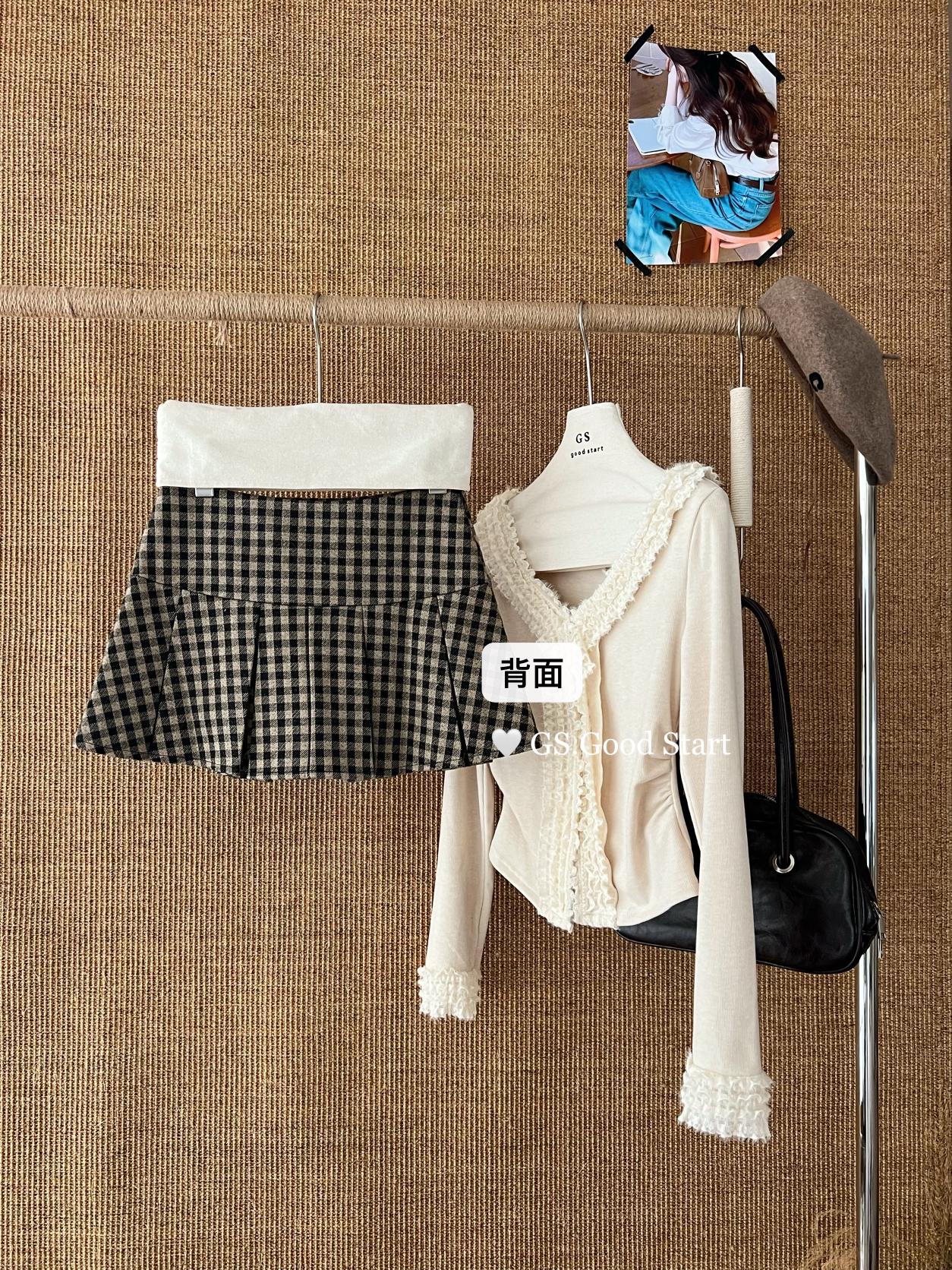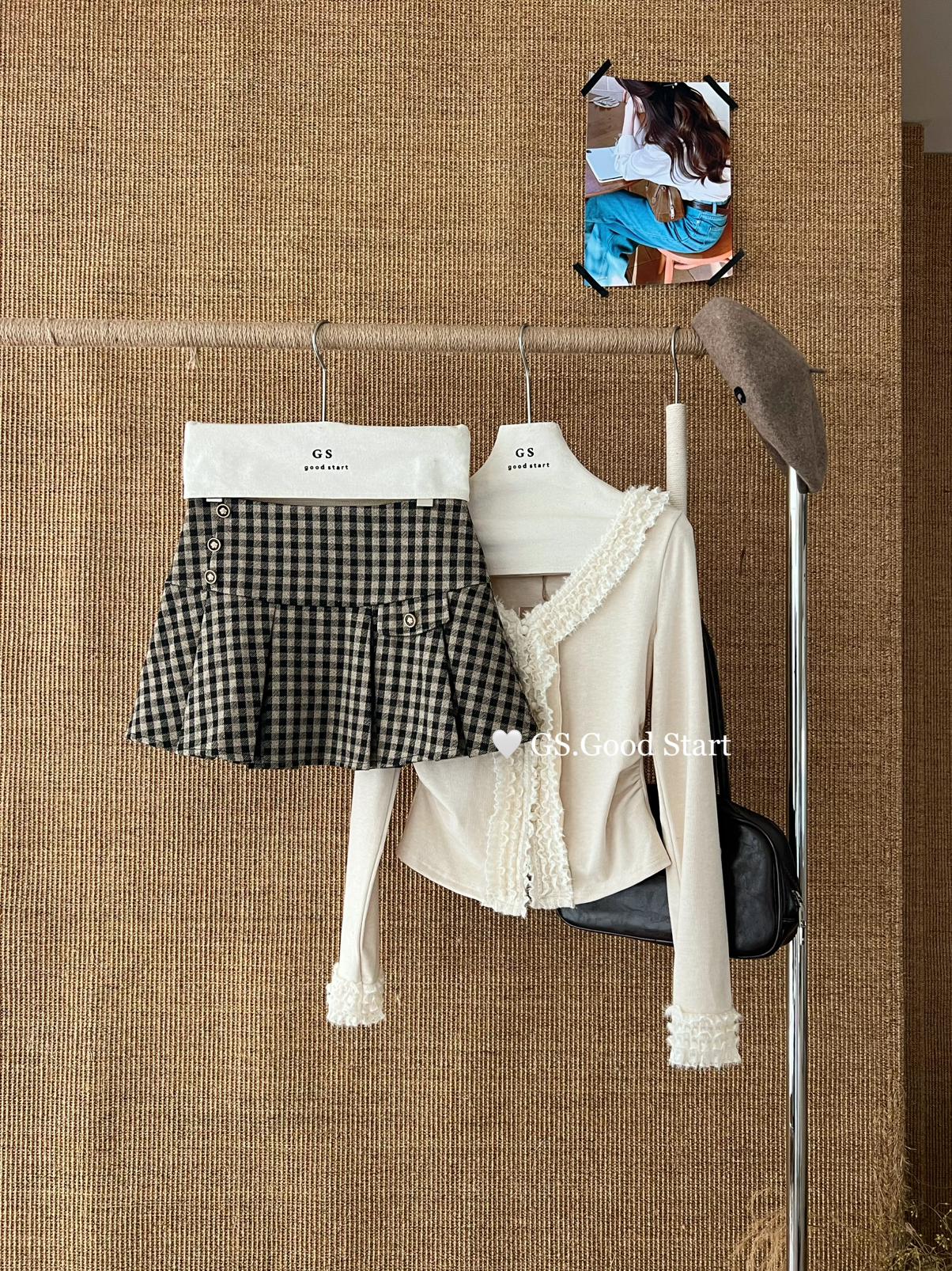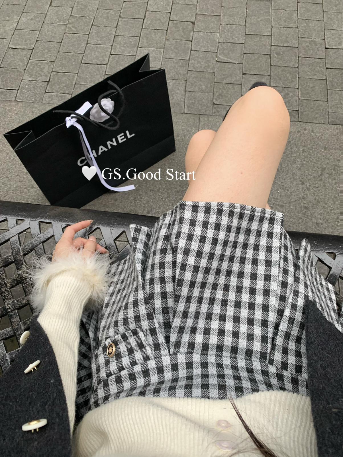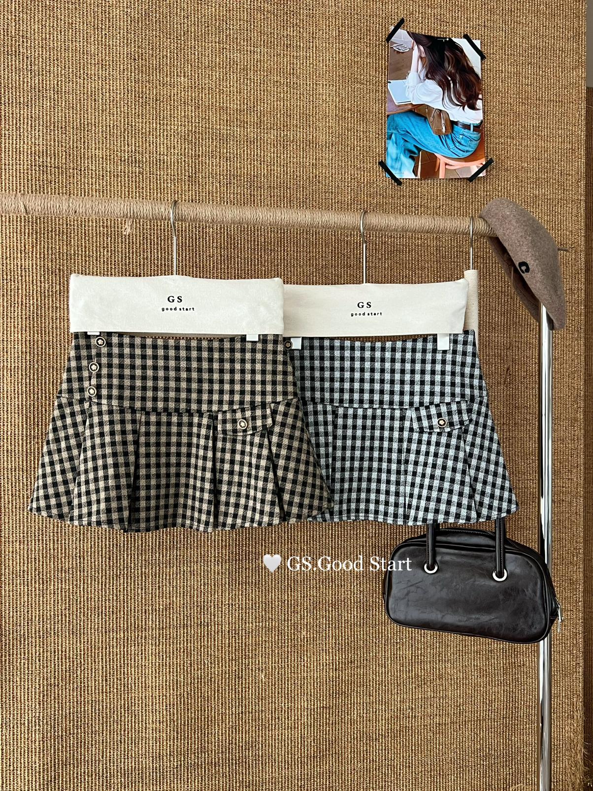 【C7737】復古矜貴~小香風必入單品!秋冬氣質vtg經典格紋顯瘦百褶半身裙