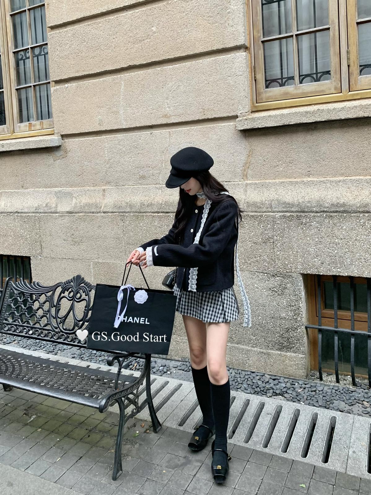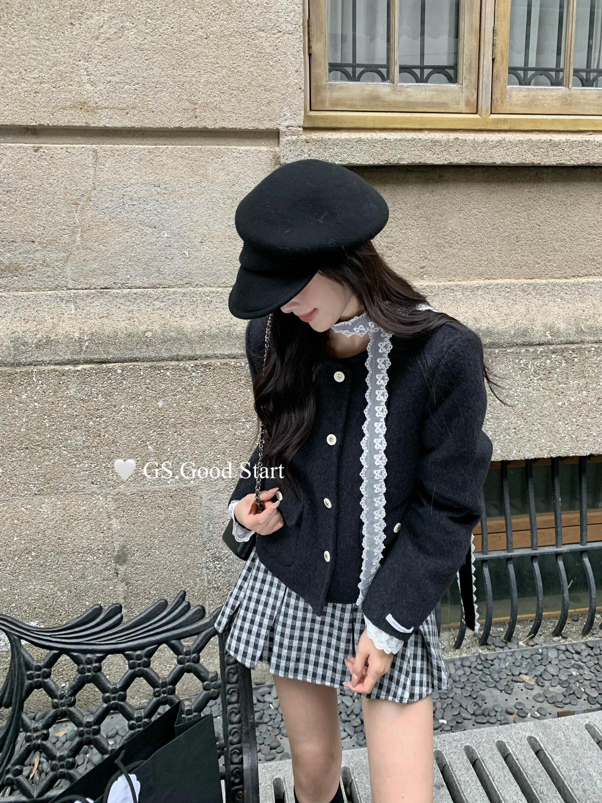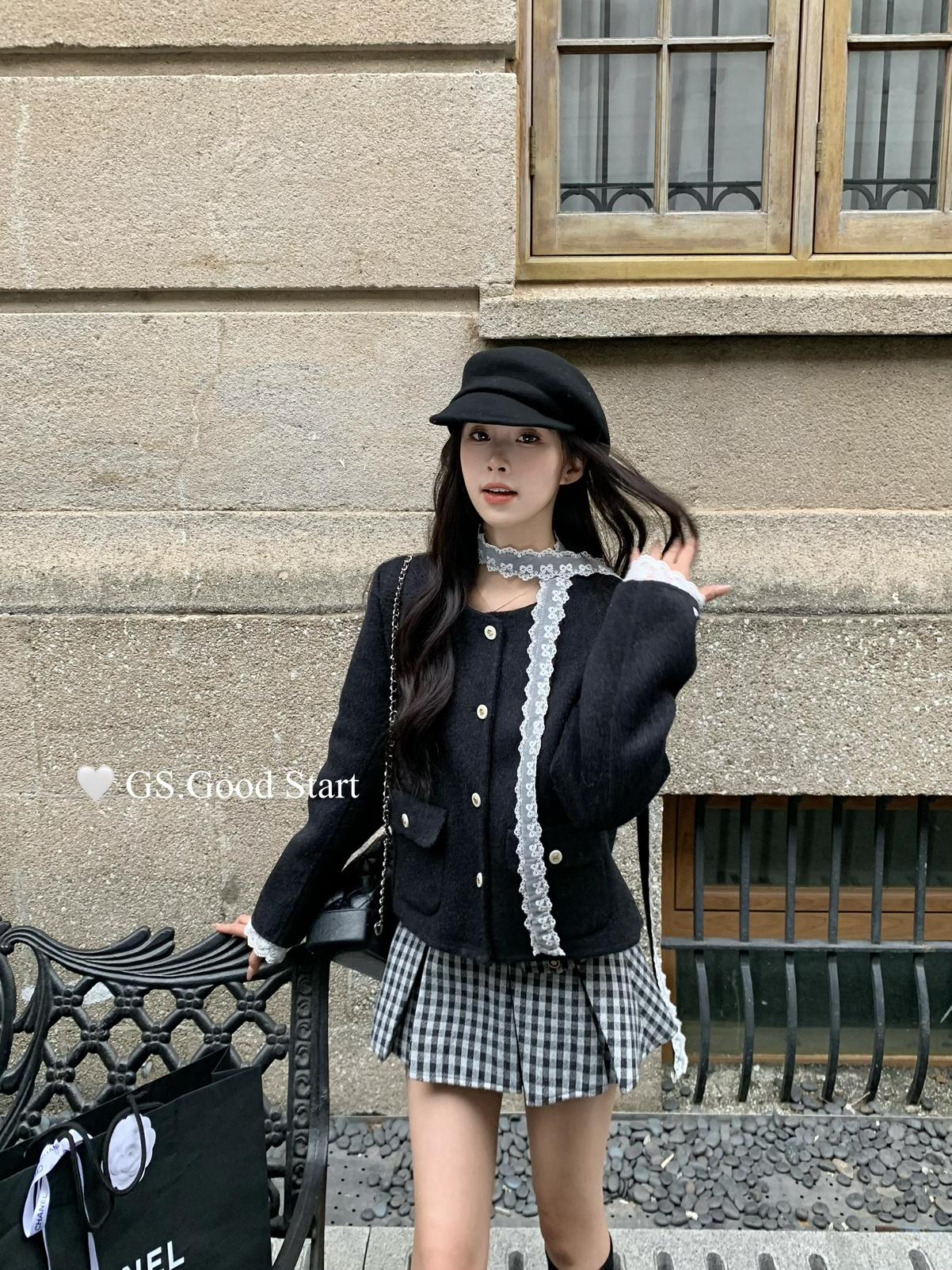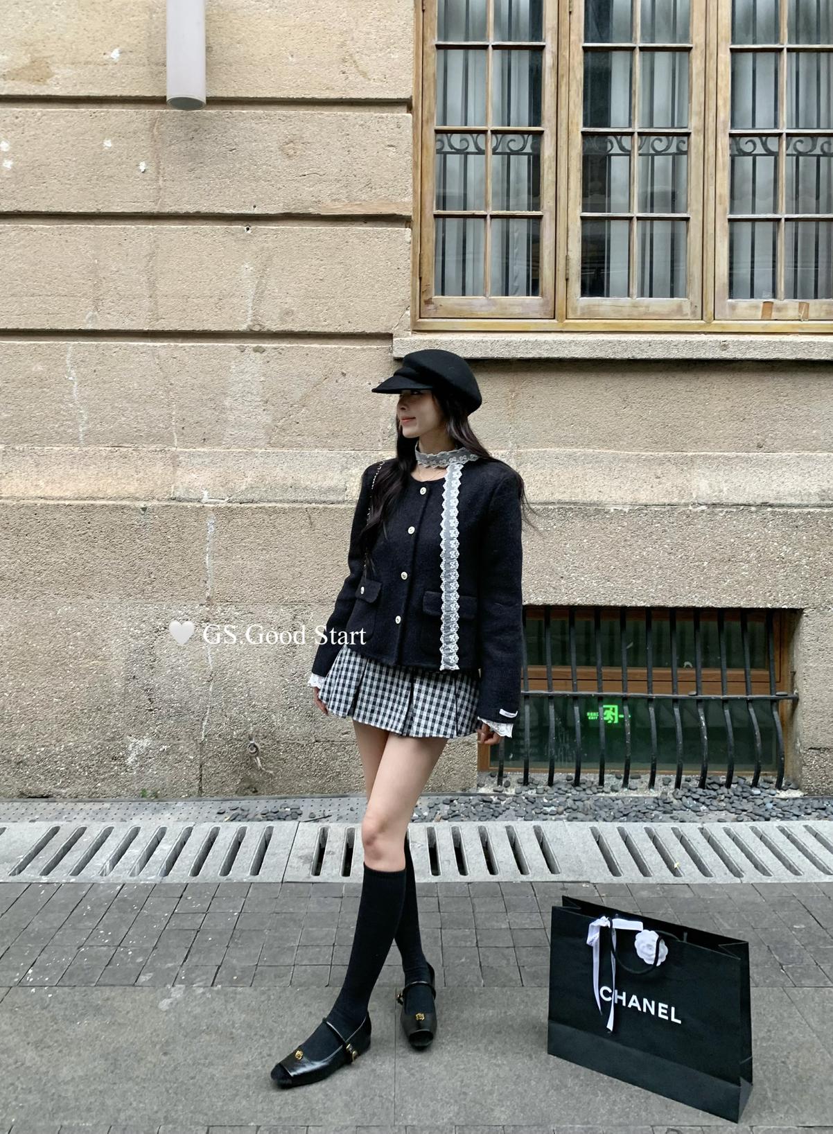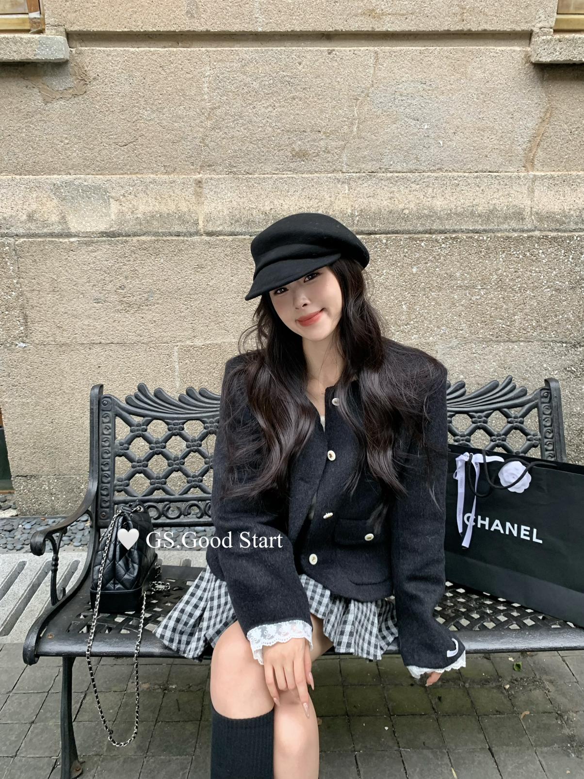 【C7737】復古矜貴~小香風必入單品!秋冬氣質vtg經典格紋顯瘦百褶半身裙