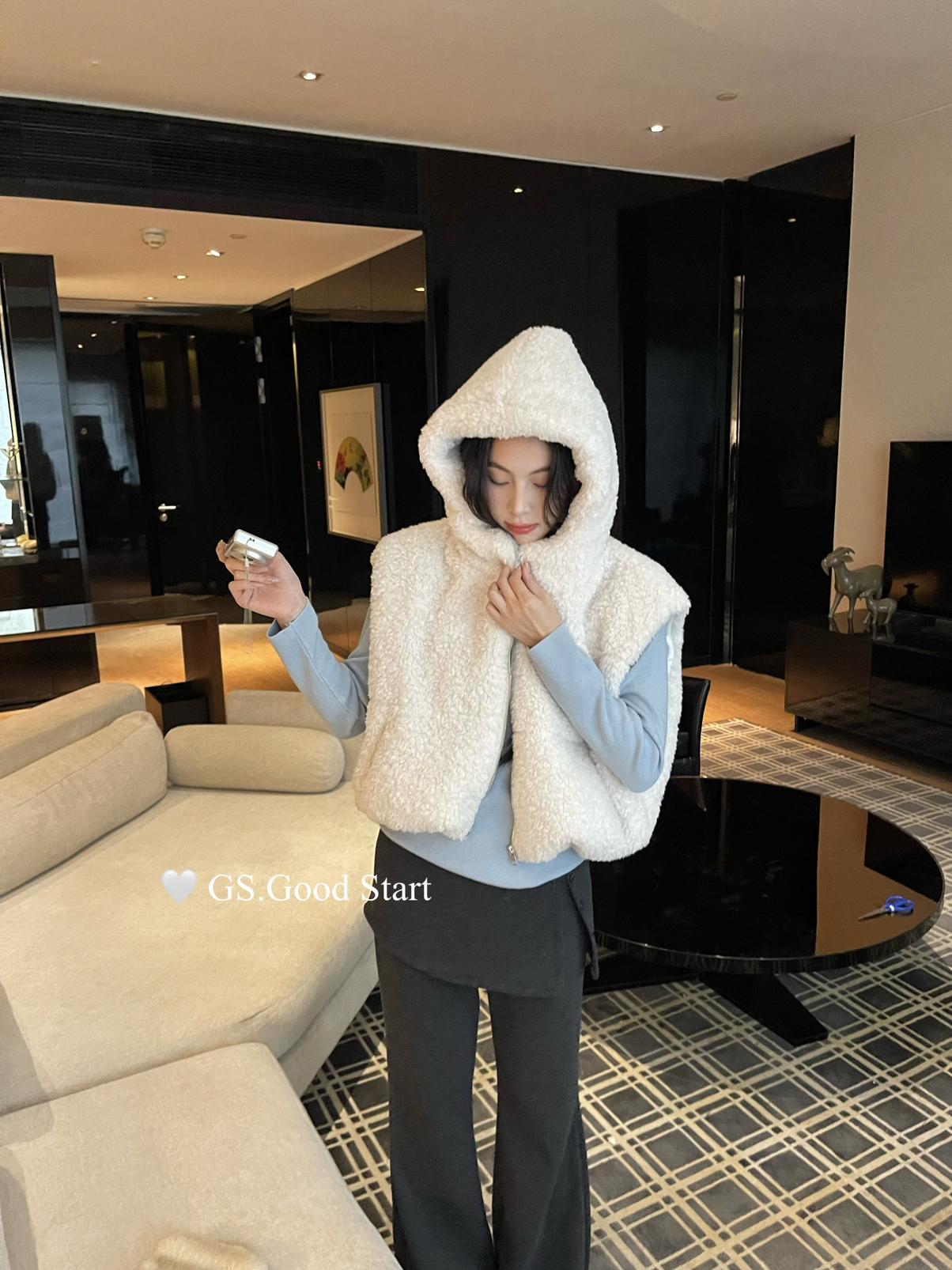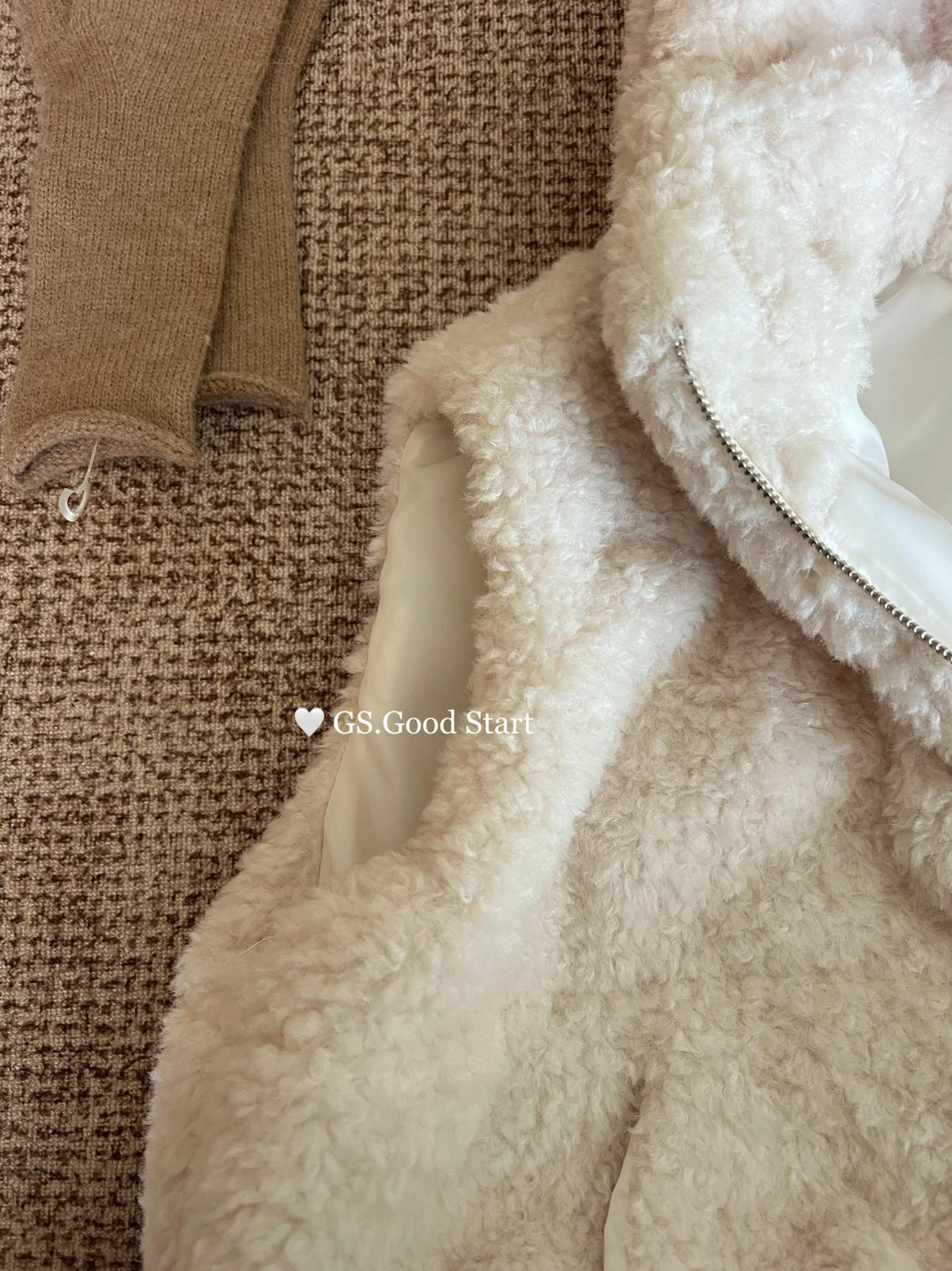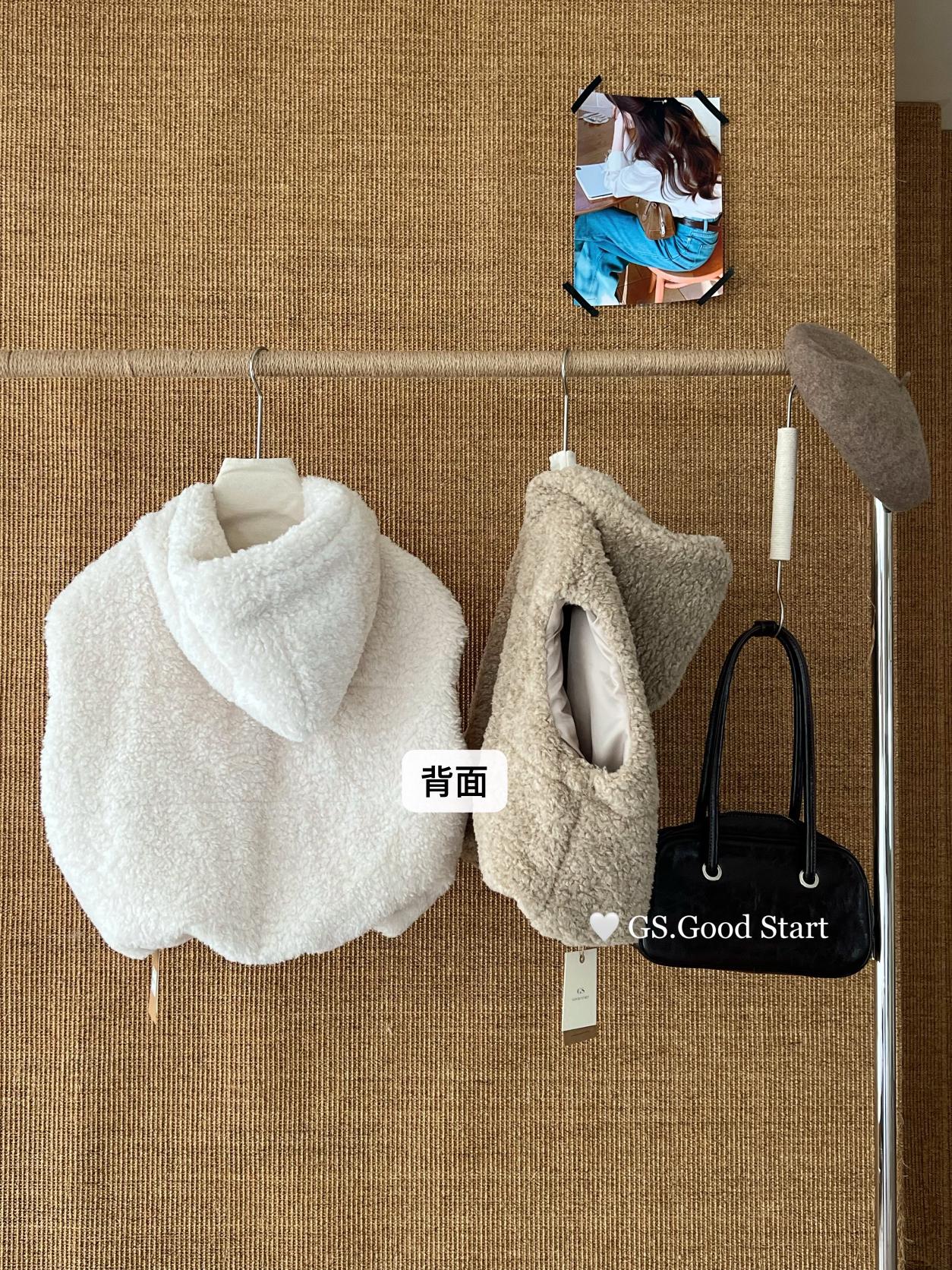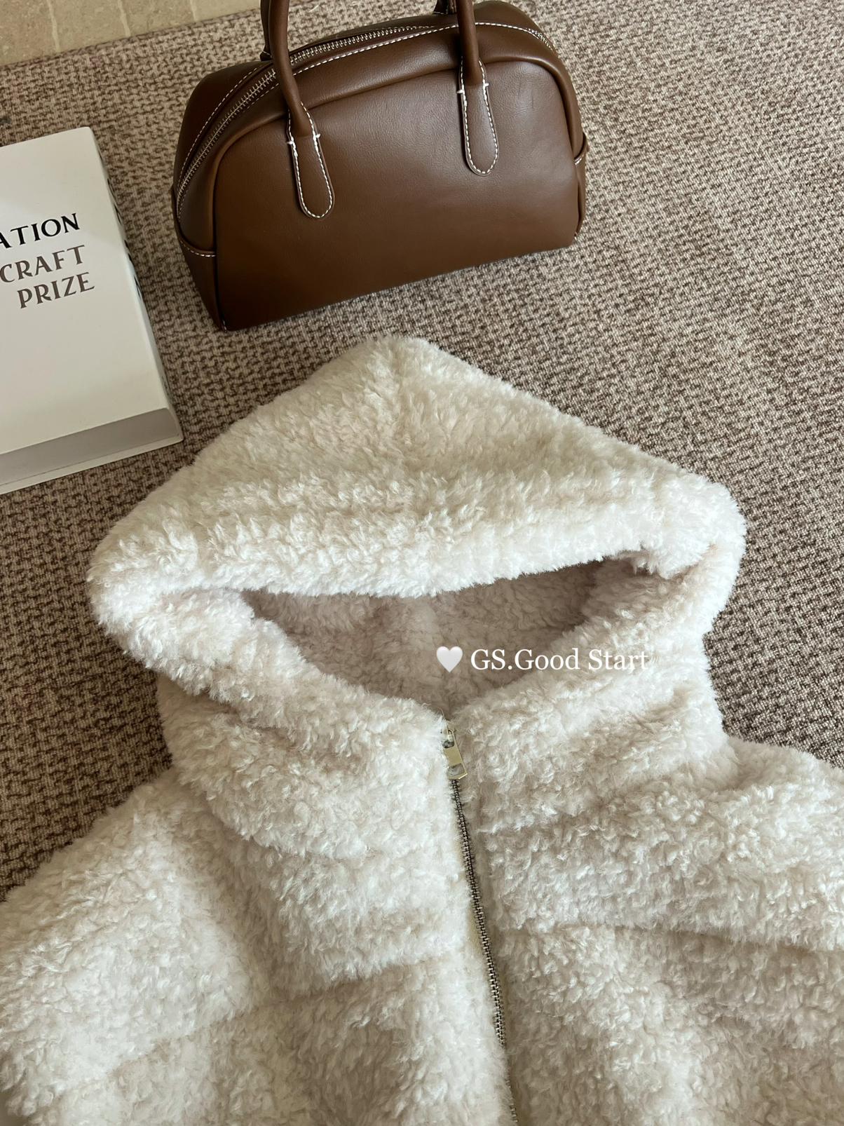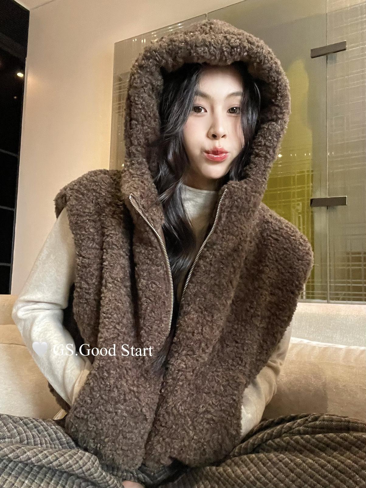 【C7738】反應超好!抗拒不了毛絨絨~太萌了!秋冬甜美百搭羊羔毛連帽馬甲短外套