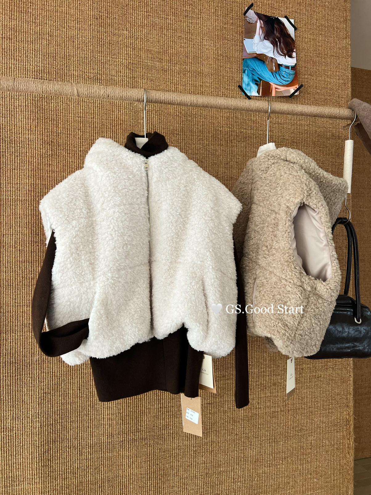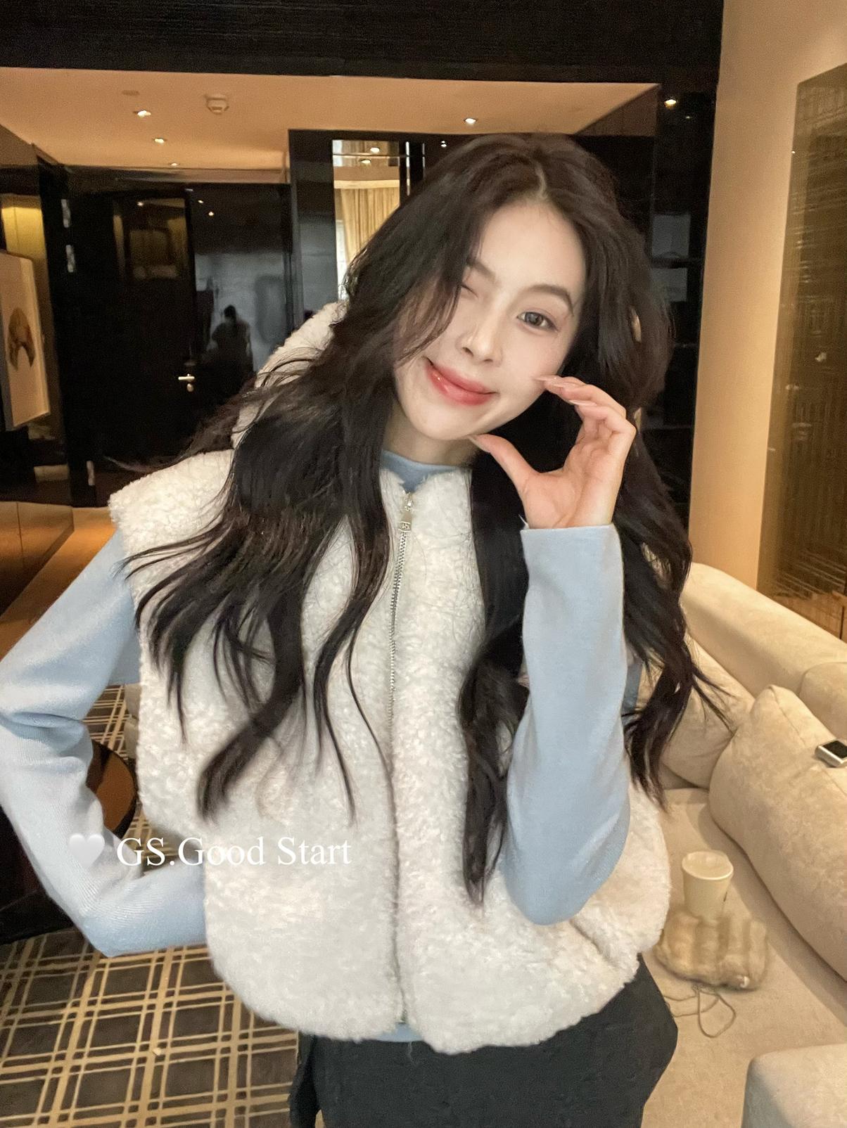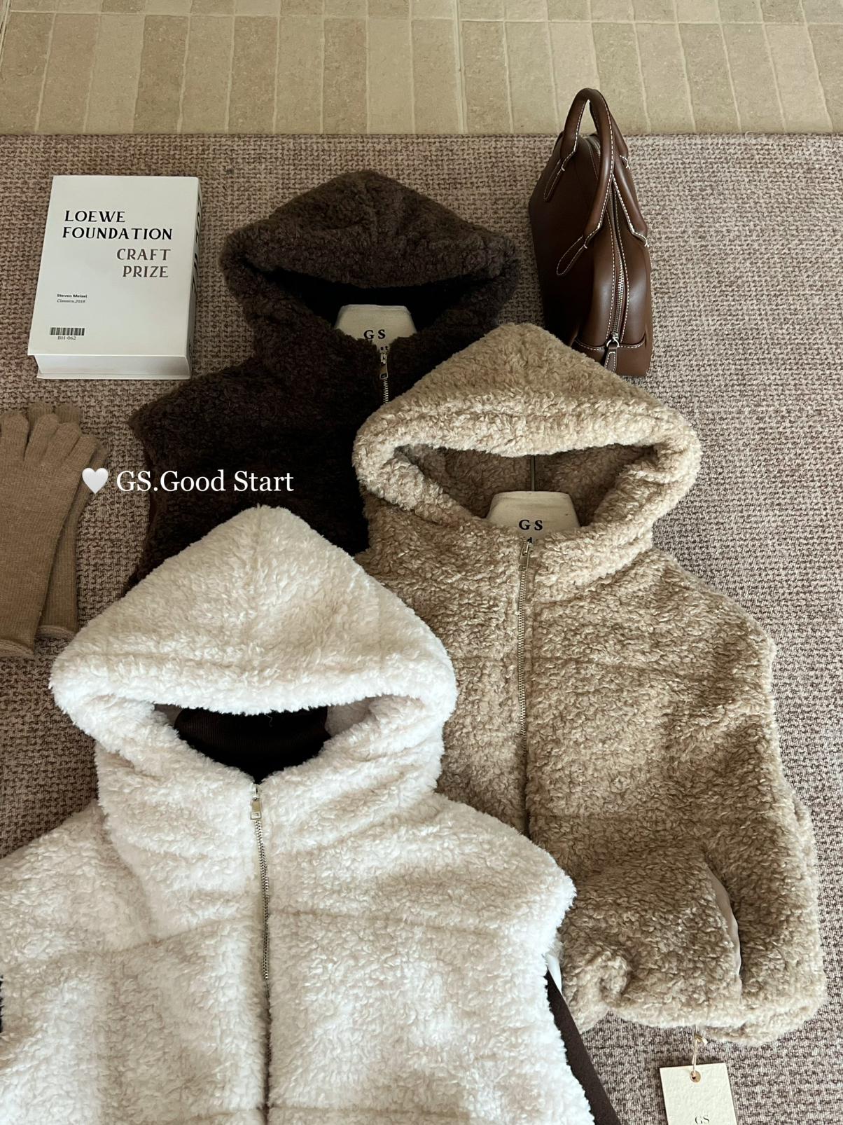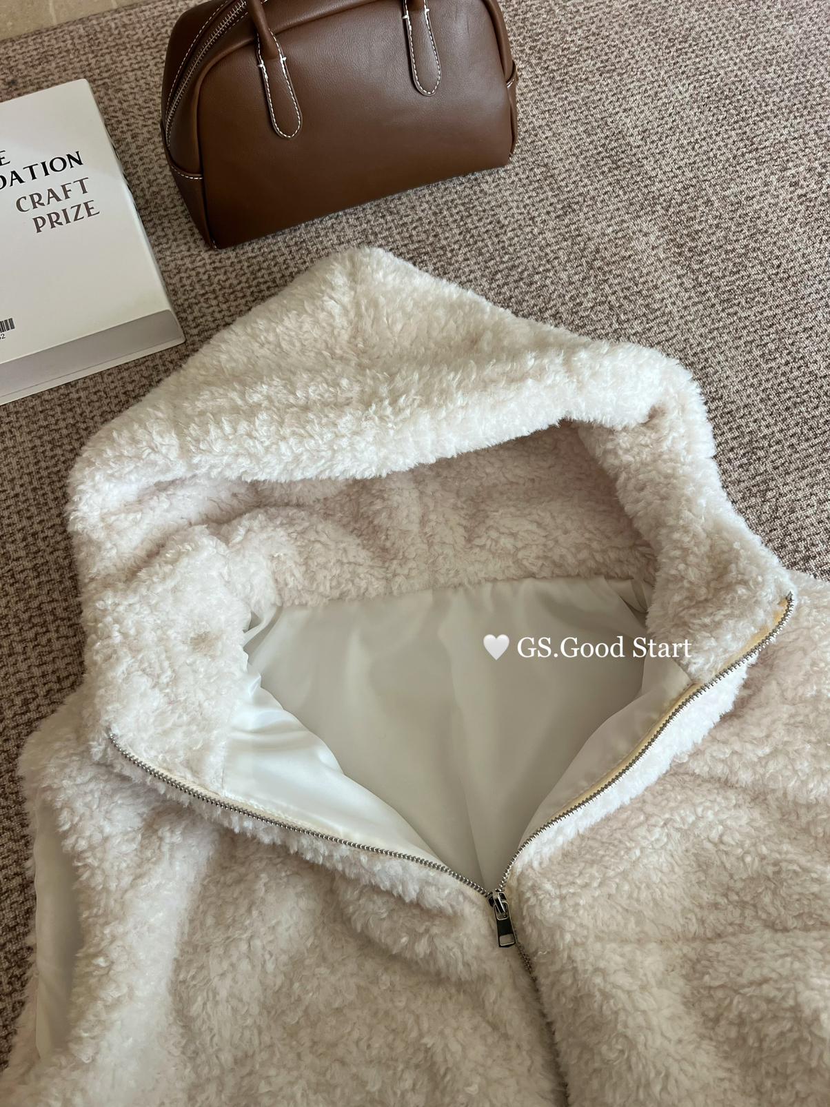 【C7738】反應超好!抗拒不了毛絨絨~太萌了!秋冬甜美百搭羊羔毛連帽馬甲短外套