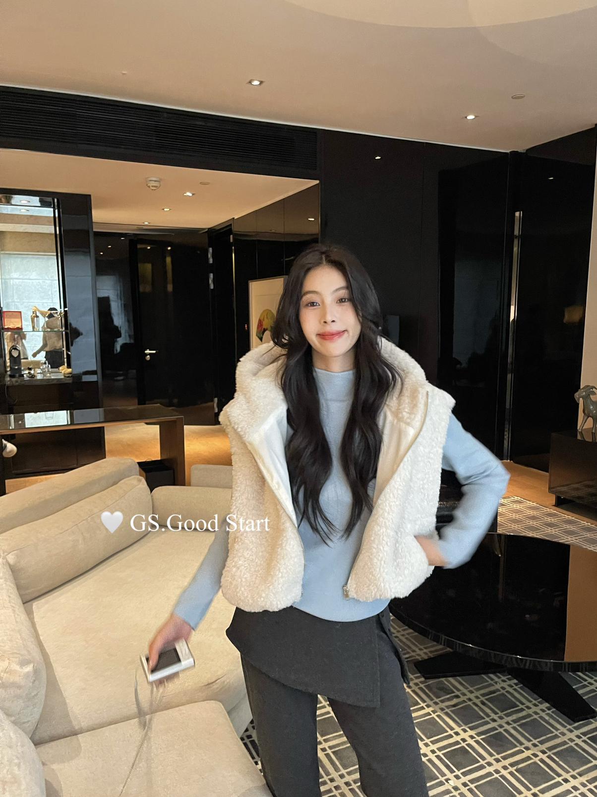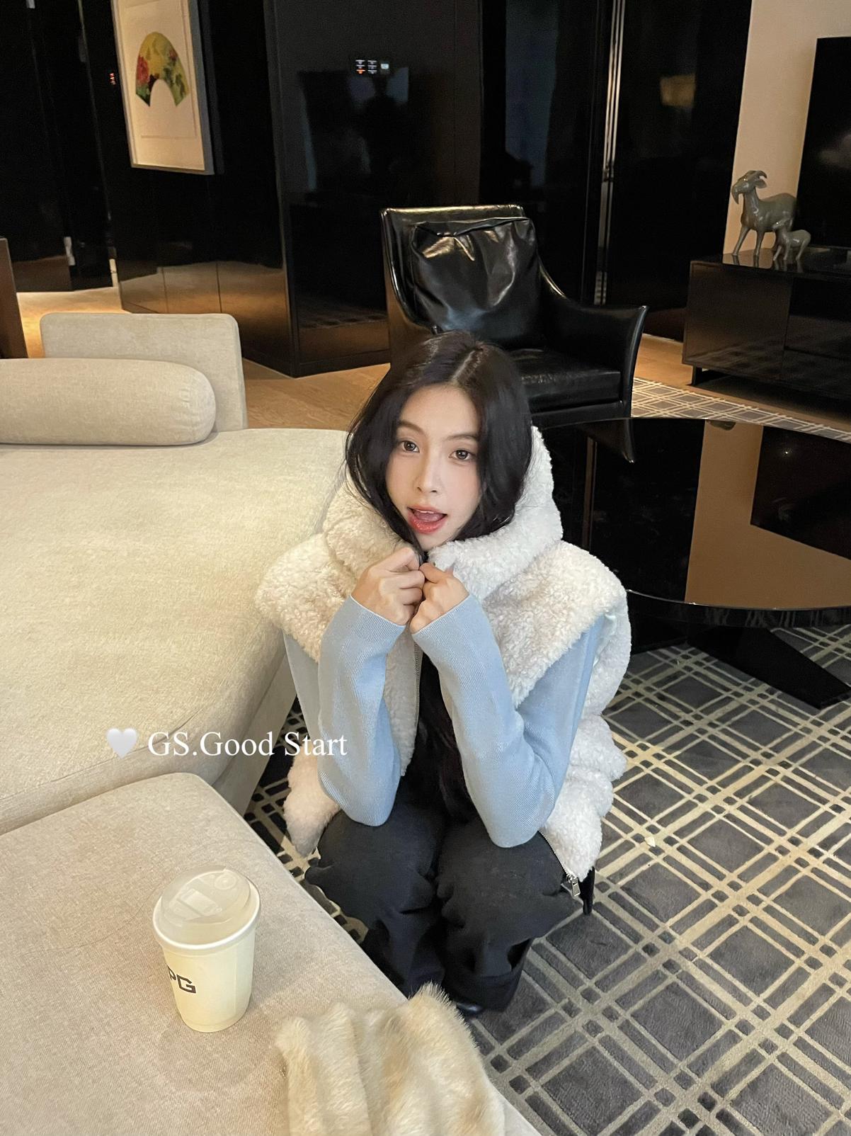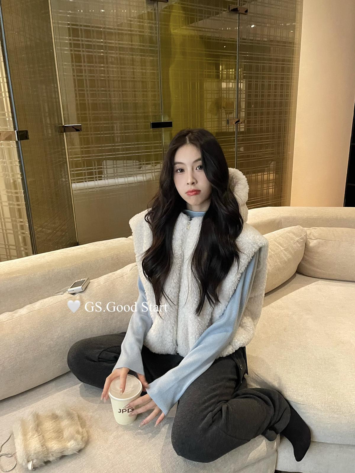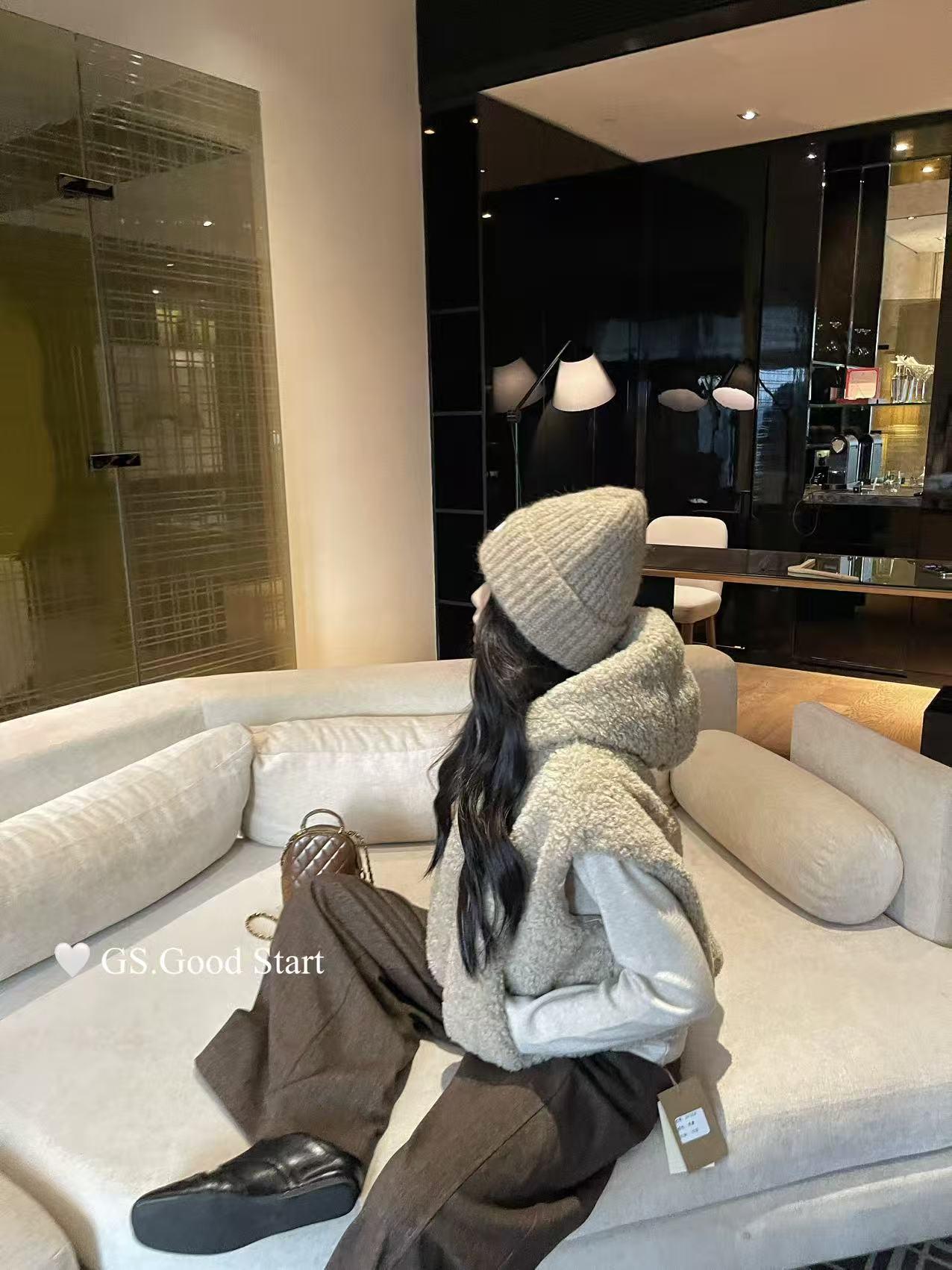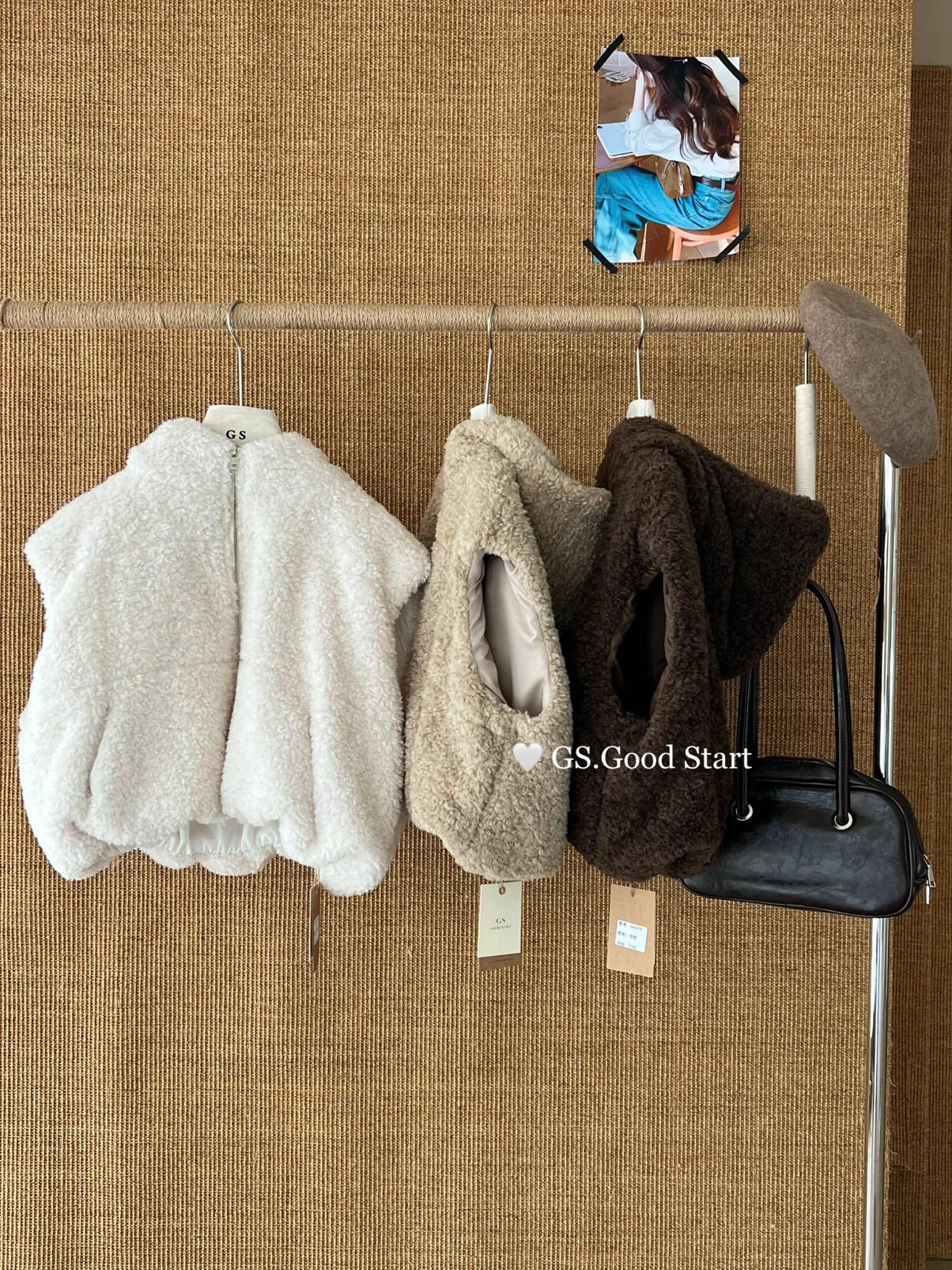 【C7738】反應超好!抗拒不了毛絨絨~太萌了!秋冬甜美百搭羊羔毛連帽馬甲短外套