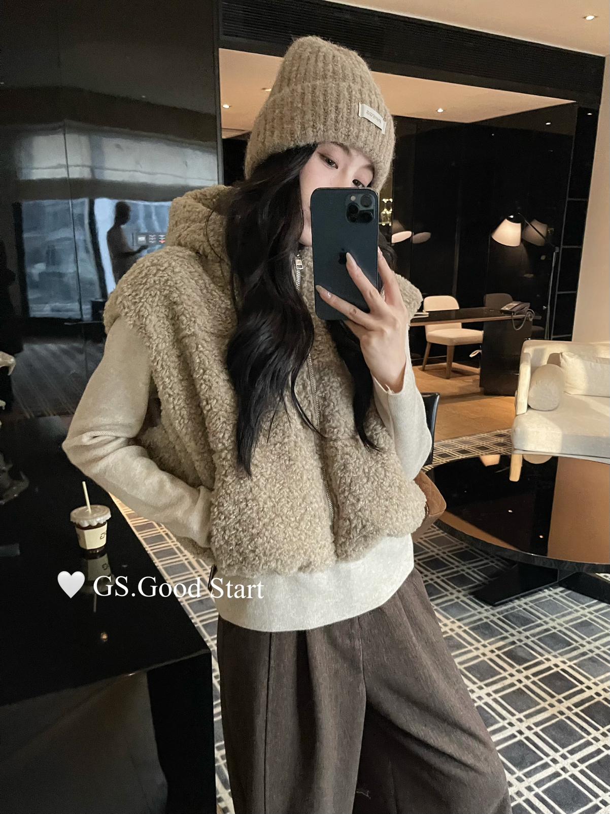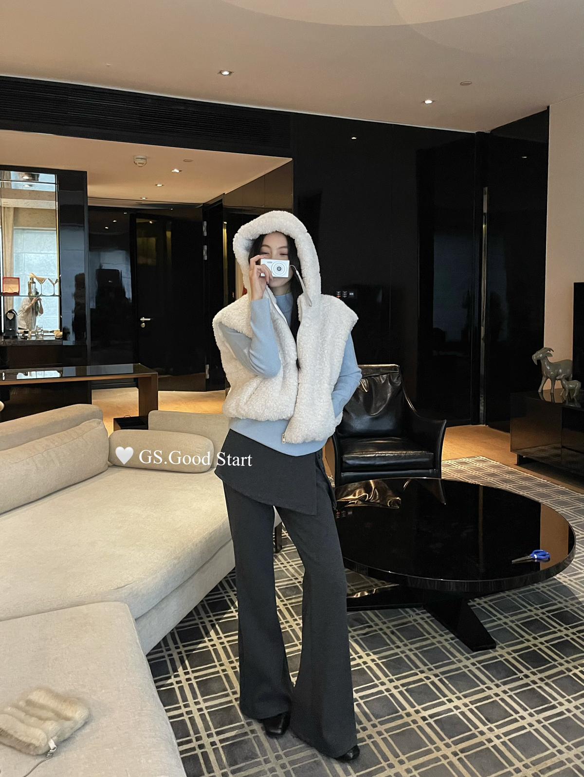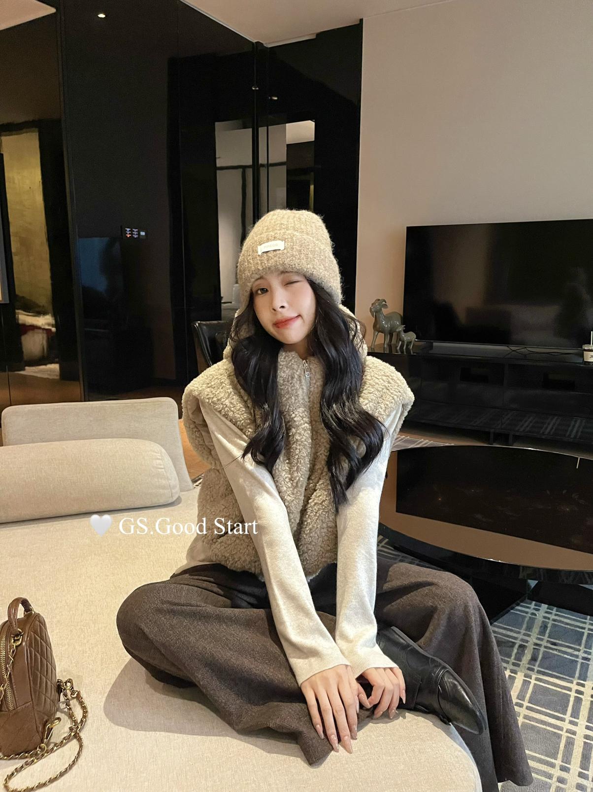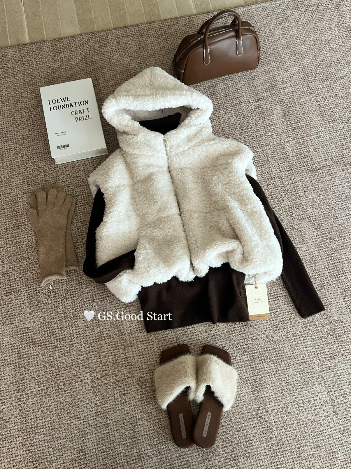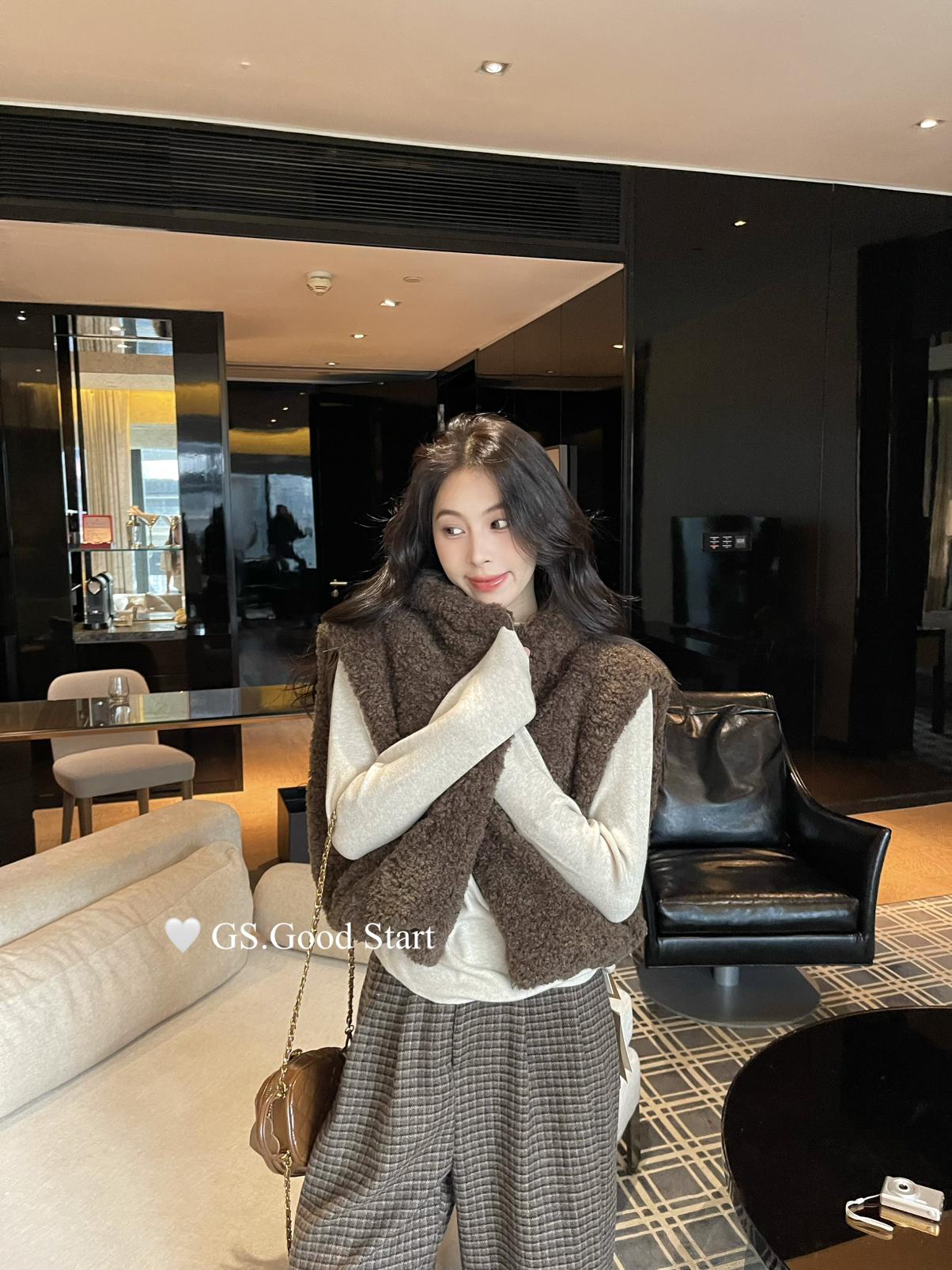 【C7738】反應超好!抗拒不了毛絨絨~太萌了!秋冬甜美百搭羊羔毛連帽馬甲短外套