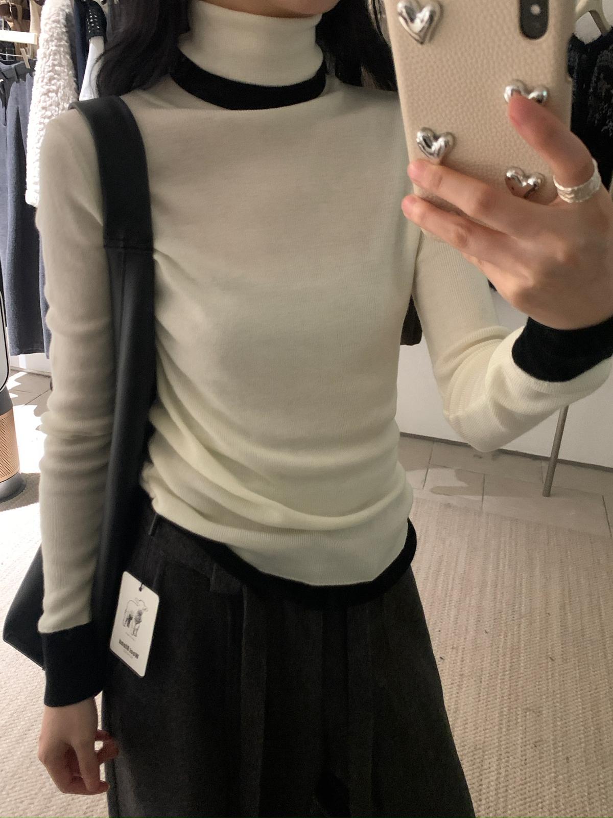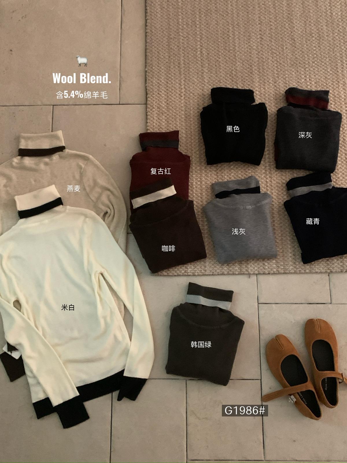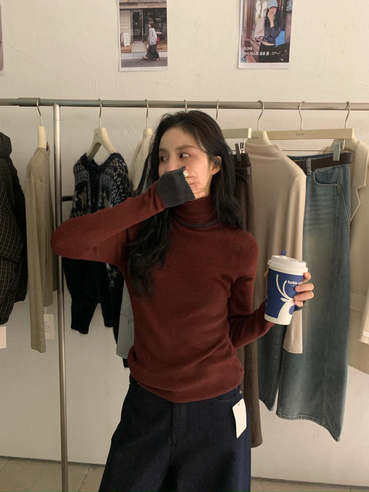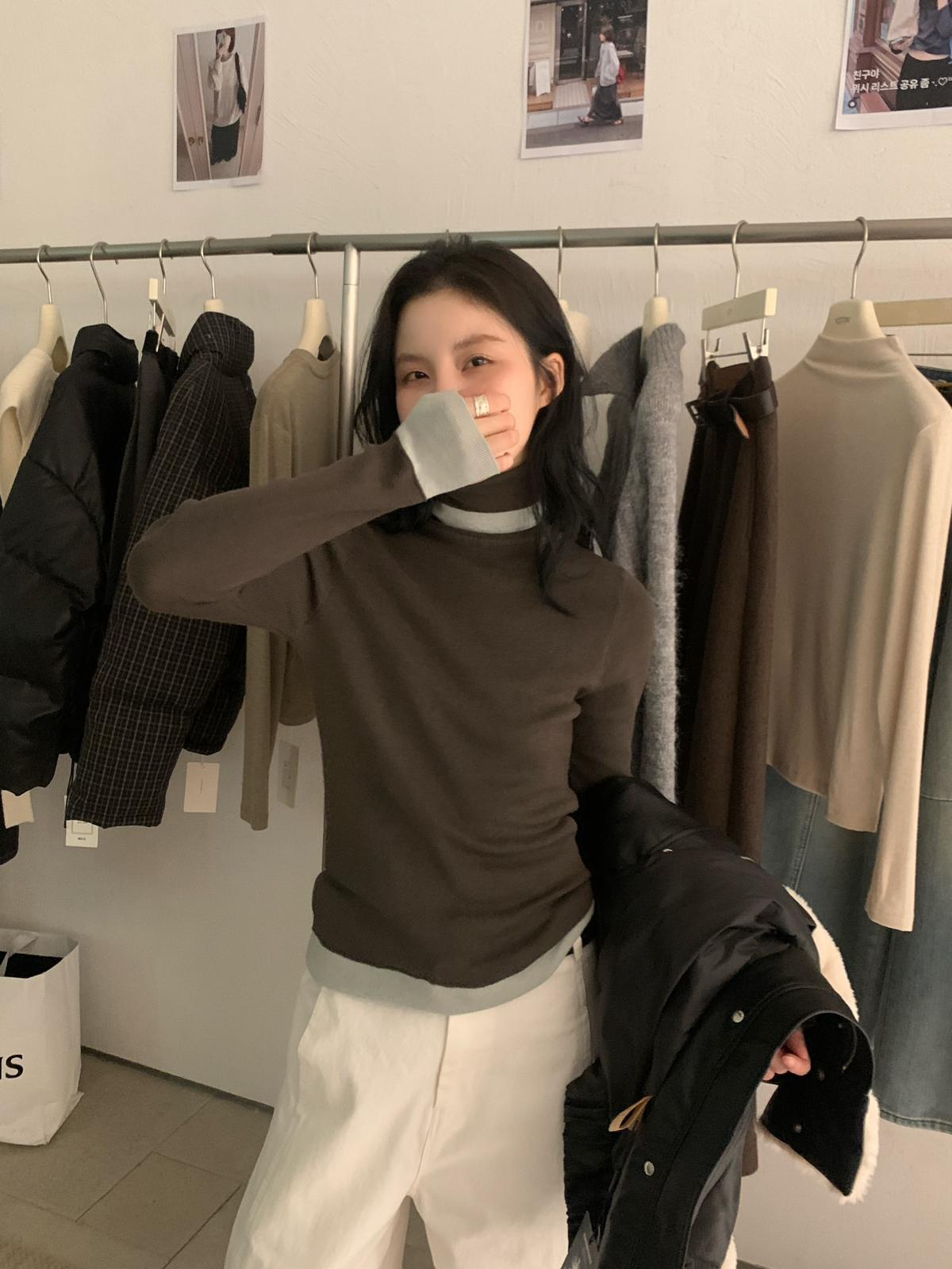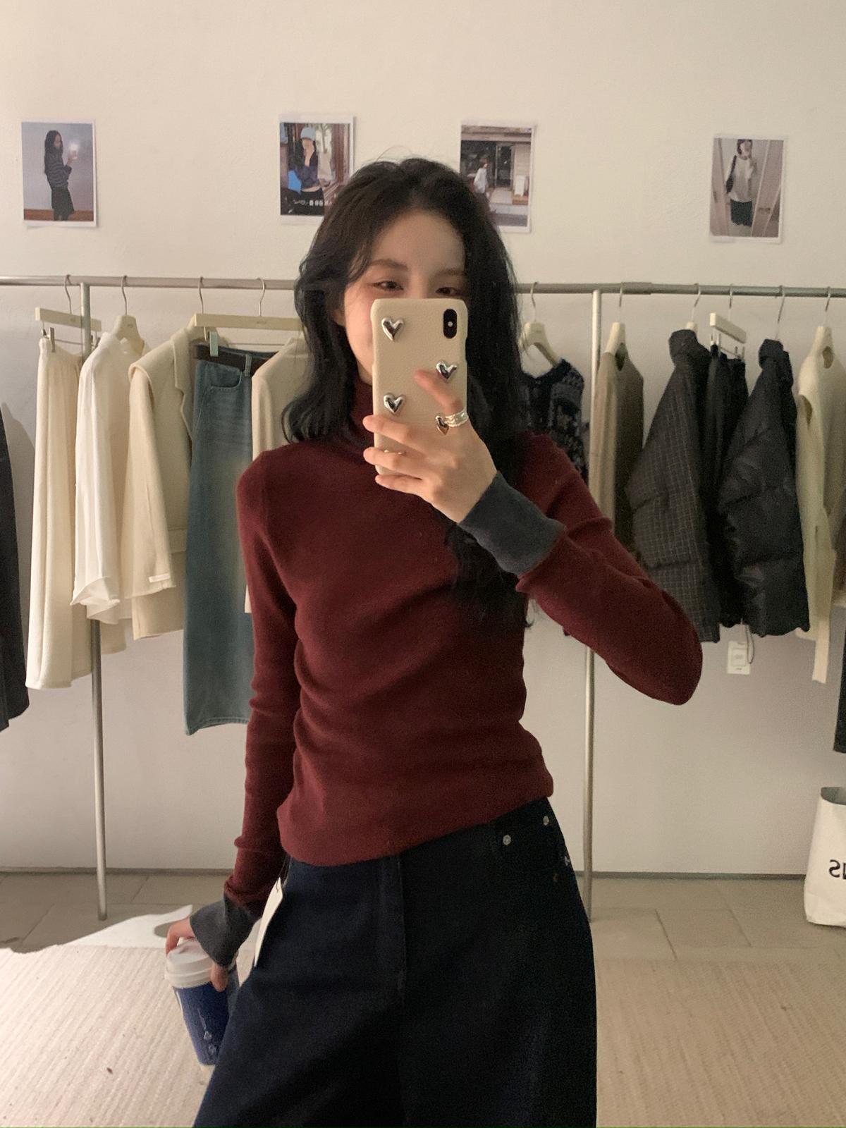 【C7740】韓系拼色堆堆領親膚羊毛混紡打底針織衫(含5.4%綿羊毛)