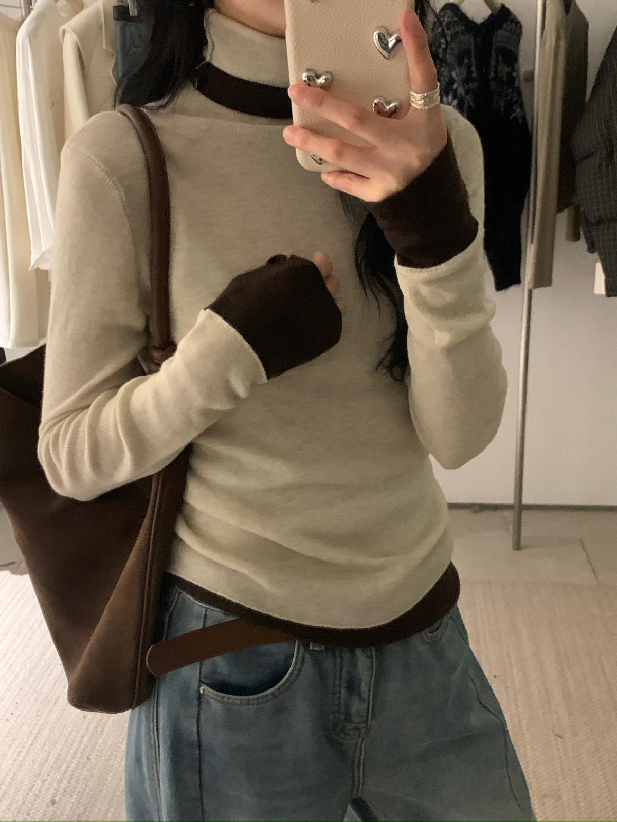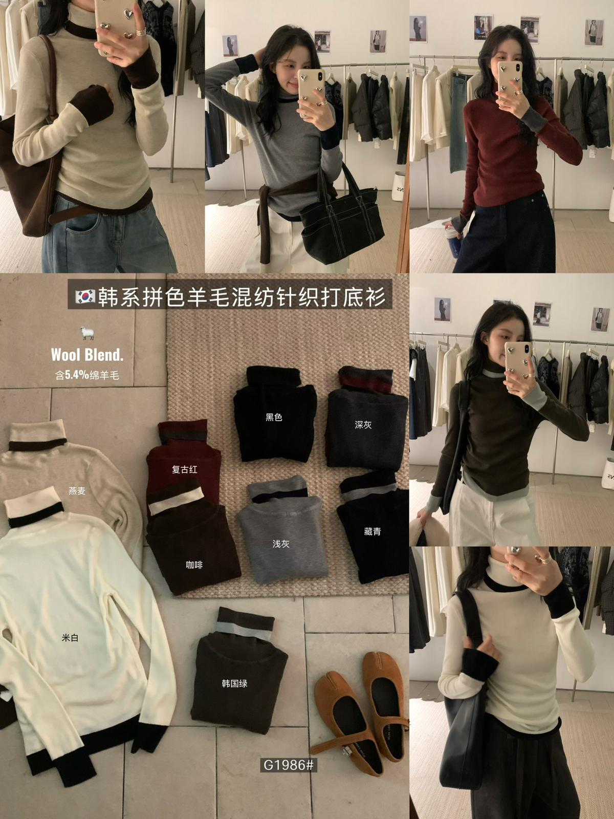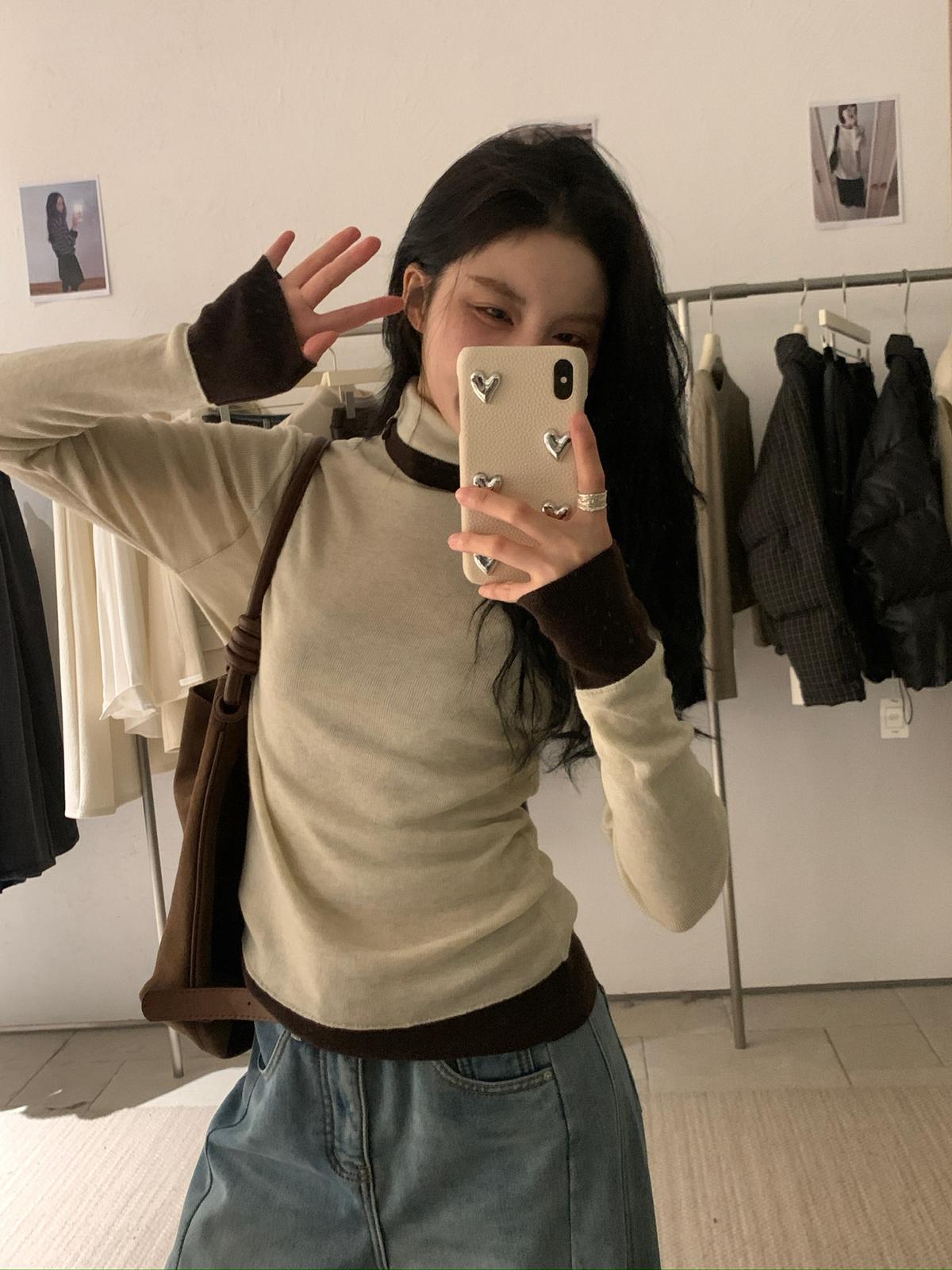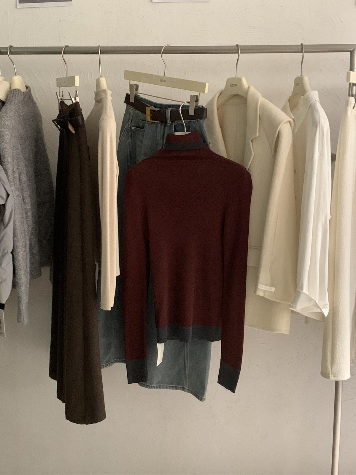 【C7740】韓系拼色堆堆領親膚羊毛混紡打底針織衫(含5.4%綿羊毛)