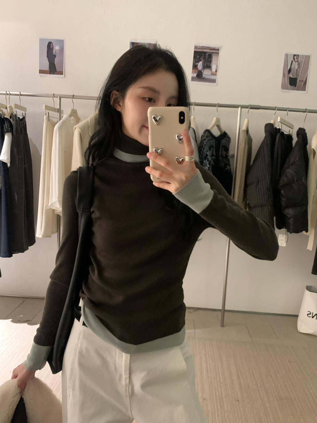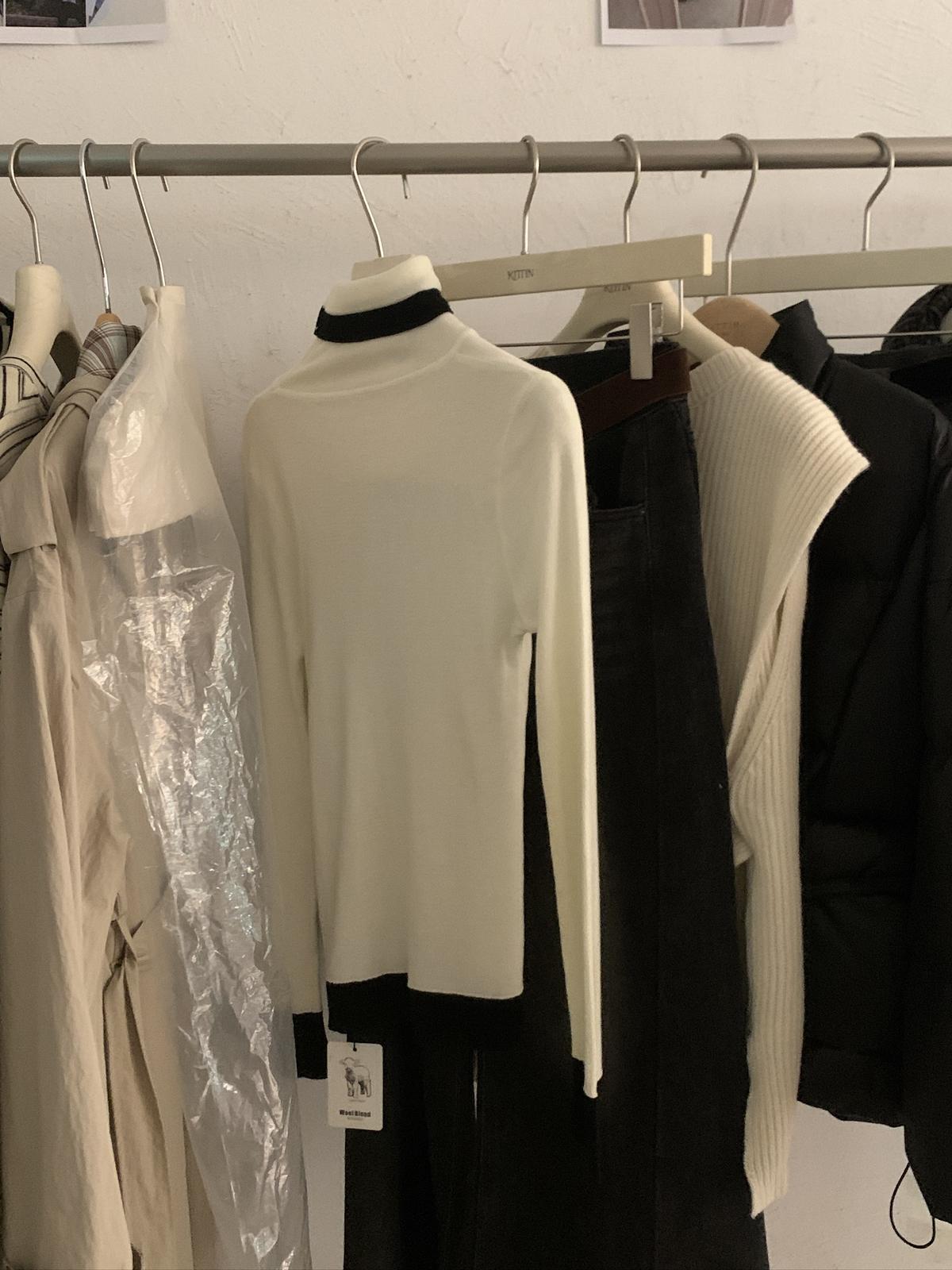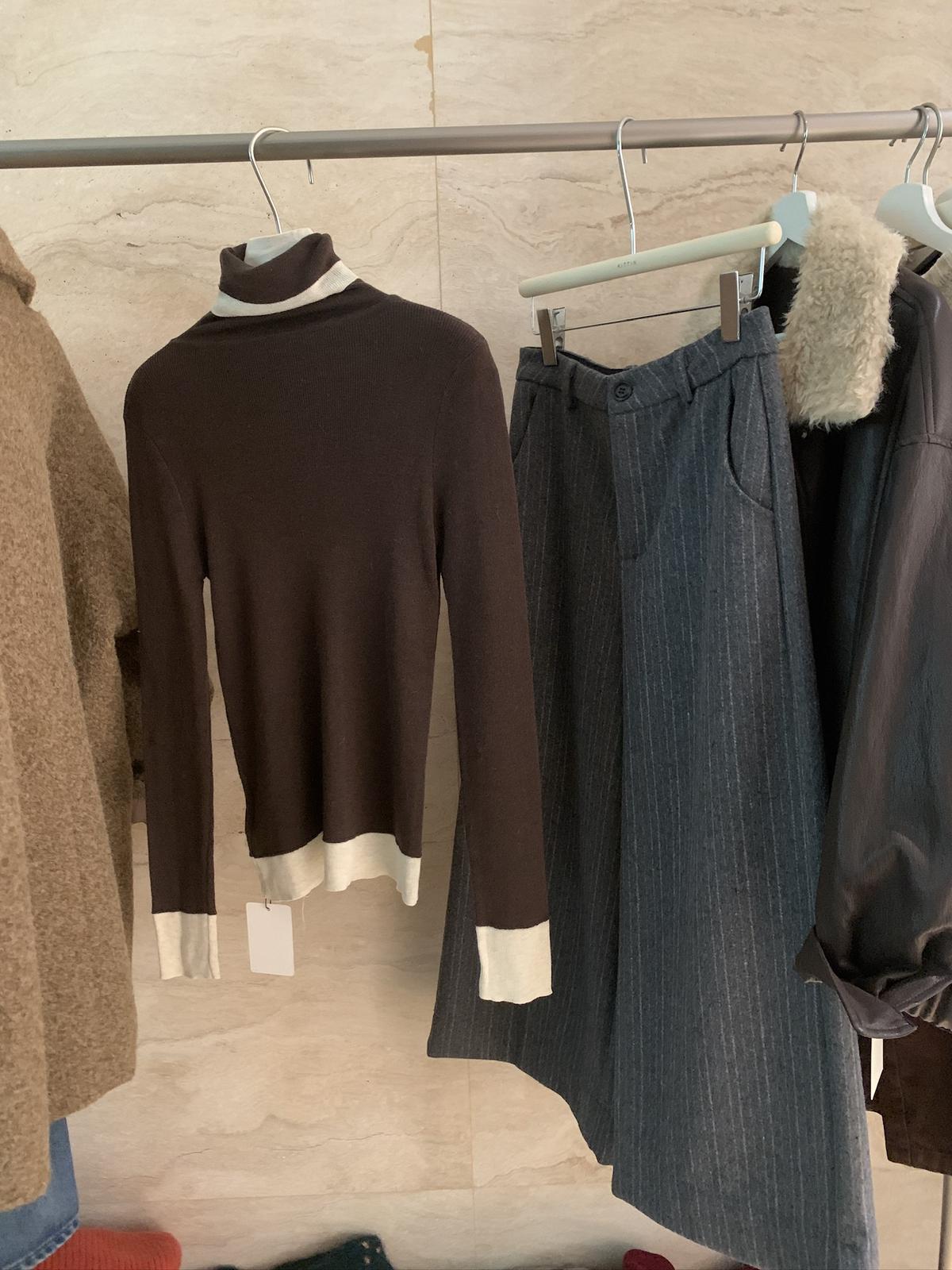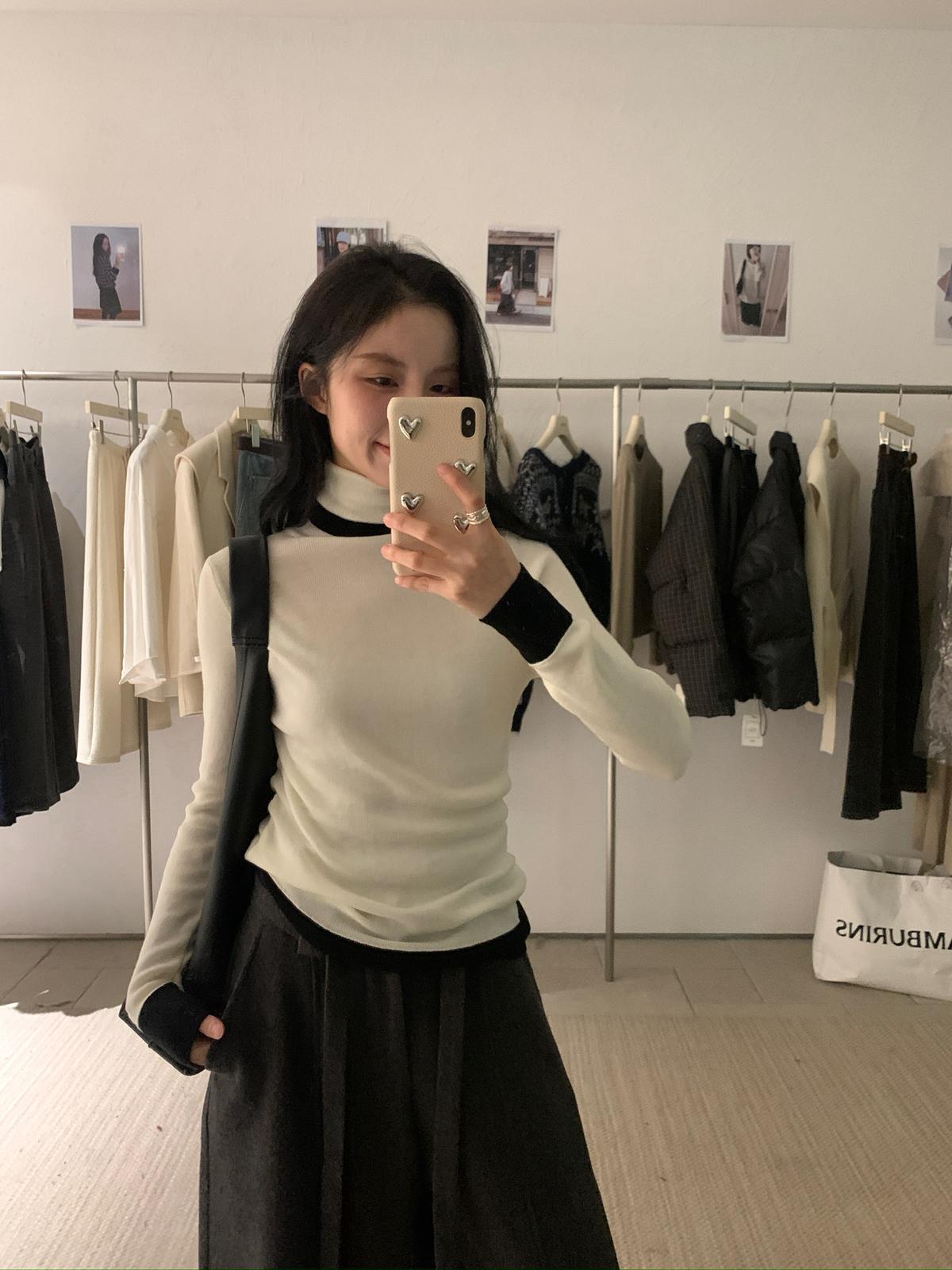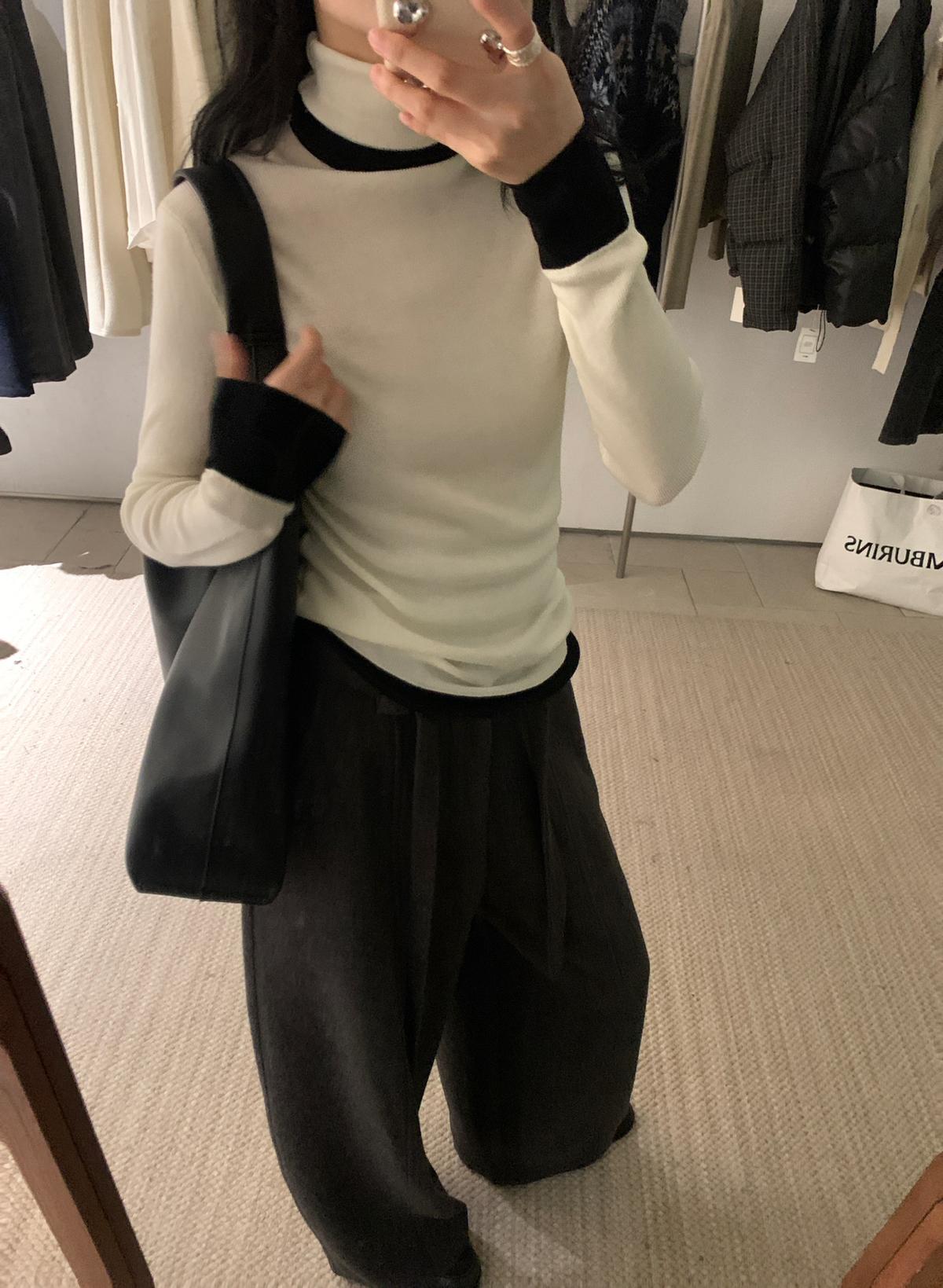 【C7740】韓系拼色堆堆領親膚羊毛混紡打底針織衫(含5.4%綿羊毛)