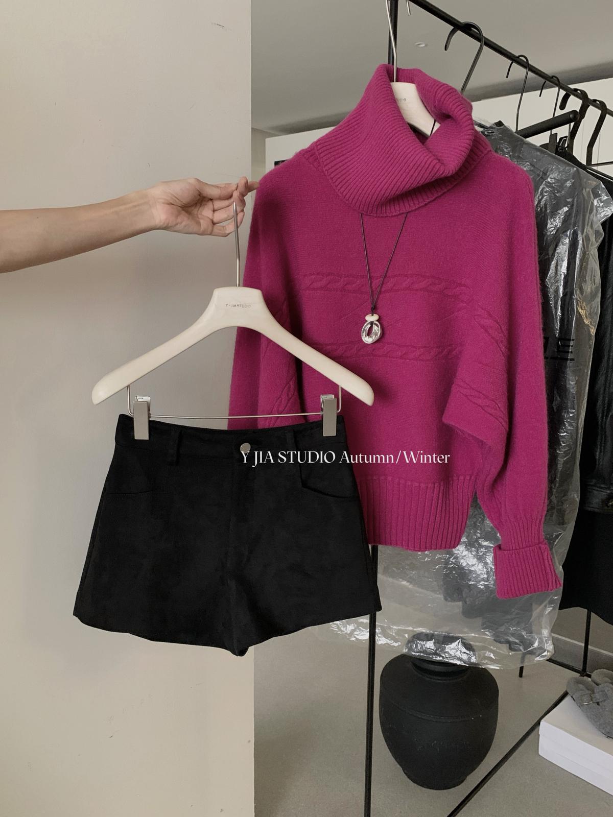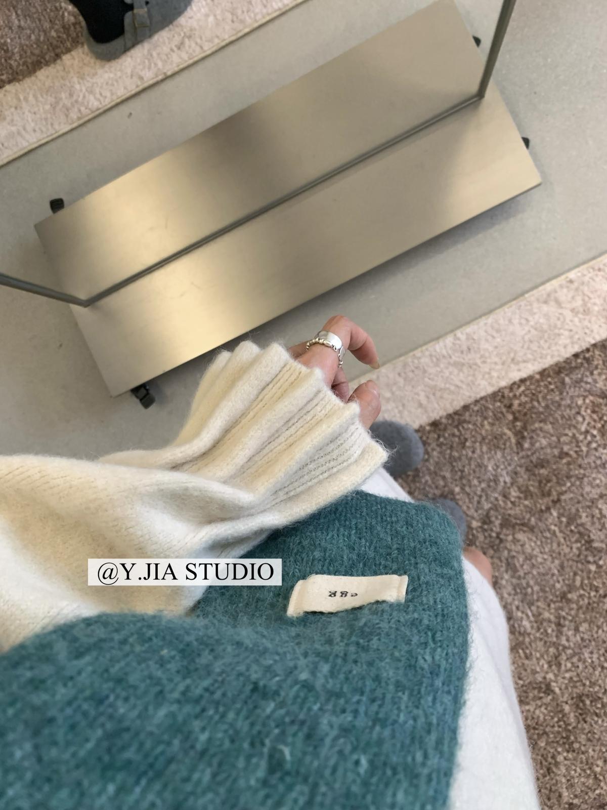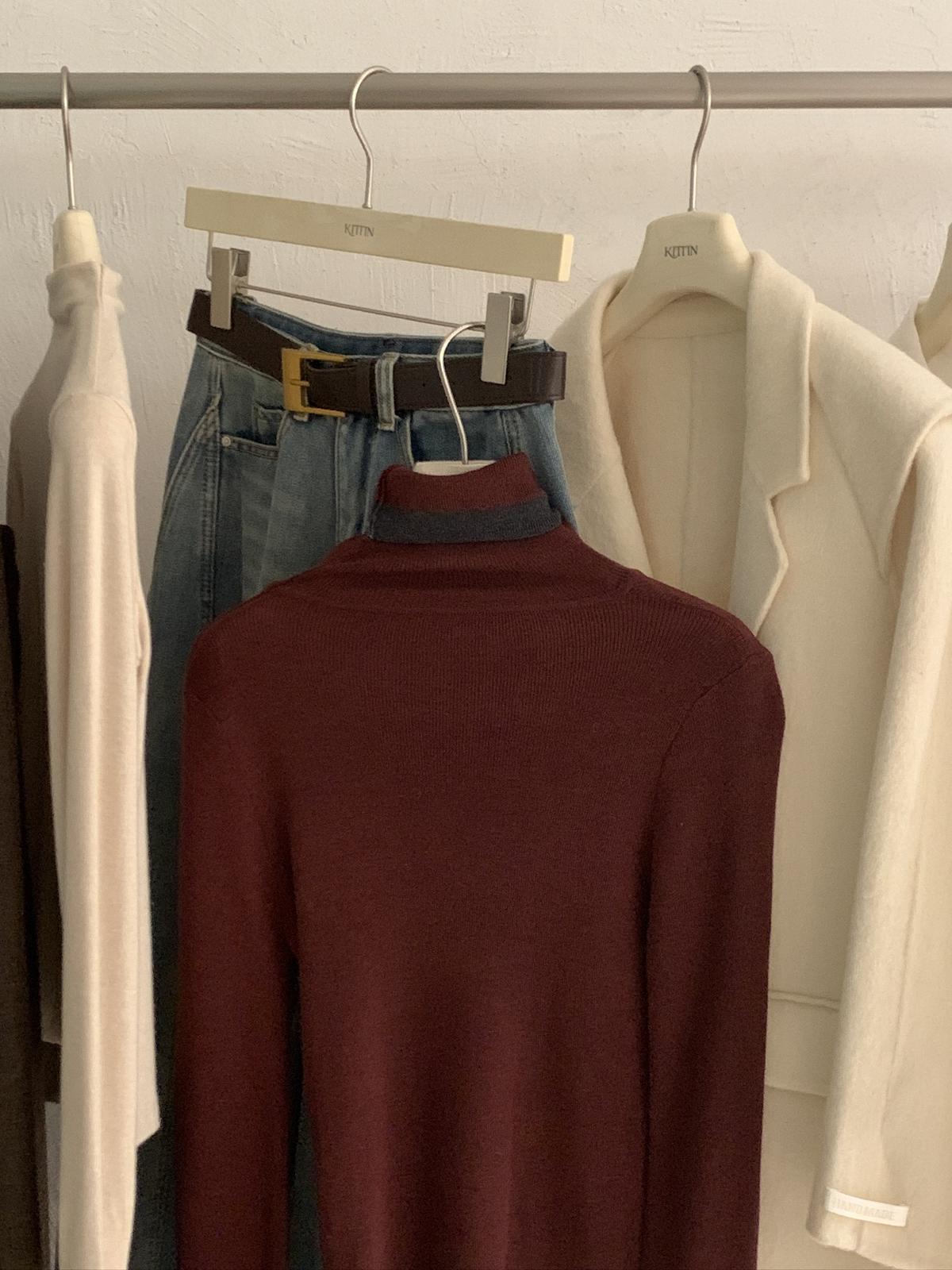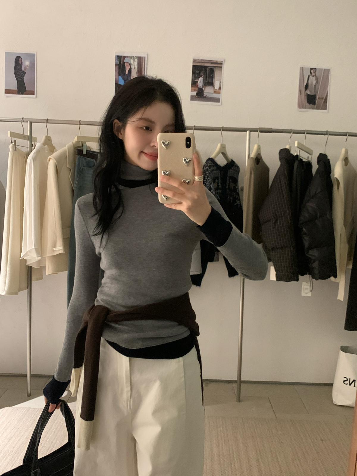 【C7740】韓系拼色堆堆領親膚羊毛混紡打底針織衫(含5.4%綿羊毛)