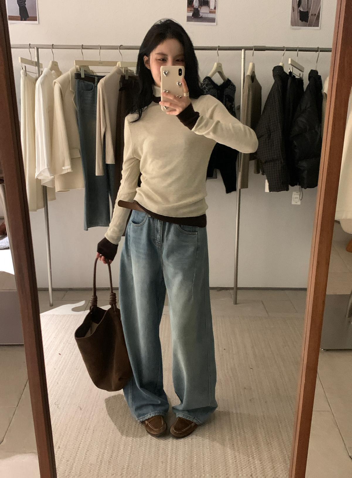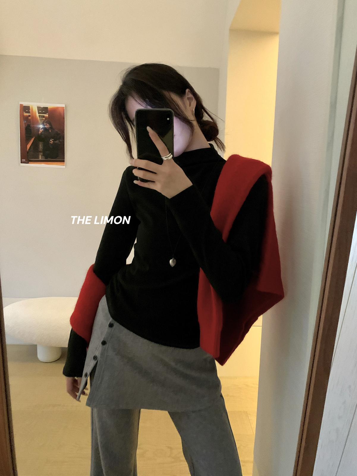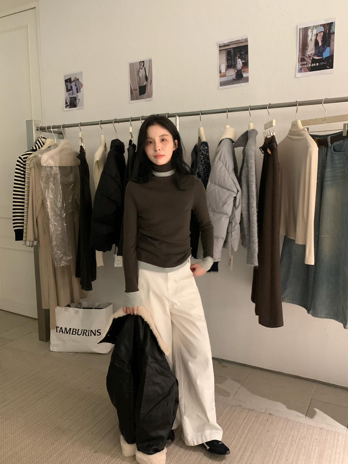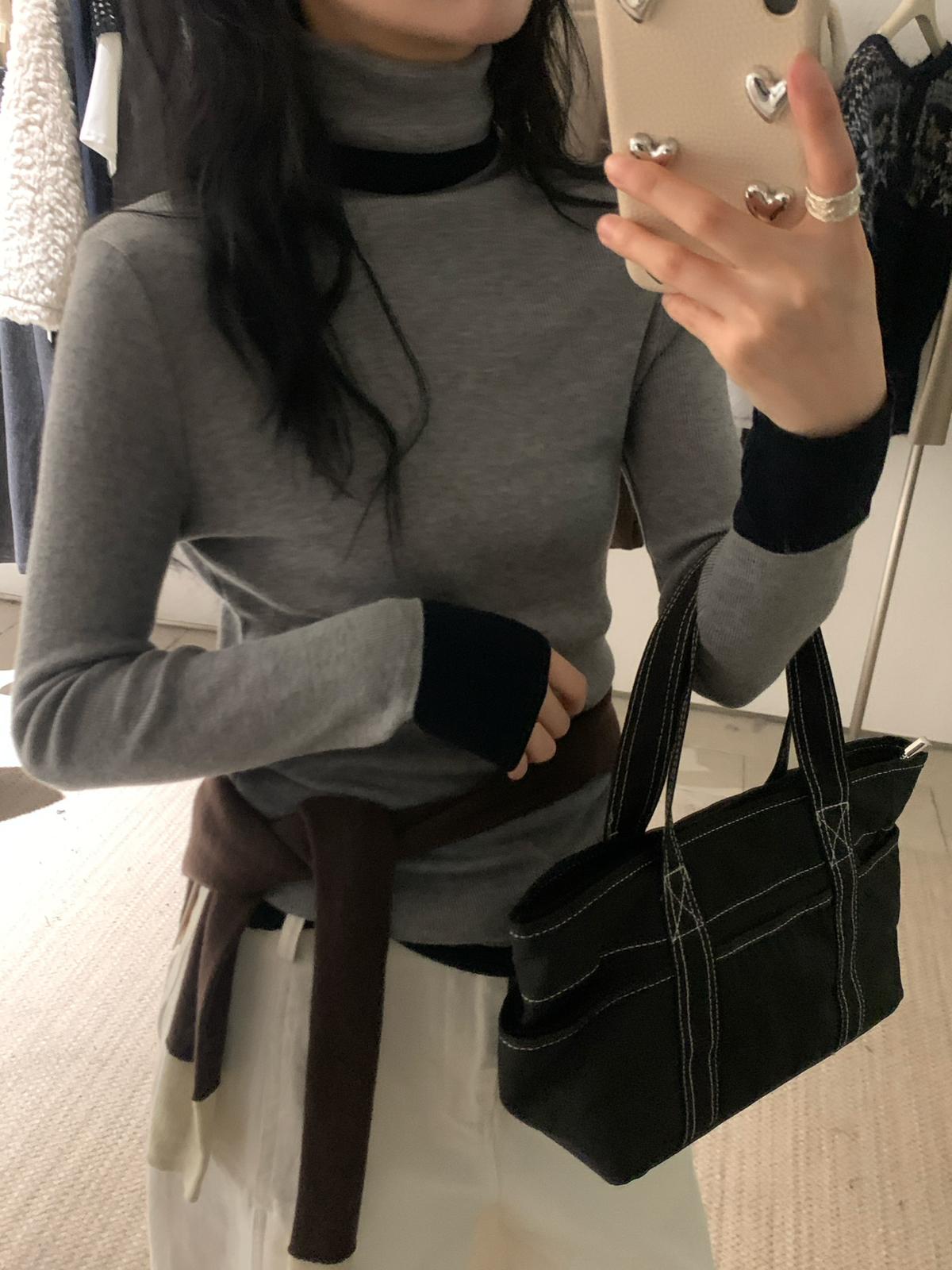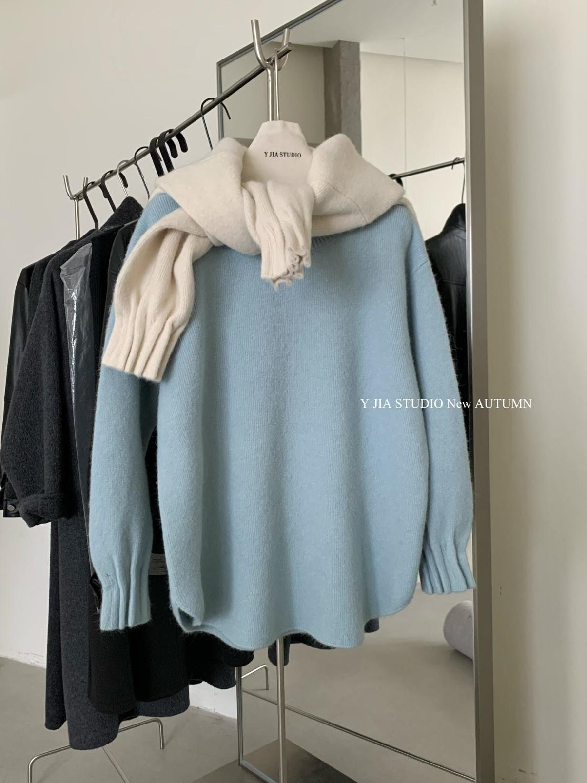【C7740】韓系拼色堆堆領親膚羊毛混紡打底針織衫(含5.4%綿羊毛)