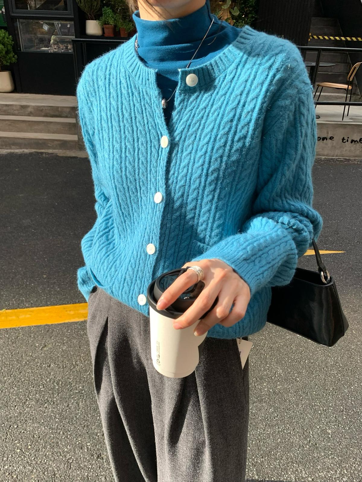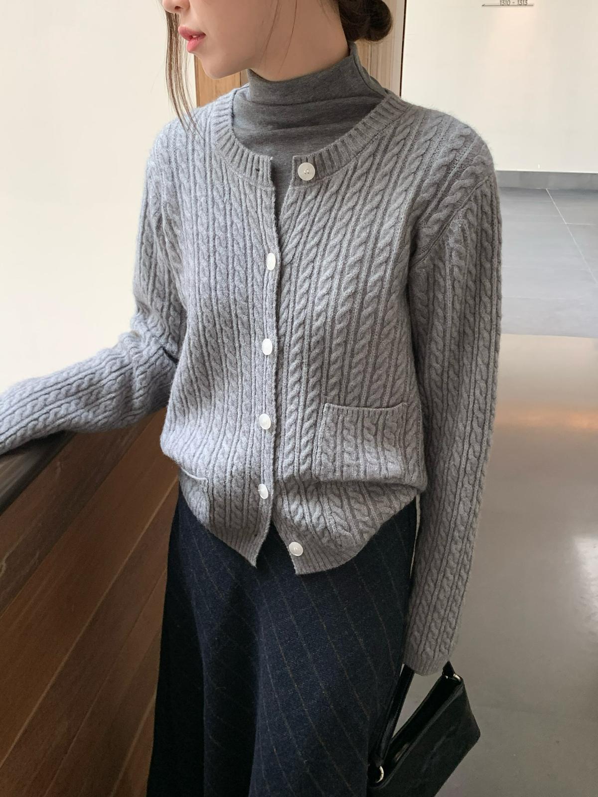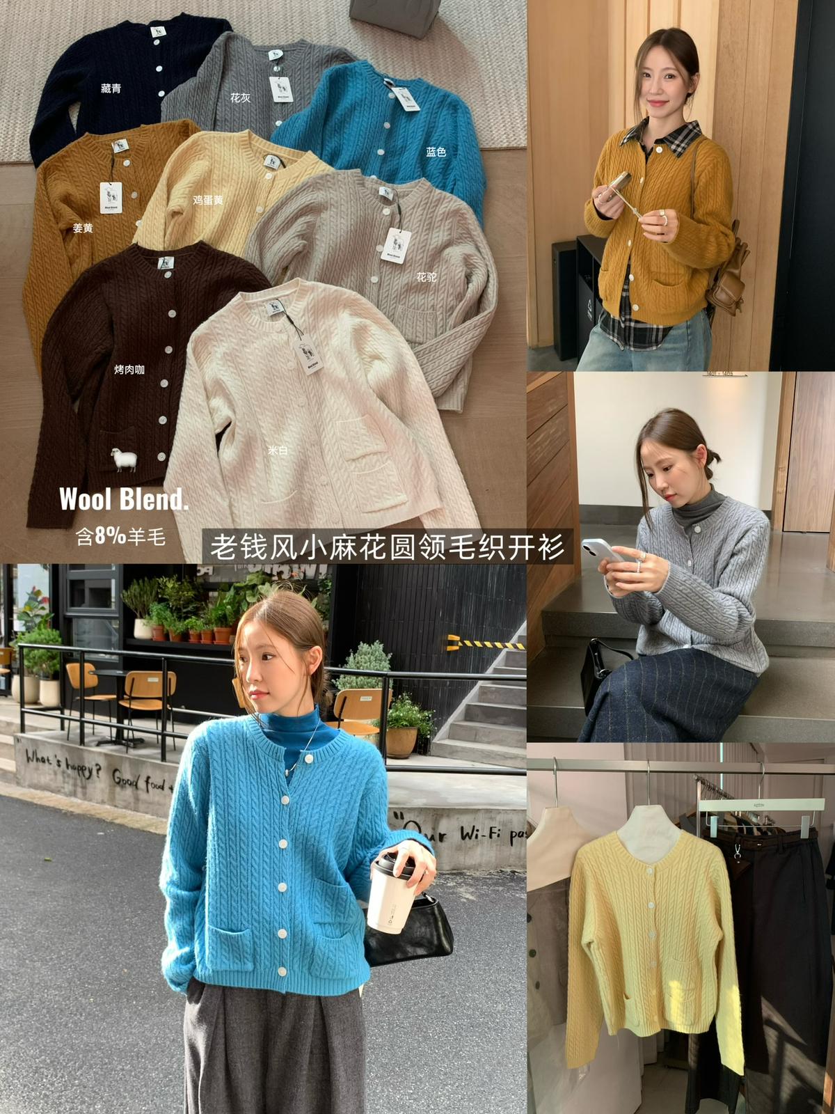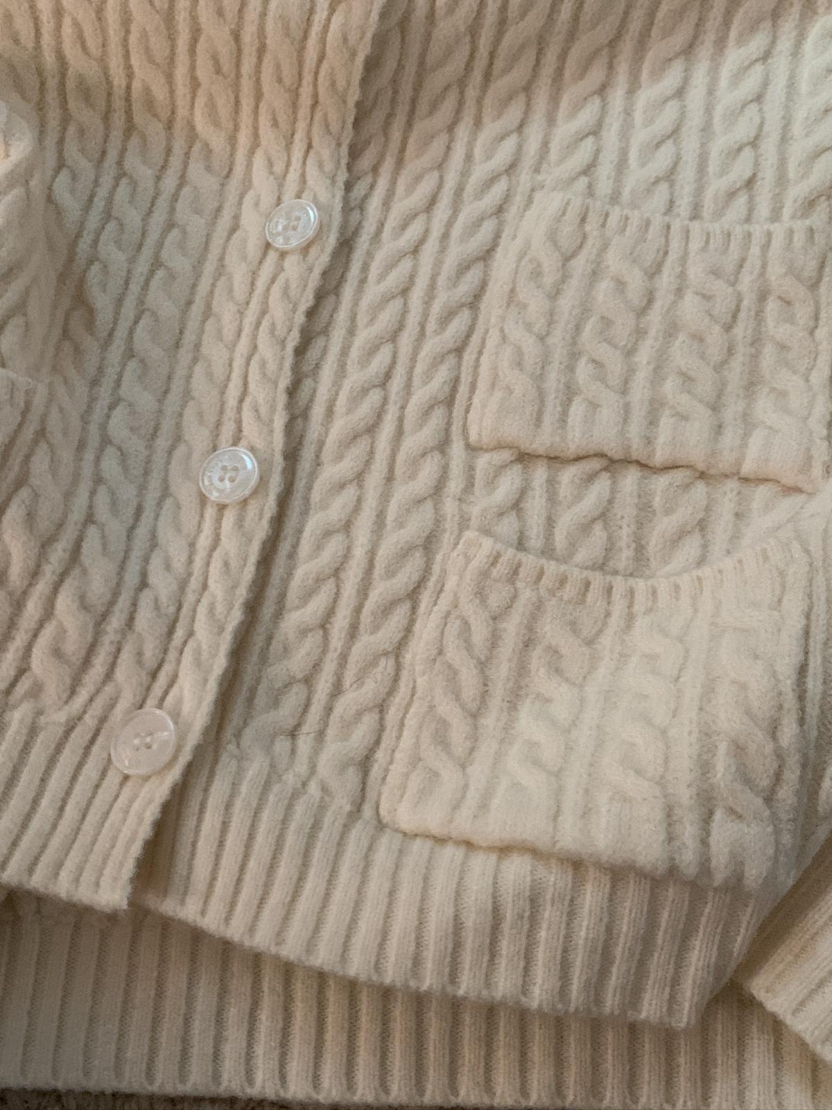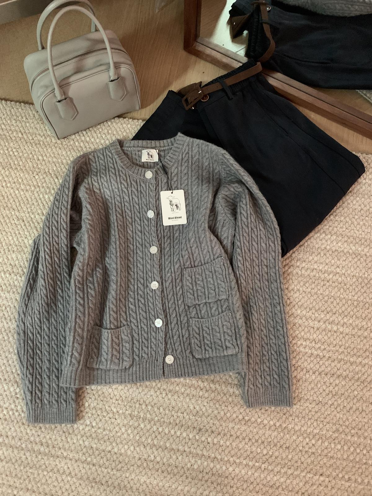 【C7741】經典老錢風小麻花圓領羊毛混紡開衫保暖毛衣(含8%羊毛)
