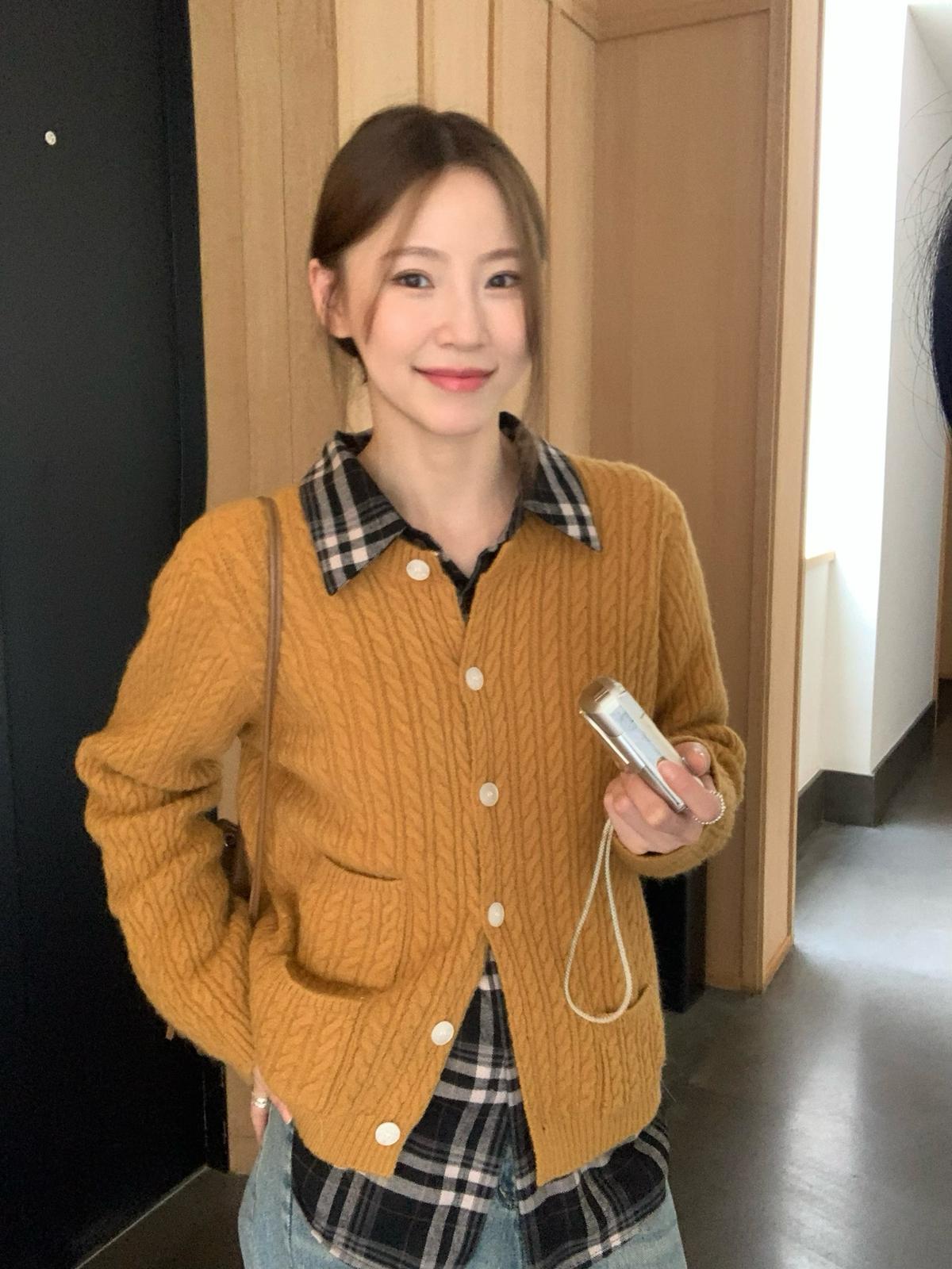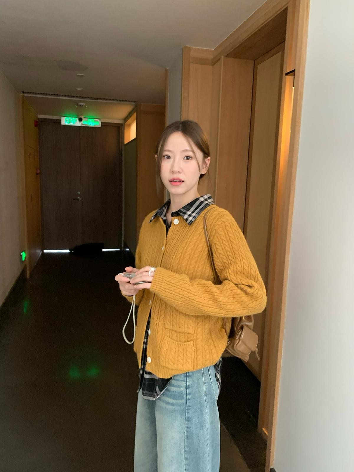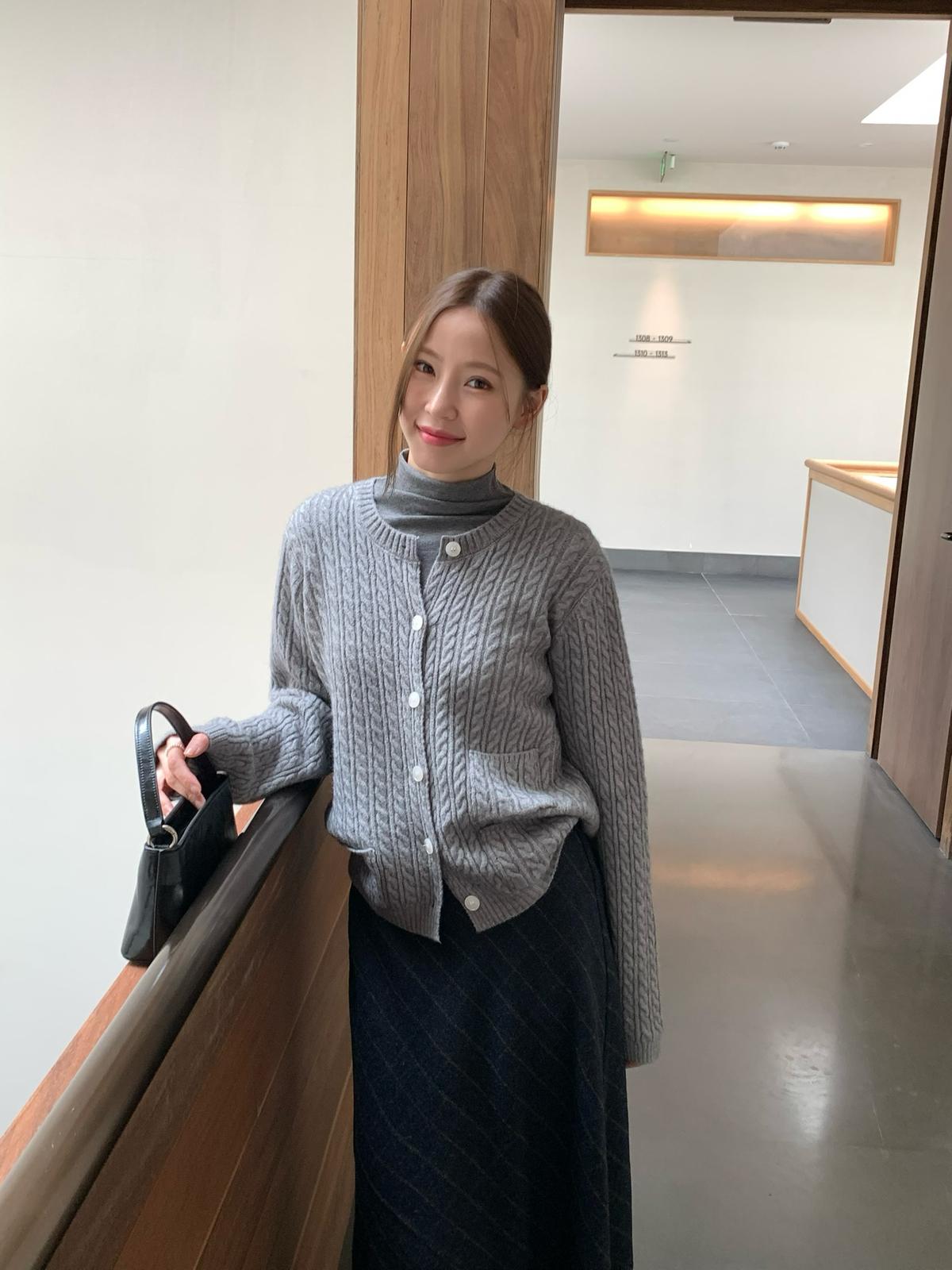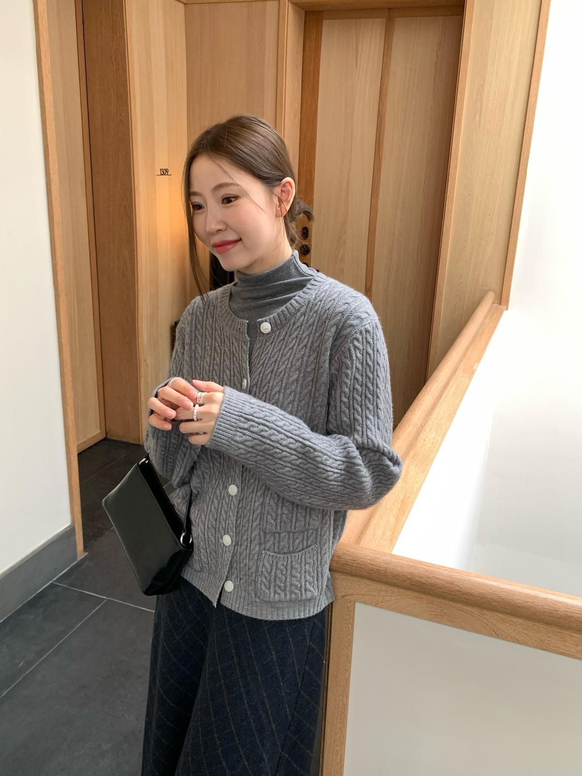 【C7741】經典老錢風小麻花圓領羊毛混紡開衫保暖毛衣(含8%羊毛)