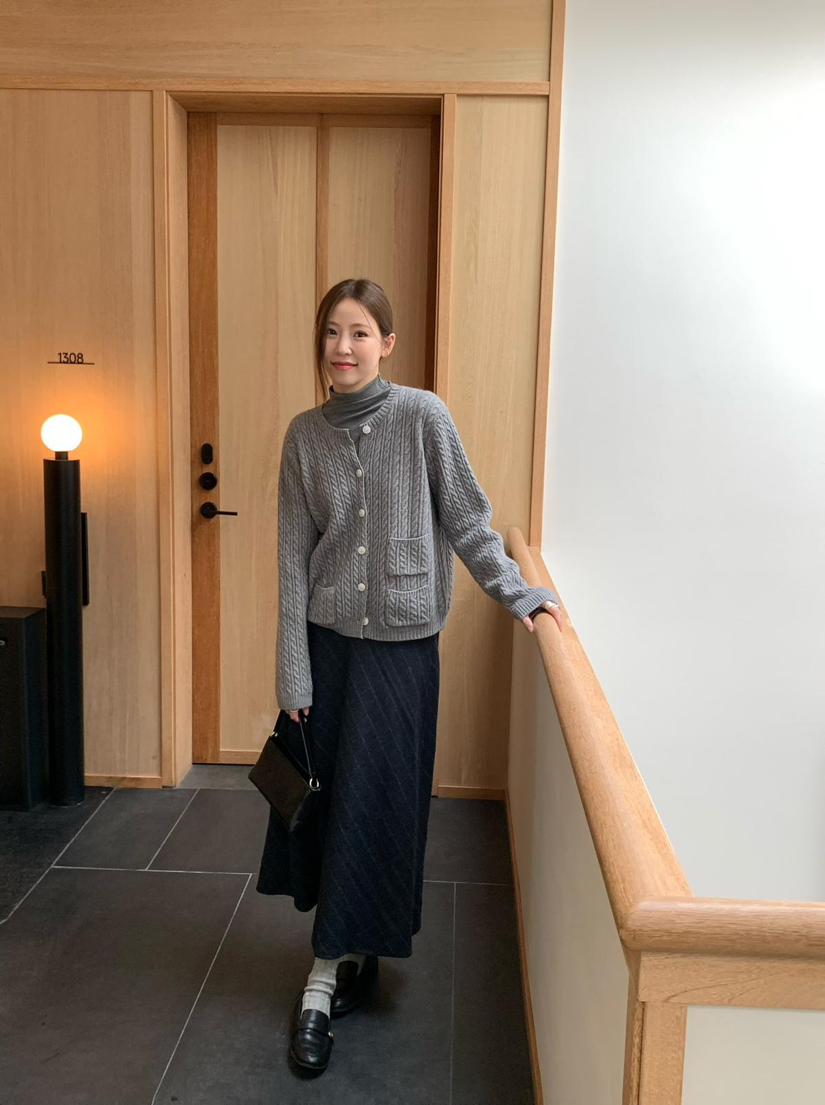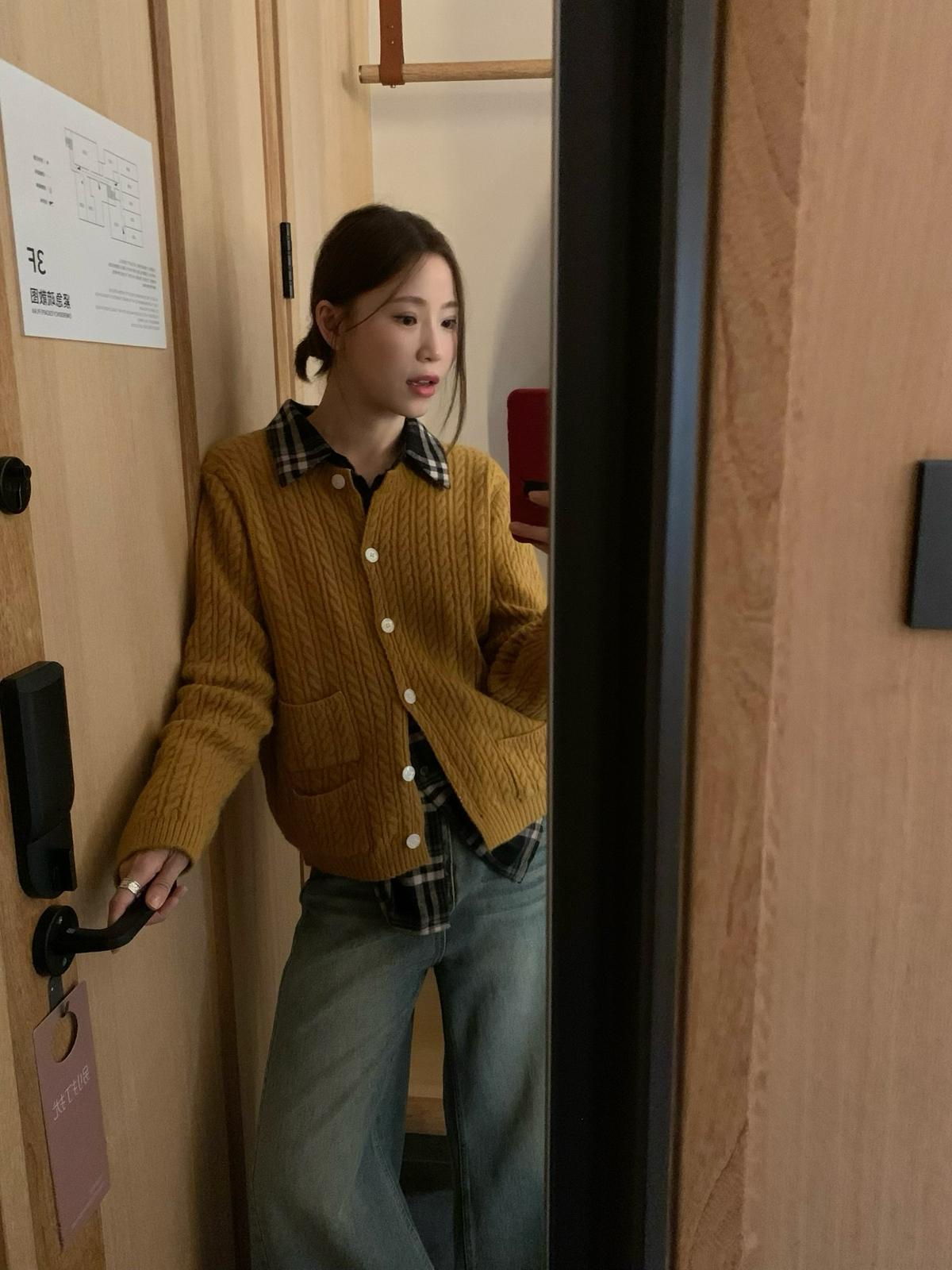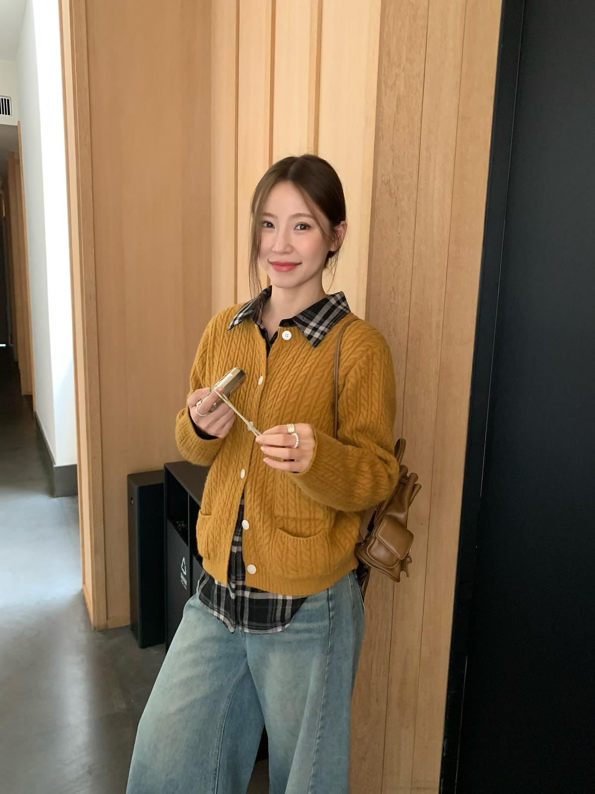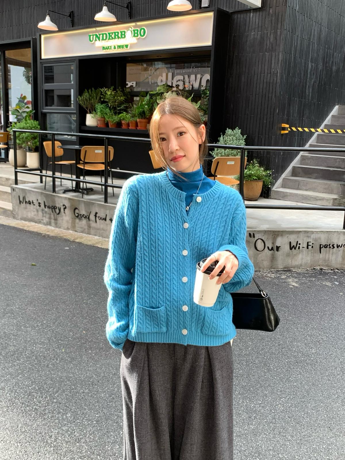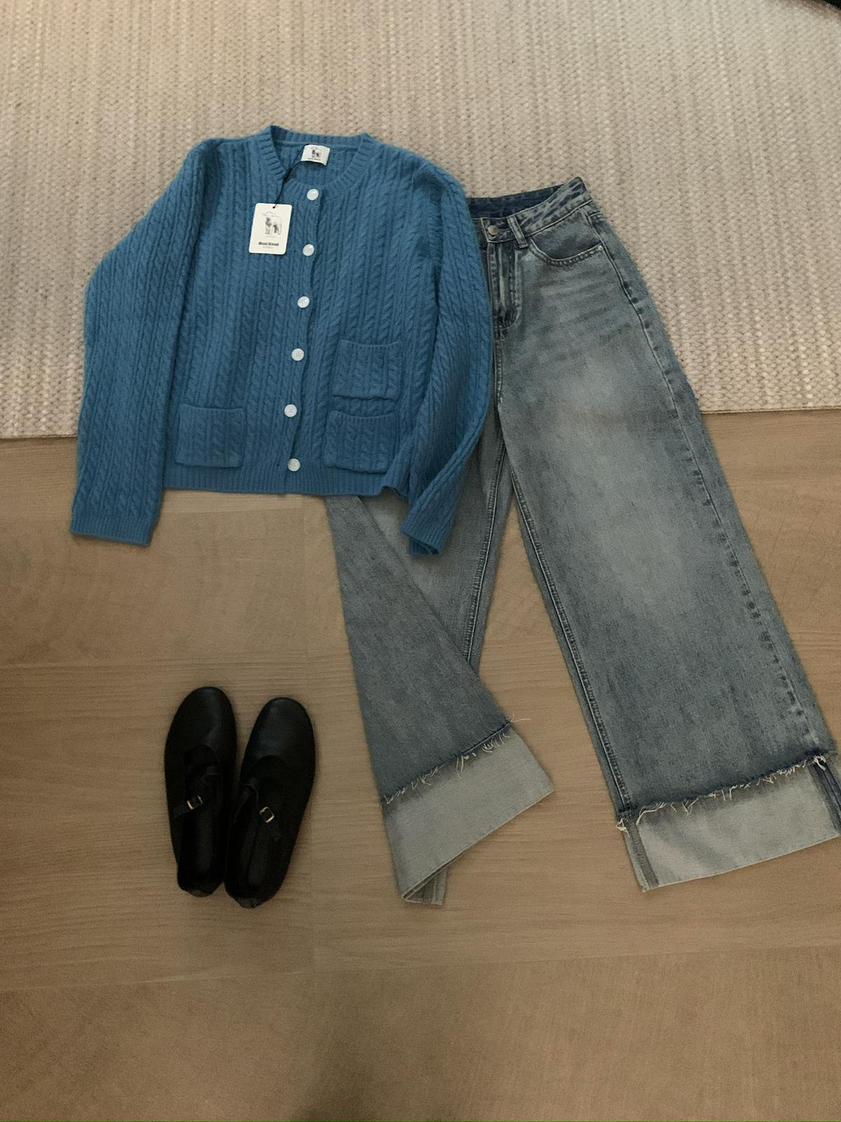 【C7741】經典老錢風小麻花圓領羊毛混紡開衫保暖毛衣(含8%羊毛)