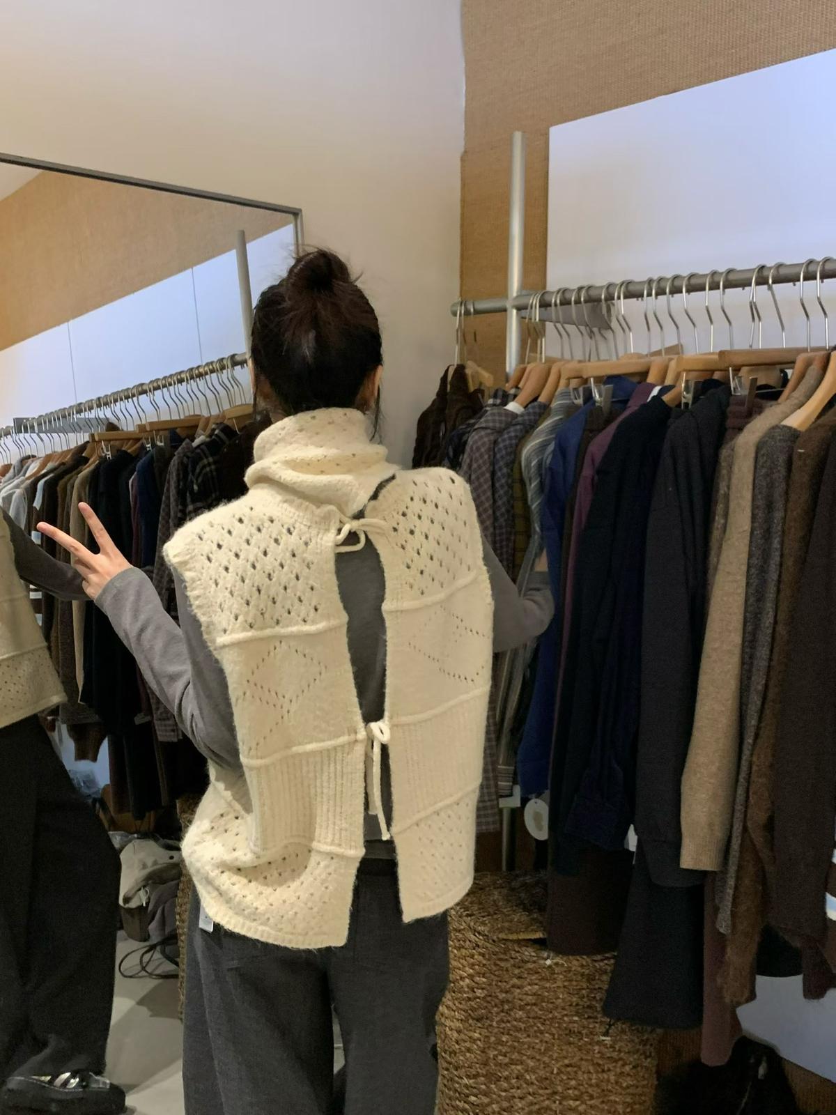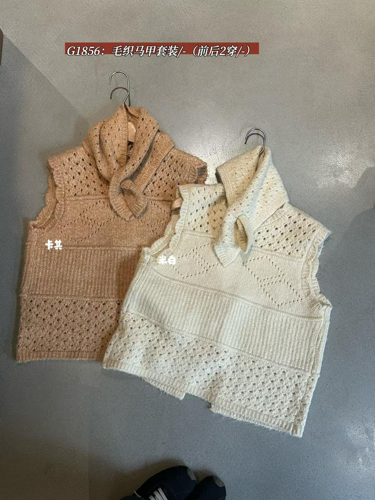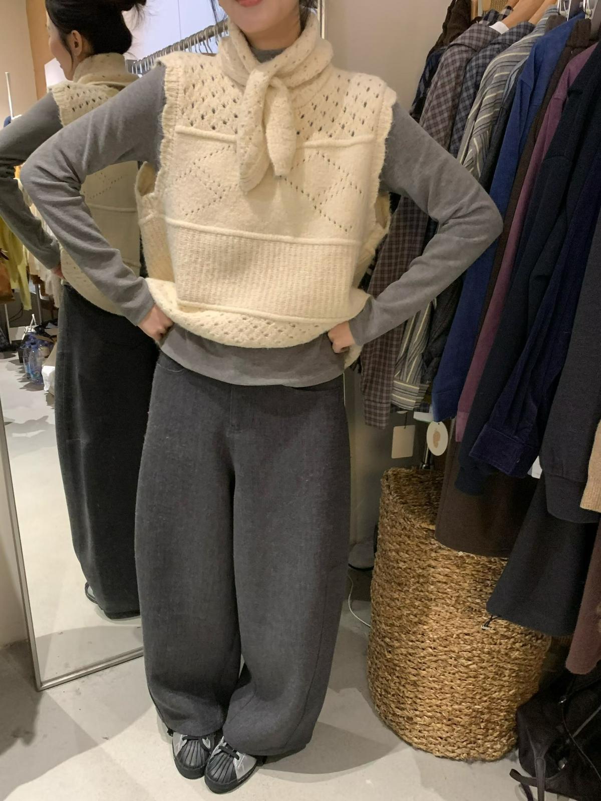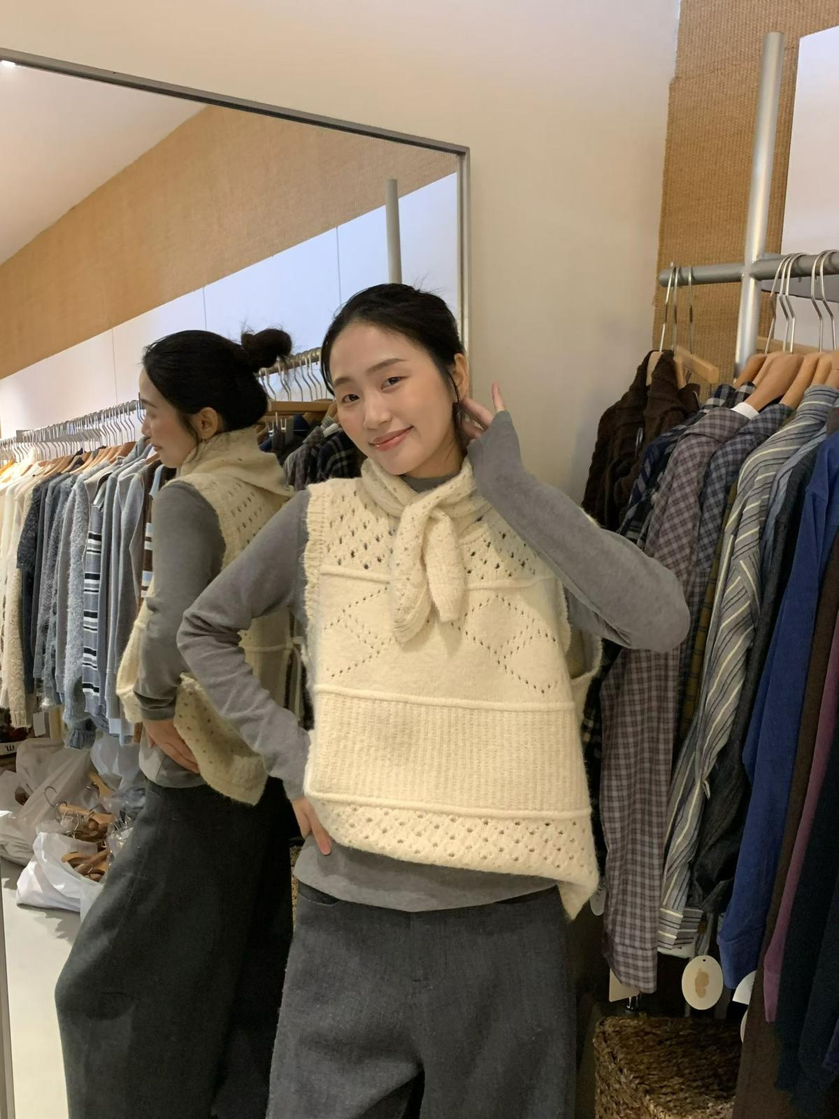【C7744】復古學院鏤空正反兩穿毛織針織馬甲(配圍脖)(含6%羊毛)