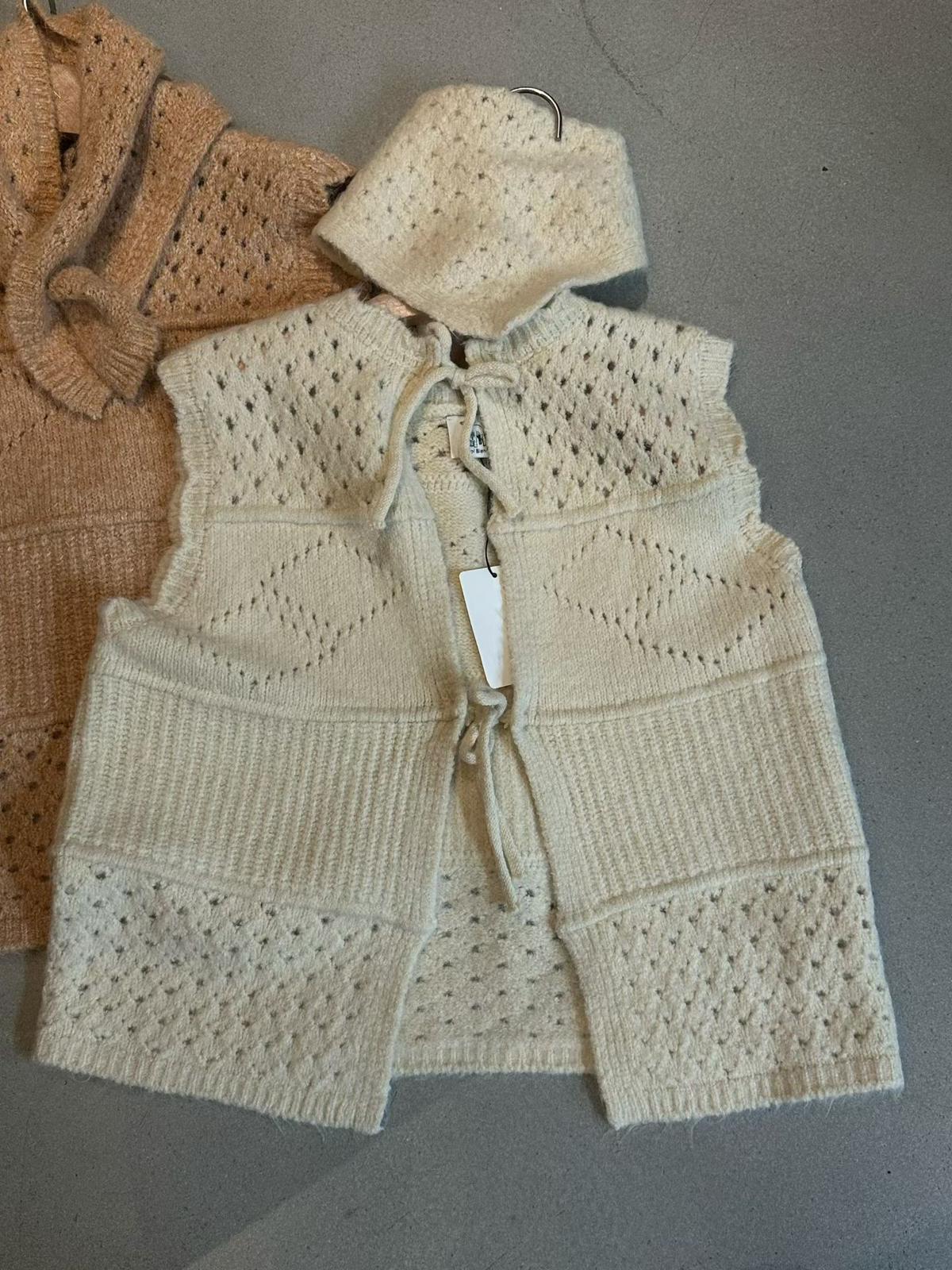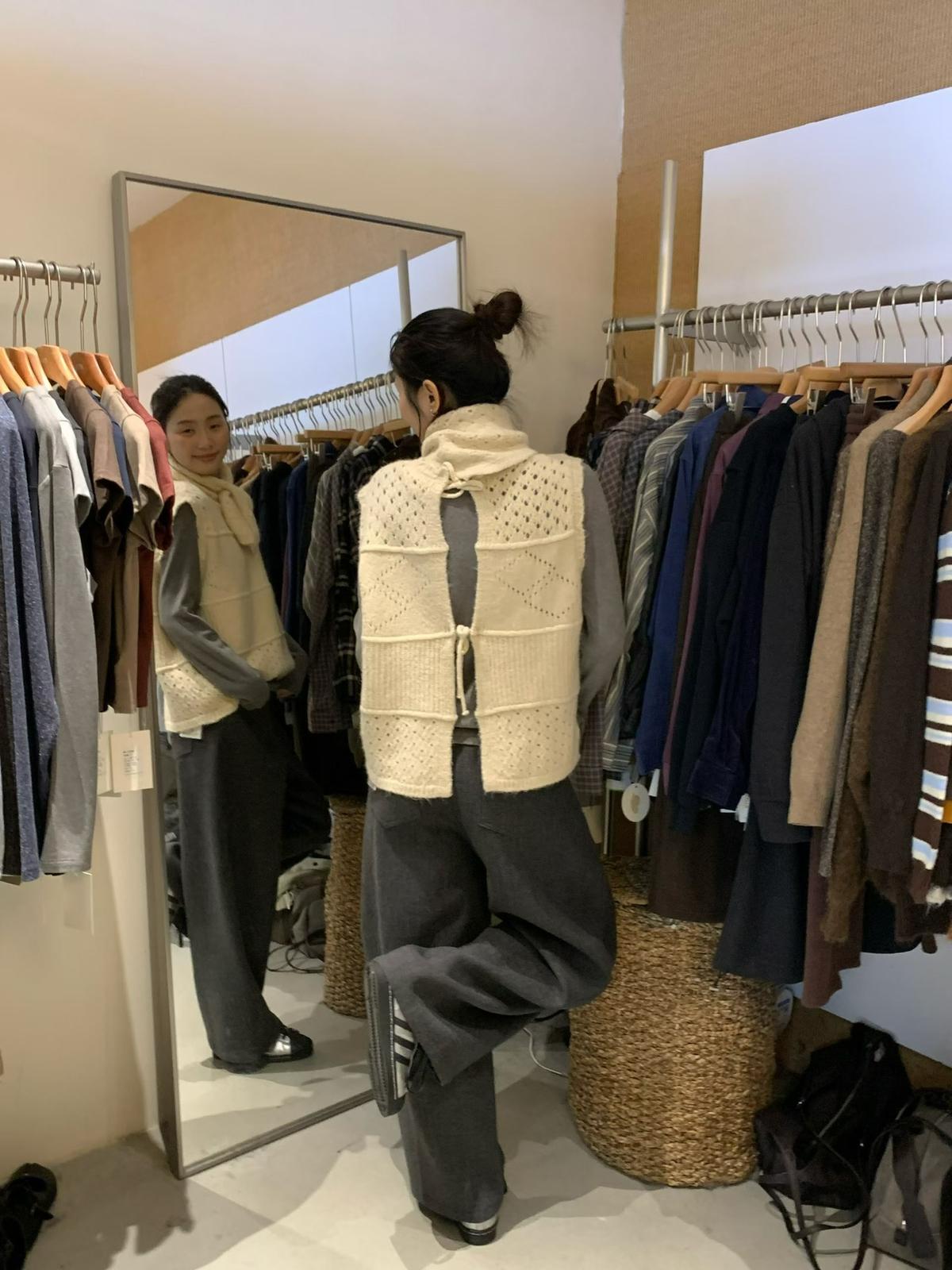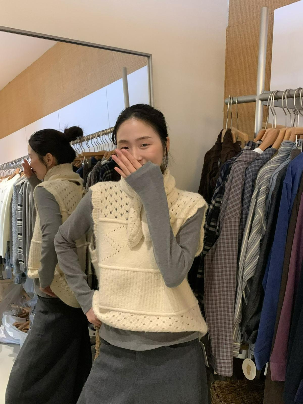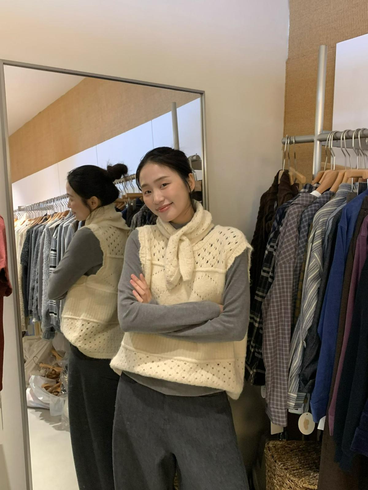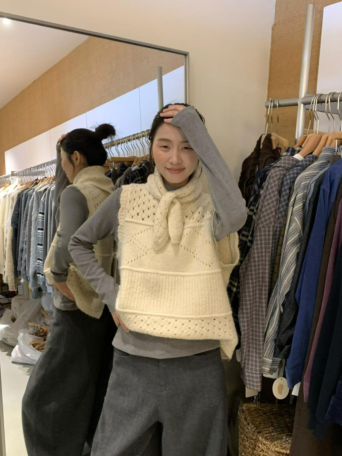 【C7744】復古學院鏤空正反兩穿毛織針織馬甲(配圍脖)(含6%羊毛)