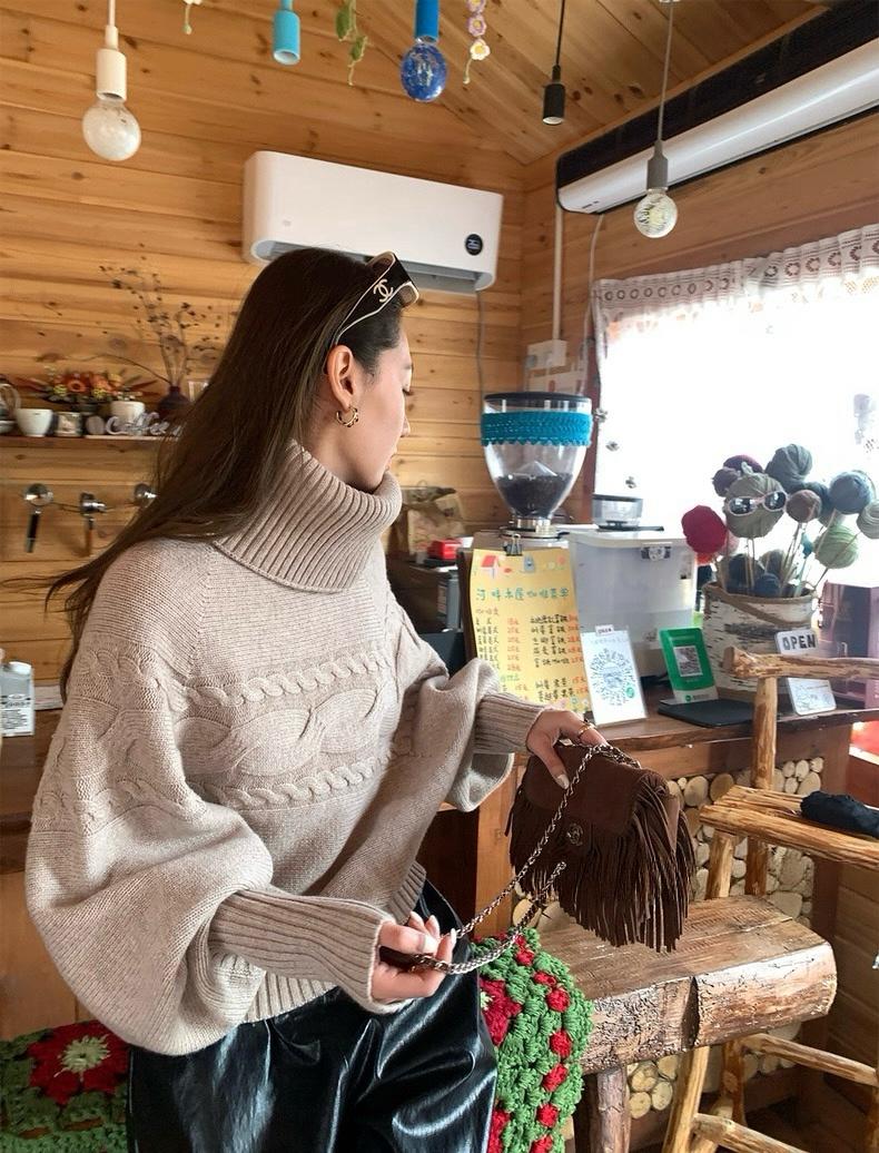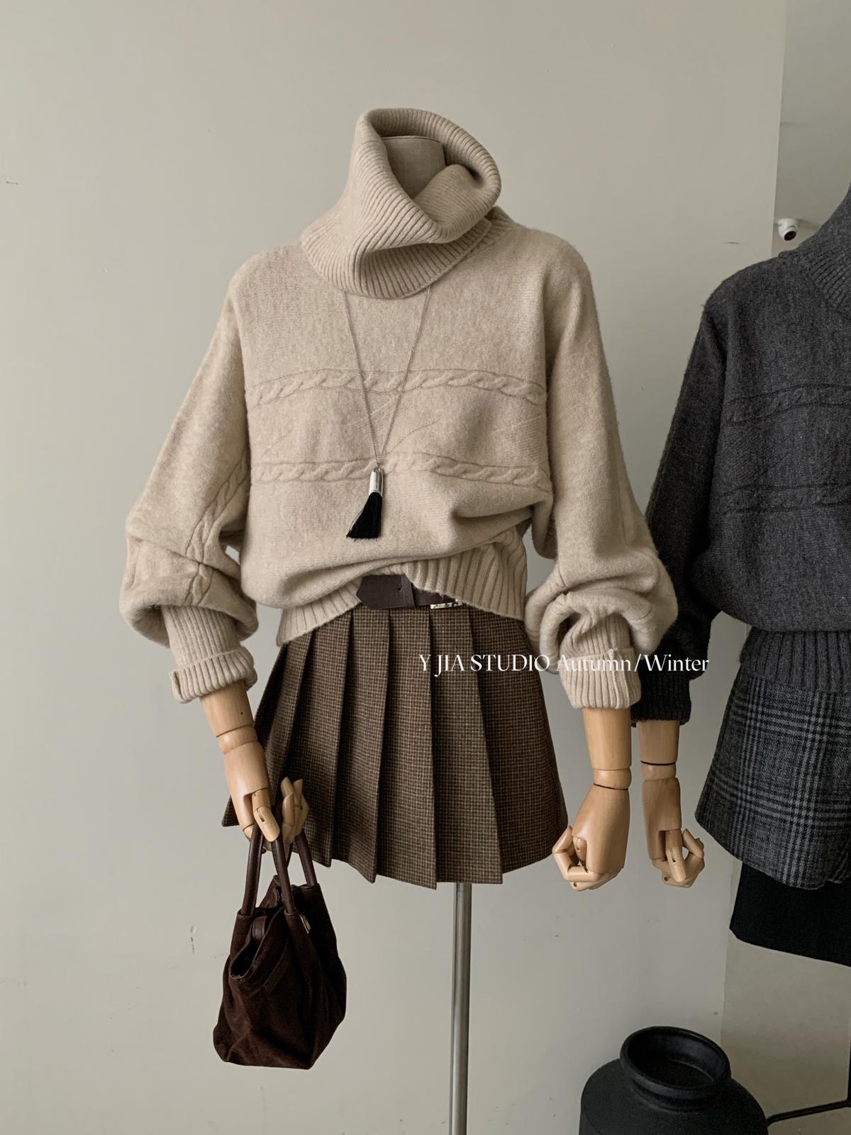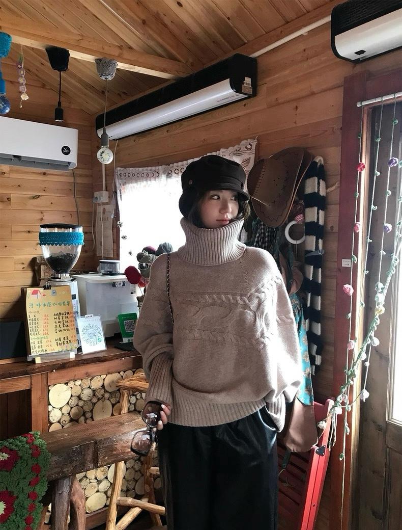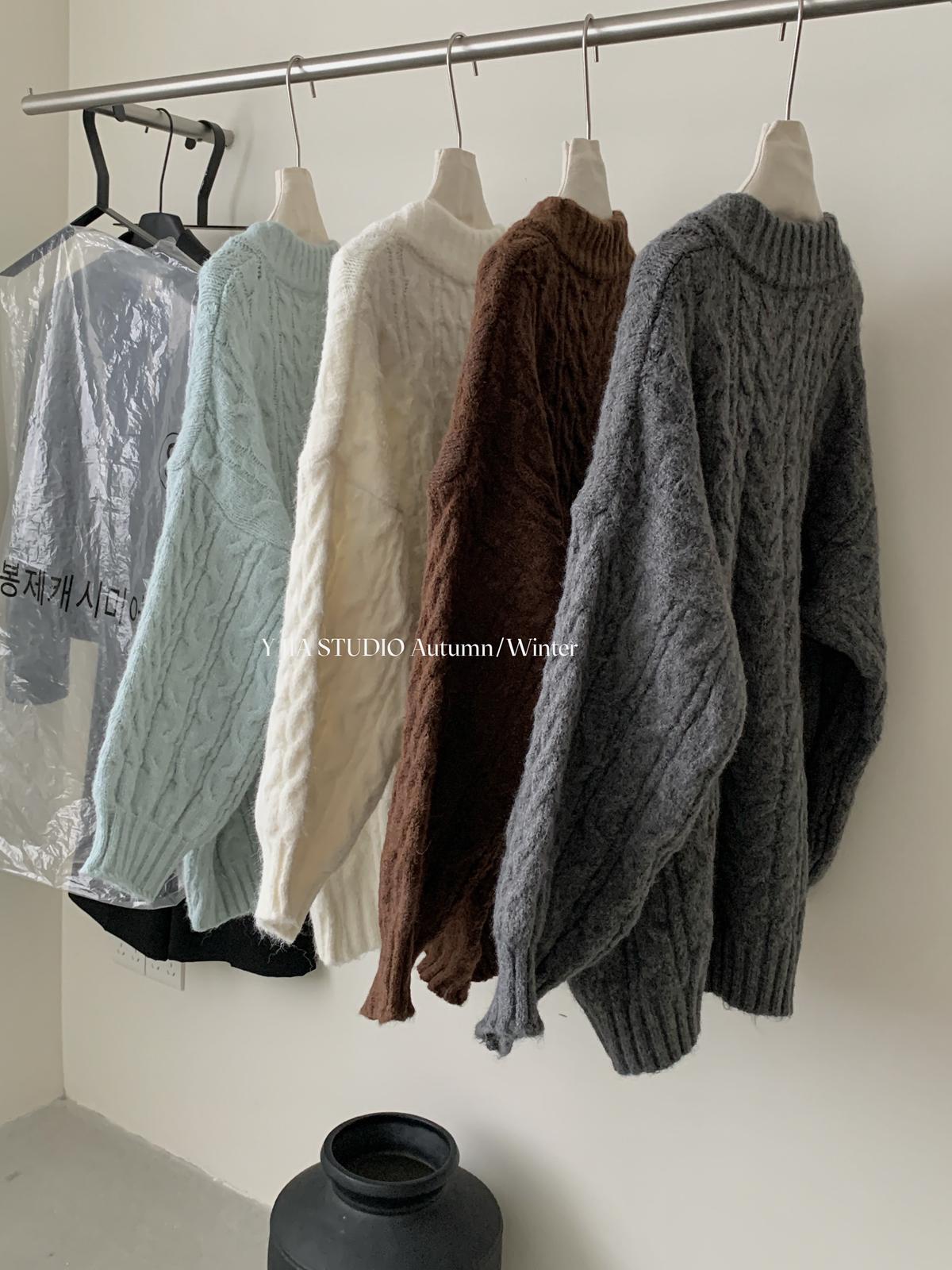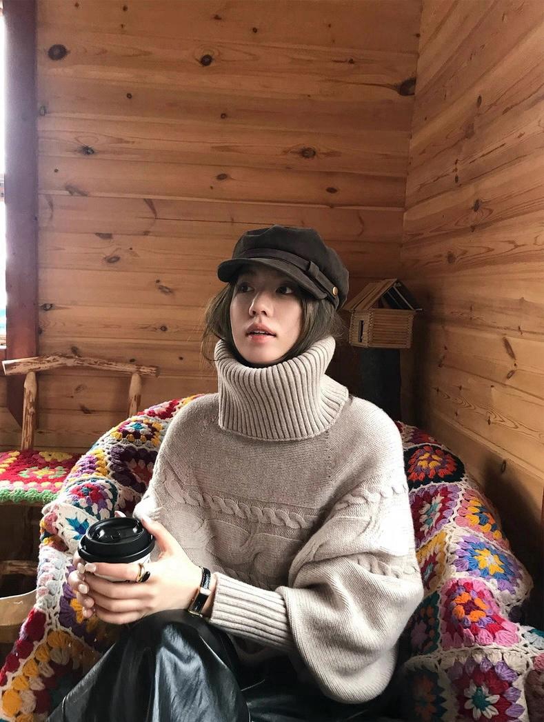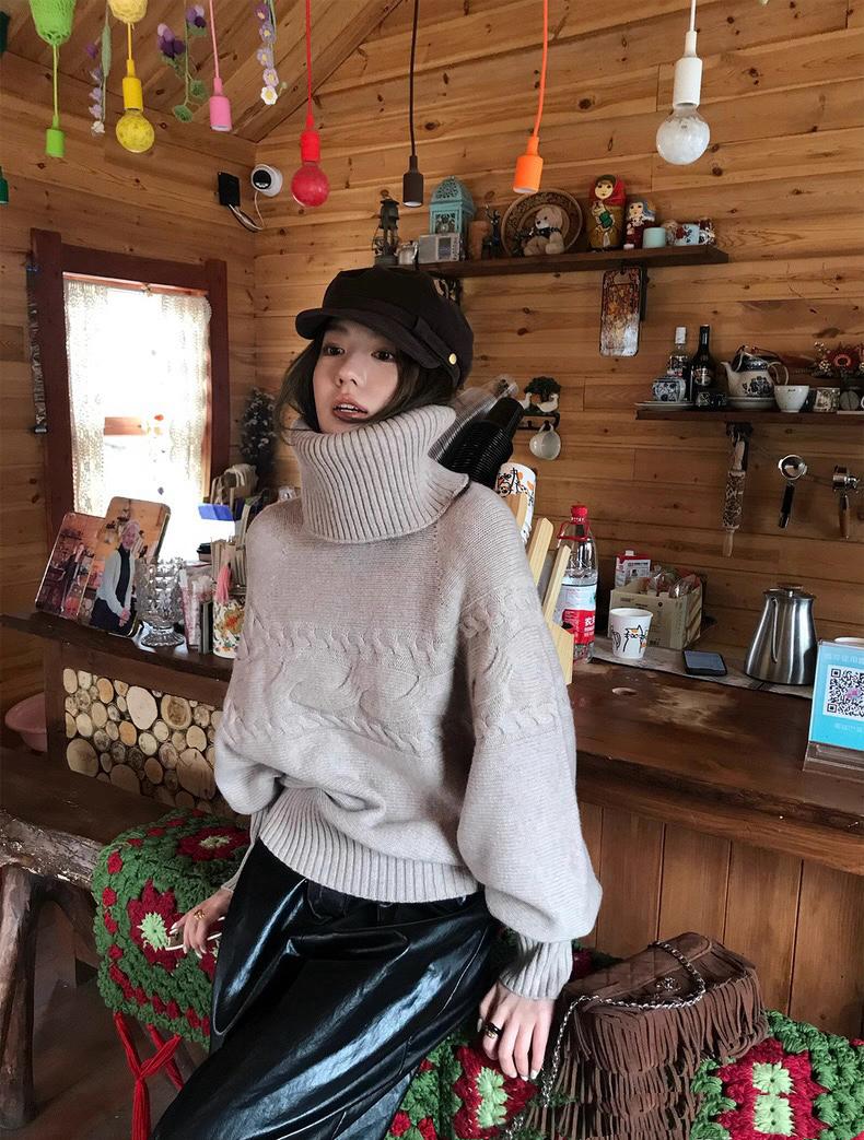 【C7748】大爆款!!!復古氣質高領套頭寬鬆顯瘦麻花別緻針織保暖毛衣