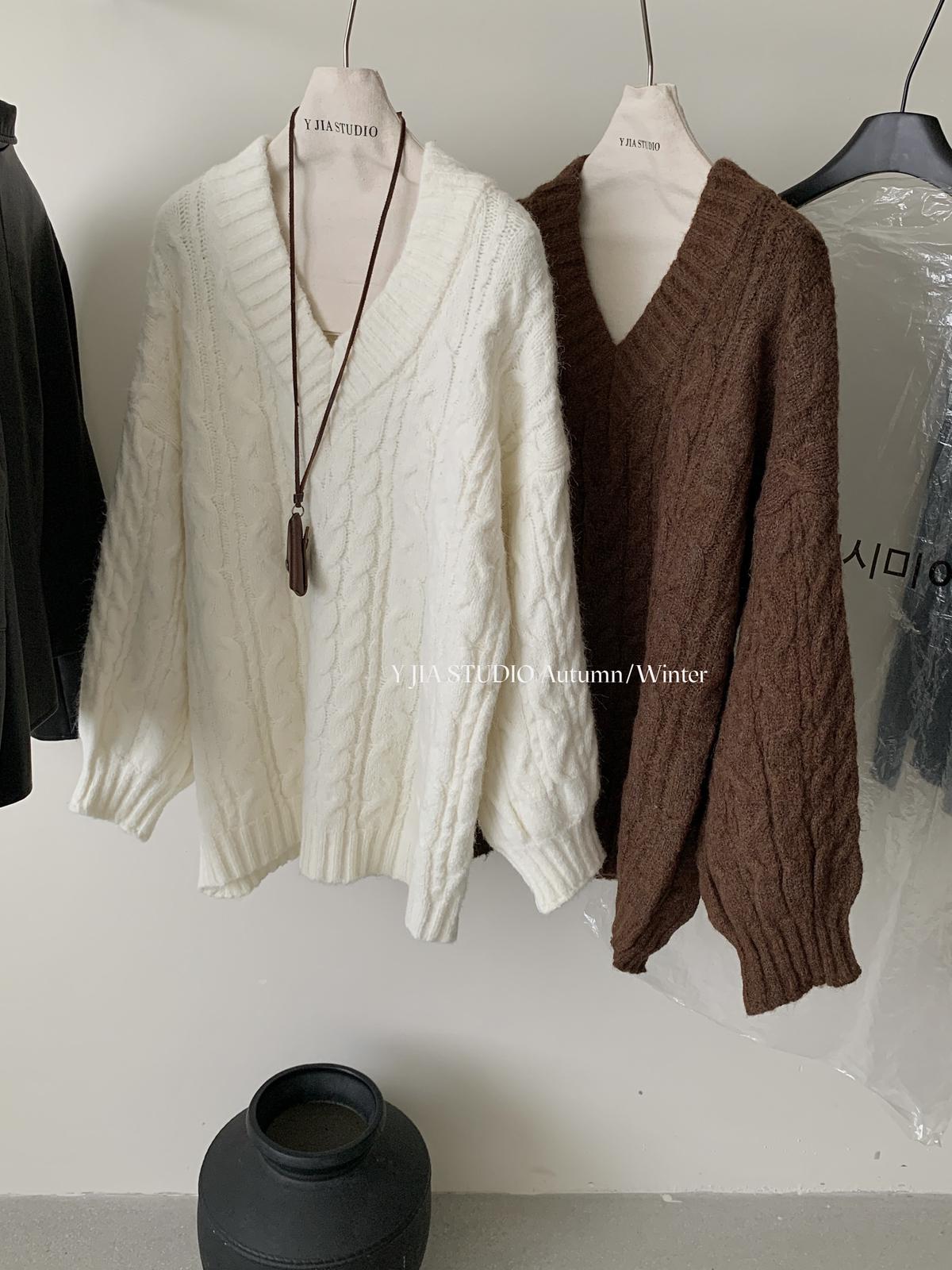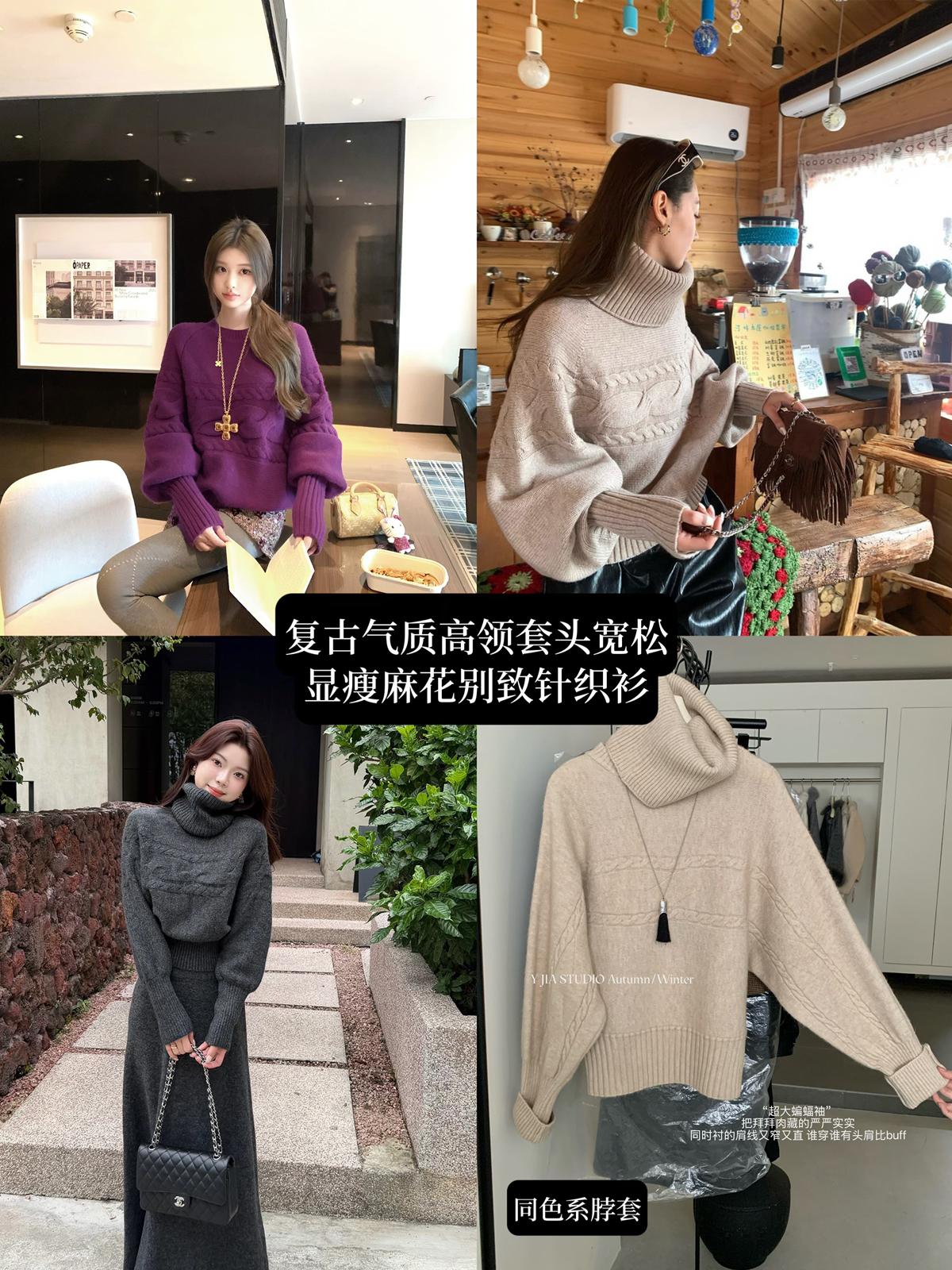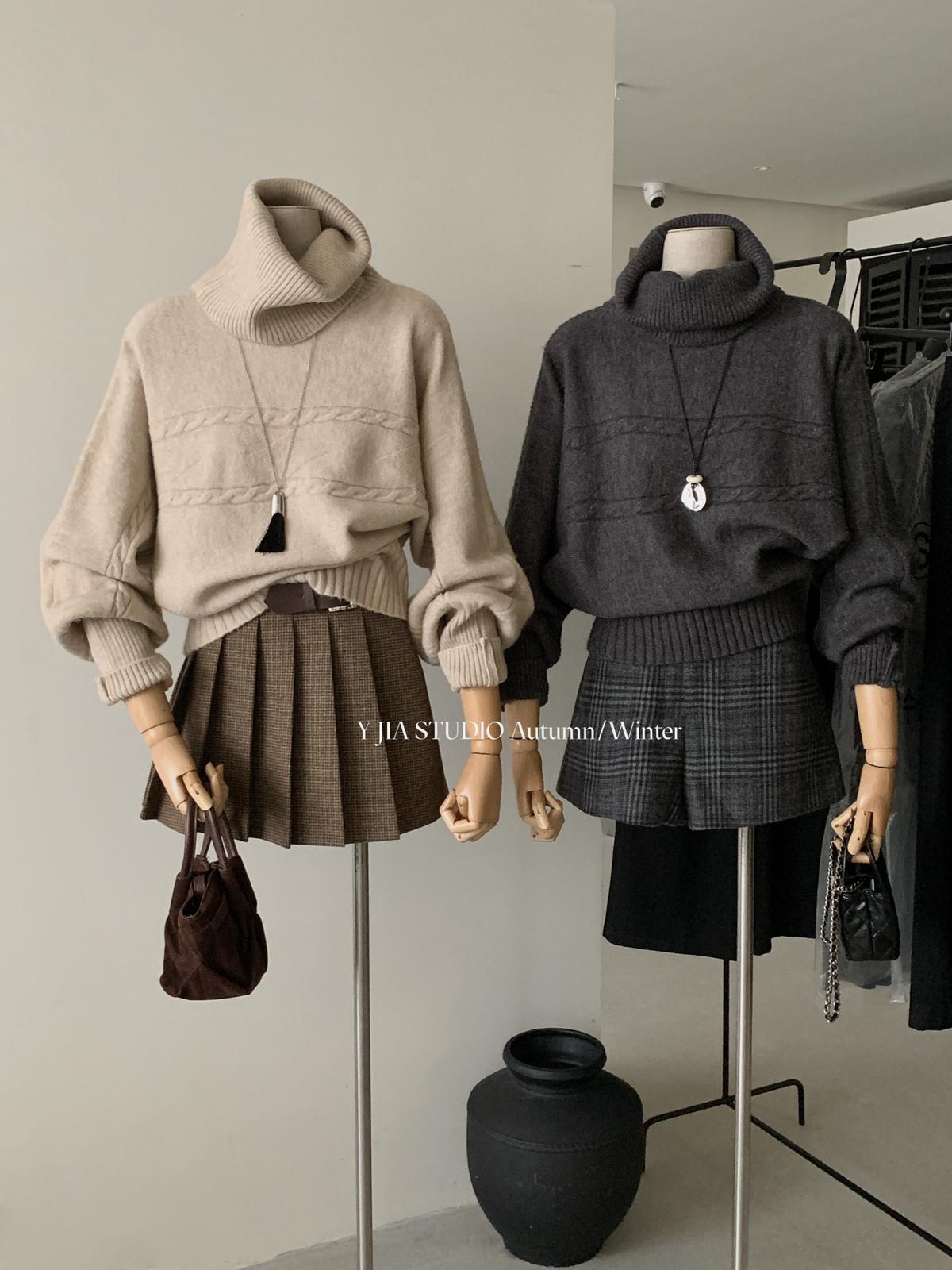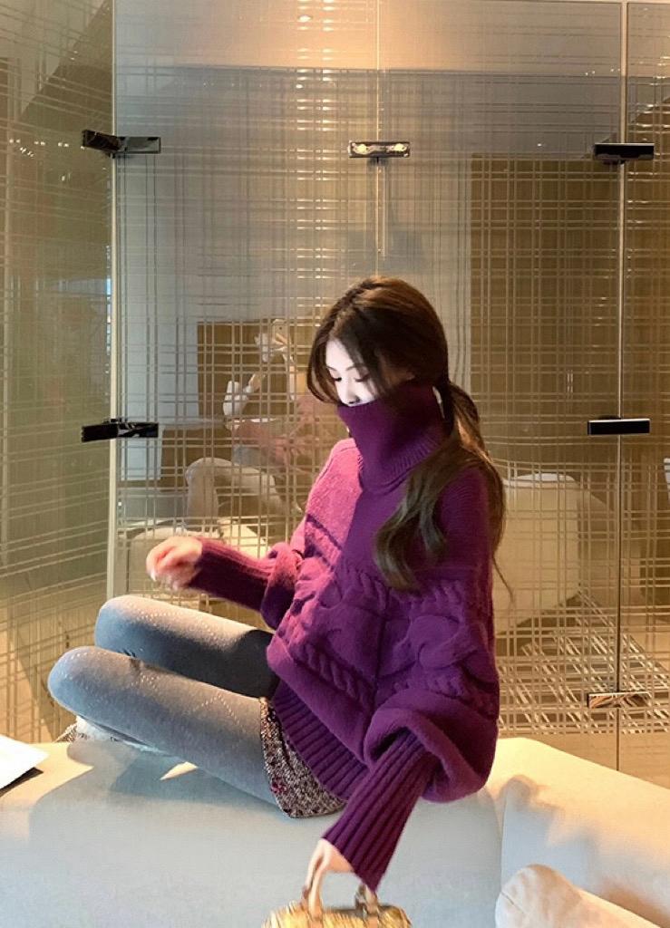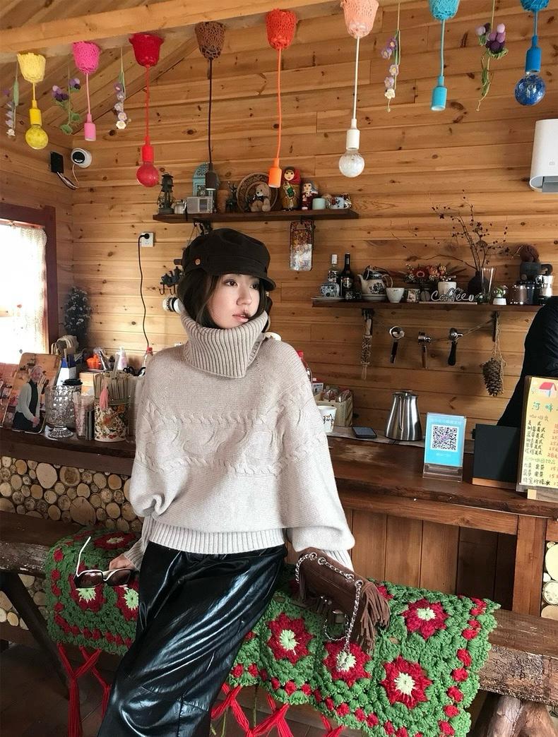 【C7748】大爆款!!!復古氣質高領套頭寬鬆顯瘦麻花別緻針織保暖毛衣