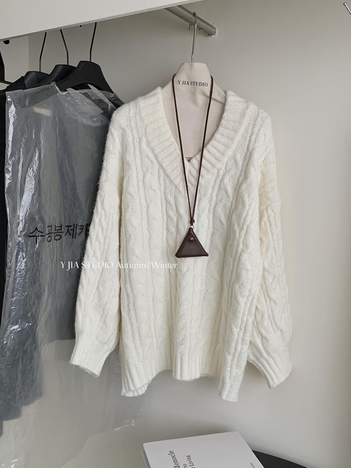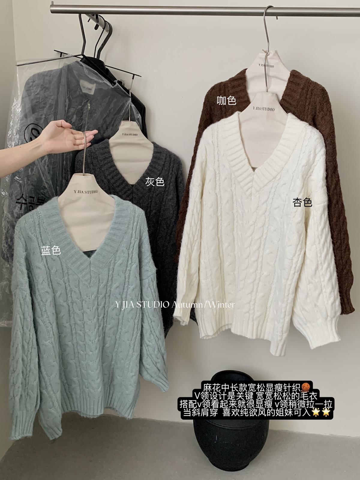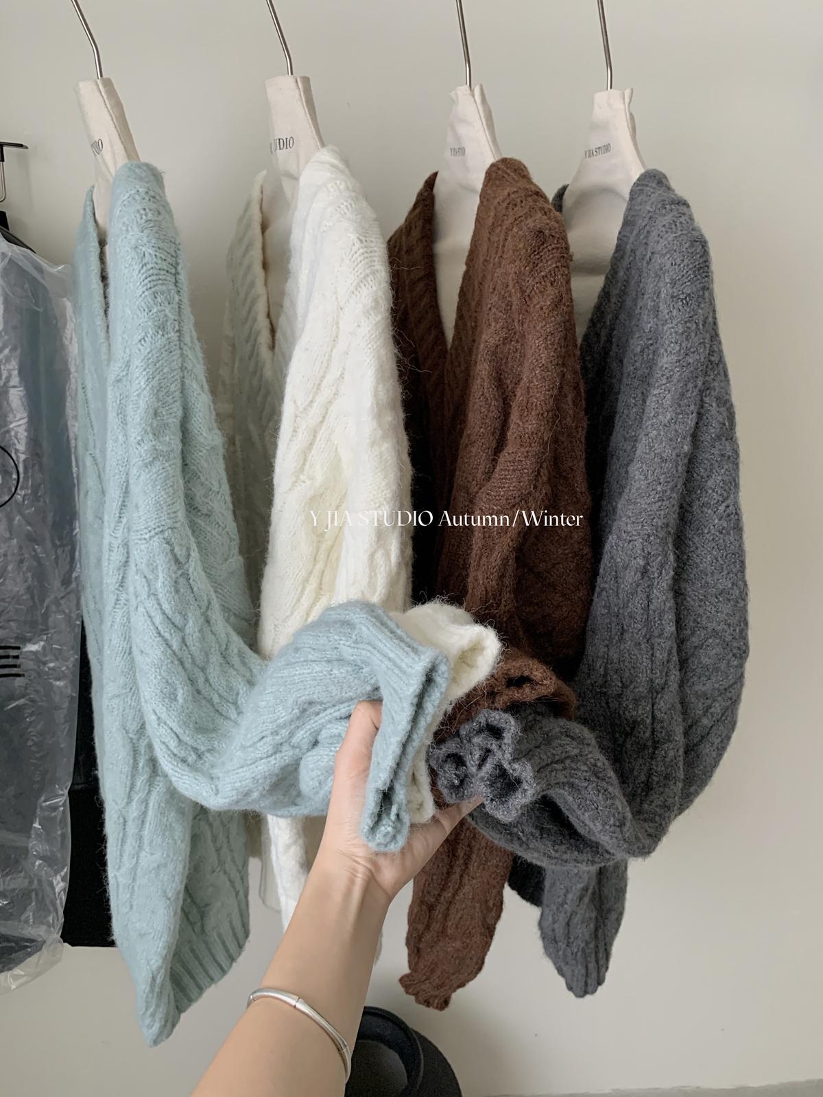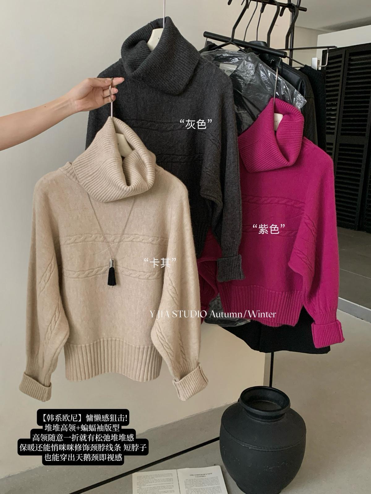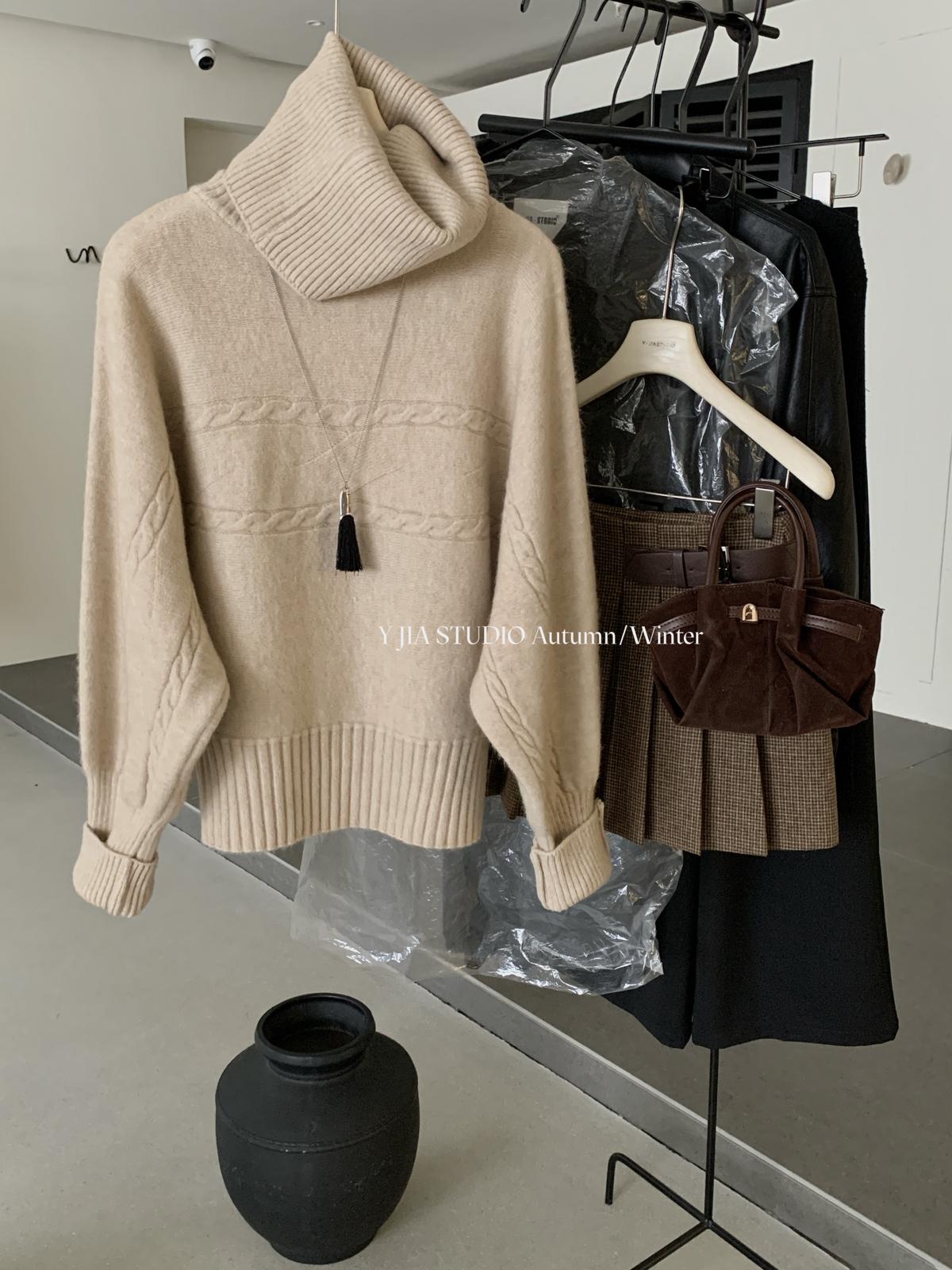 【C7748】大爆款!!!復古氣質高領套頭寬鬆顯瘦麻花別緻針織保暖毛衣