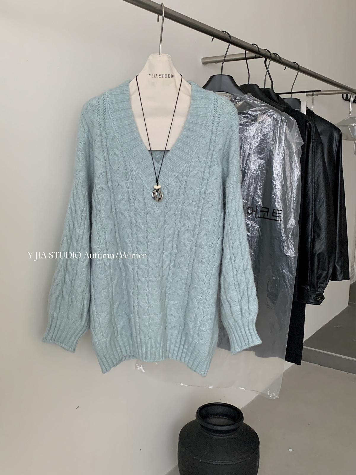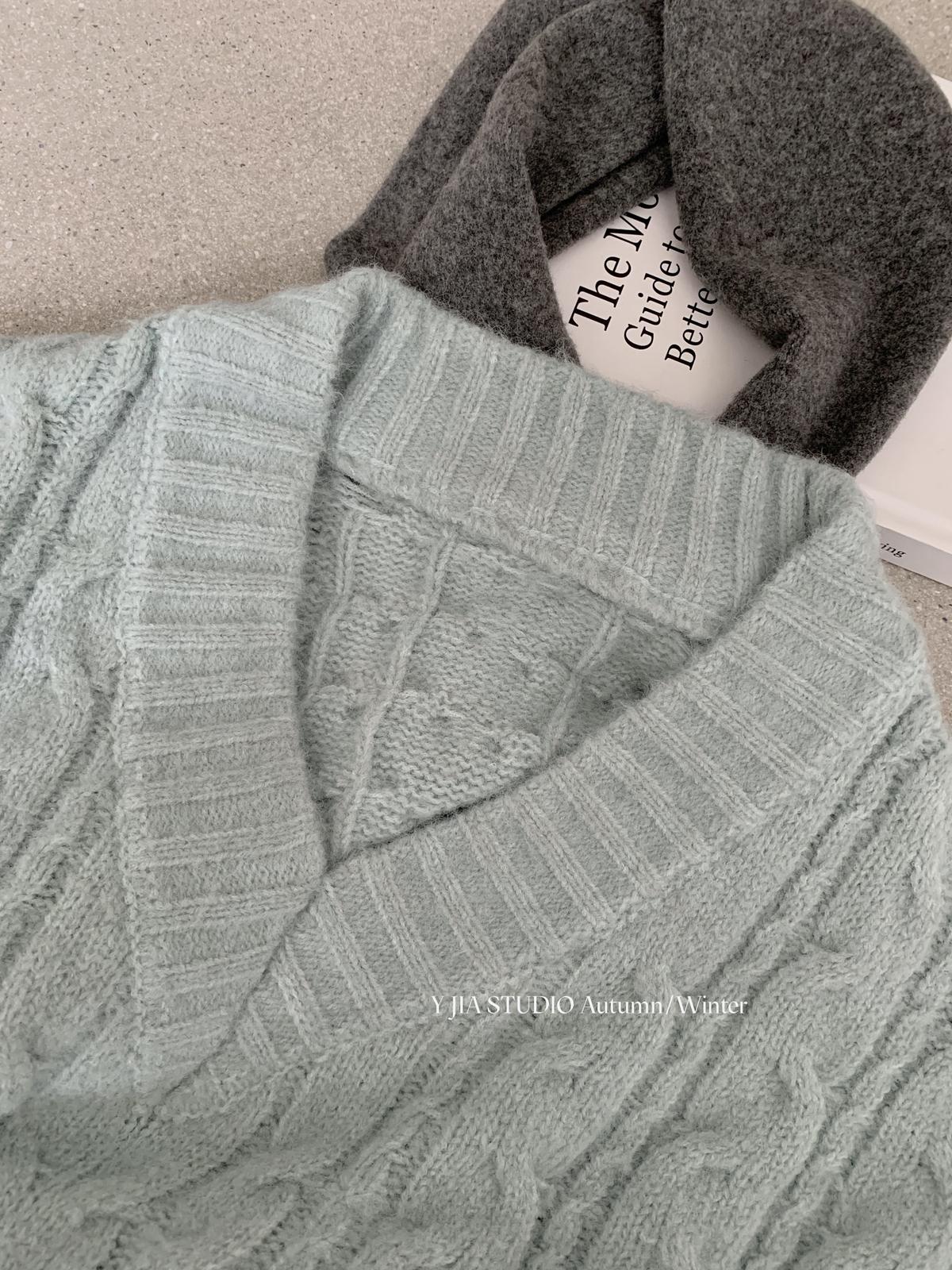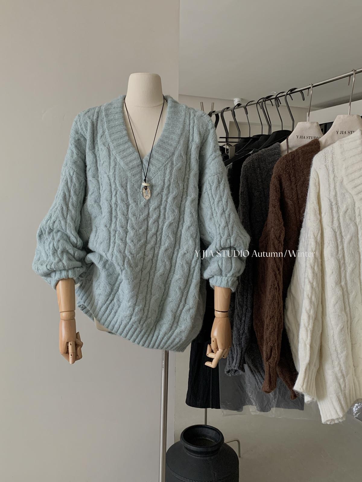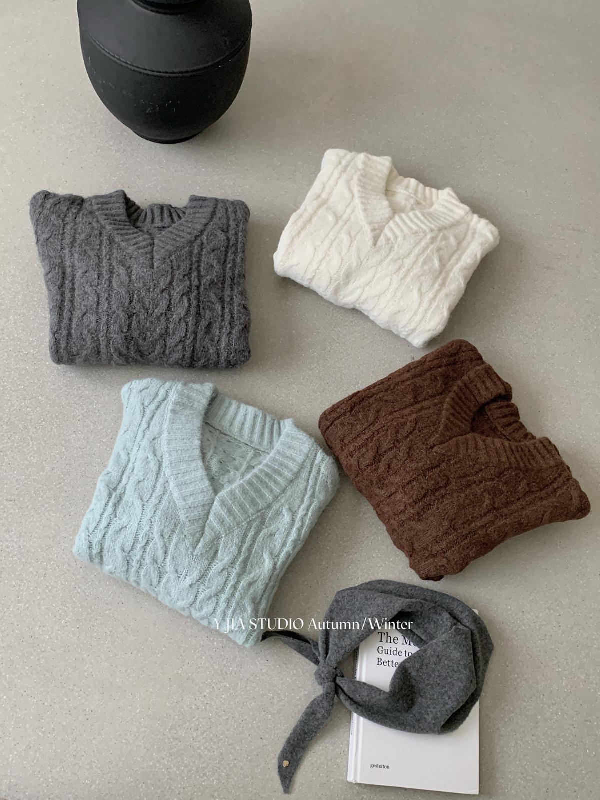 【C7748】大爆款!!!復古氣質高領套頭寬鬆顯瘦麻花別緻針織保暖毛衣