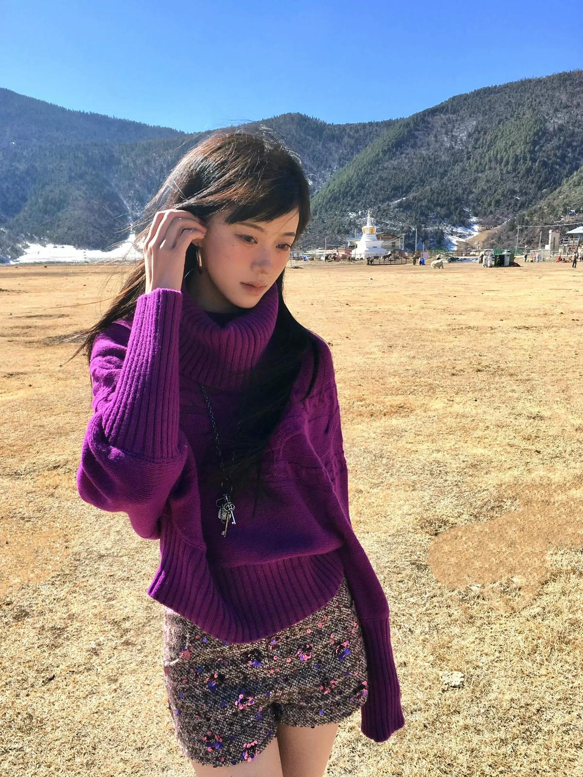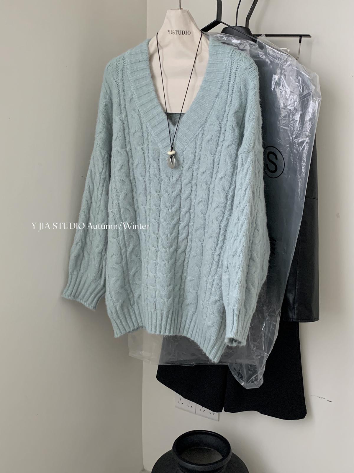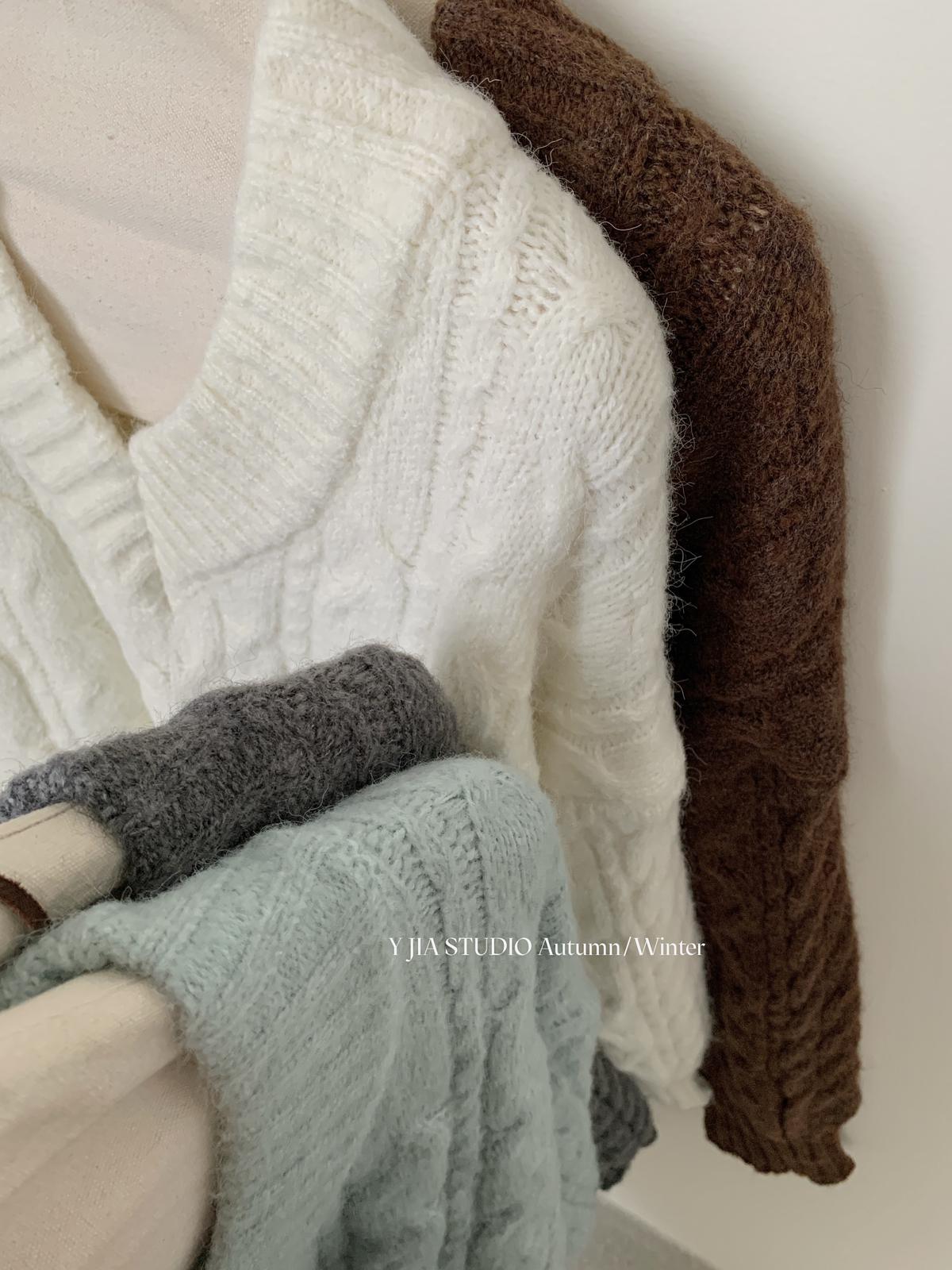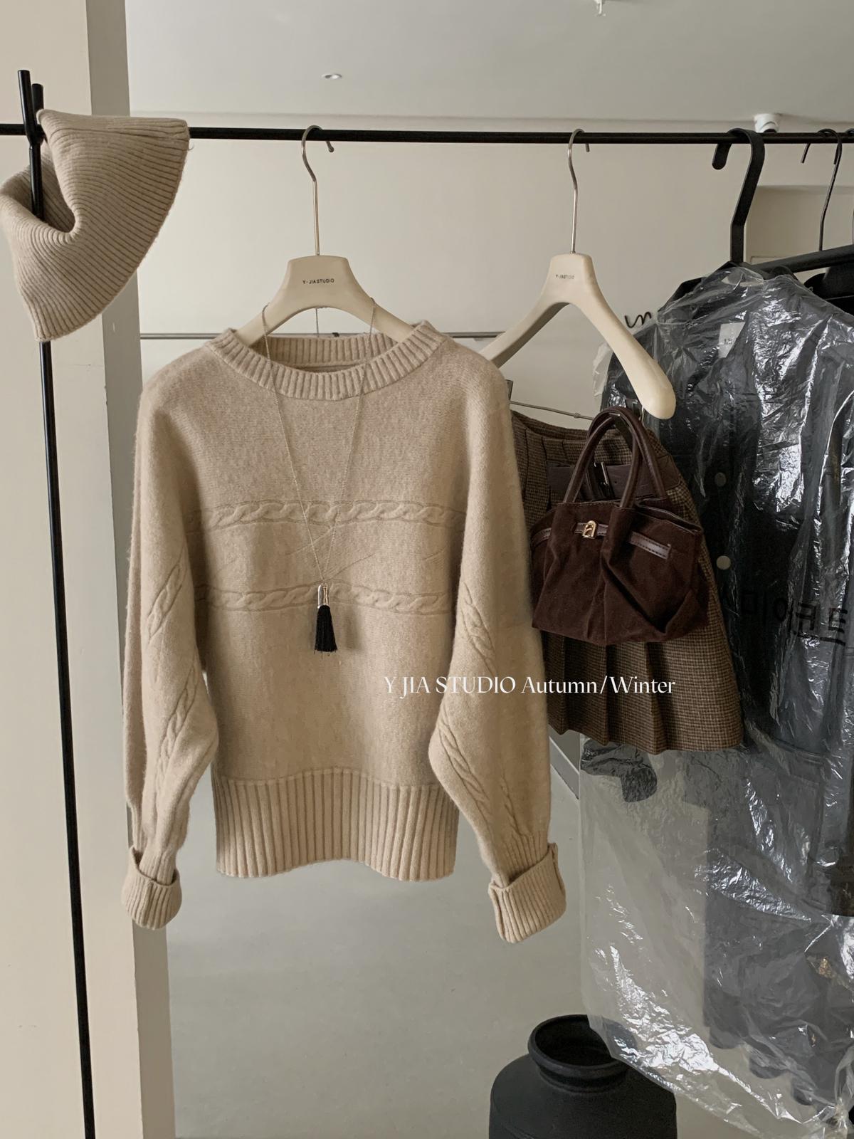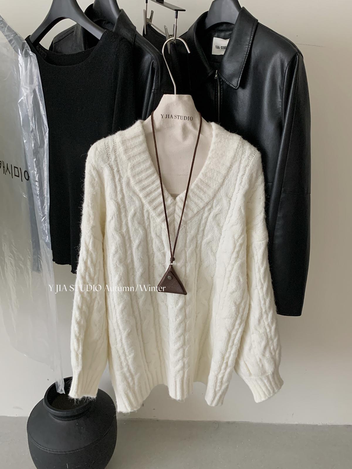 【C7748】大爆款!!!復古氣質高領套頭寬鬆顯瘦麻花別緻針織保暖毛衣