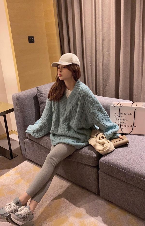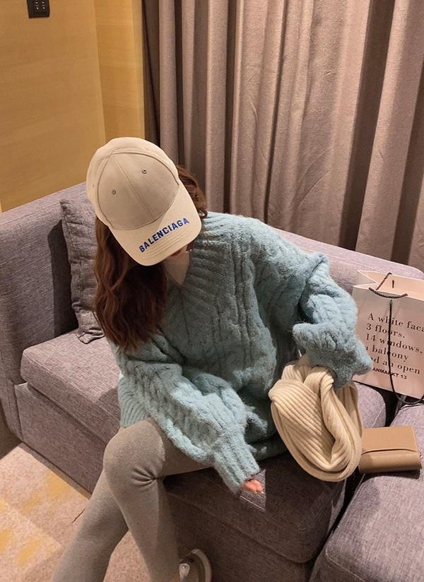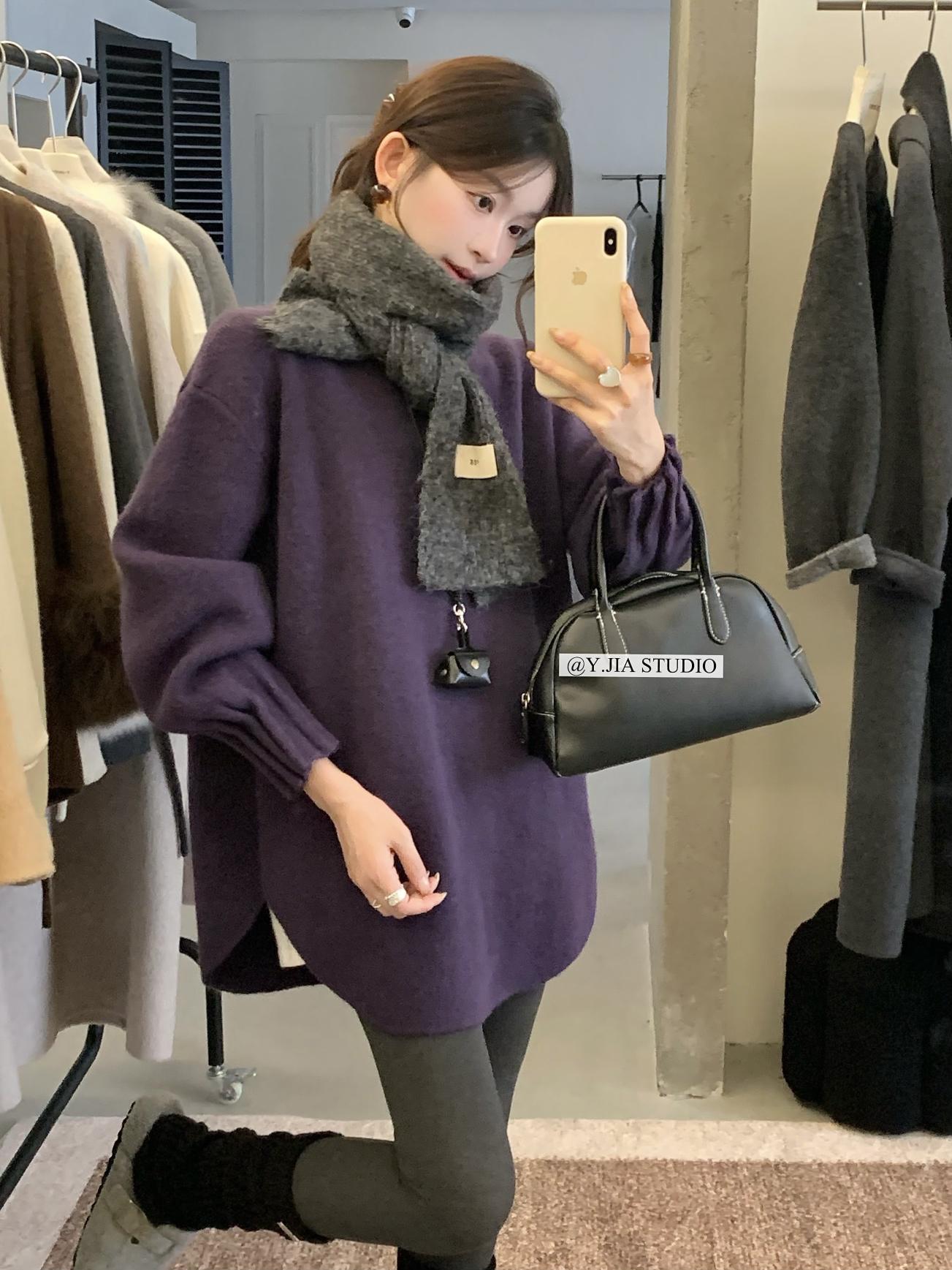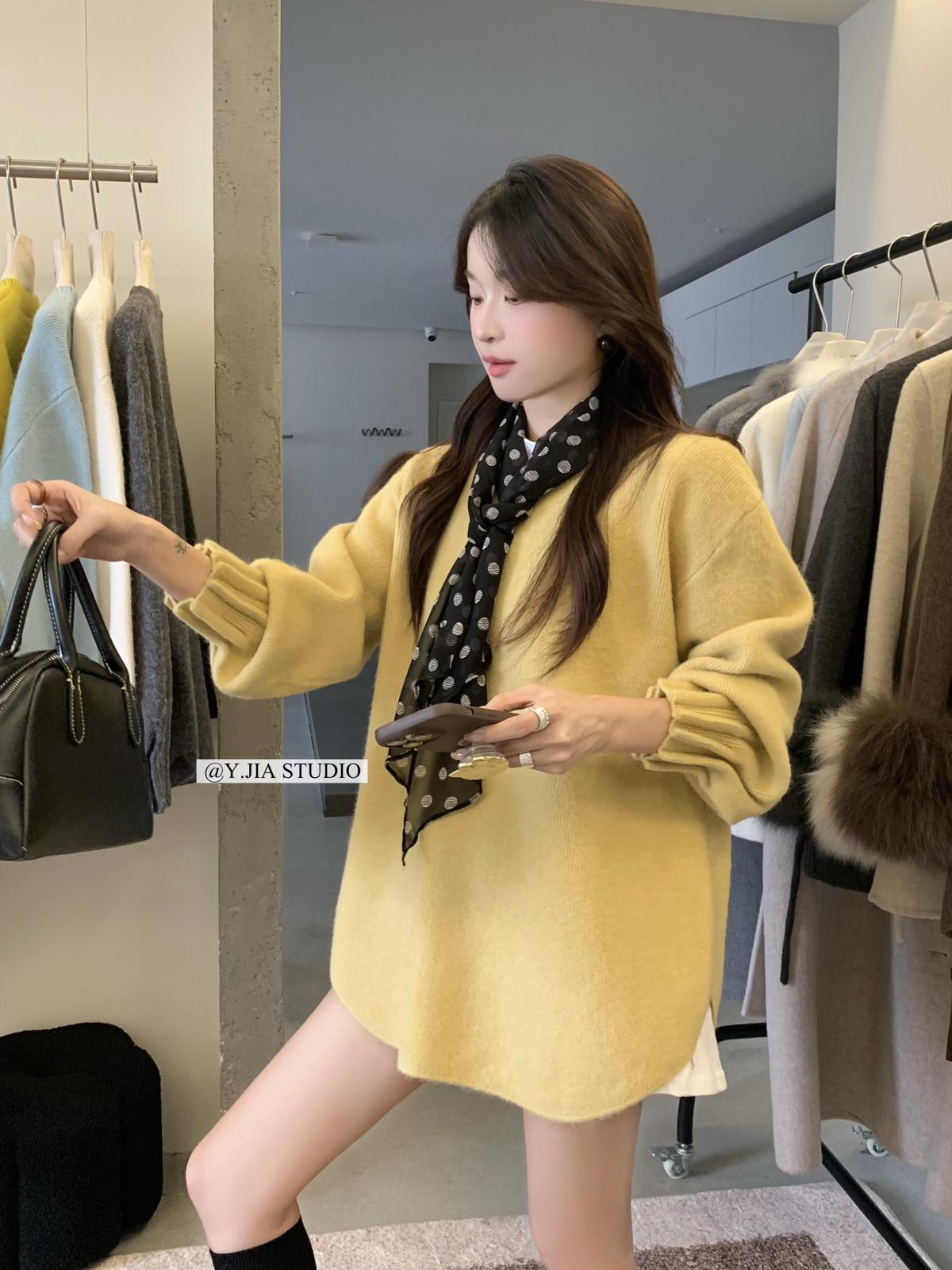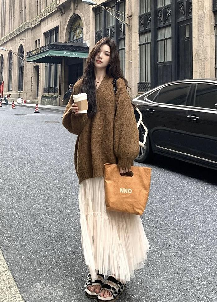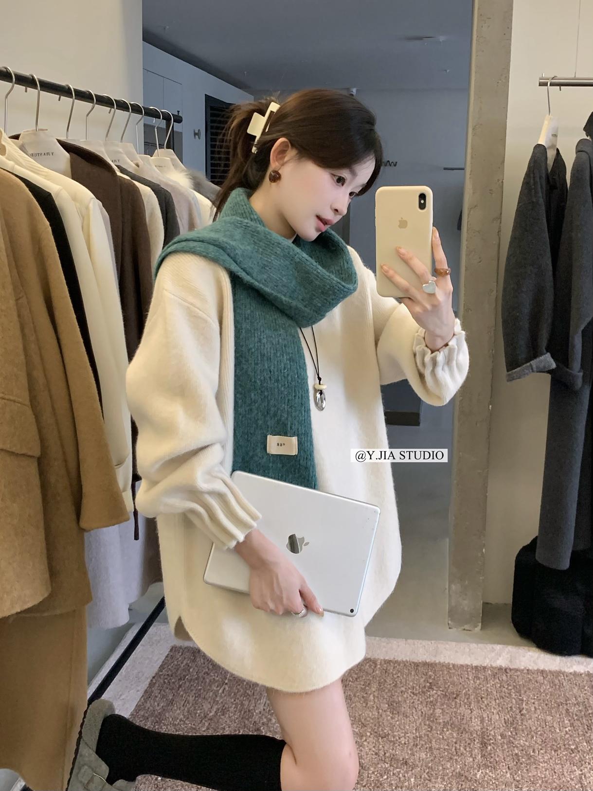 【C7749】慵懶風~加厚軟糯V領套頭寬鬆中長款針織毛衣韓系穿搭保暖毛衣