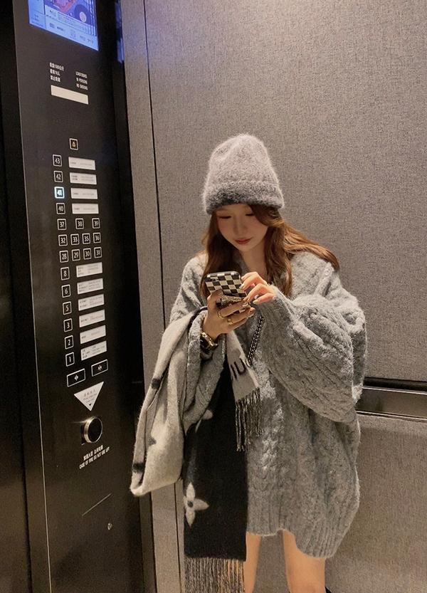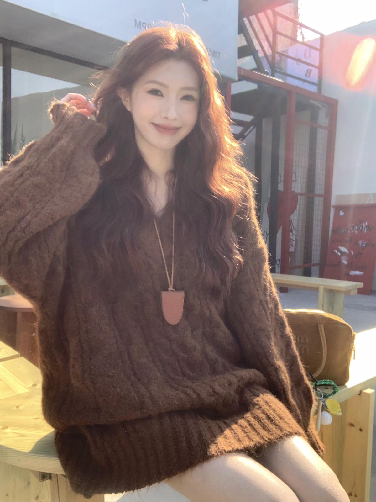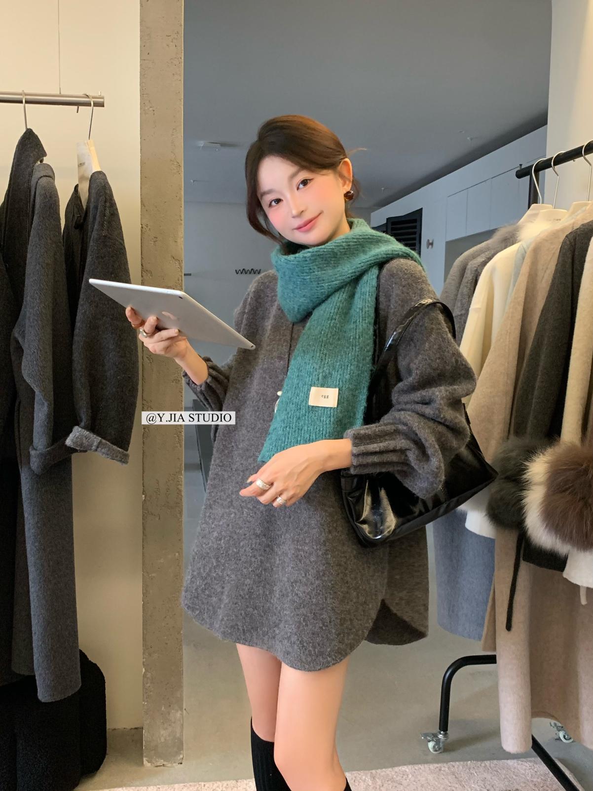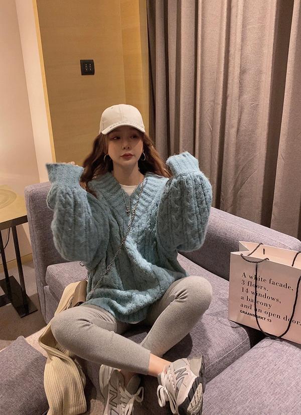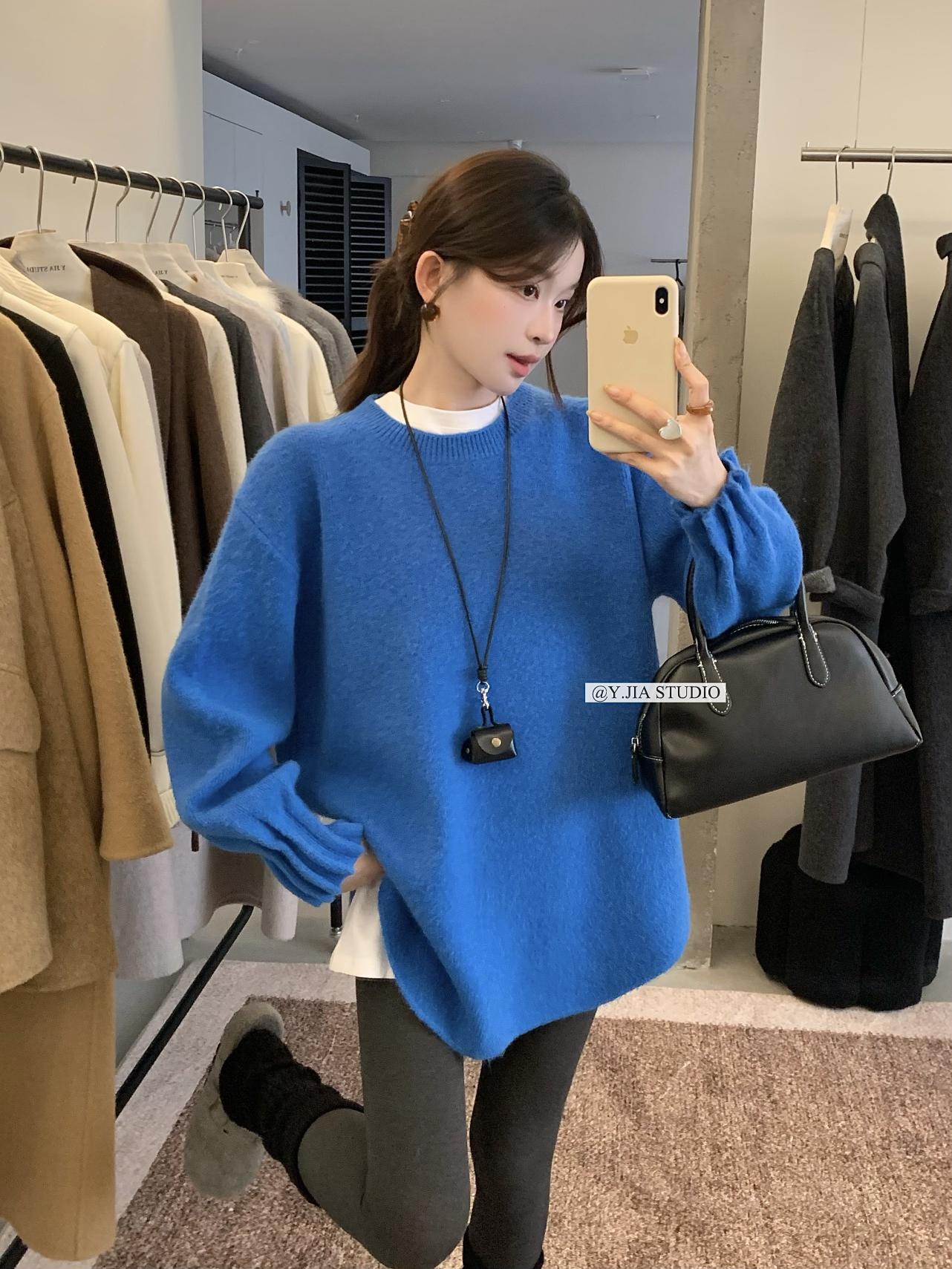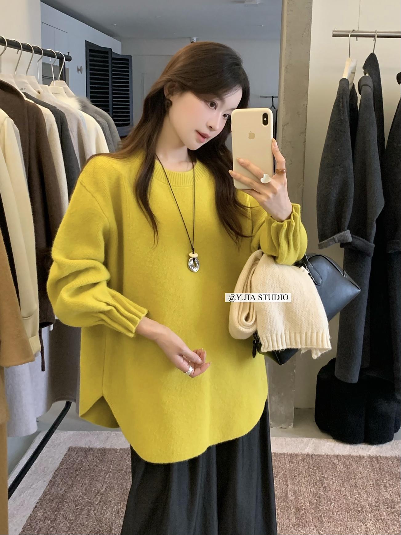 【C7749】慵懶風~加厚軟糯V領套頭寬鬆中長款針織毛衣韓系穿搭保暖毛衣