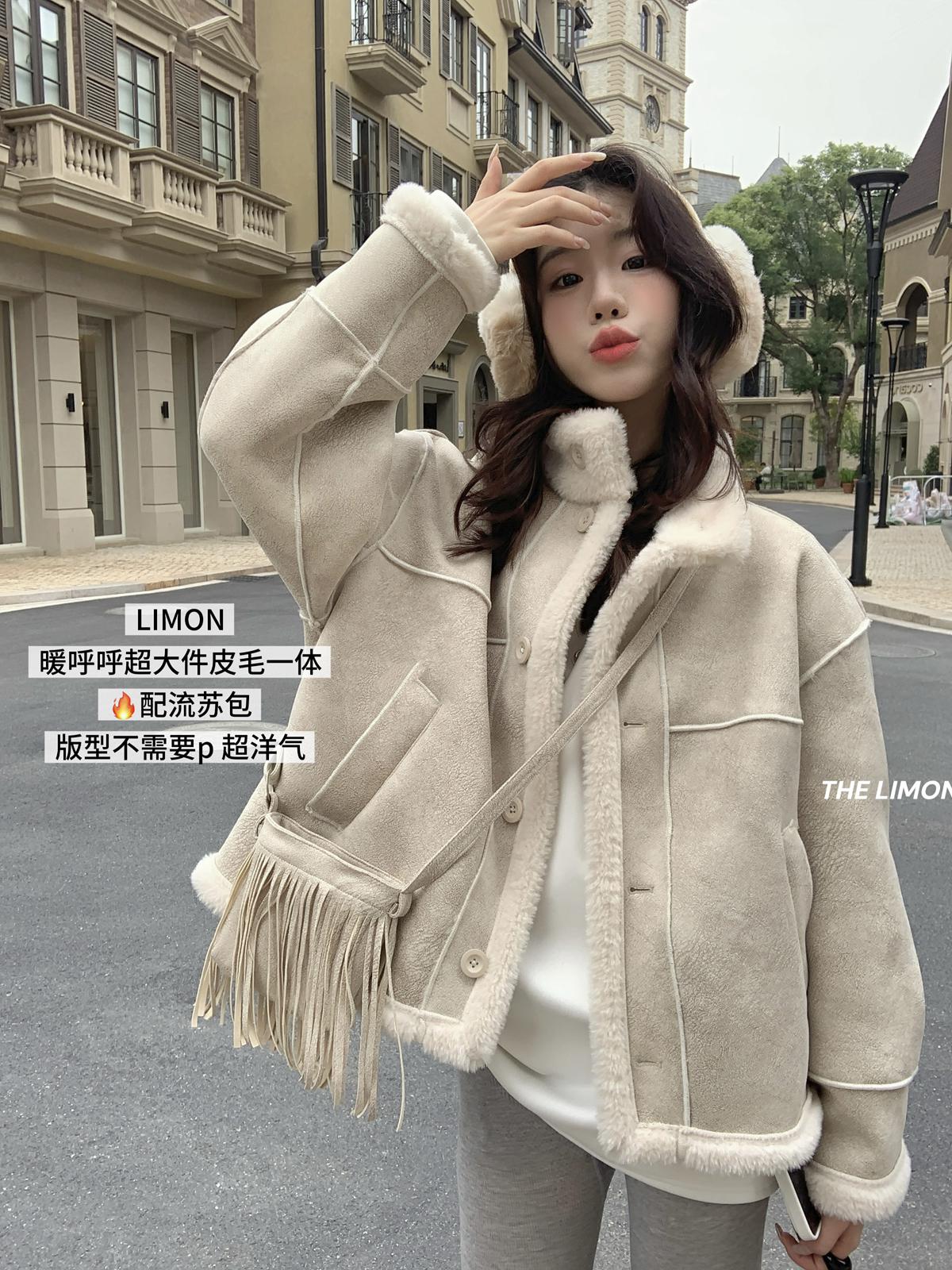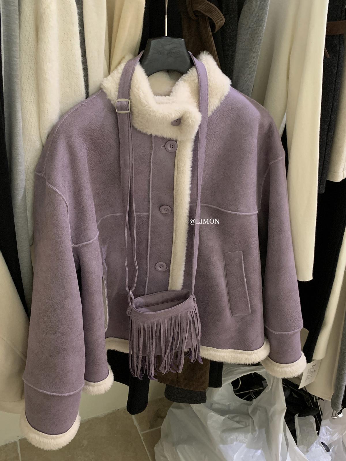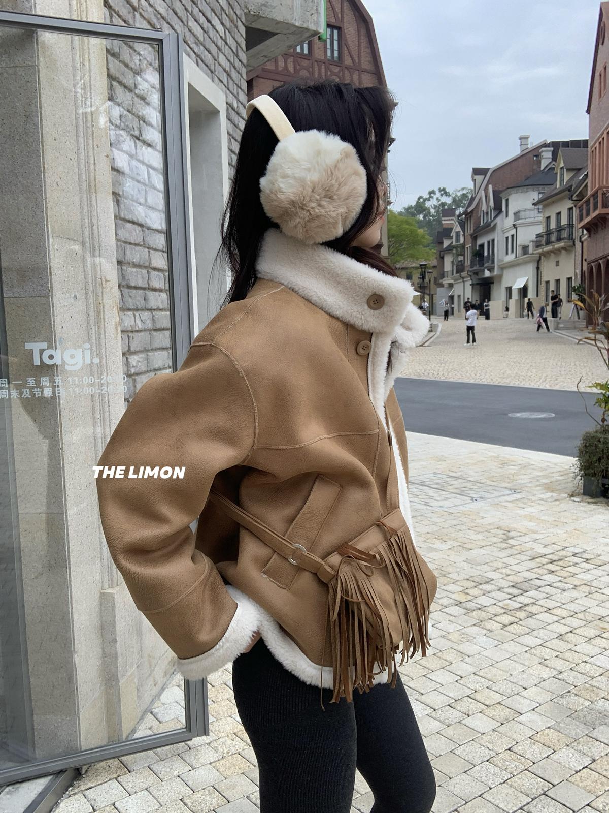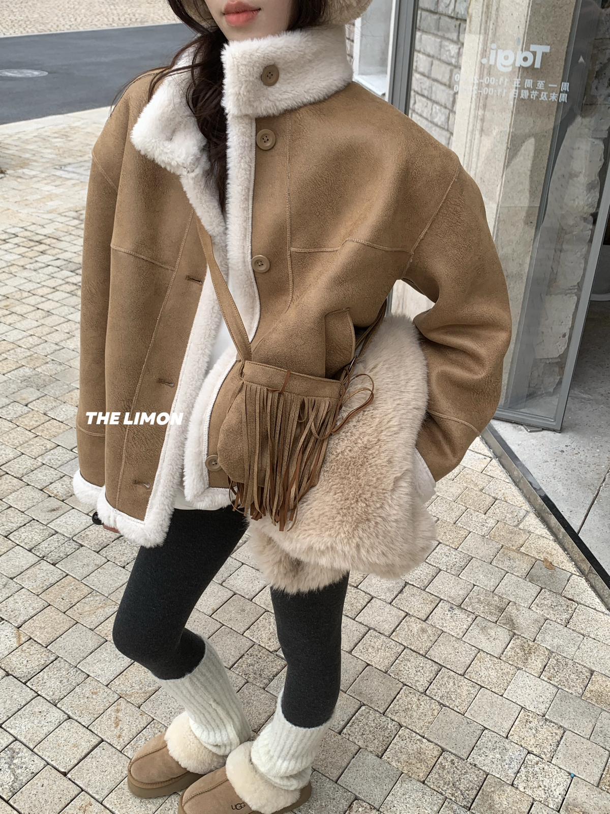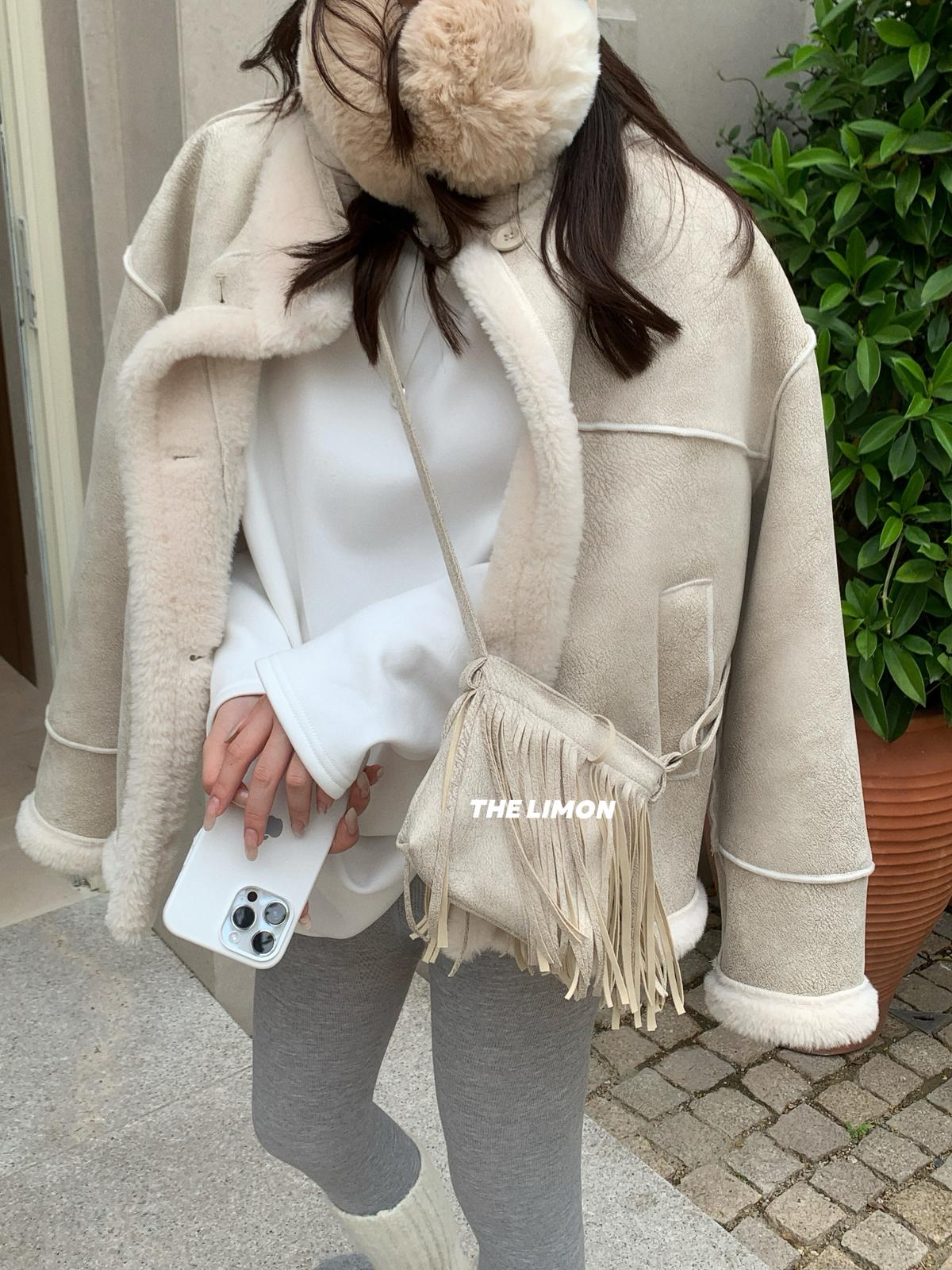 【C7769】巨好看!保暖立領仿皮毛一體短外套(配流蘇包)