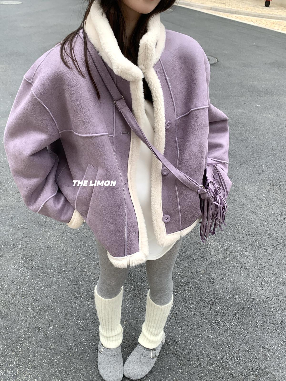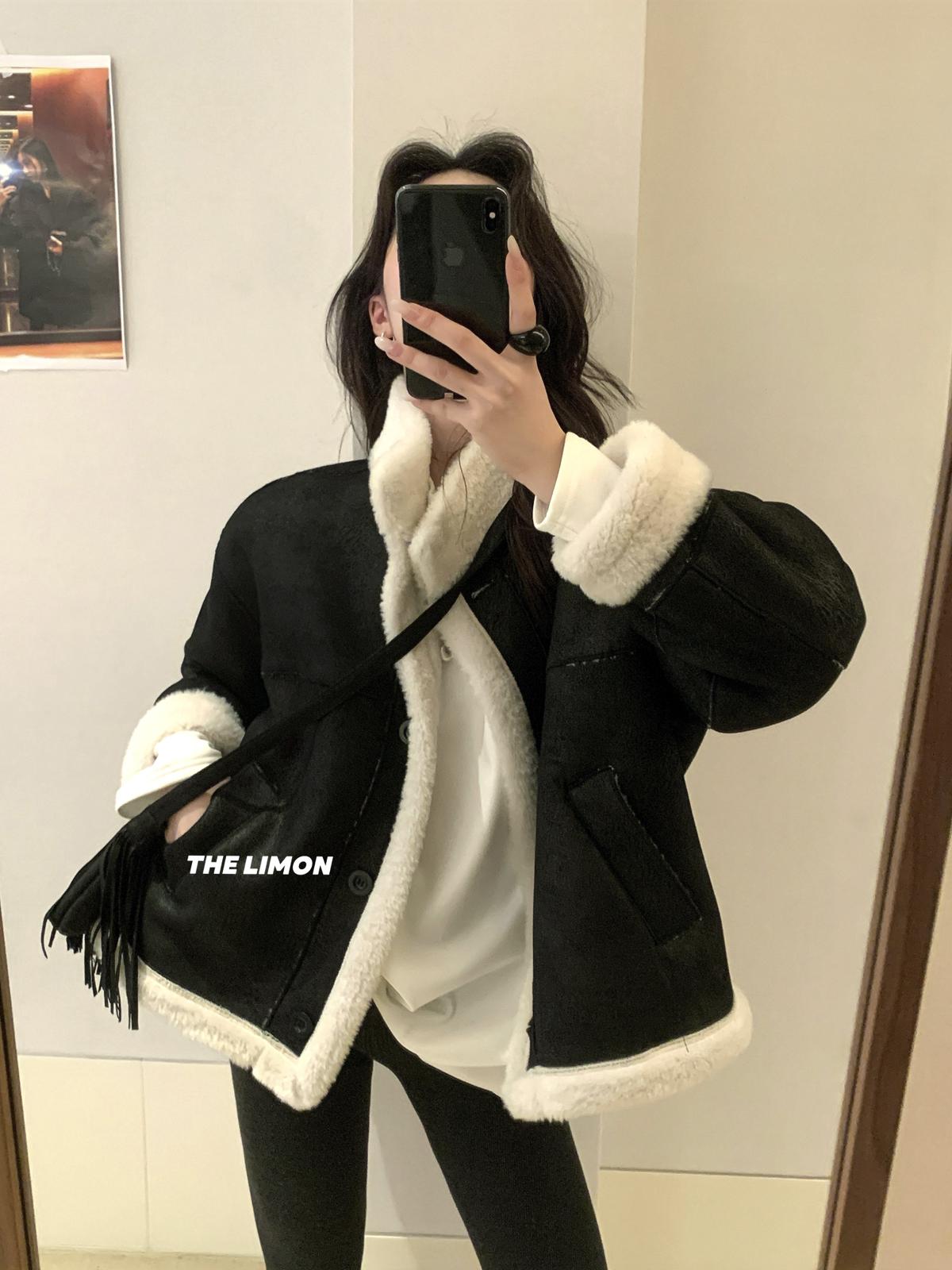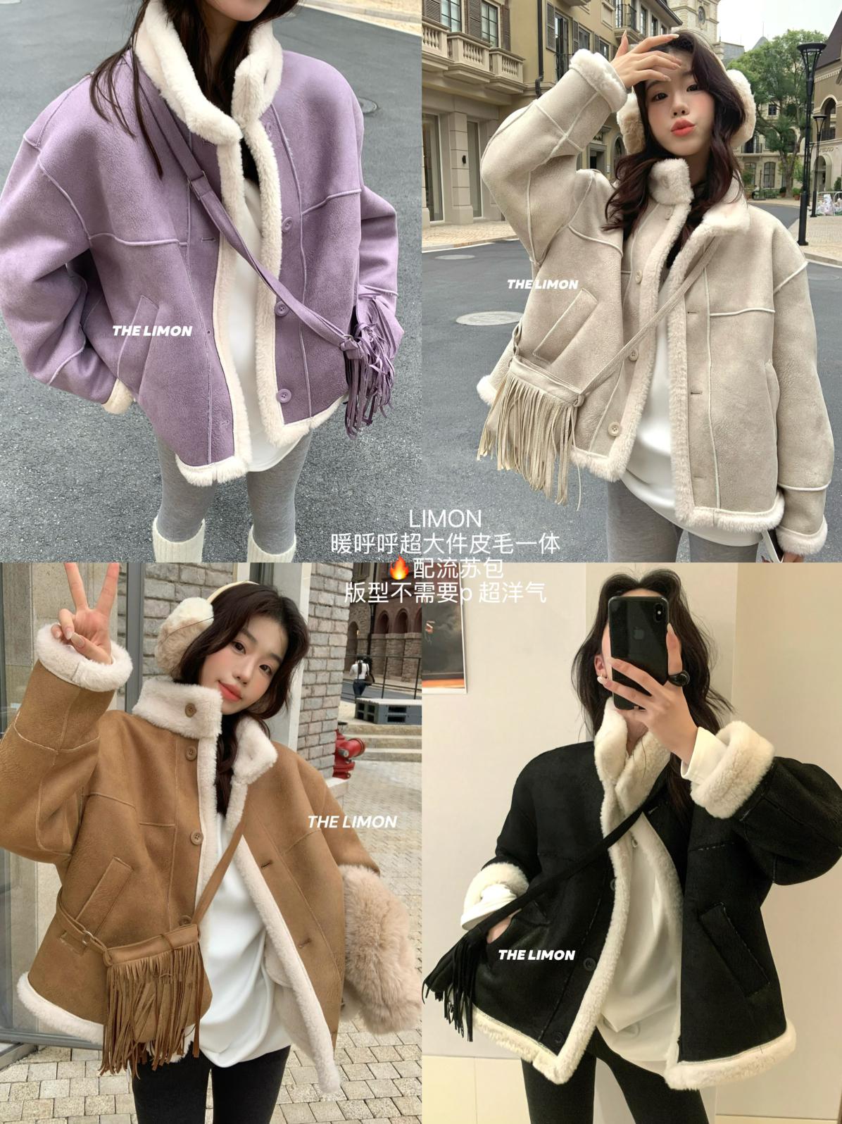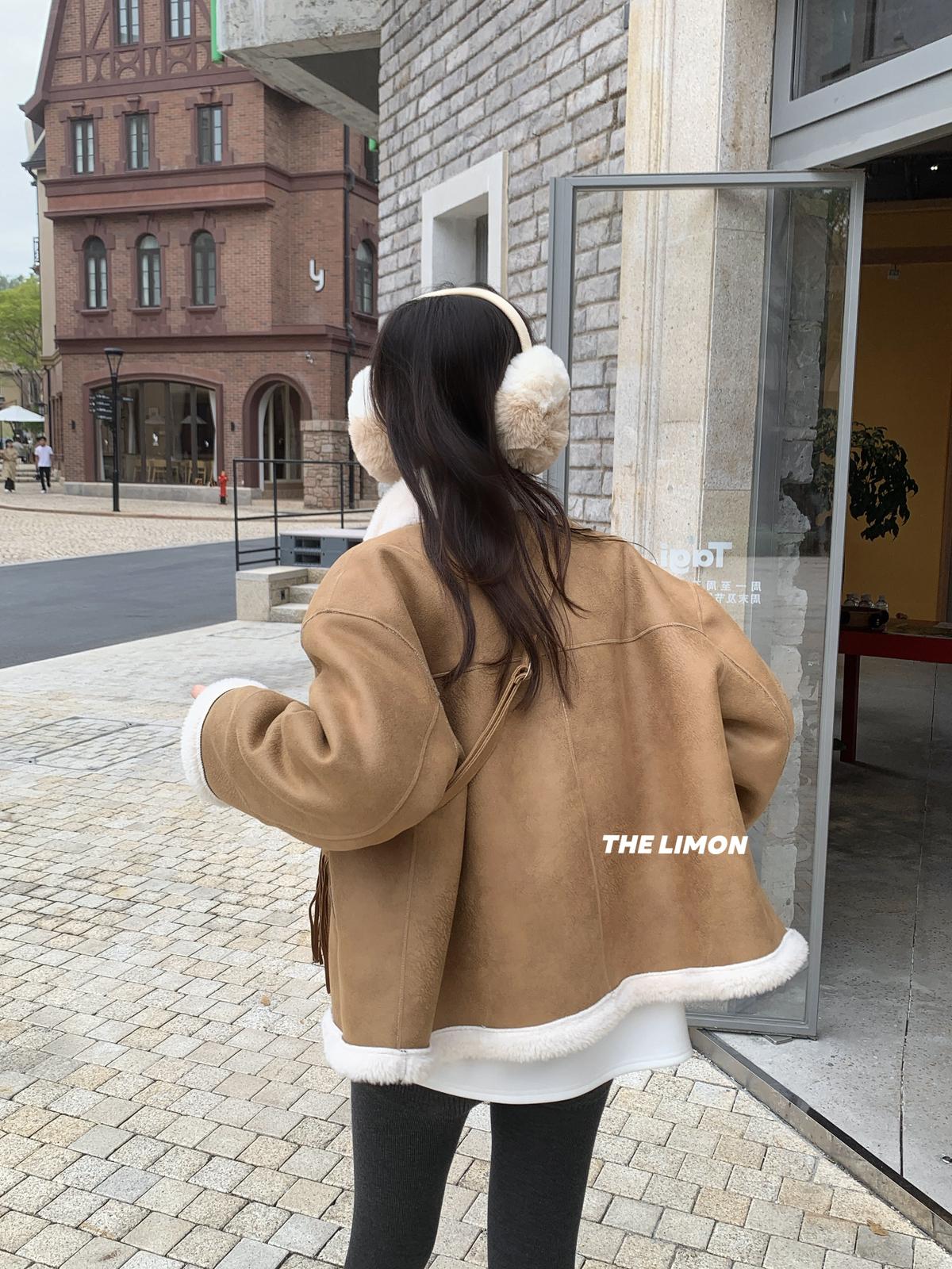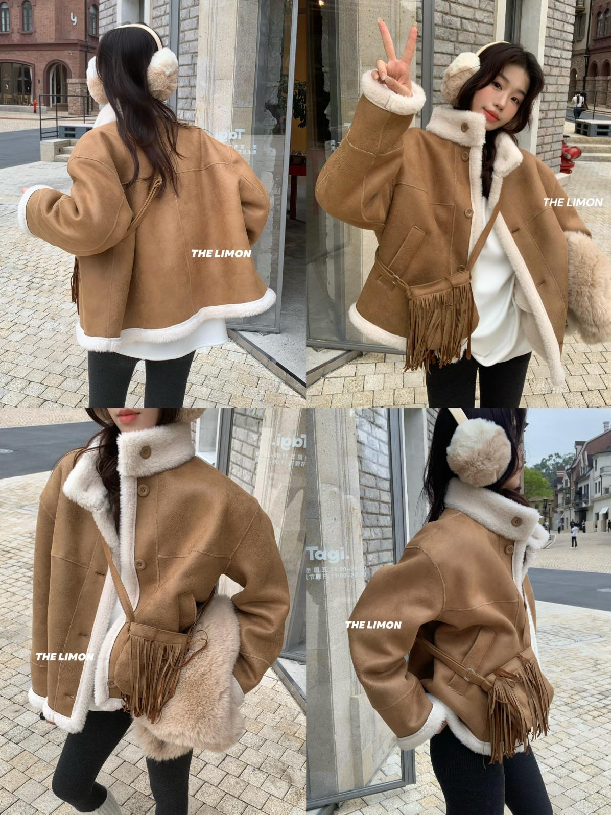 【C7769】巨好看!保暖立領仿皮毛一體短外套(配流蘇包)