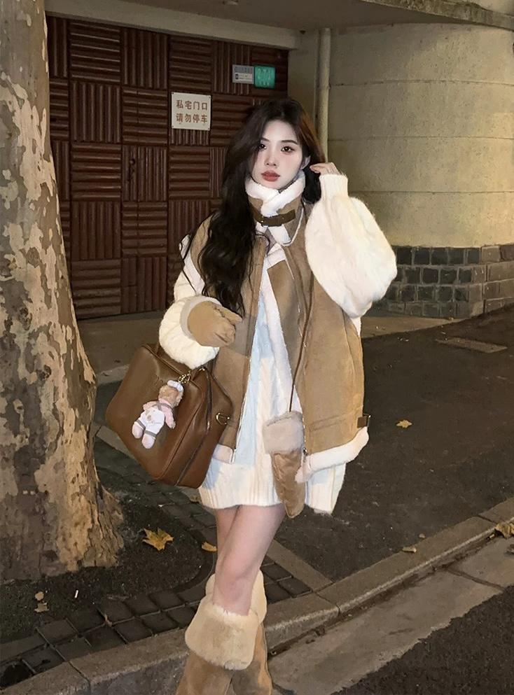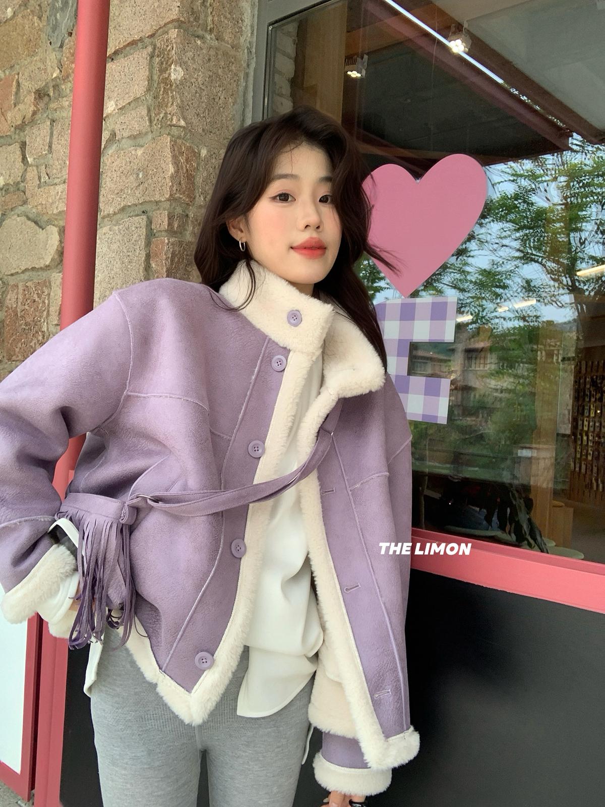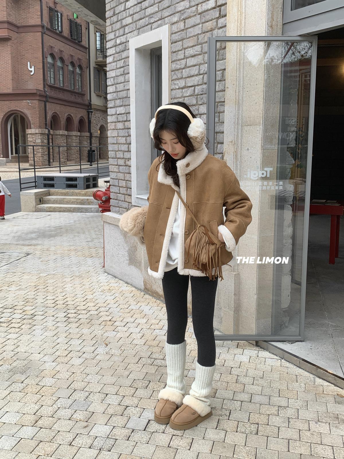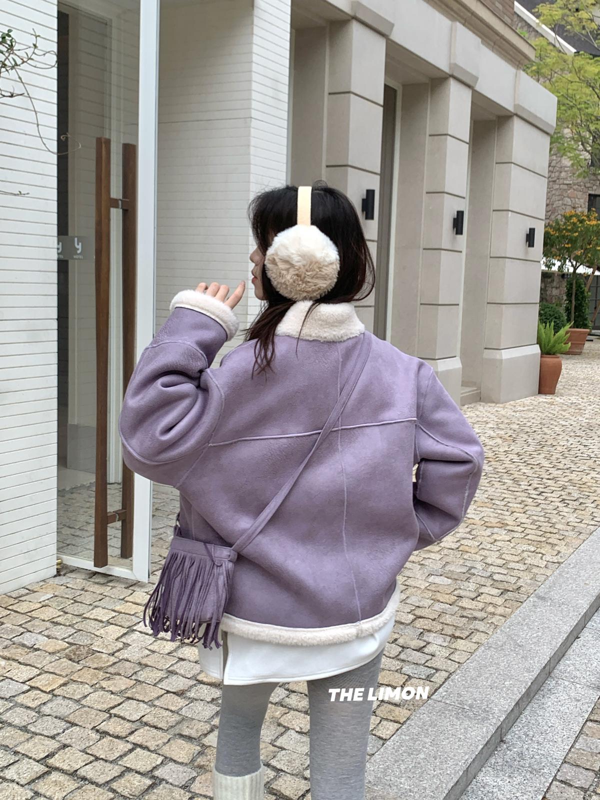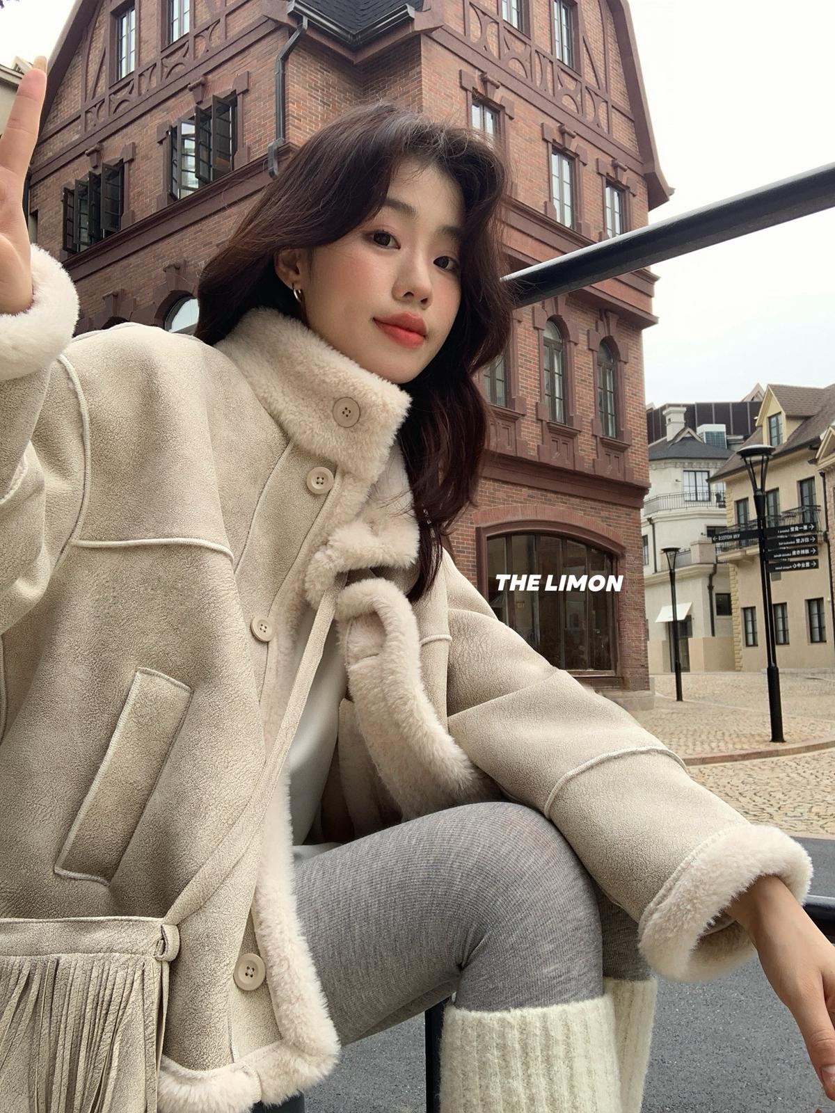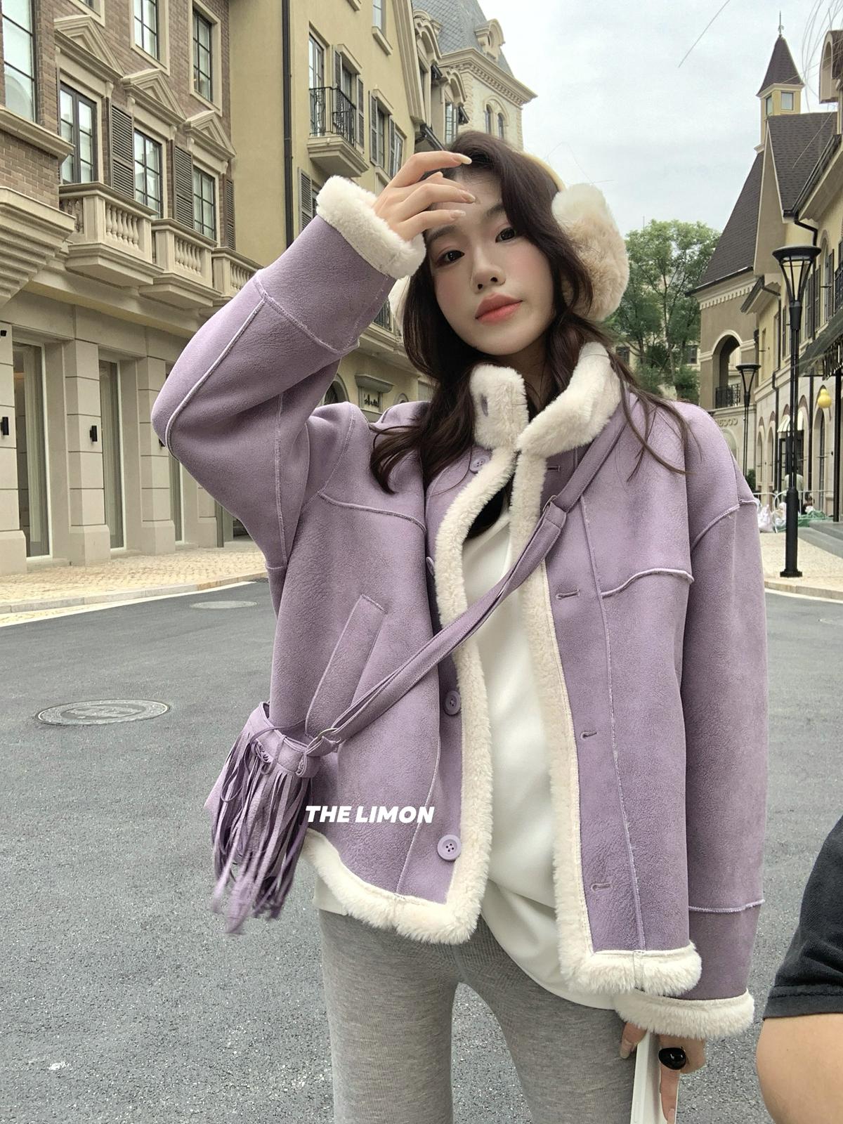 【C7769】巨好看!保暖立領仿皮毛一體短外套(配流蘇包)