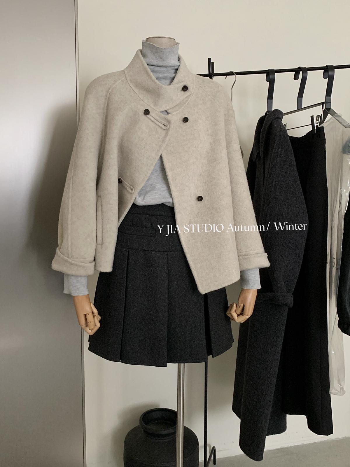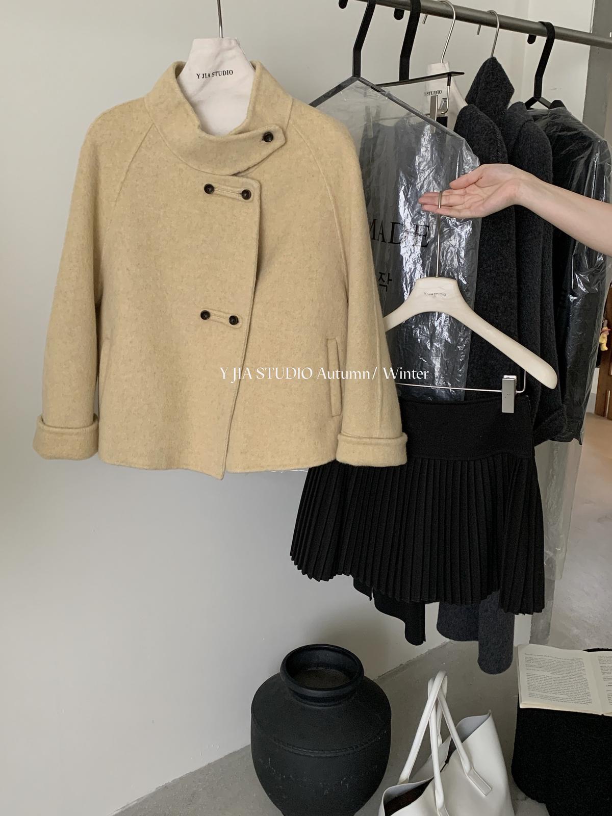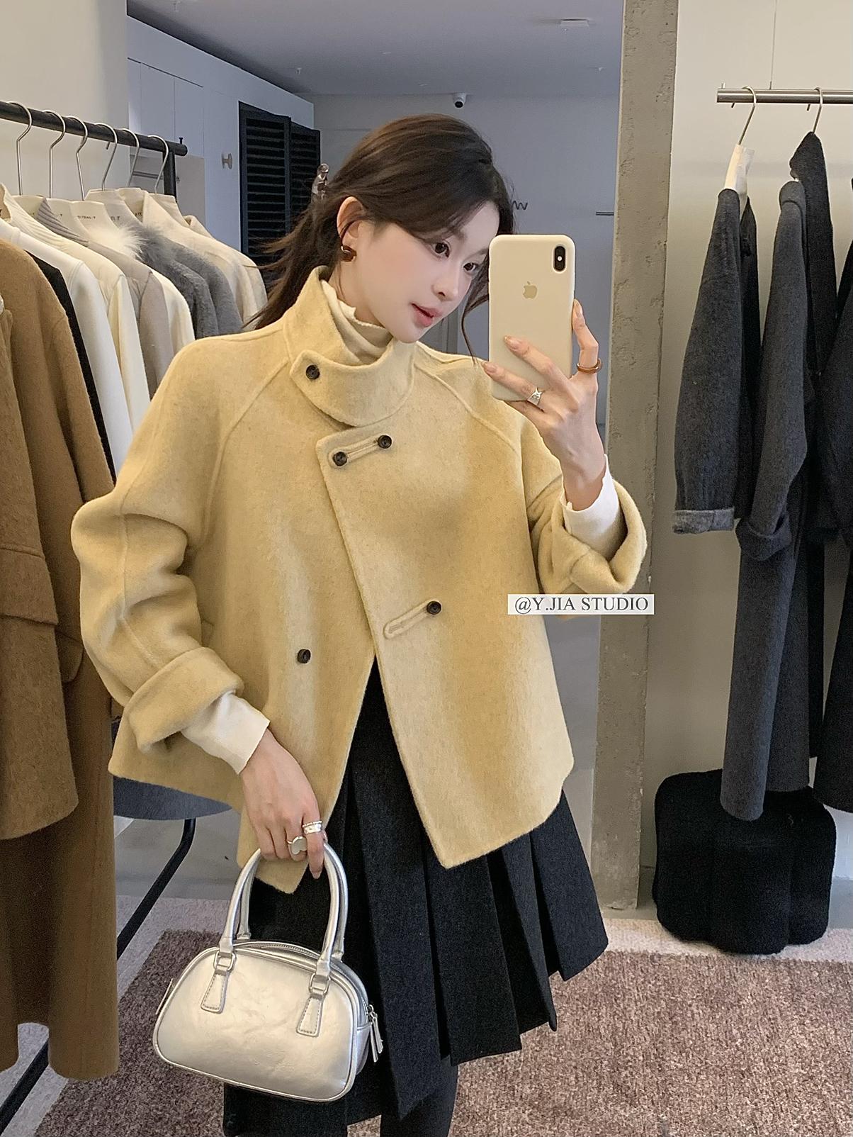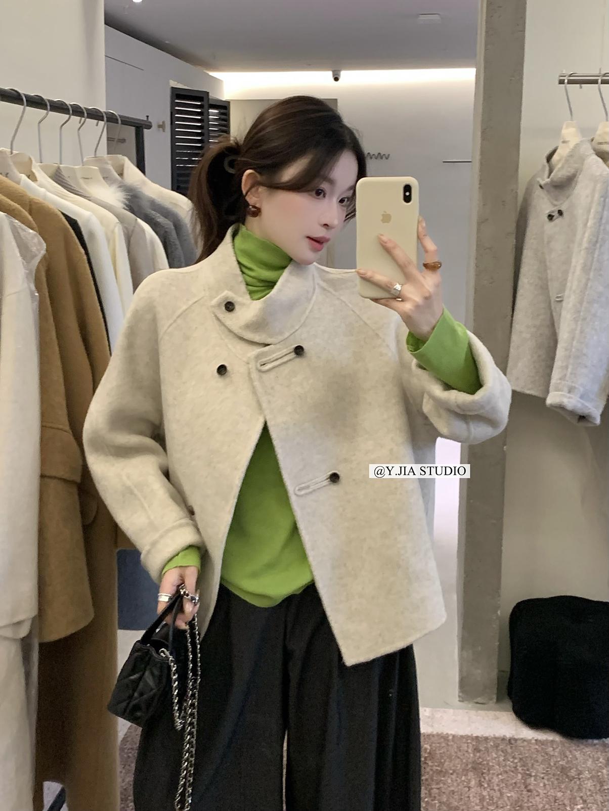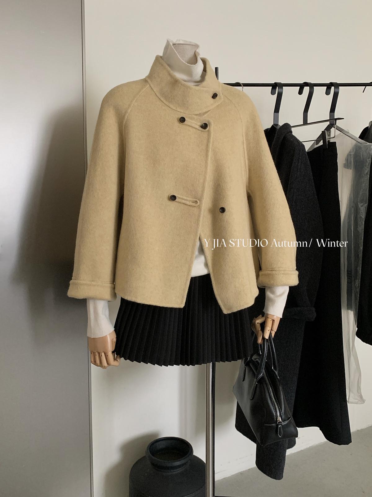 【C7752】設計感立領短款雙面女獨特超好看羊毛外套(含100%澳毛)