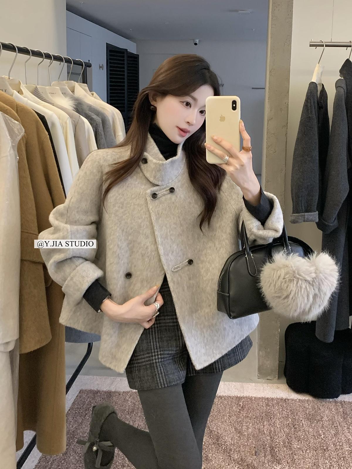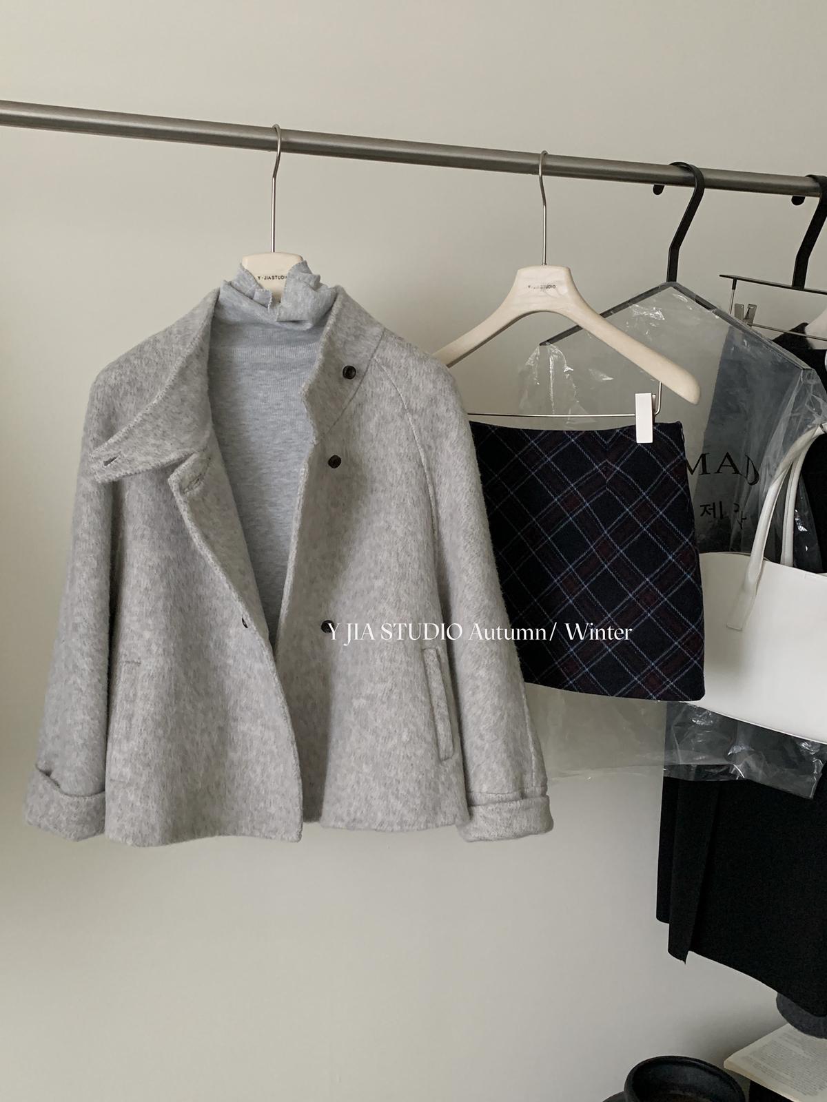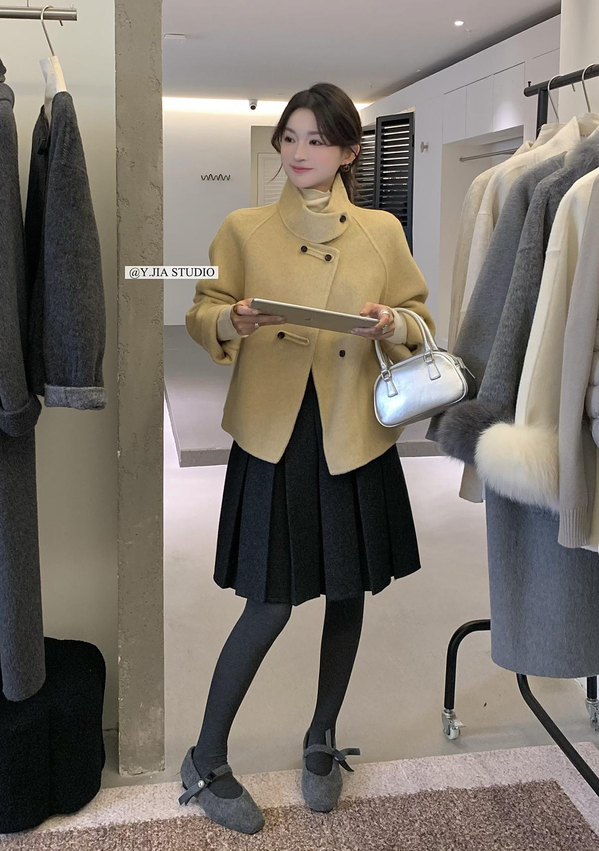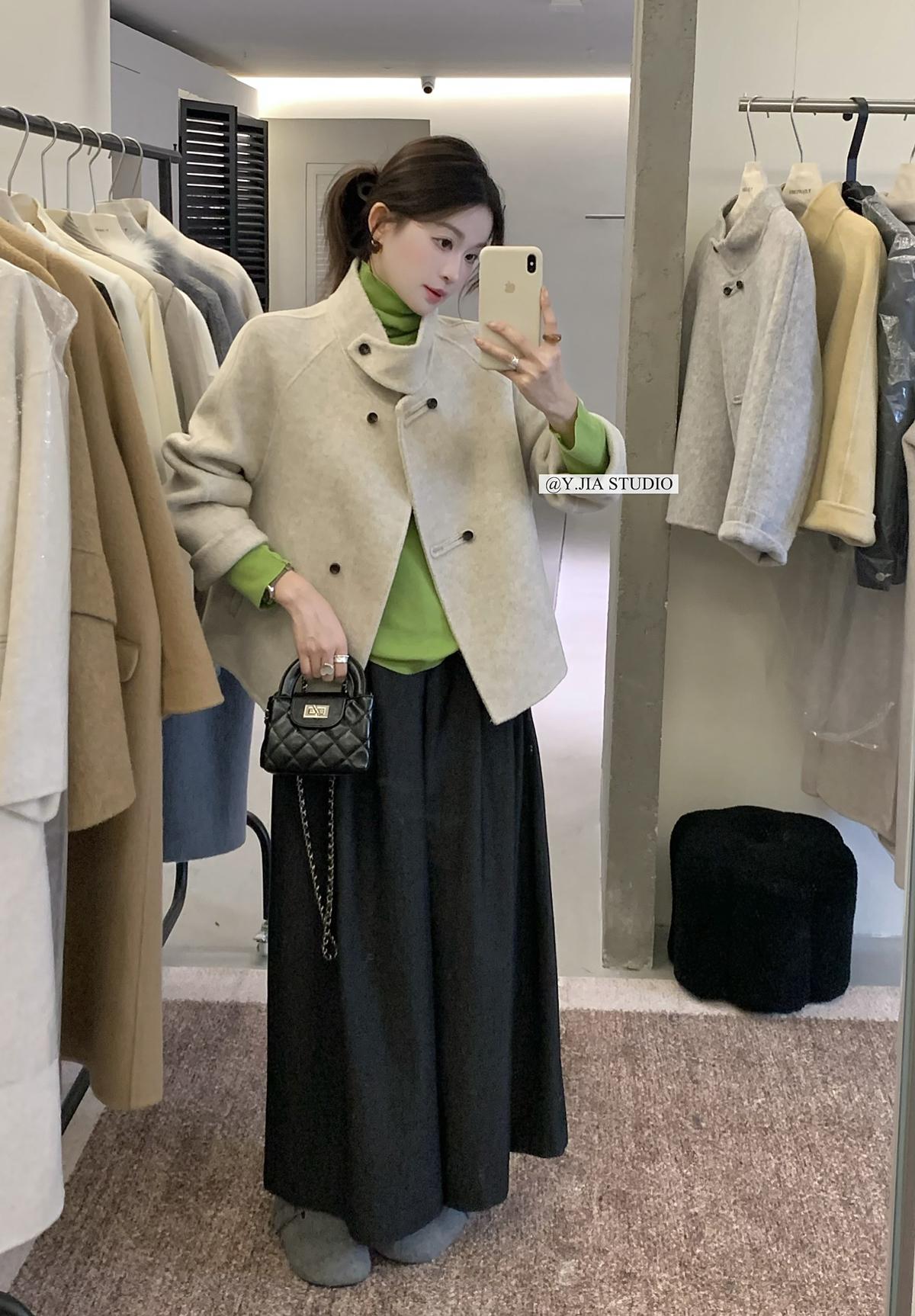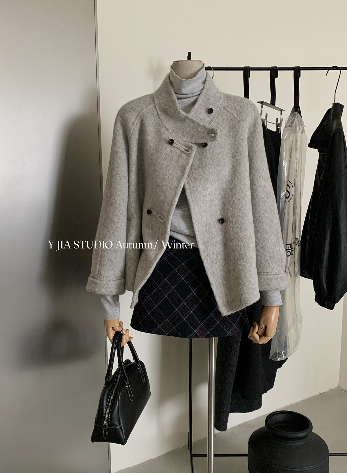 【C7752】設計感立領短款雙面女獨特超好看羊毛外套(含100%澳毛)