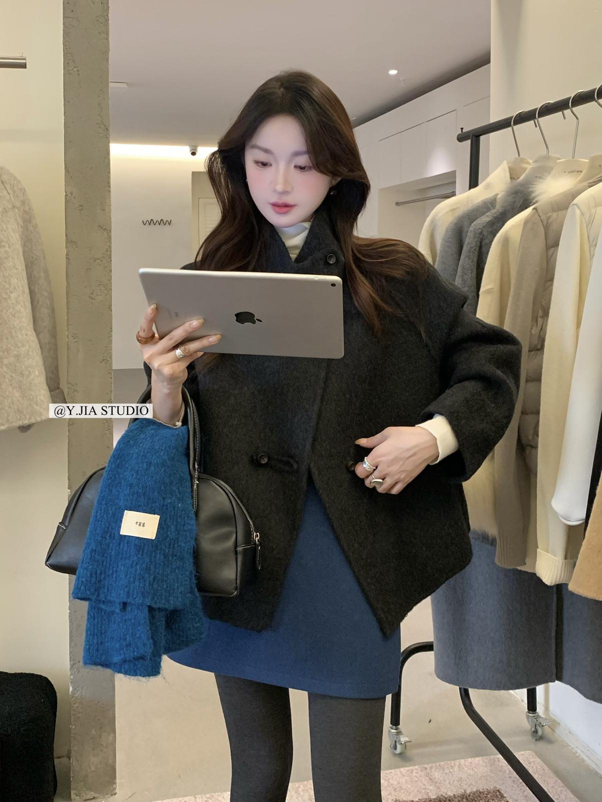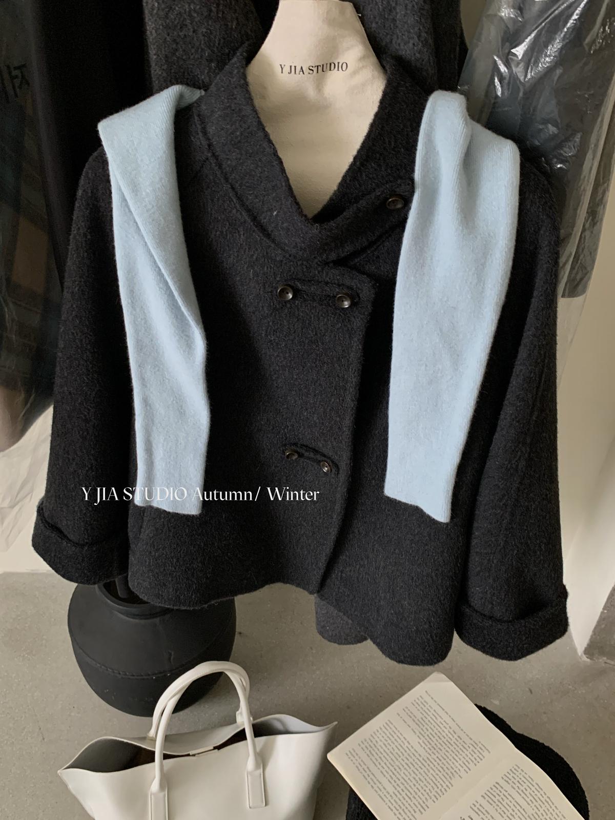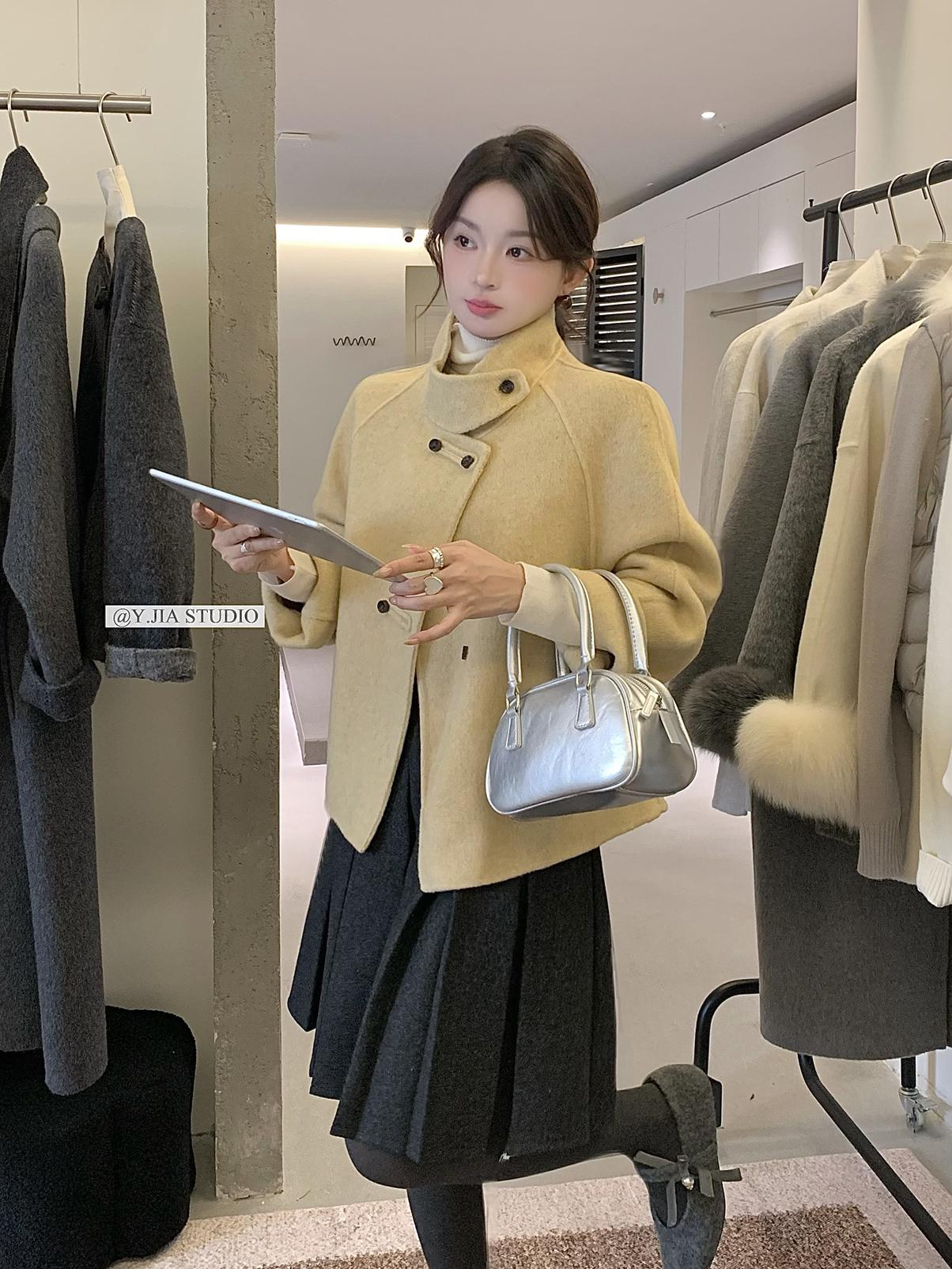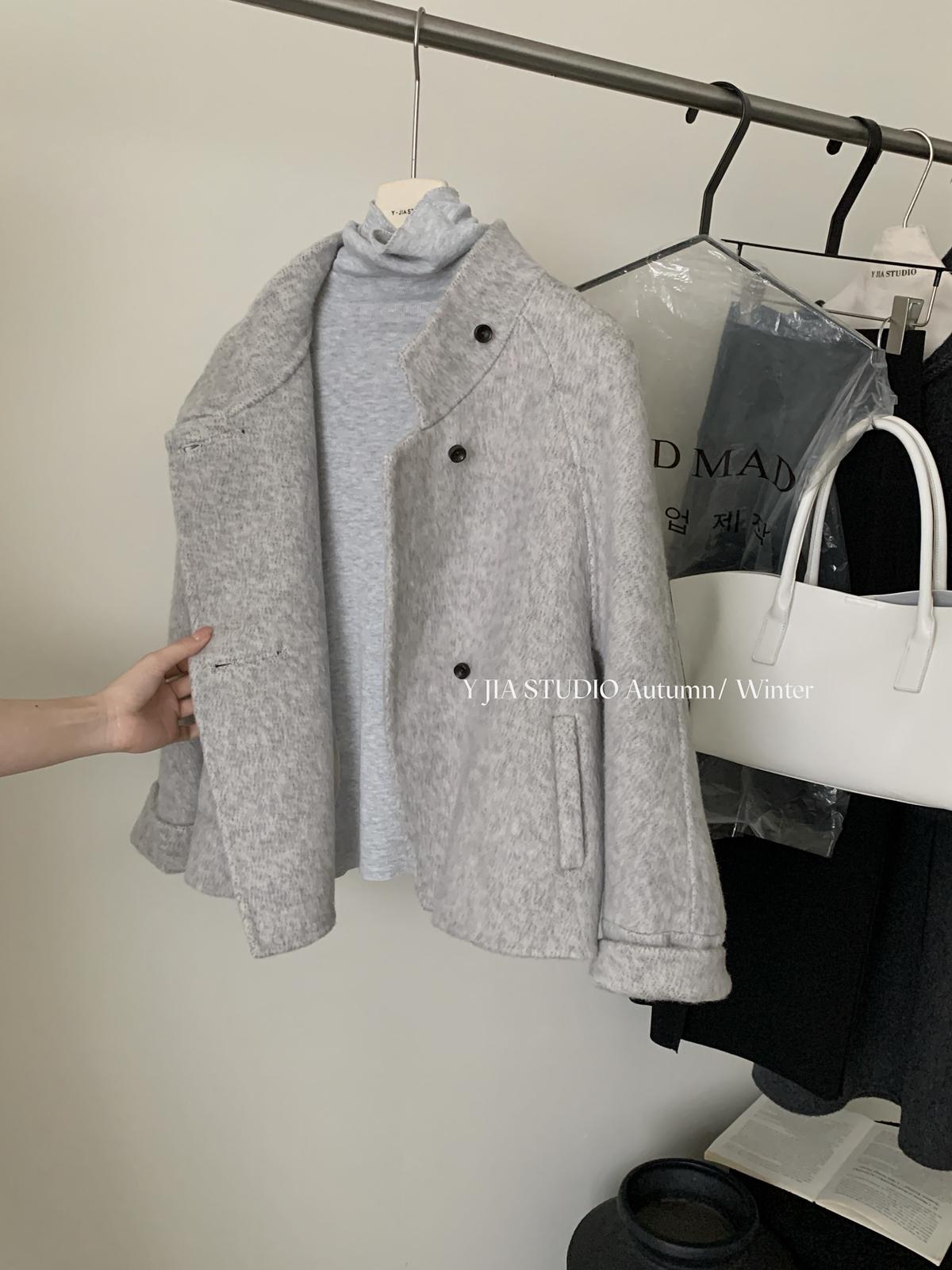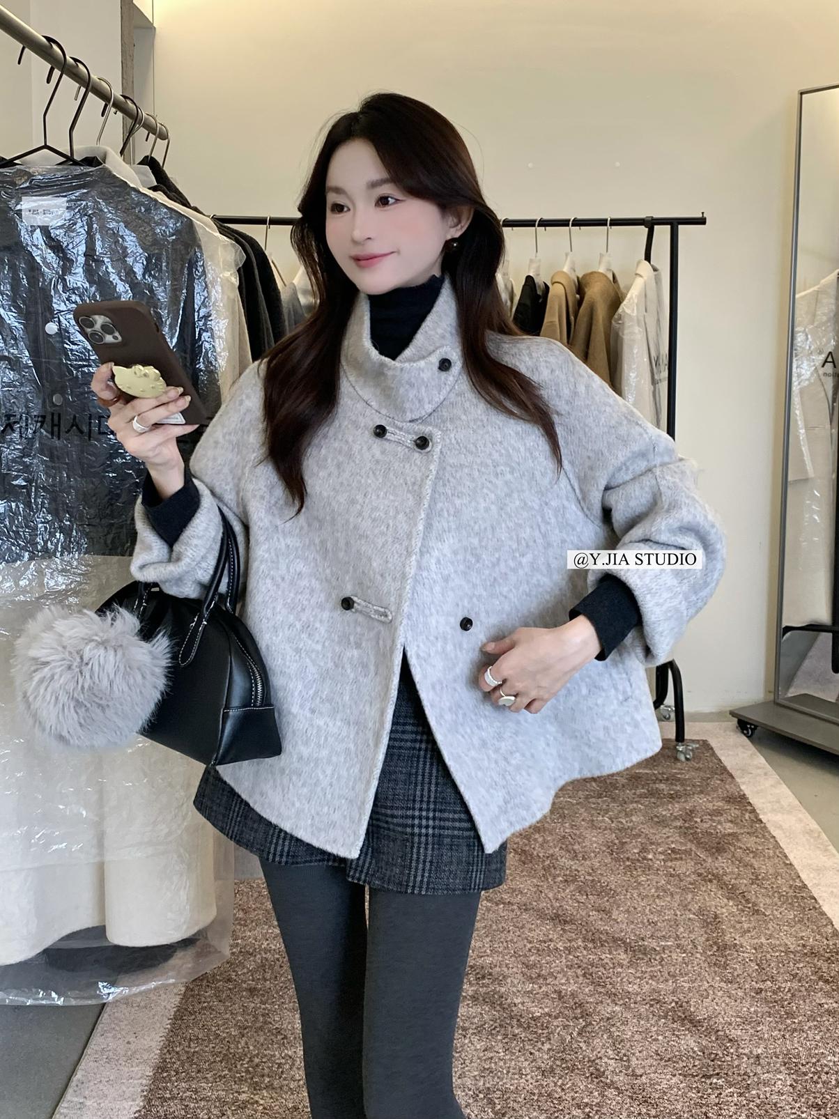 【C7752】設計感立領短款雙面女獨特超好看羊毛外套(含100%澳毛)