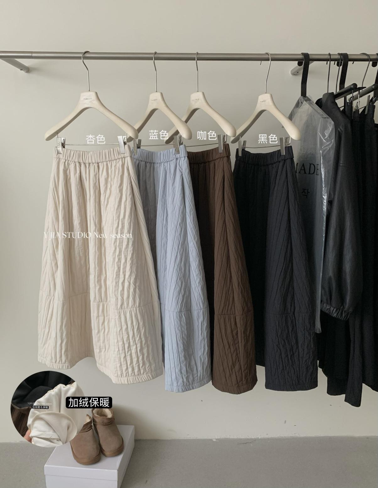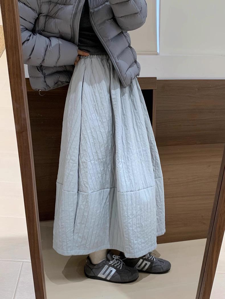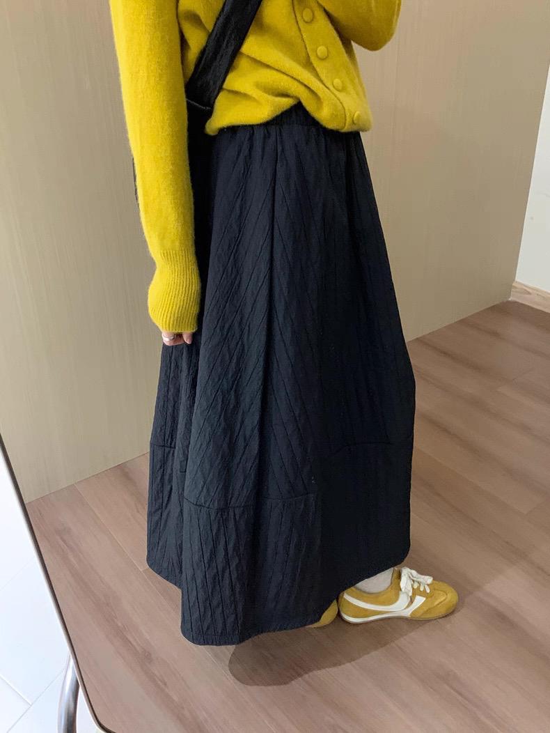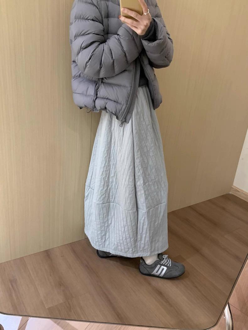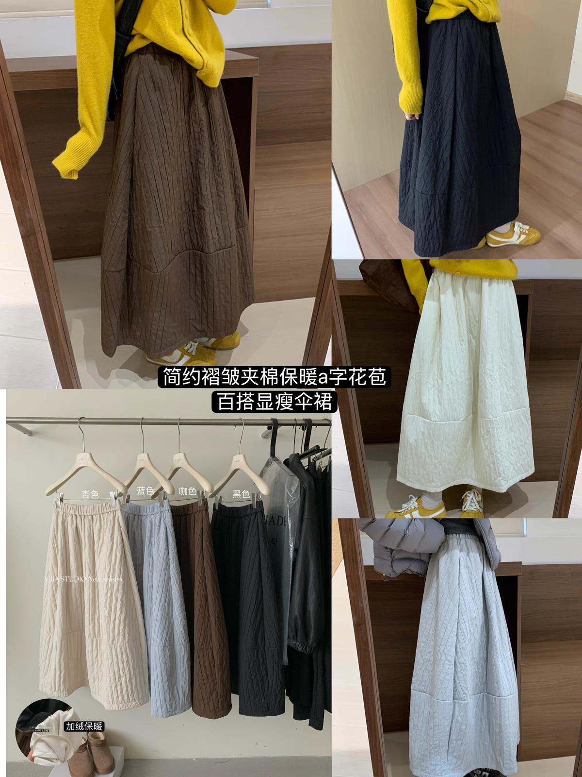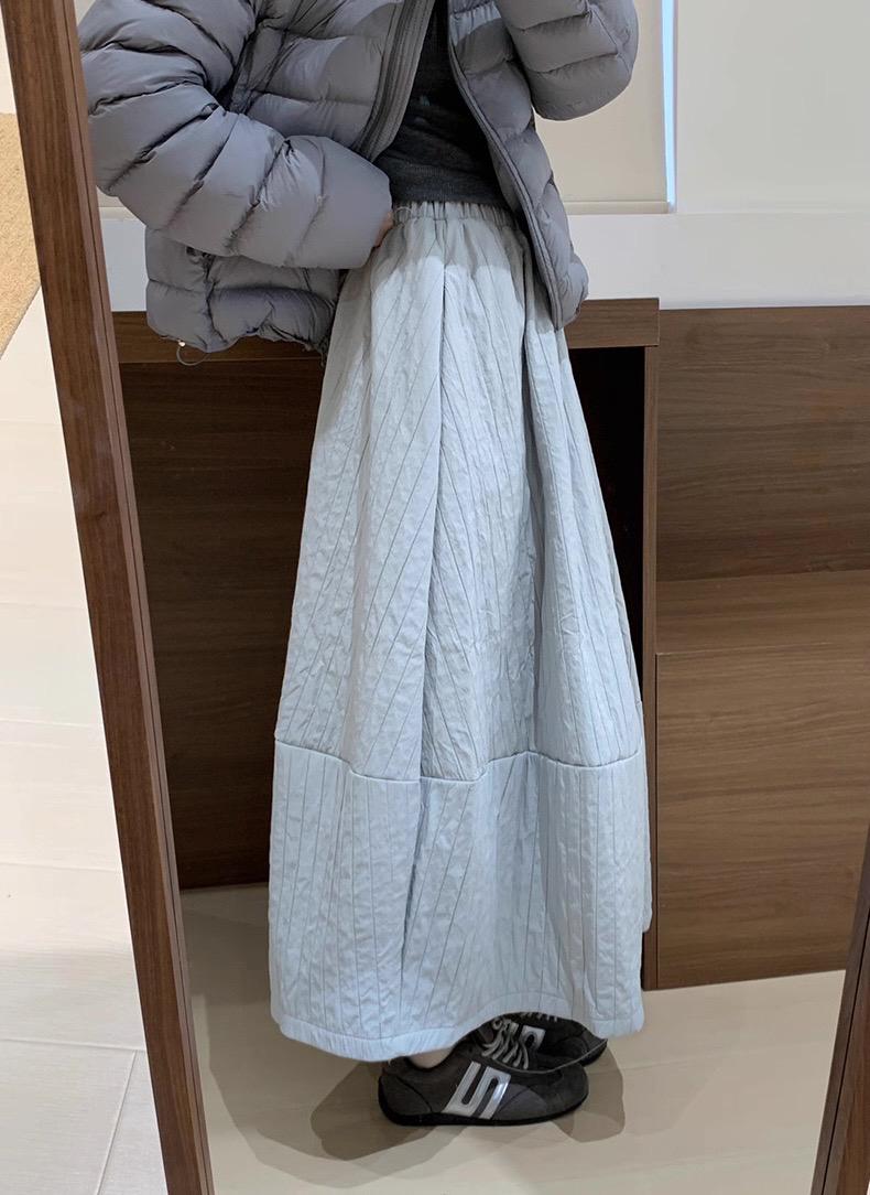 【C7754】簡約褶皺夾棉保暖a字花苞百搭顯瘦傘裙半身裙