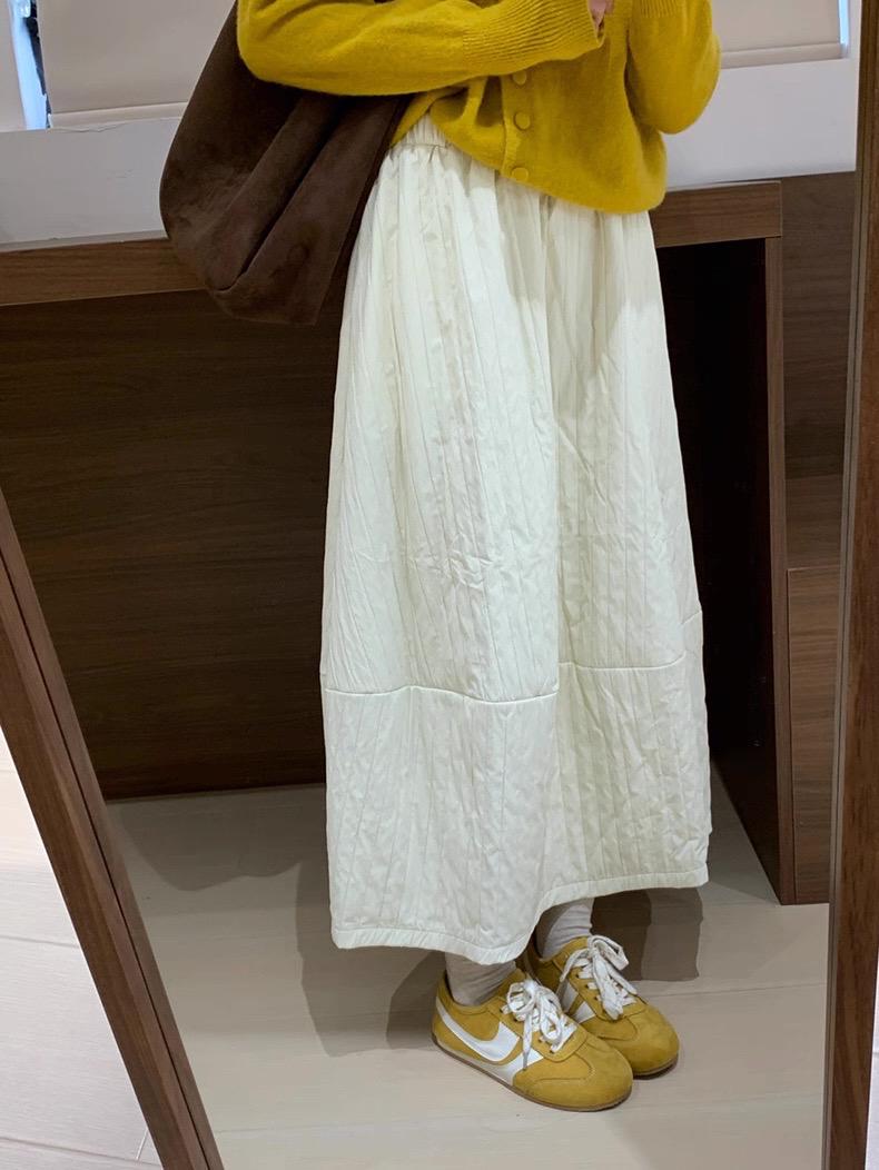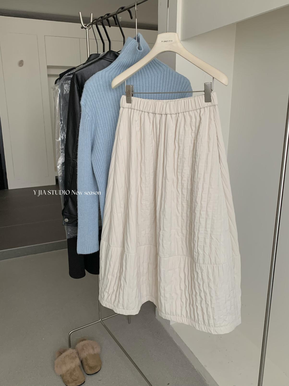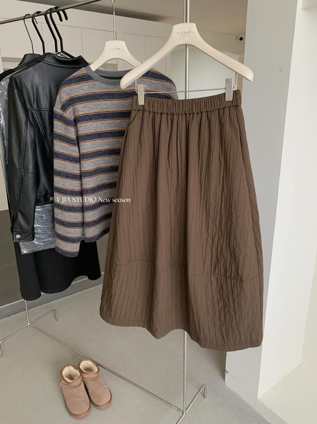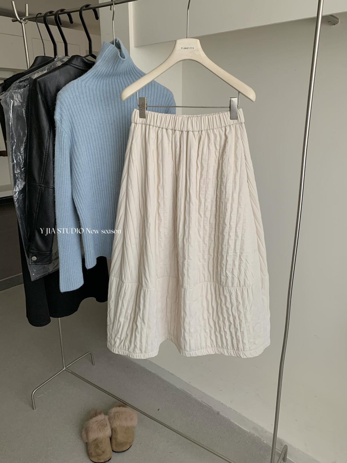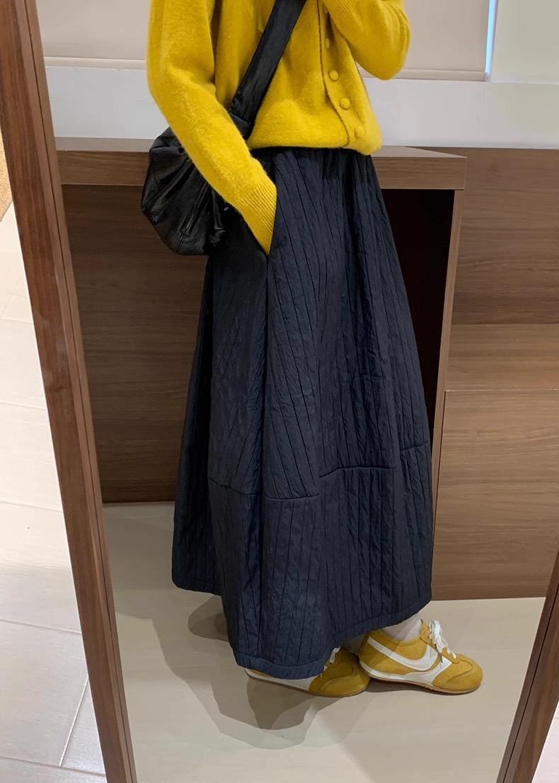 【C7754】簡約褶皺夾棉保暖a字花苞百搭顯瘦傘裙半身裙