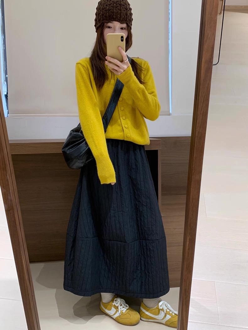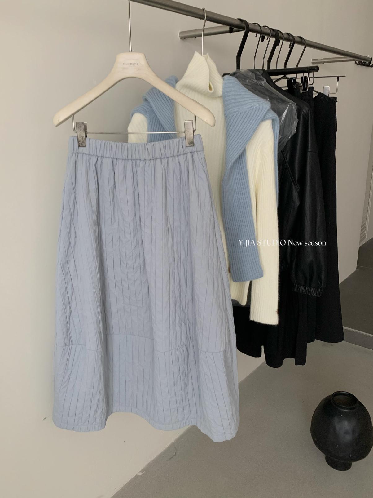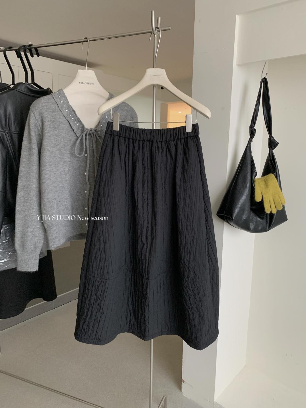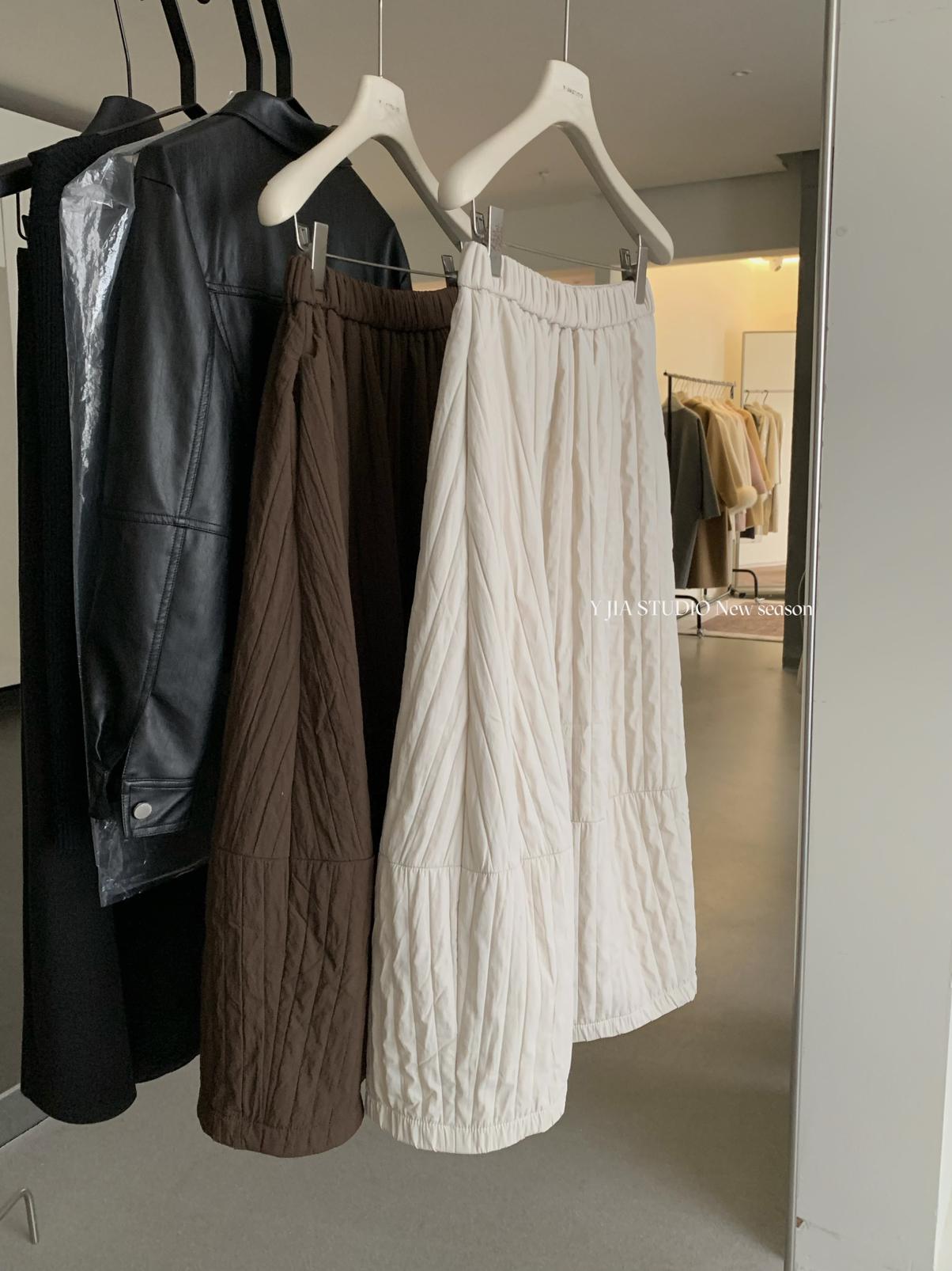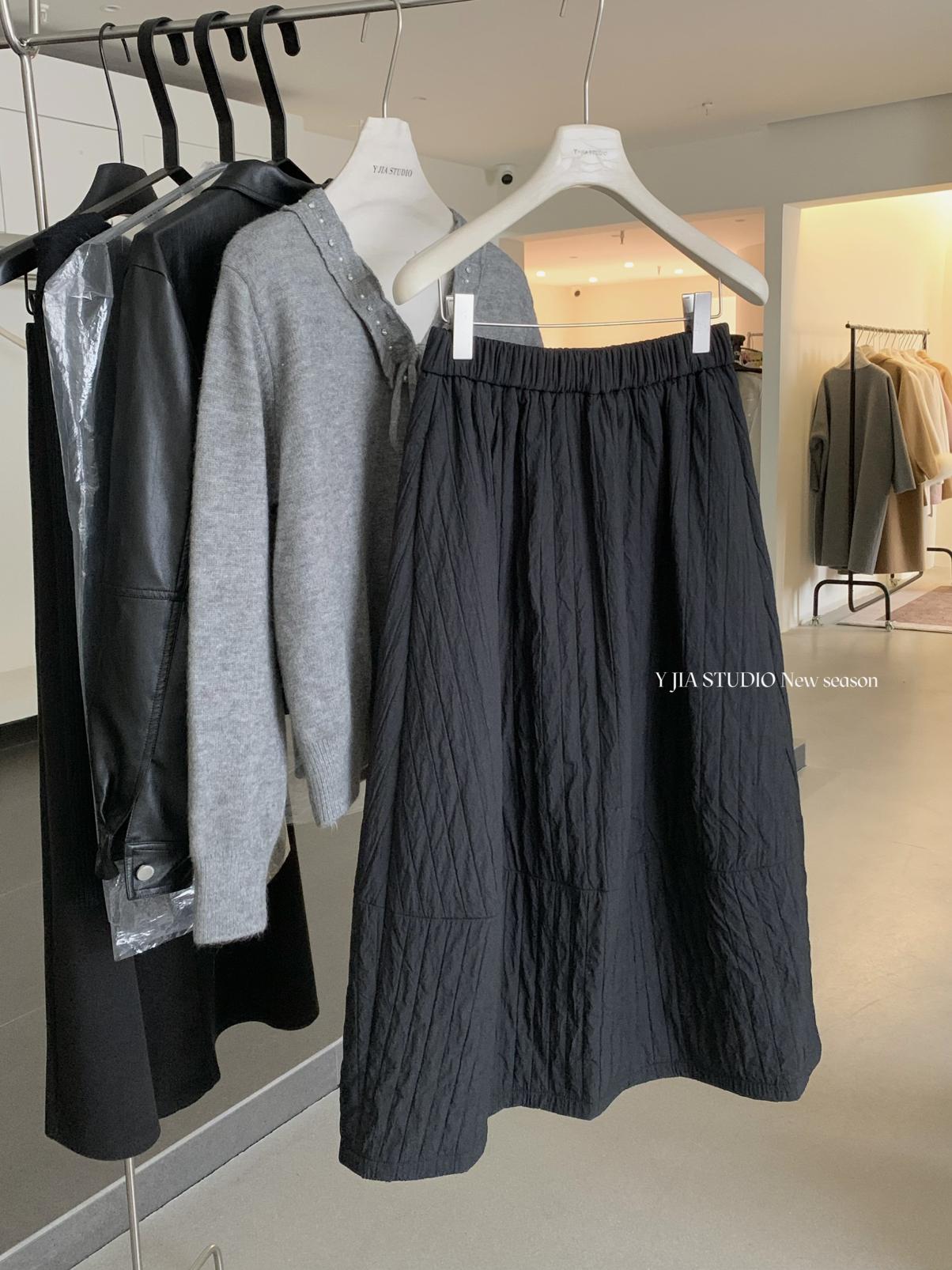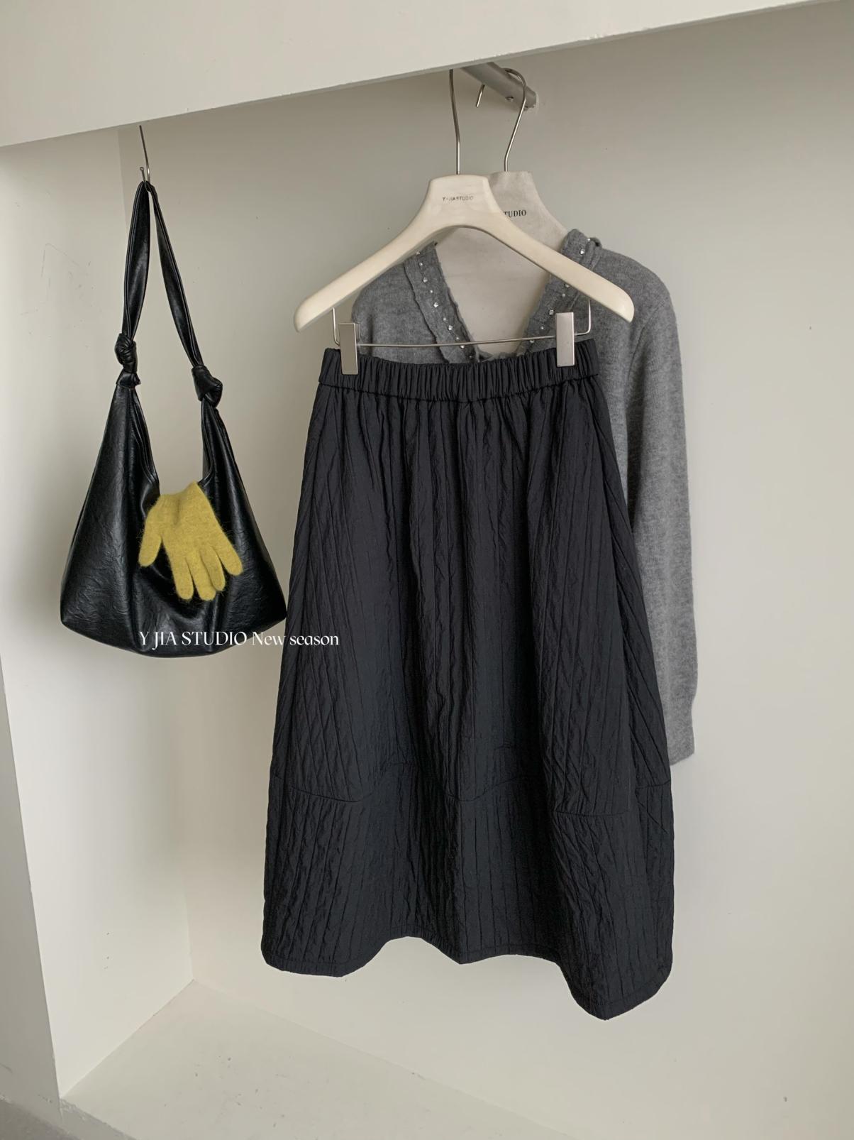 【C7754】簡約褶皺夾棉保暖a字花苞百搭顯瘦傘裙半身裙
