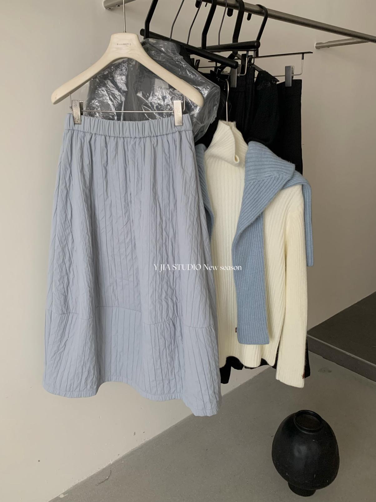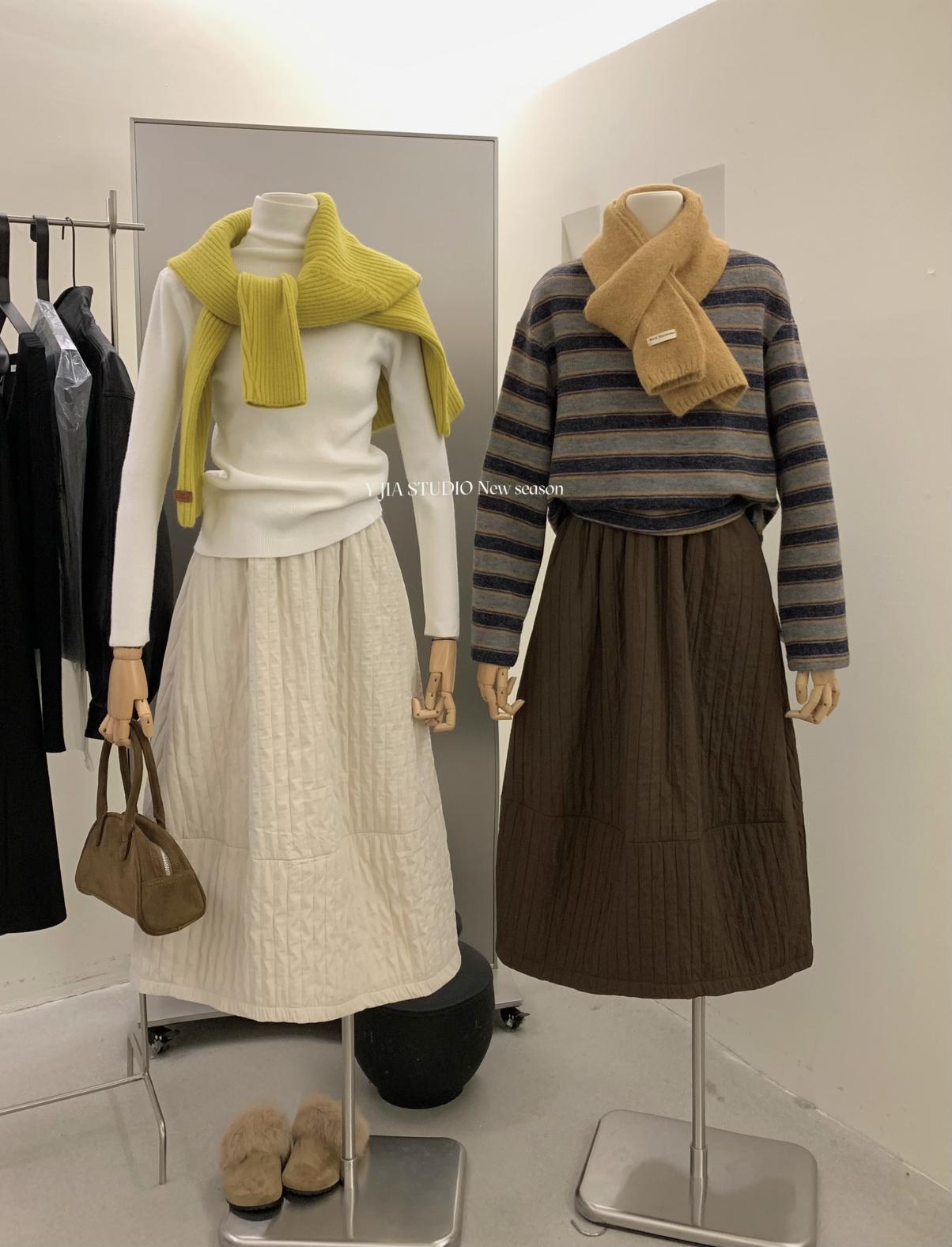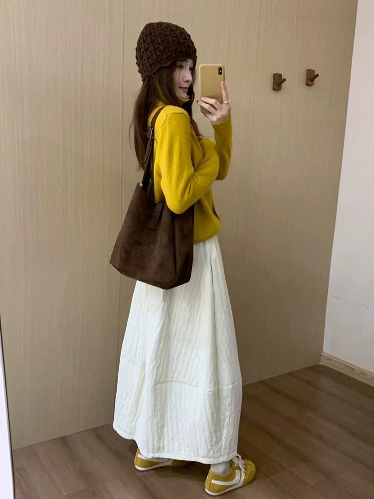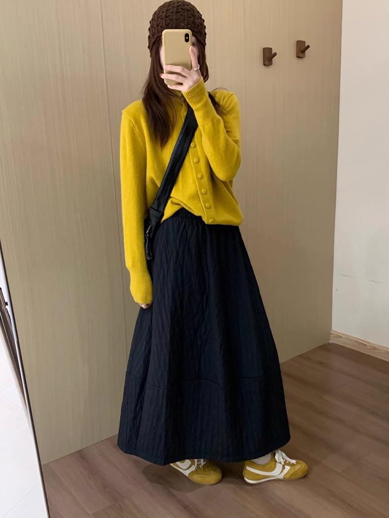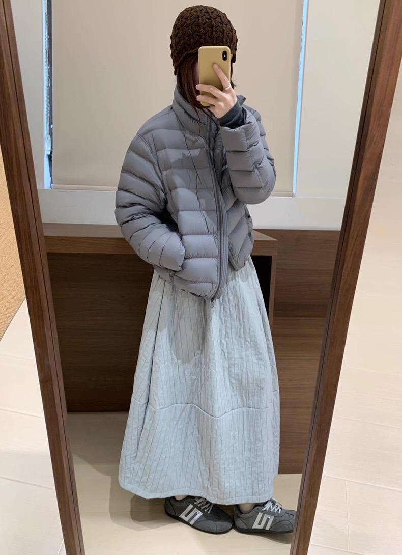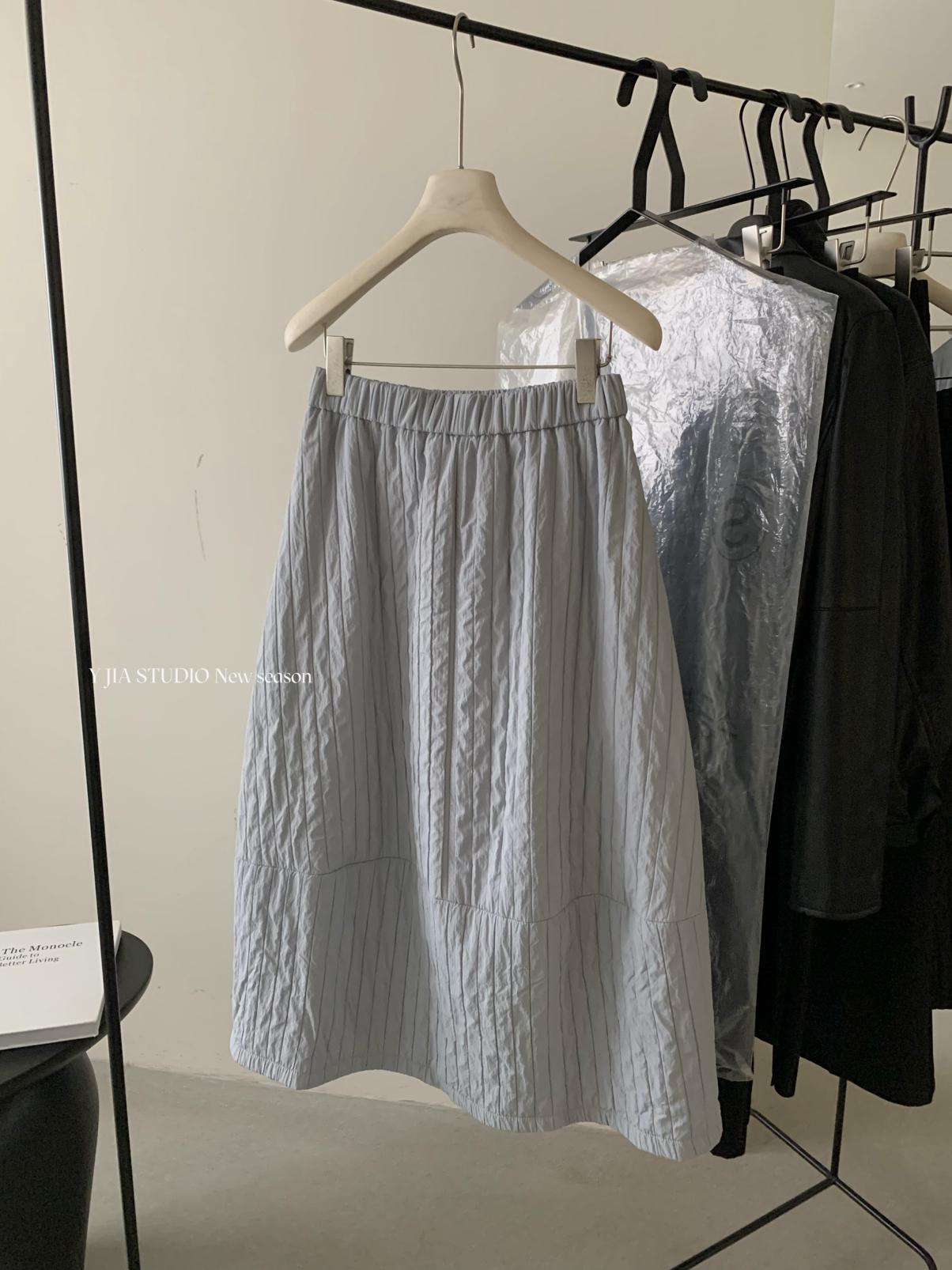 【C7754】簡約褶皺夾棉保暖a字花苞百搭顯瘦傘裙半身裙