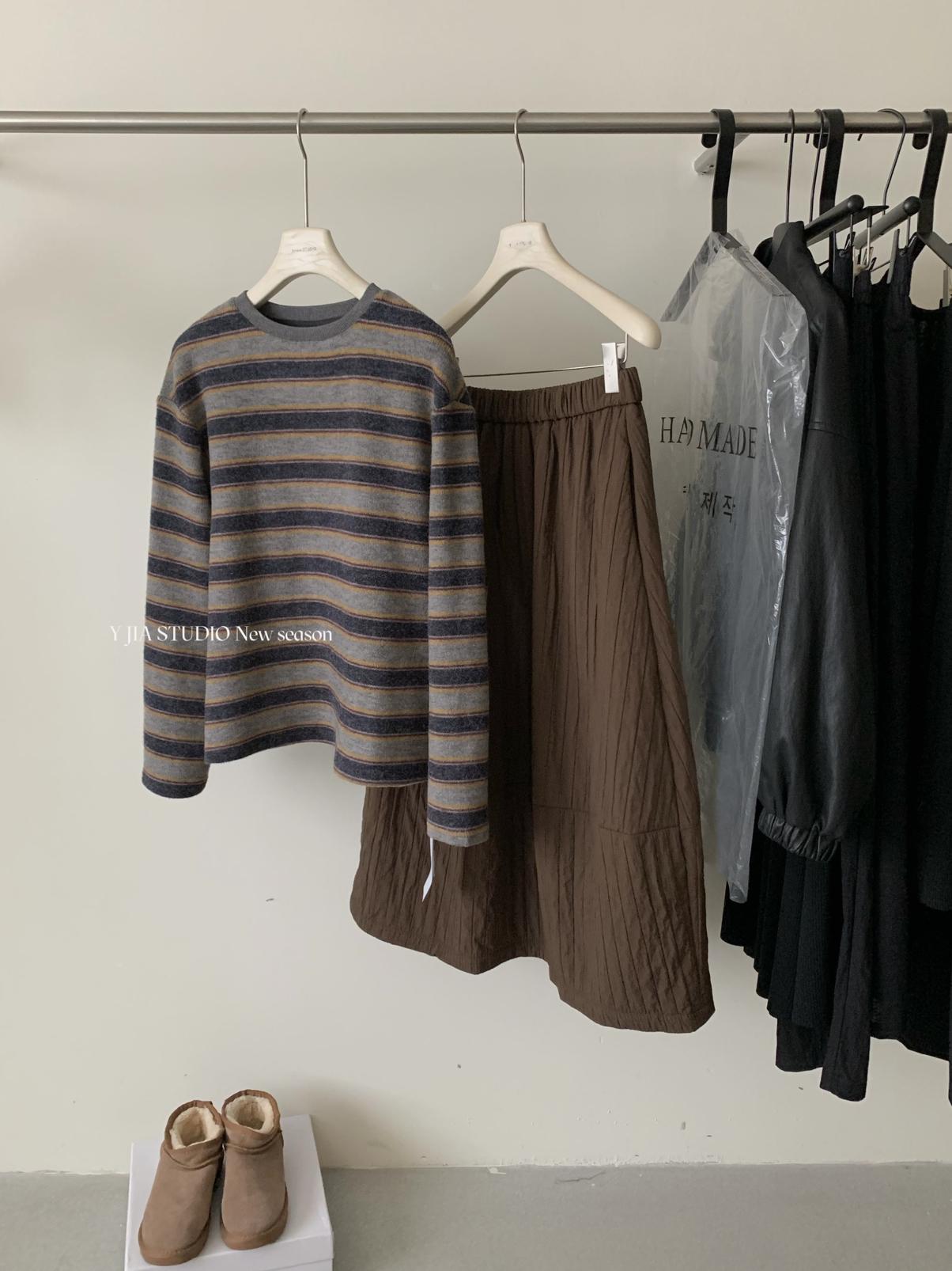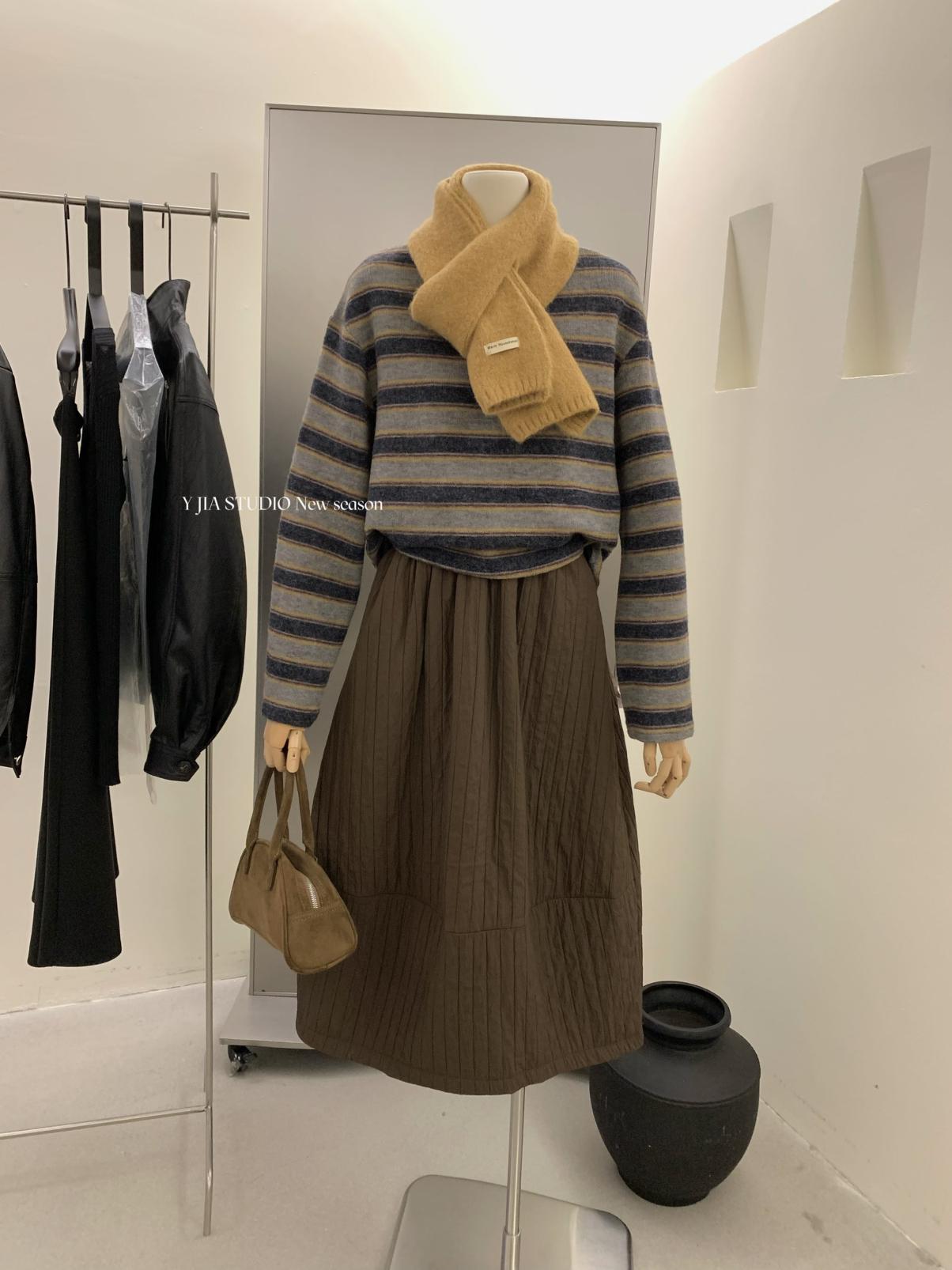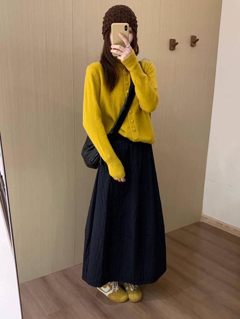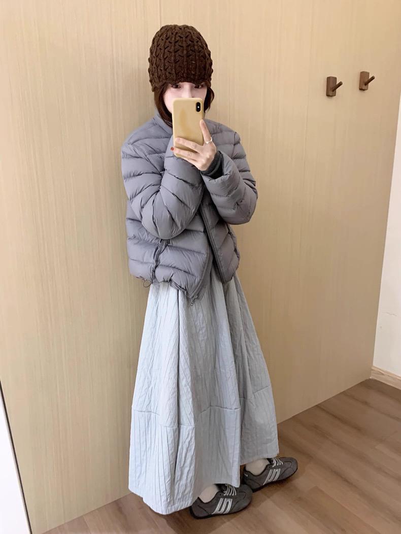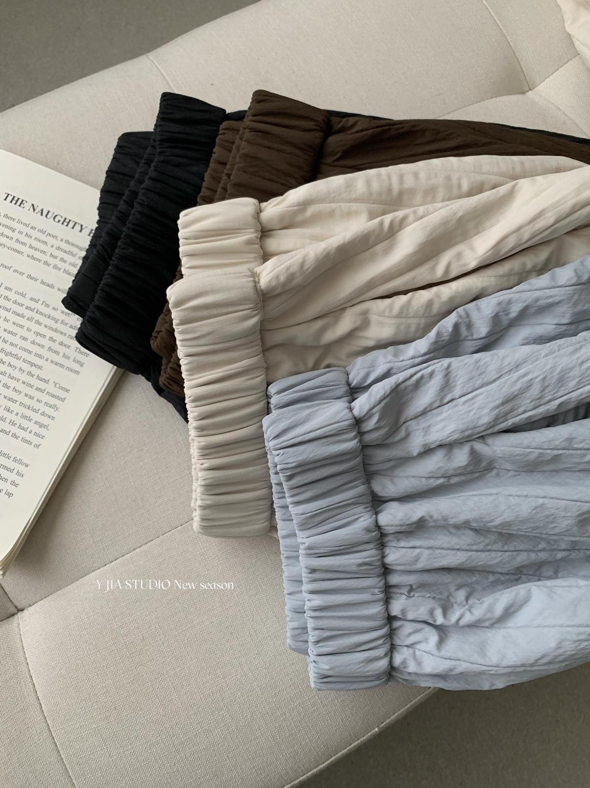 【C7754】簡約褶皺夾棉保暖a字花苞百搭顯瘦傘裙半身裙