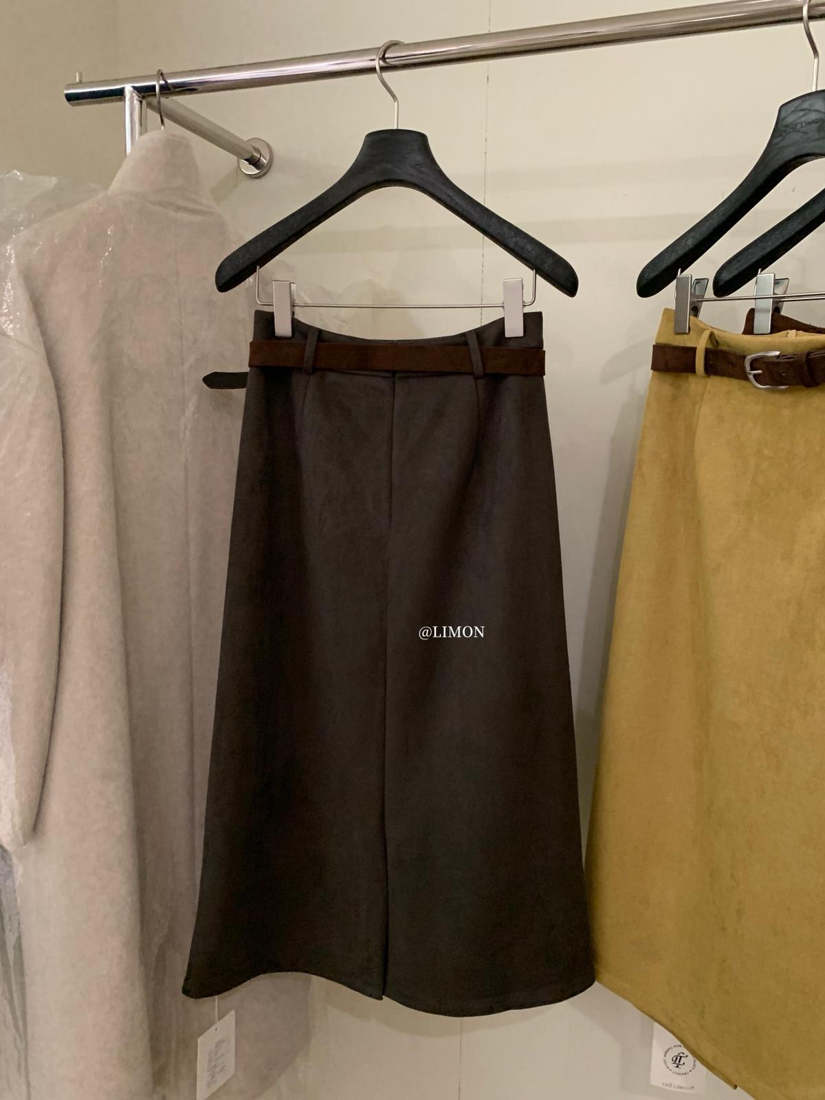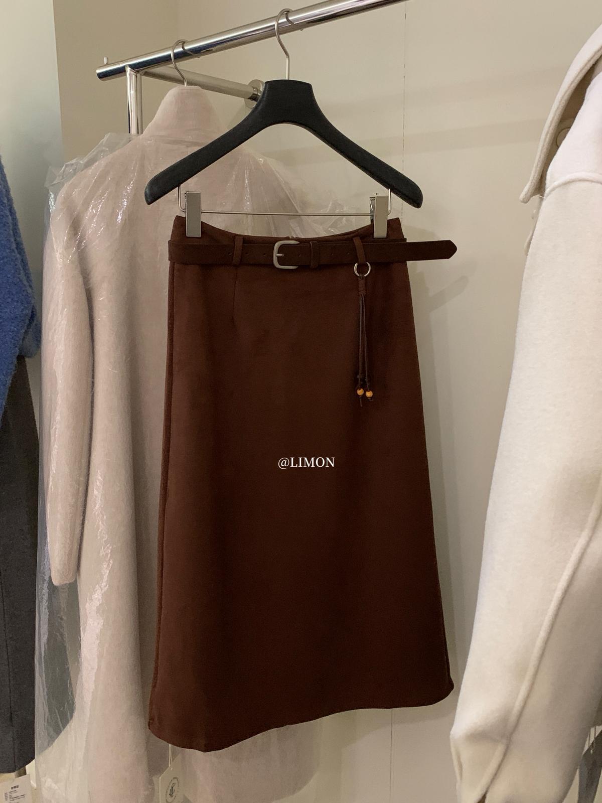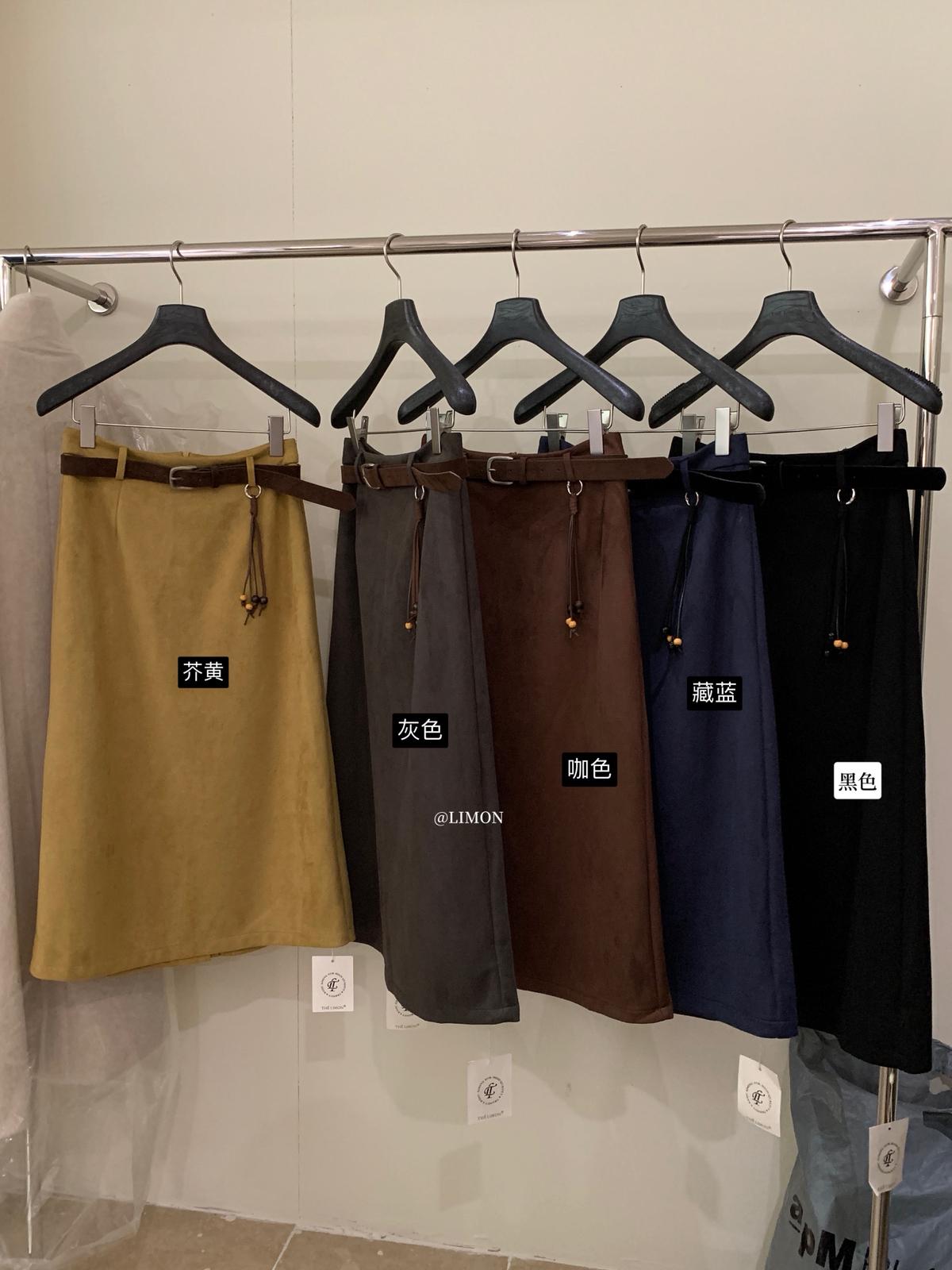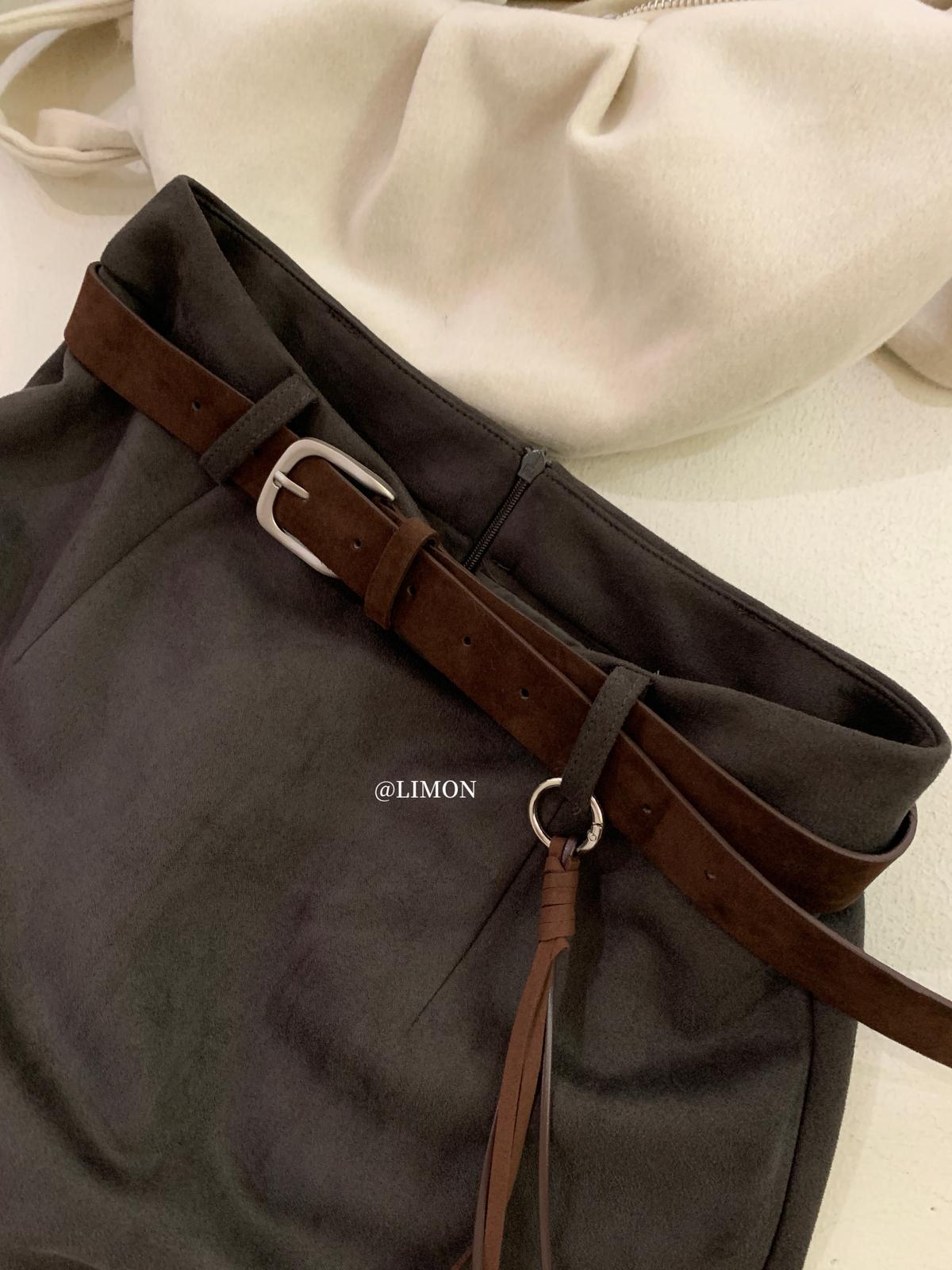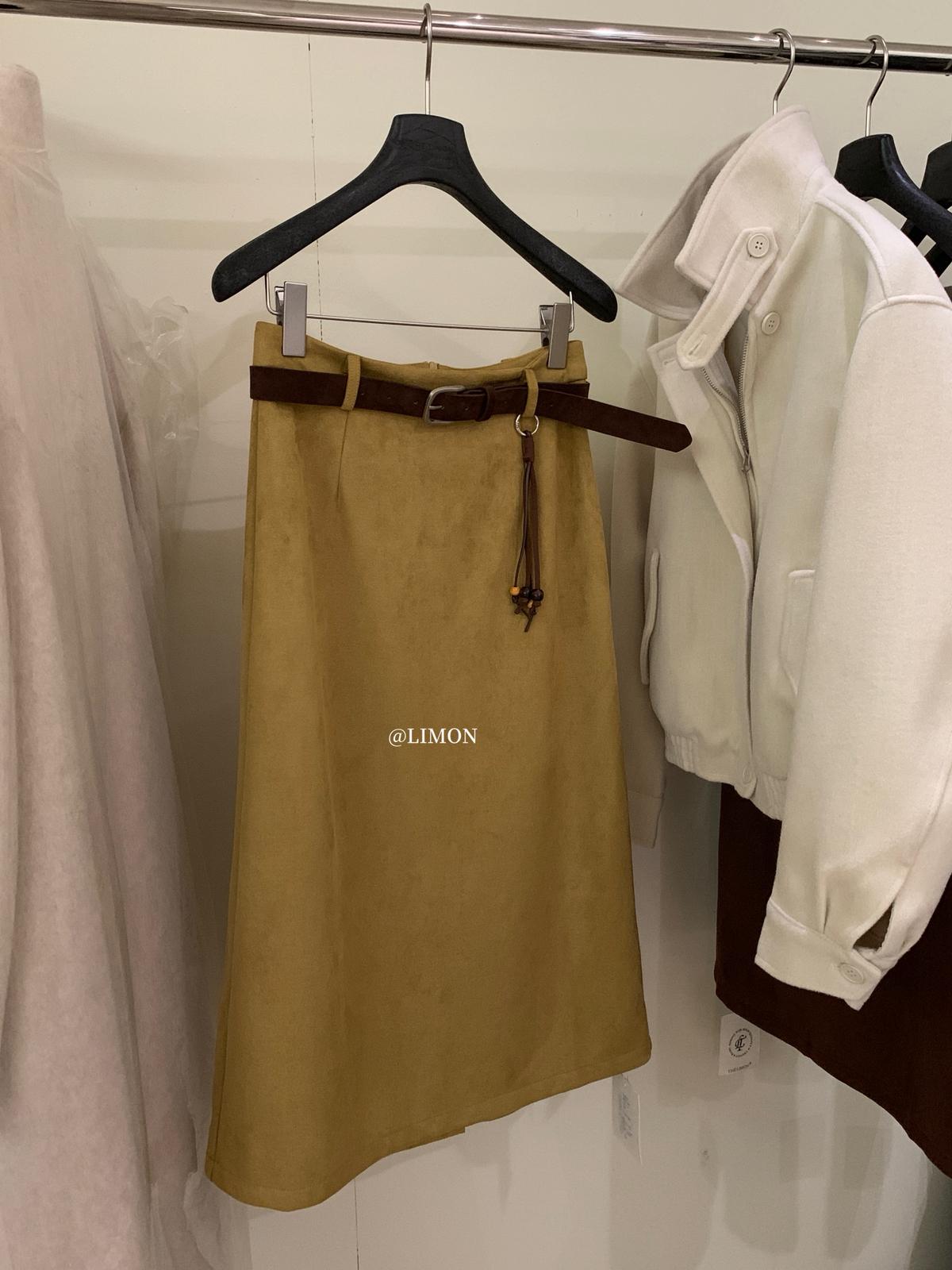 【C7762】鹿皮絨高腰顯瘦百搭半身裙(配腰帶)