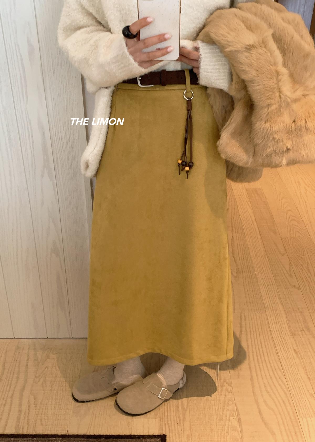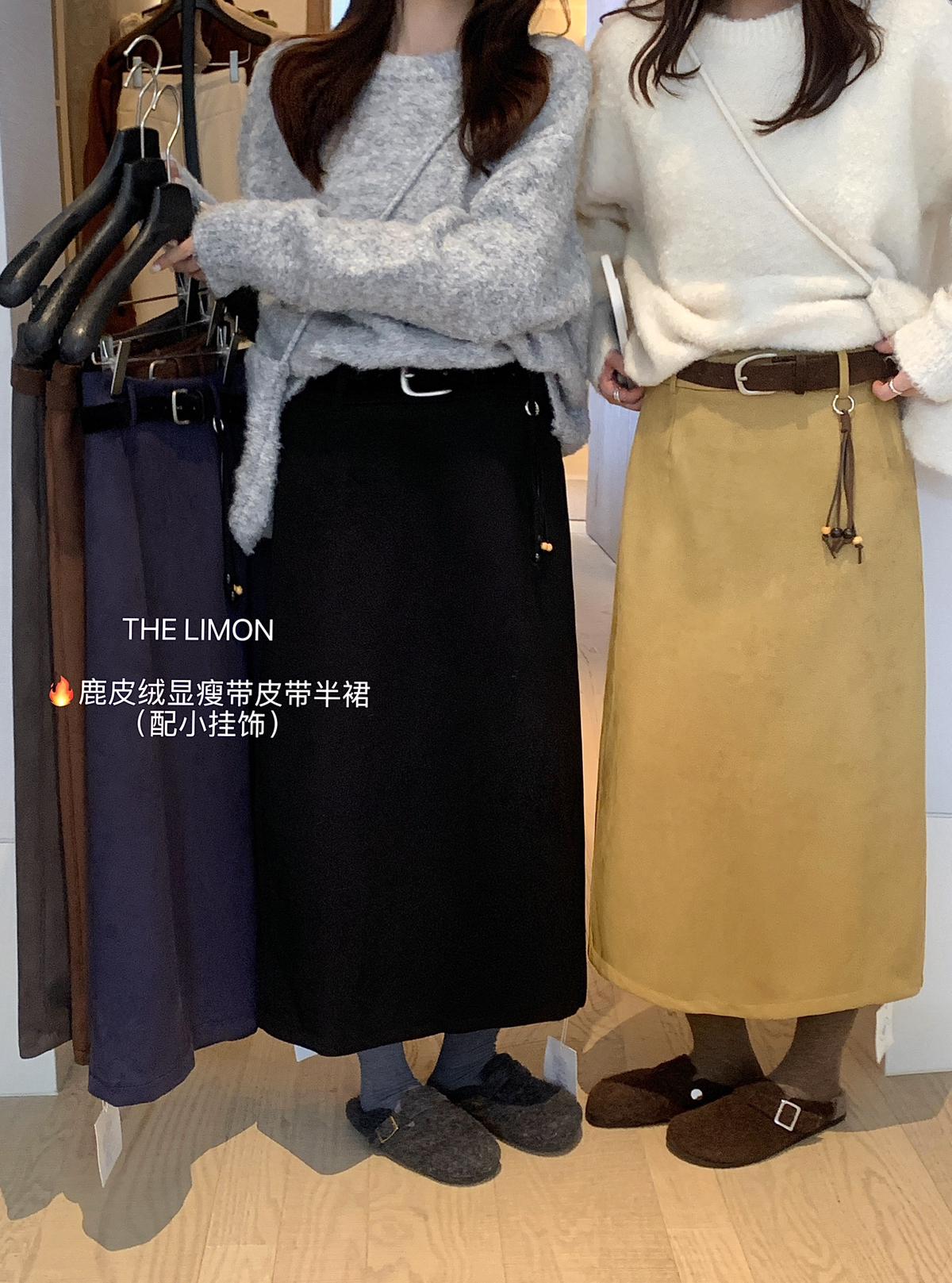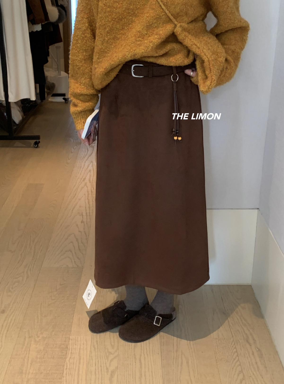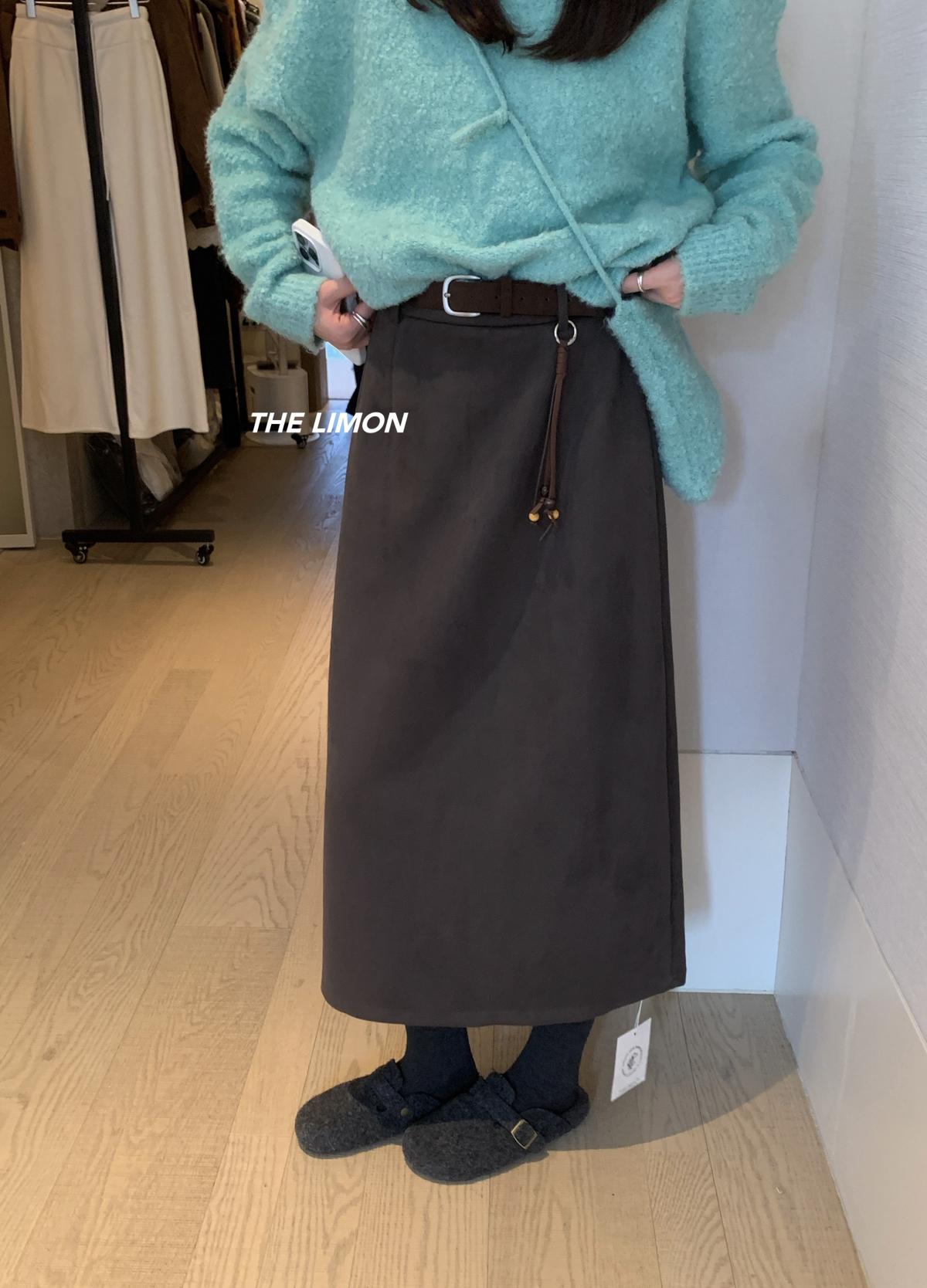 【C7762】鹿皮絨高腰顯瘦百搭半身裙(配腰帶)