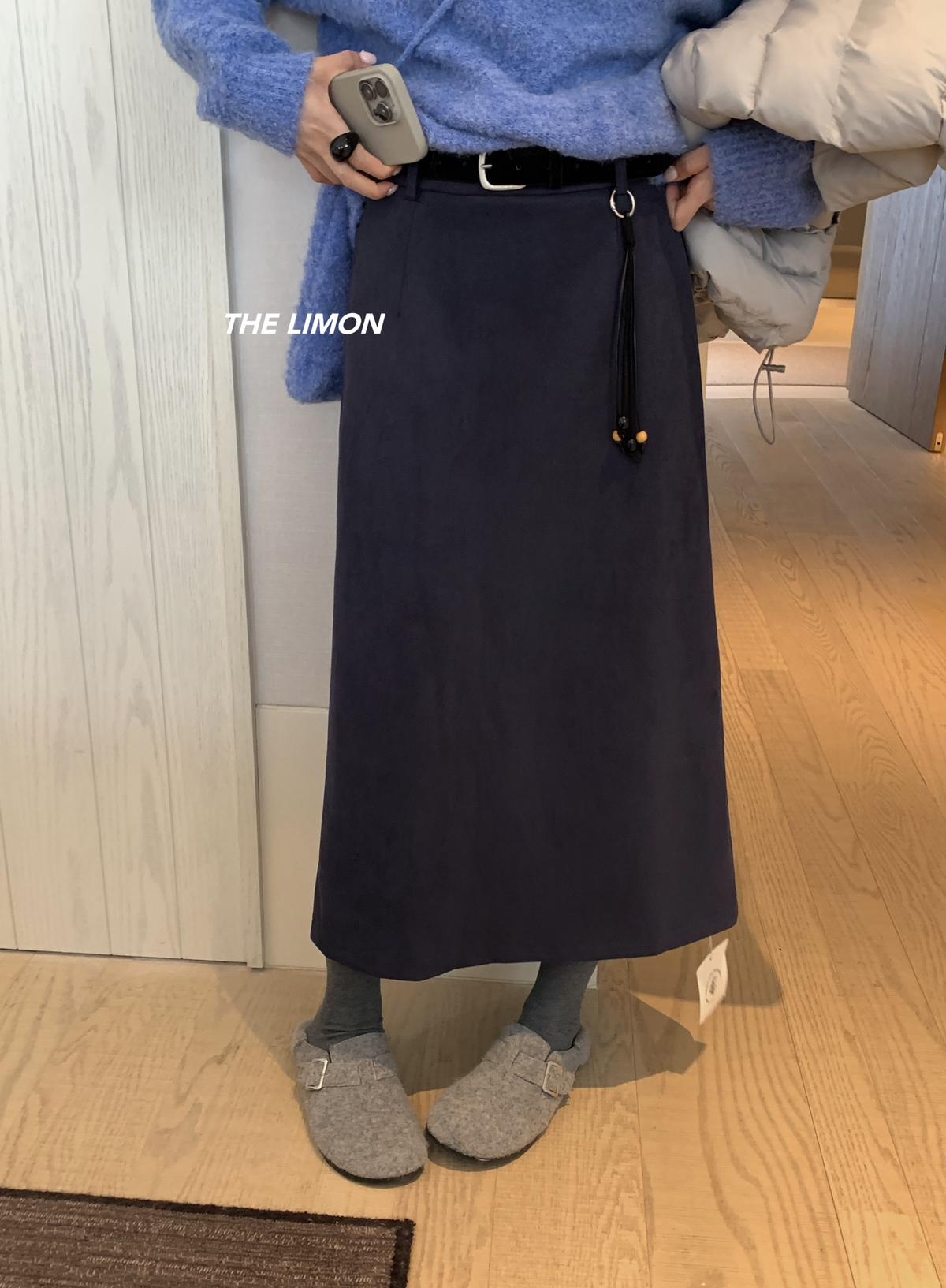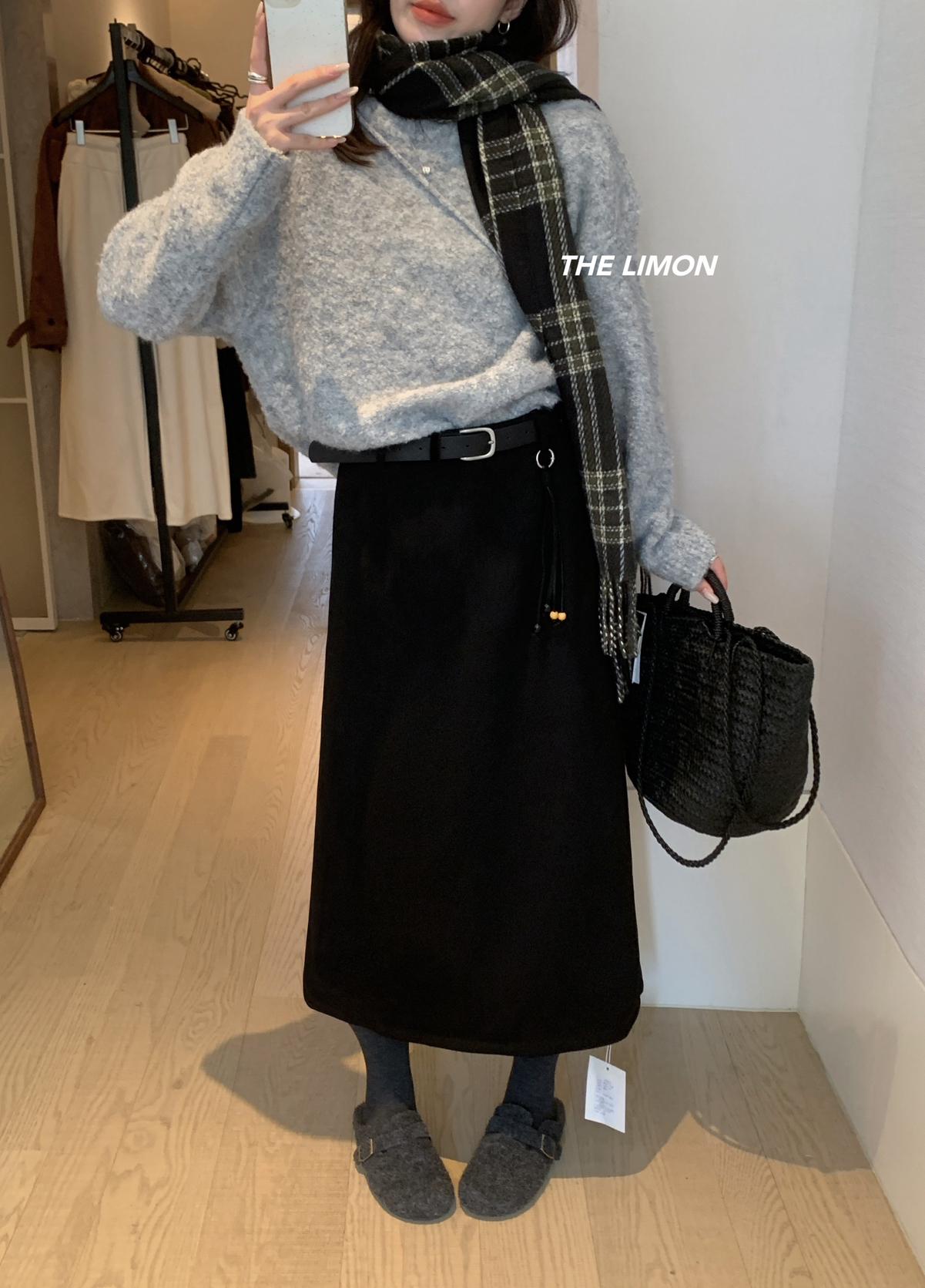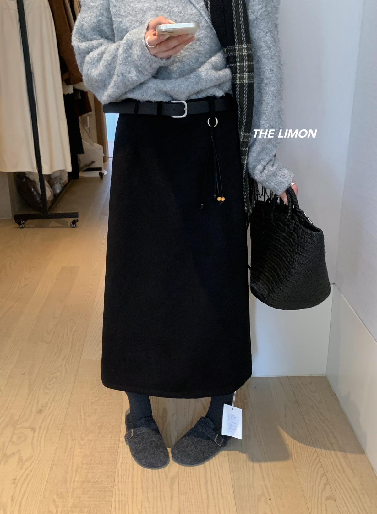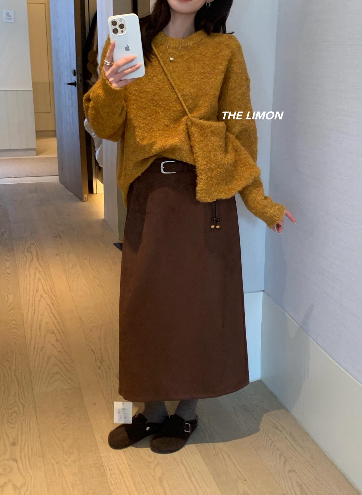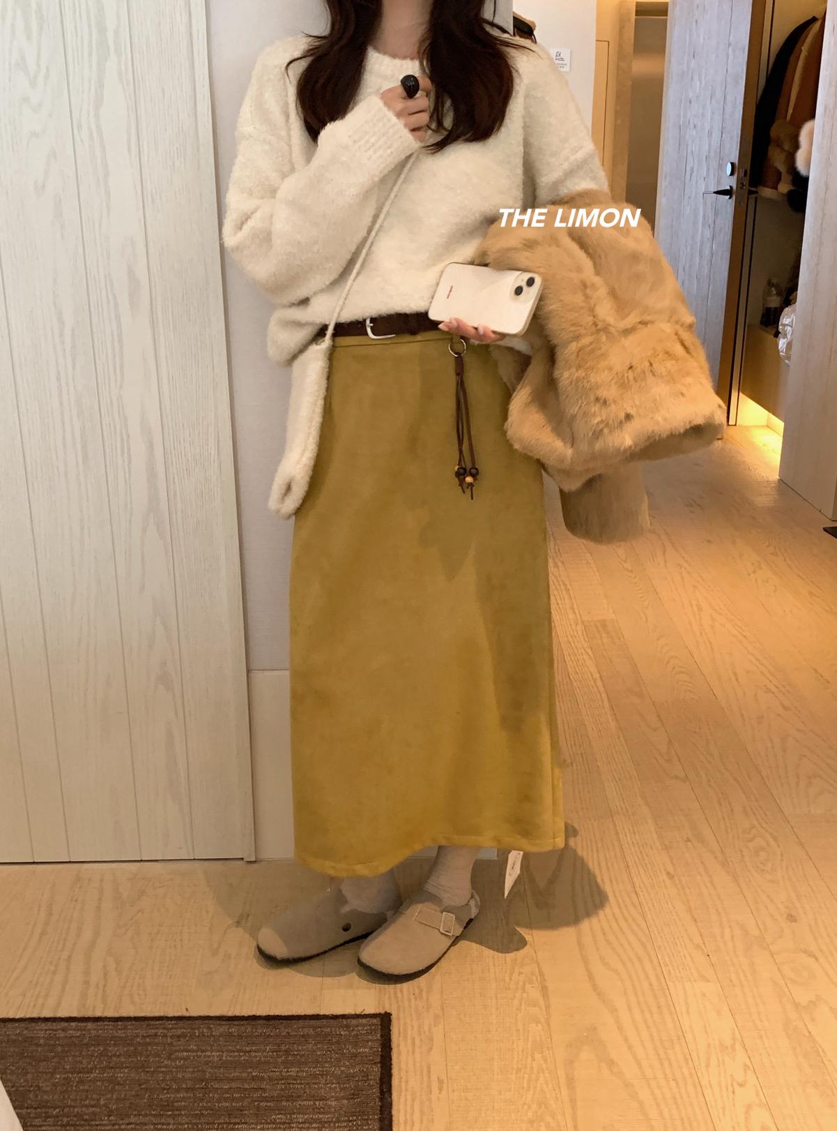 【C7762】鹿皮絨高腰顯瘦百搭半身裙(配腰帶)