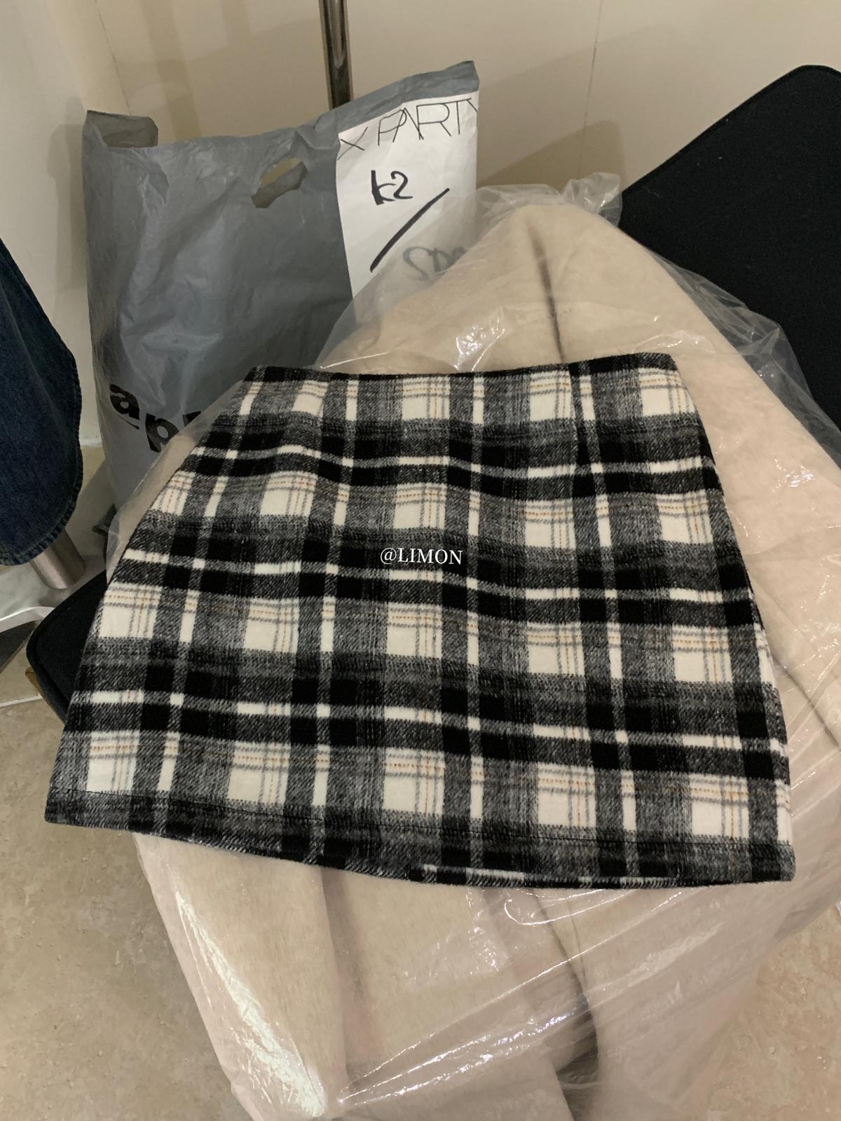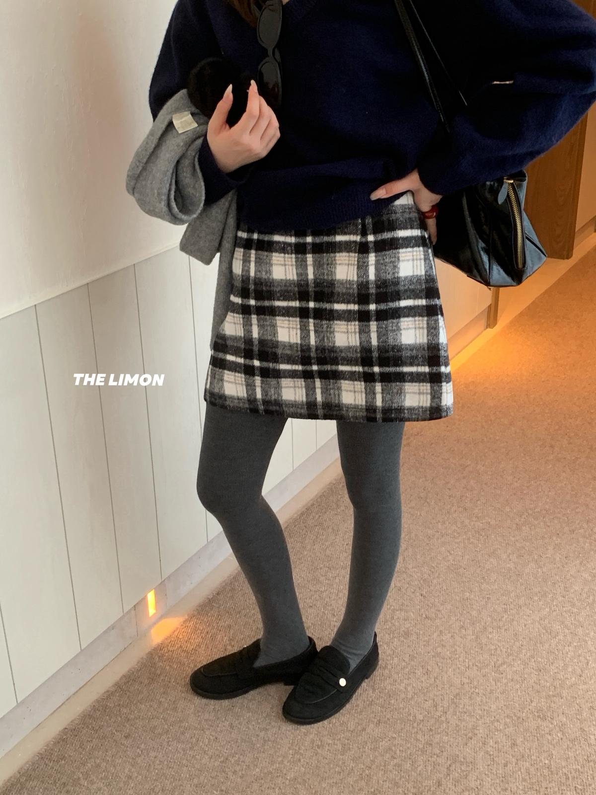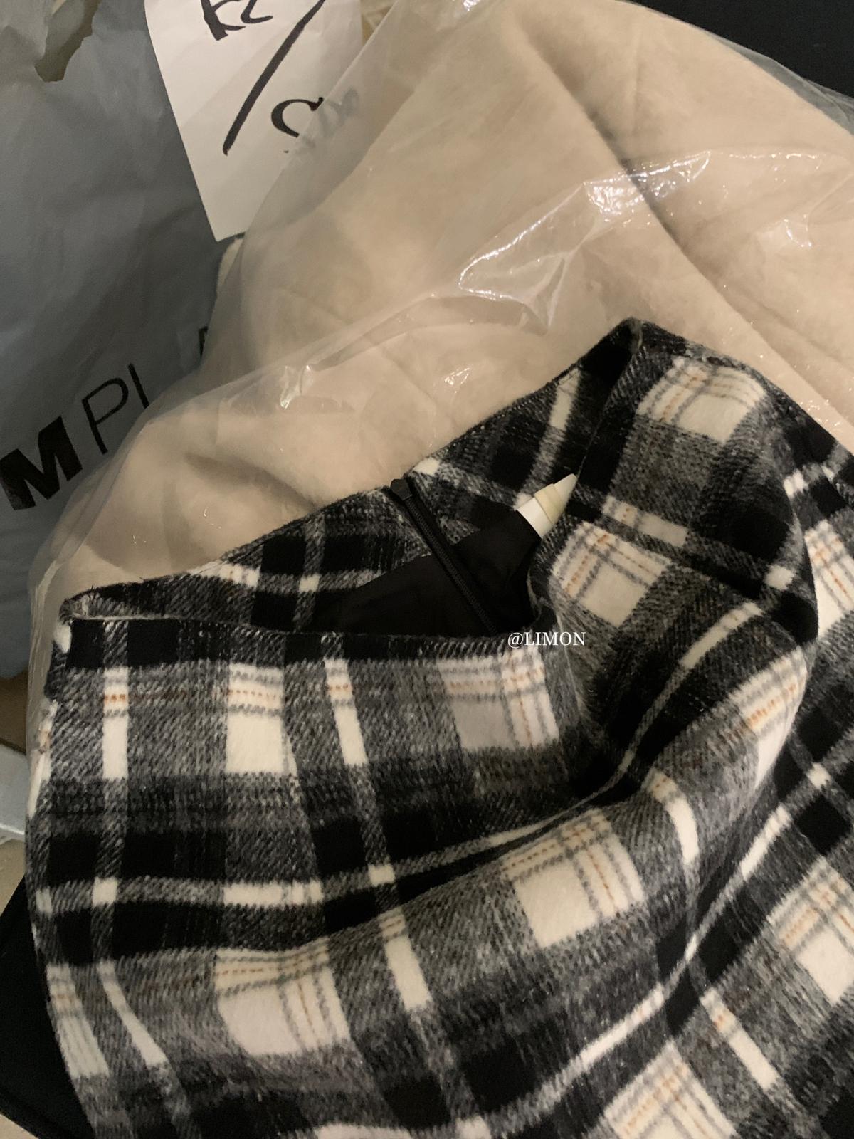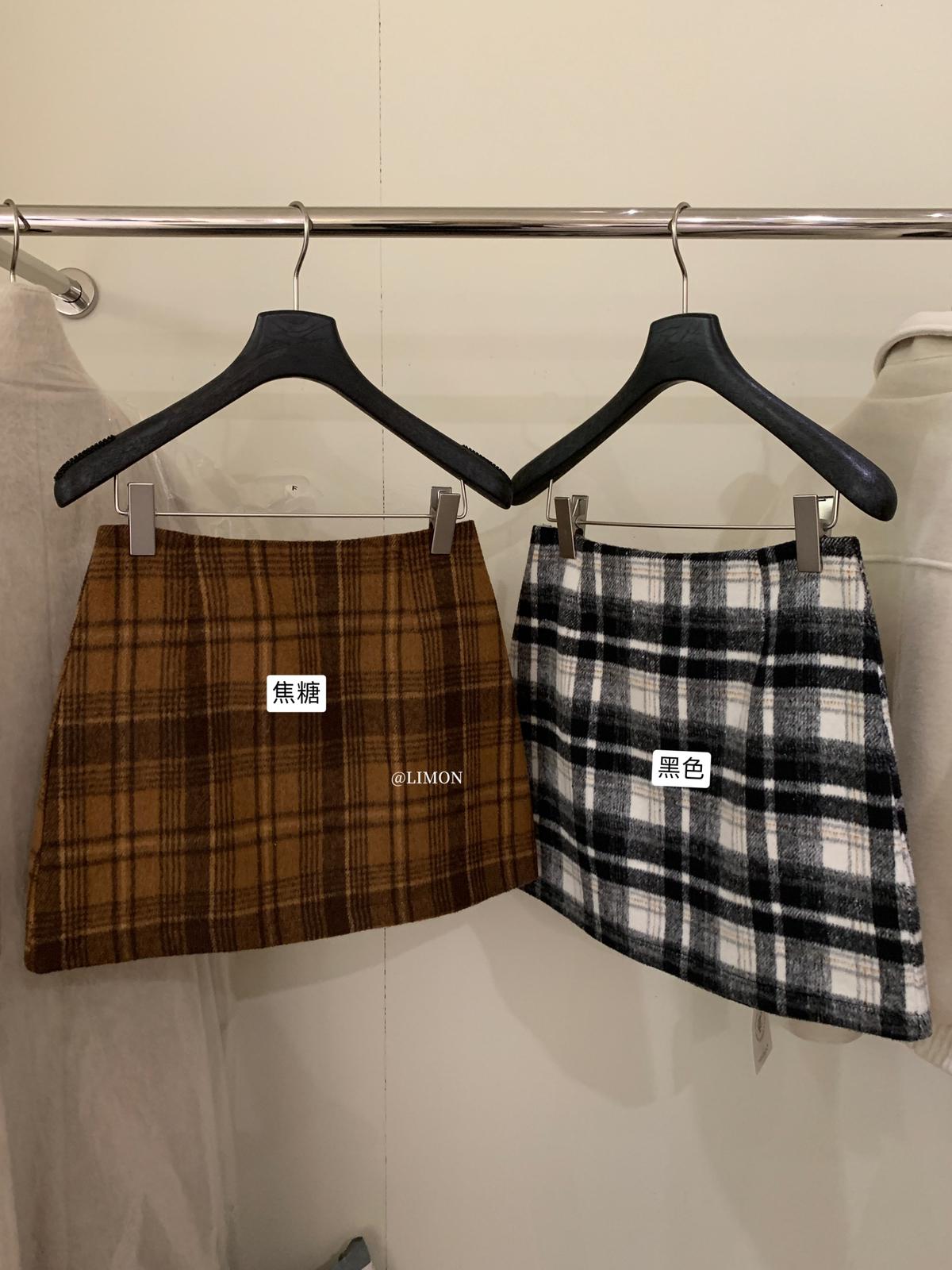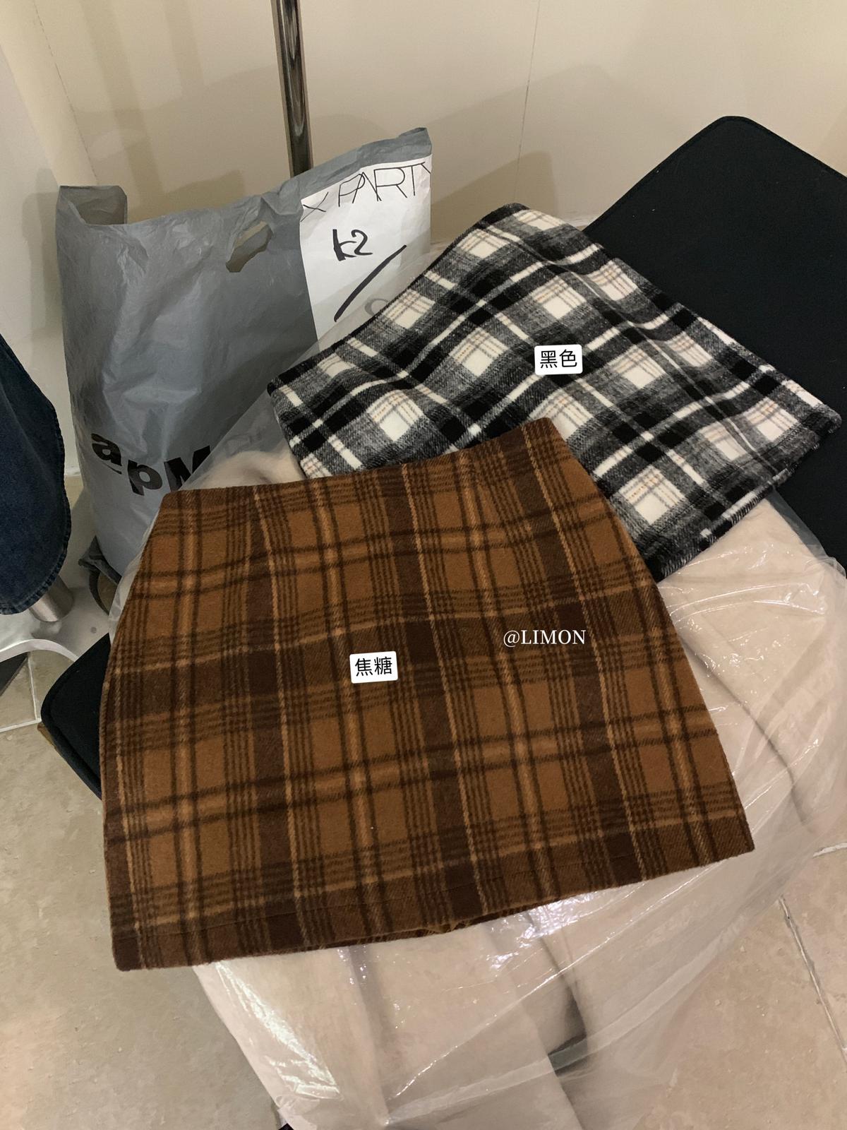 【C7763】復古格紋加厚毛呢顯瘦半身裙