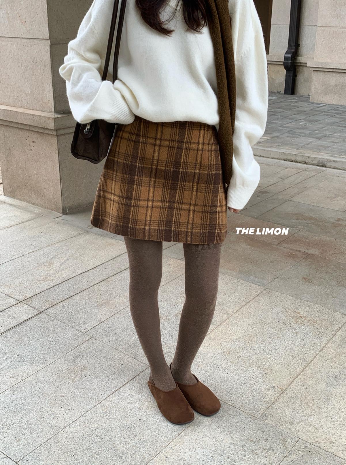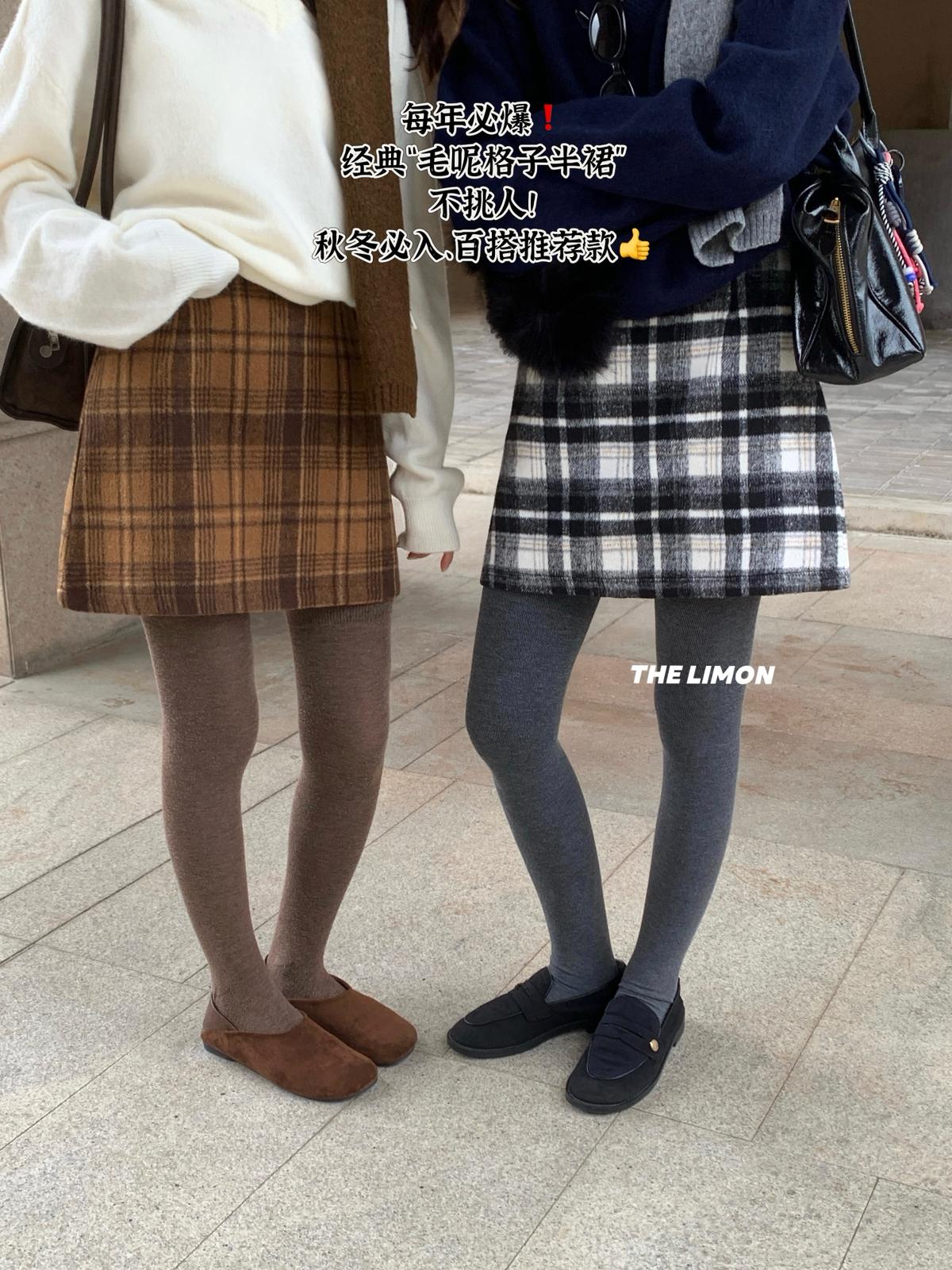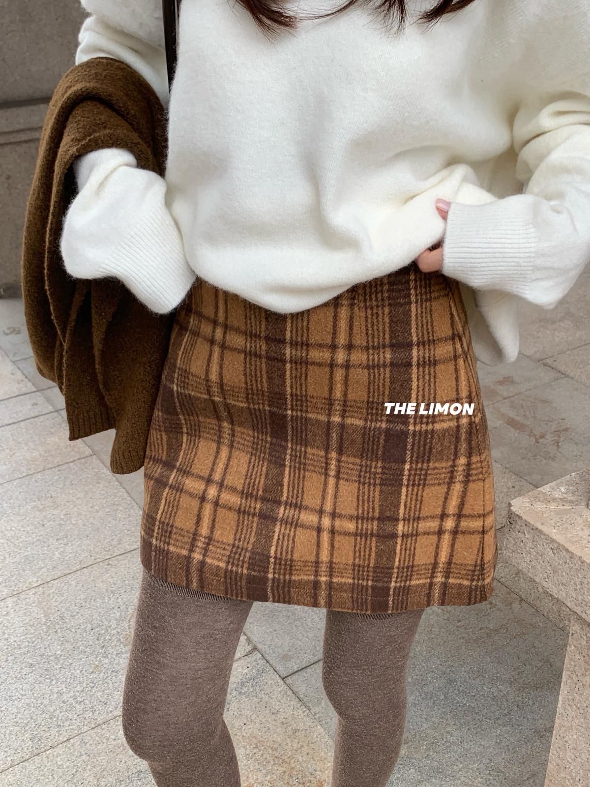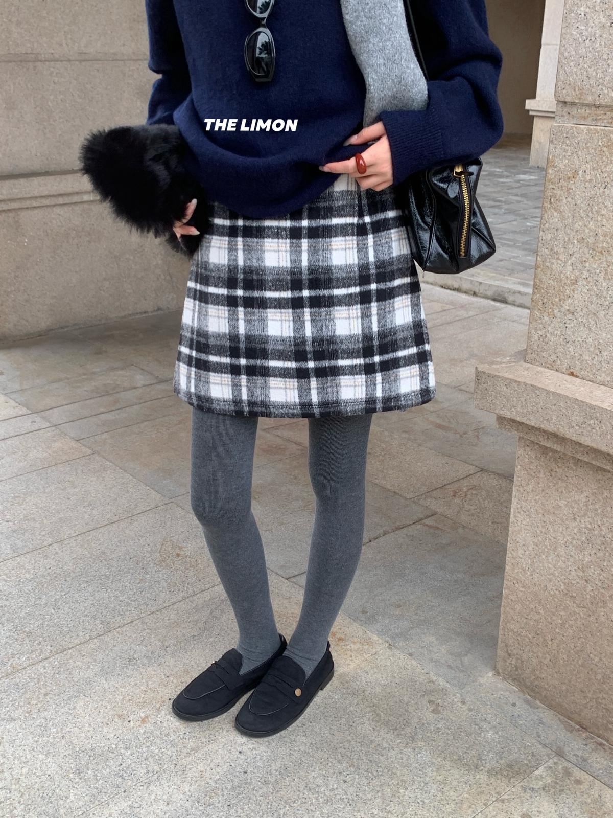 【C7763】復古格紋加厚毛呢顯瘦半身裙